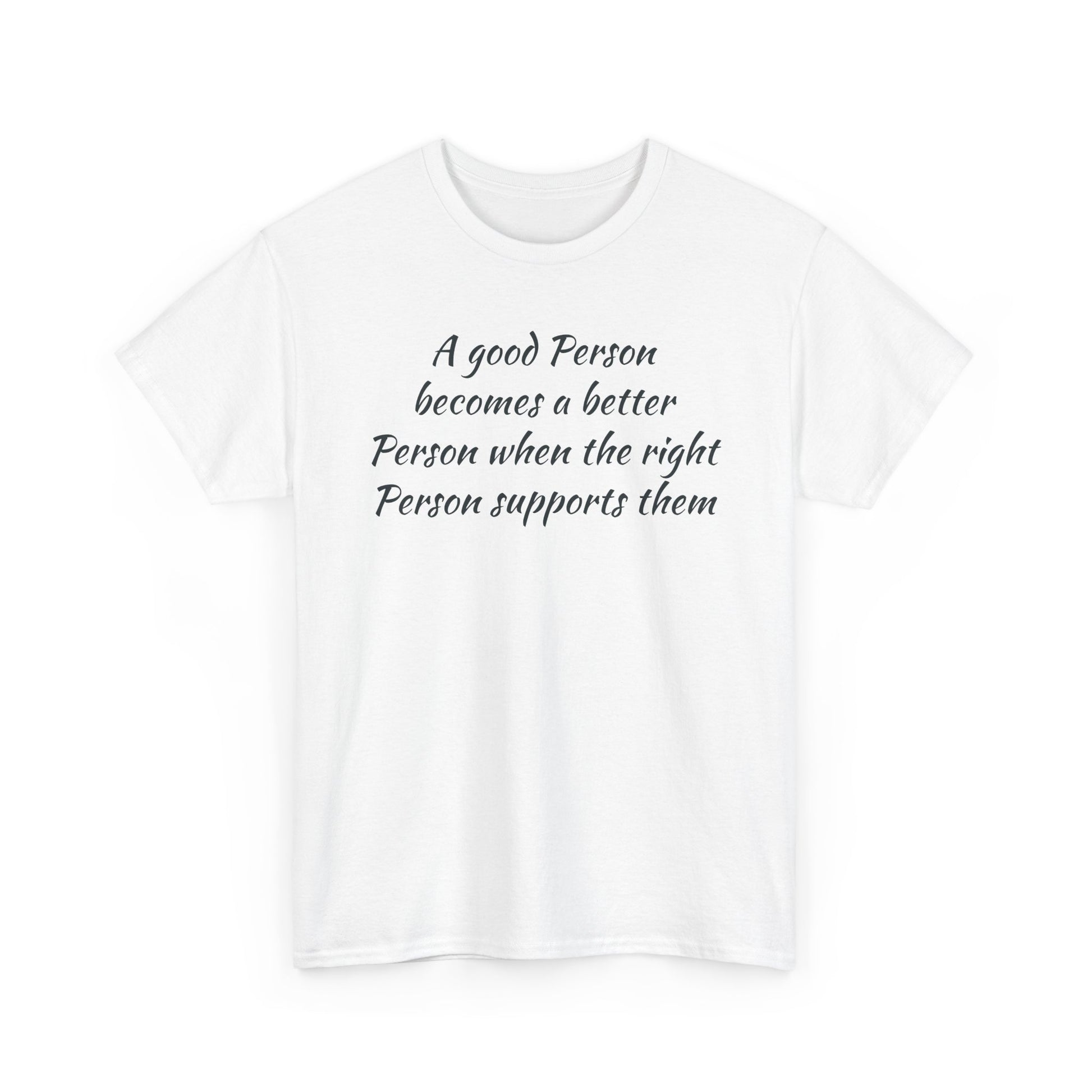 Introducing our Unisex Heavy Cotton Tee, crafted for comfort and style. This tee features an inspiring quote that encourages connection and support, ideal for those who value positivity in their lives. The relaxed fit and classic crew neckline make it perfect for everyday wear, whether you're lounging at home or out with friends. It’s the ideal gift for loved ones during holidays like birthdays, Christmas, or just to celebrate friendship. Made from high-quality materials, this shirt is not only soft but also durable, bringing a sense of casual elegance to any occasion. Every time you wear it, you’ll showcase your commitment to encouragement and unity, making it a wonderful addition to your wardrobe or a thoughtful present for someone special.