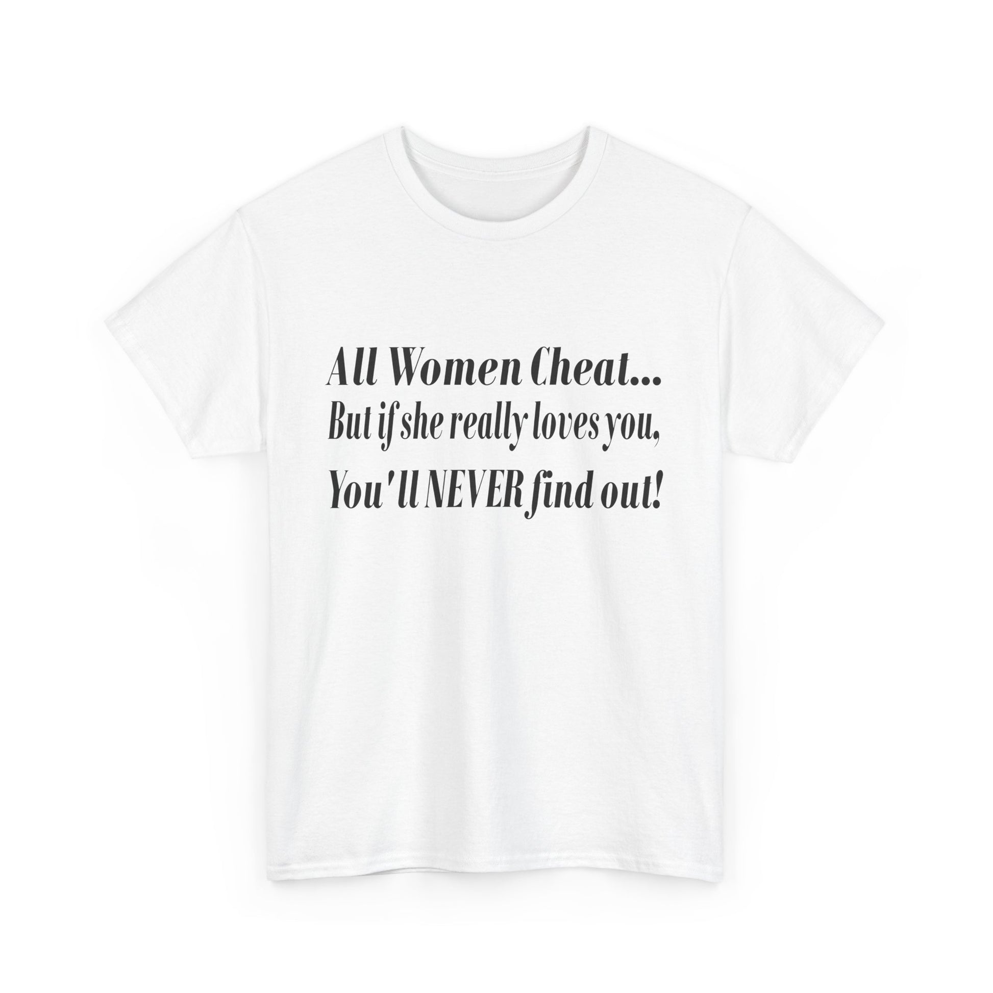 Introducing the ultimate Unisex Heavy Cotton Tee that effortlessly combines style and comfort. Made for those who appreciate a relaxed vibe, this tee is perfect for casual outings or semi-formal events. Its classic fit and crew neckline ensure a versatile addition to any wardrobe. Crafted from high-quality materials, it’s gentle on the skin and keeps you comfortable all day long. This shirt makes an ideal gift for friends or family members who love bold and playful statements. Perfect for birthdays, holidays, or just as a treat for yourself, this tee adds a touch of humor to everyday fashion! Humorous Unisex T-Shirt for Relationship Jokes, Casual Wear, Funny Gifts, Birthday Present, Unique Statement Tee