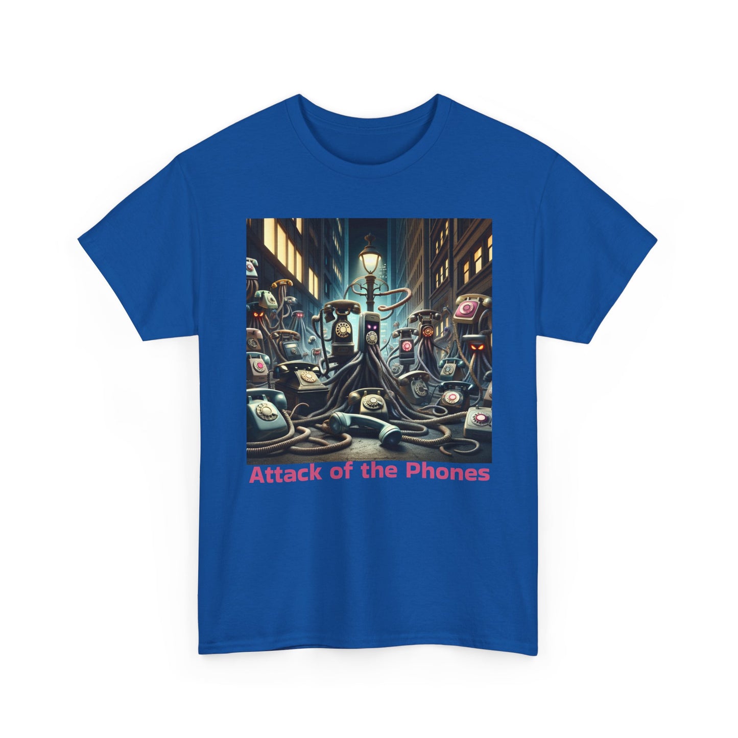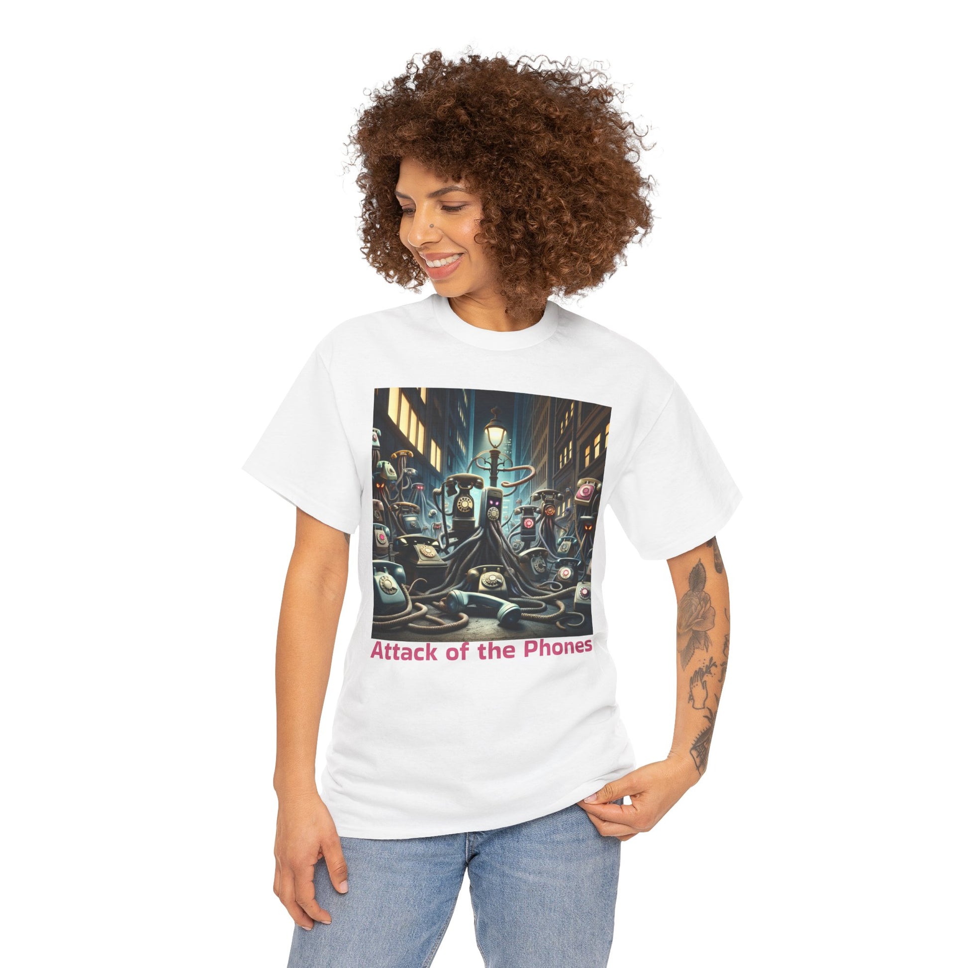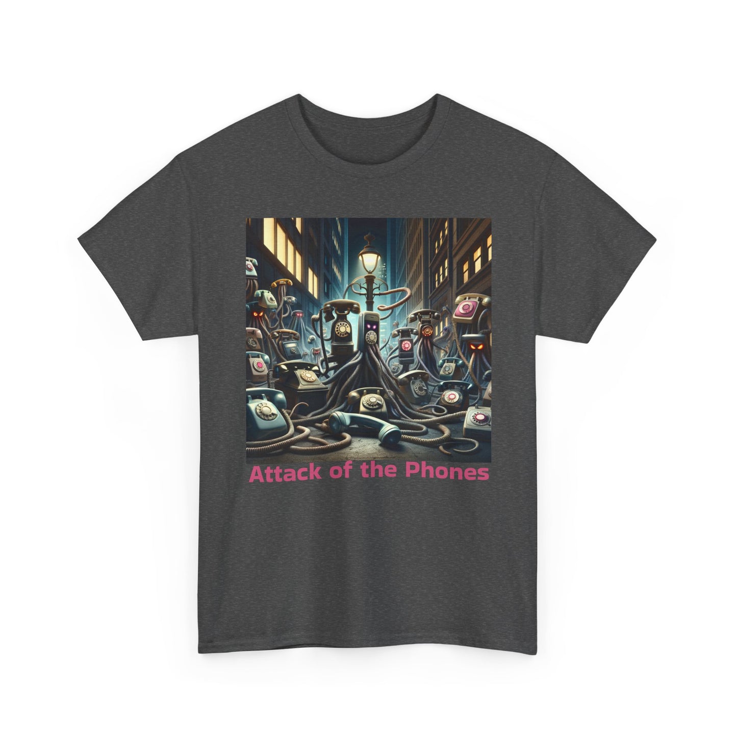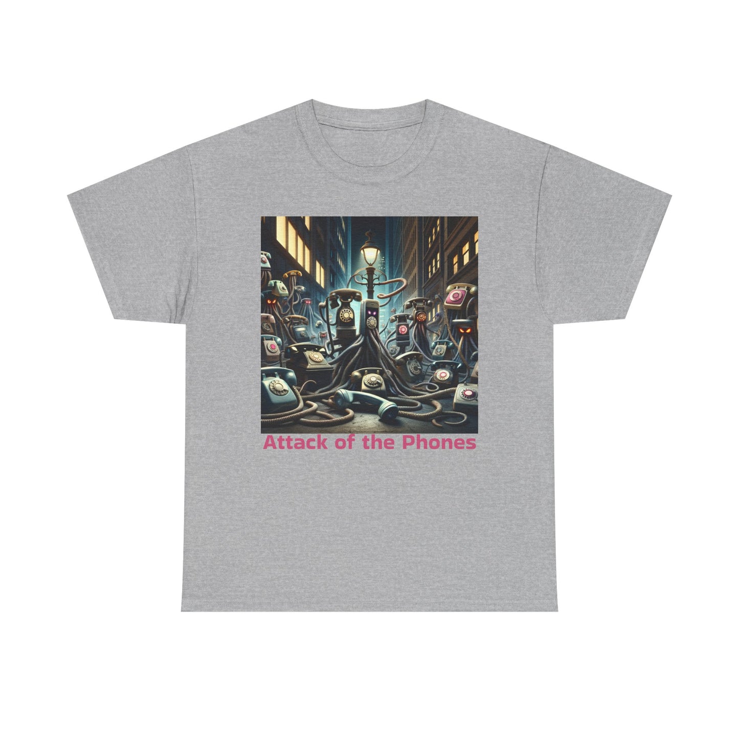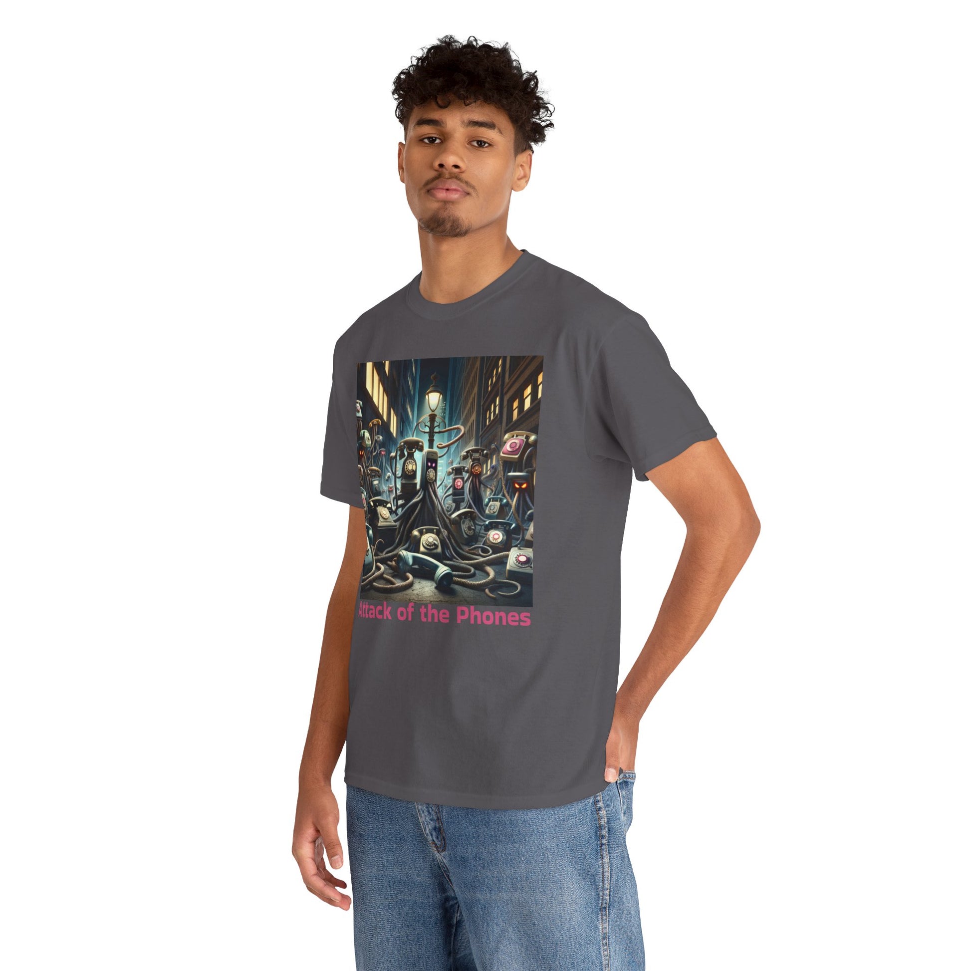 Retro Graphic Tee, Attack of the Phones Unisex Cotton Shirt, Casual Gift, Streetwear, Tech Humor Tee, Geeky Outfit