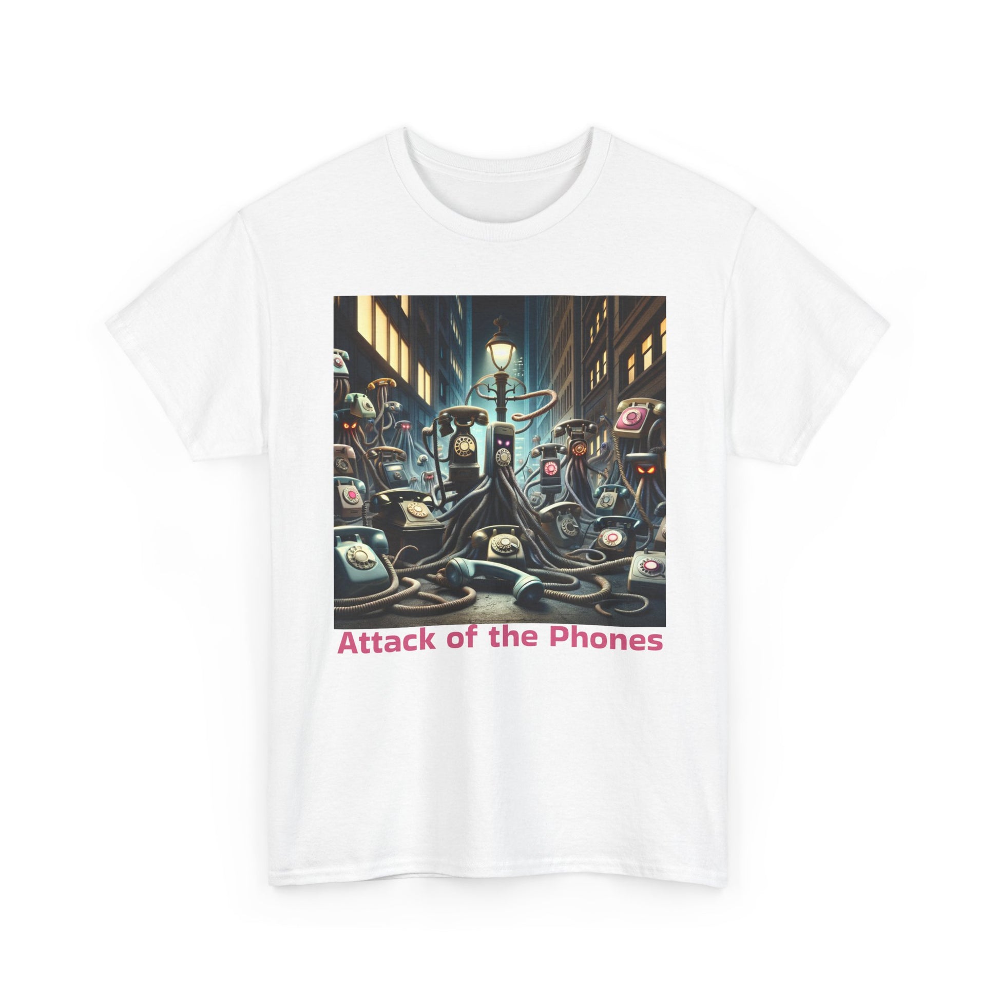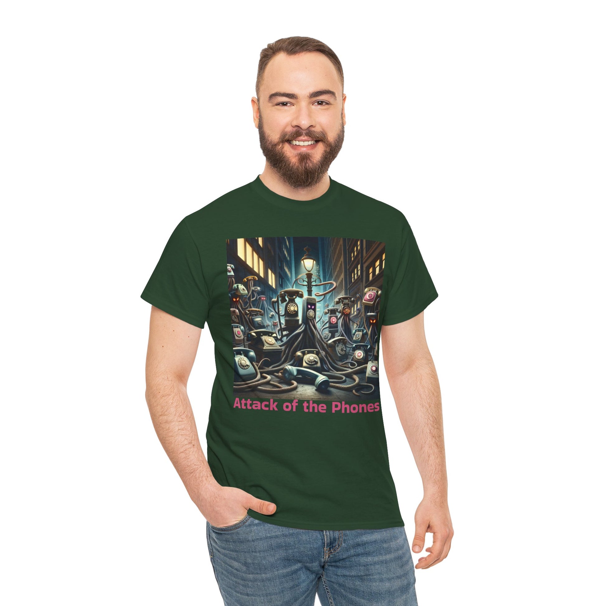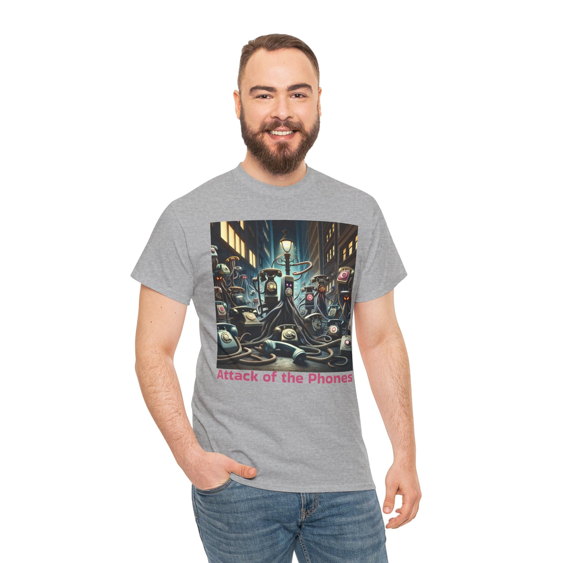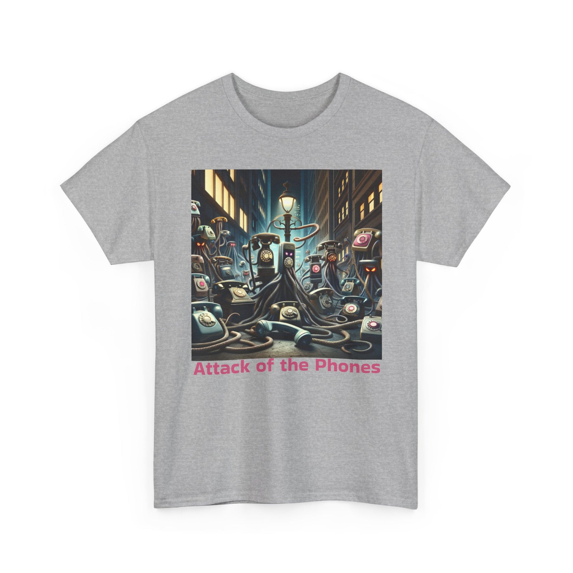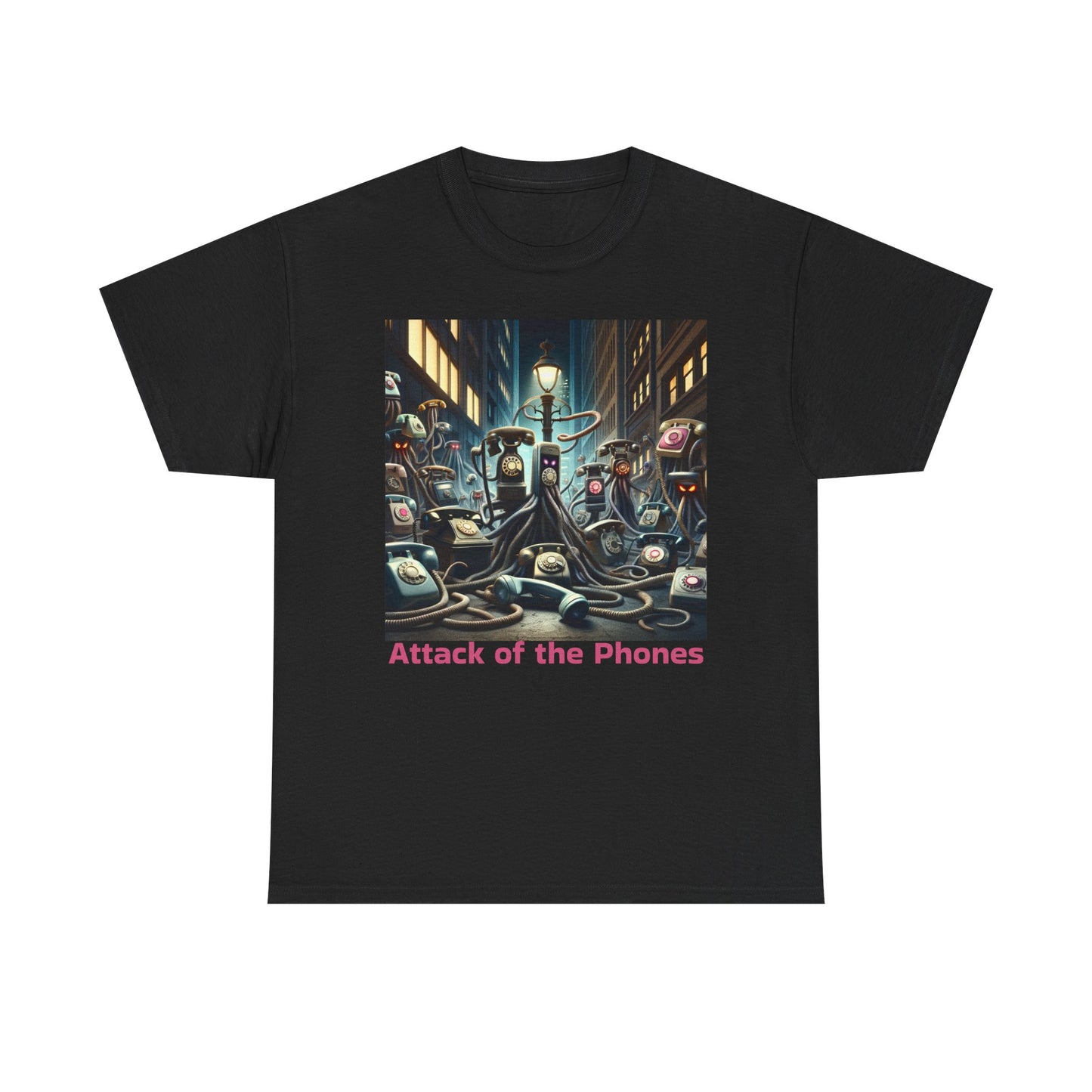 Retro Graphic Tee, Attack of the Phones Unisex Cotton Shirt, Casual Gift, Streetwear, Tech Humor Tee, Geeky Outfit