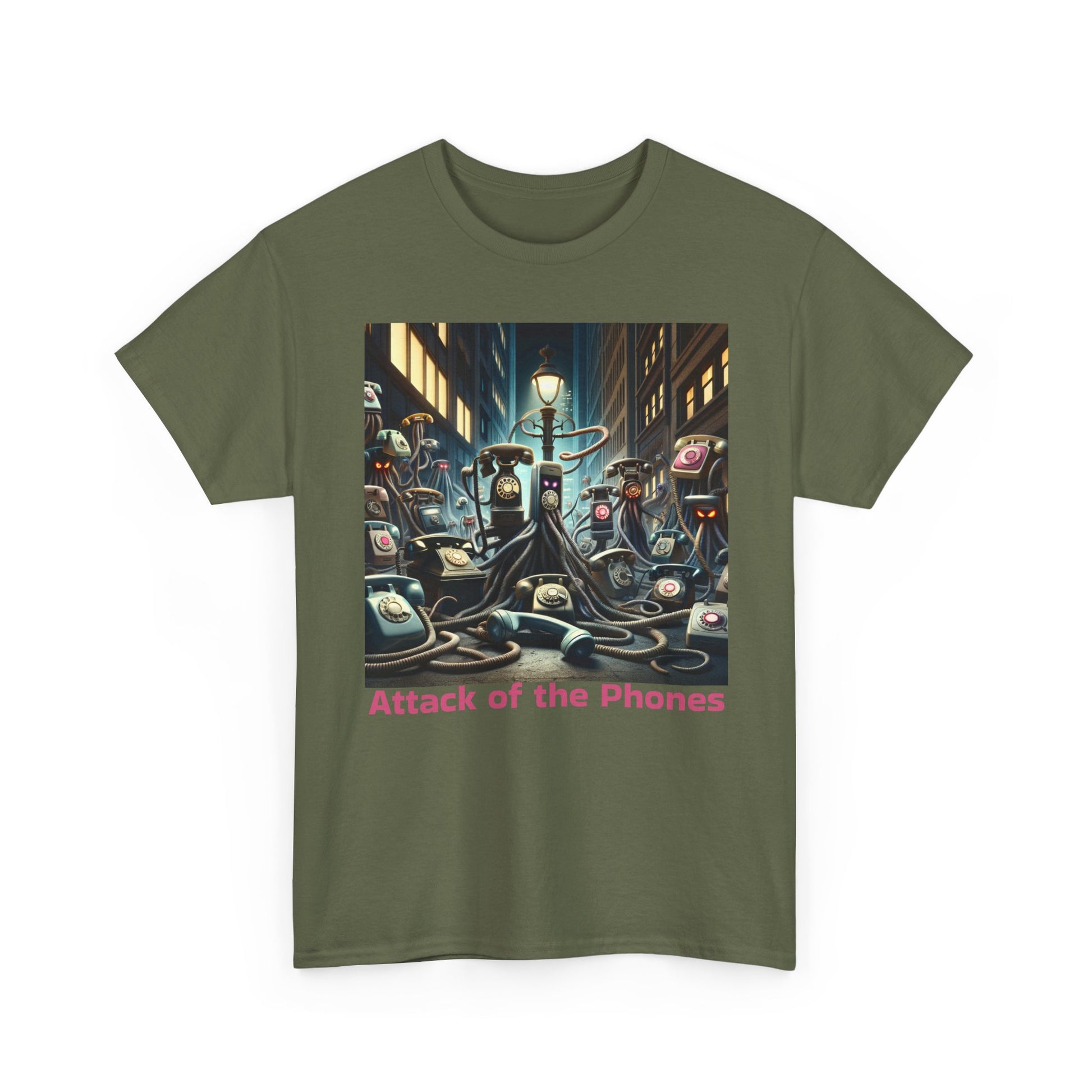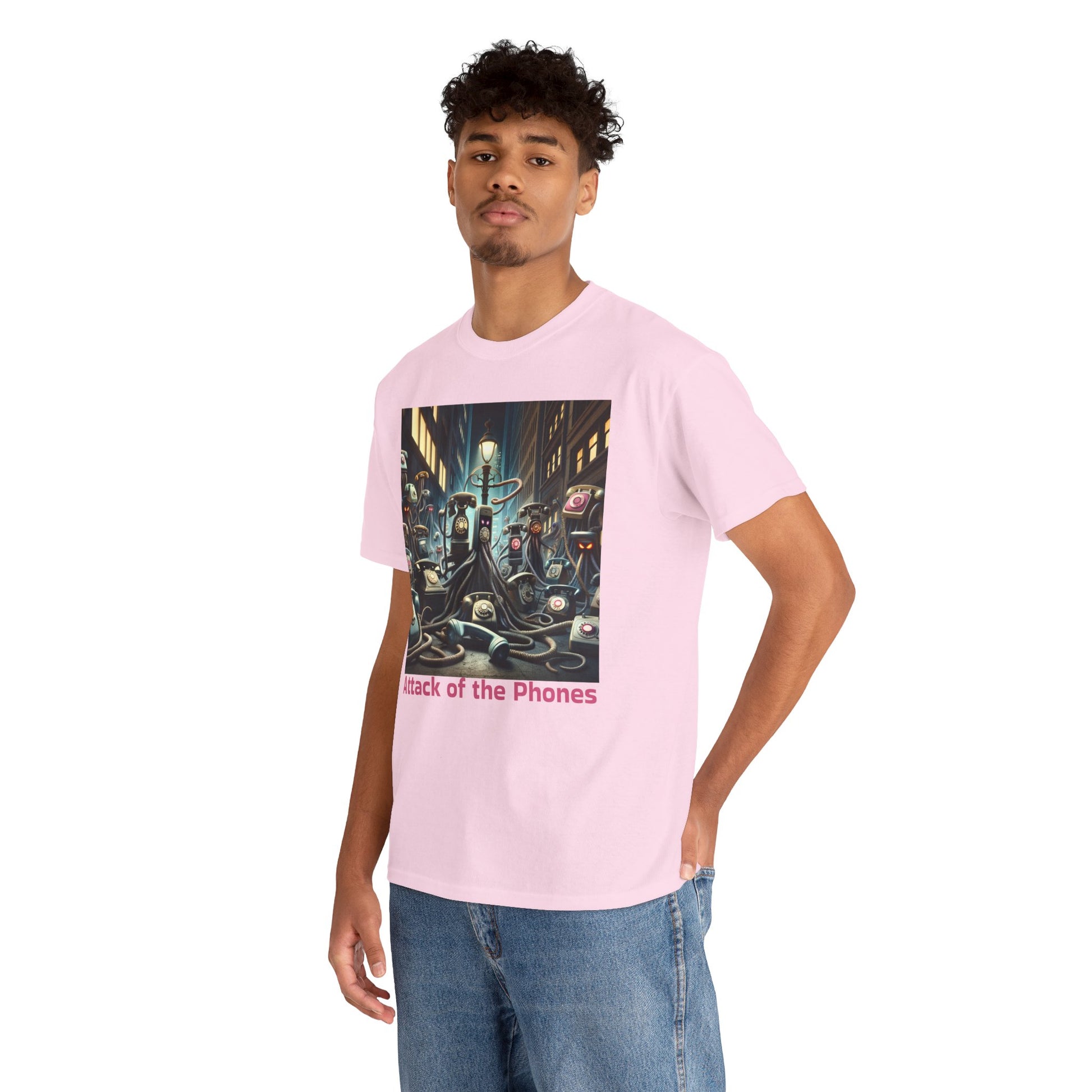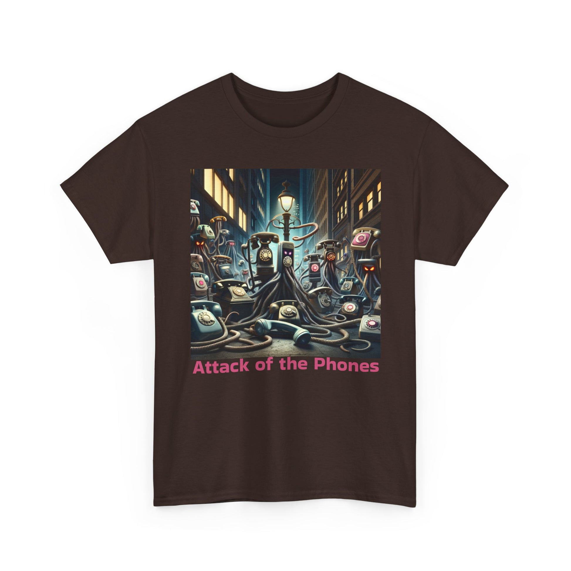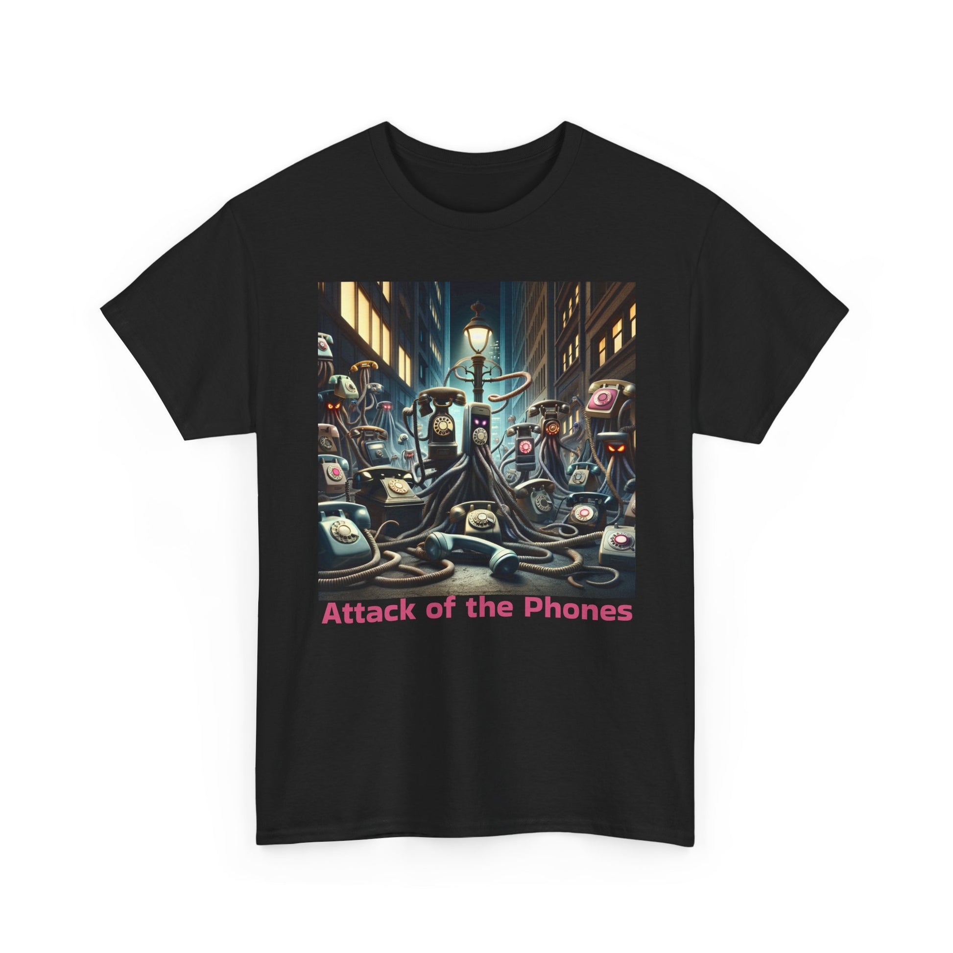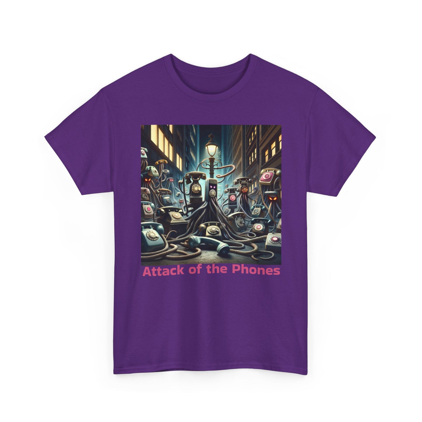 Retro Graphic Tee, Attack of the Phones Unisex Cotton Shirt, Casual Gift, Streetwear, Tech Humor Tee, Geeky Outfit