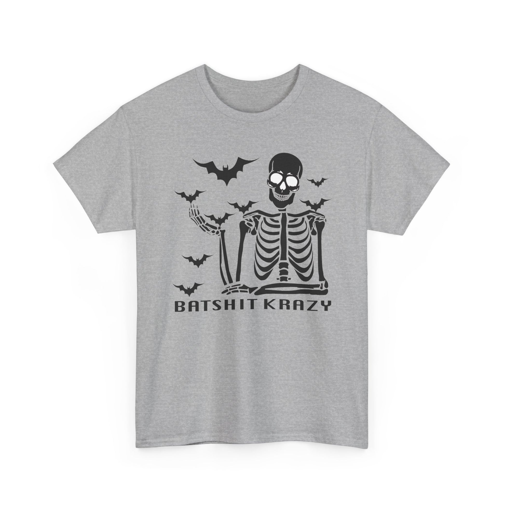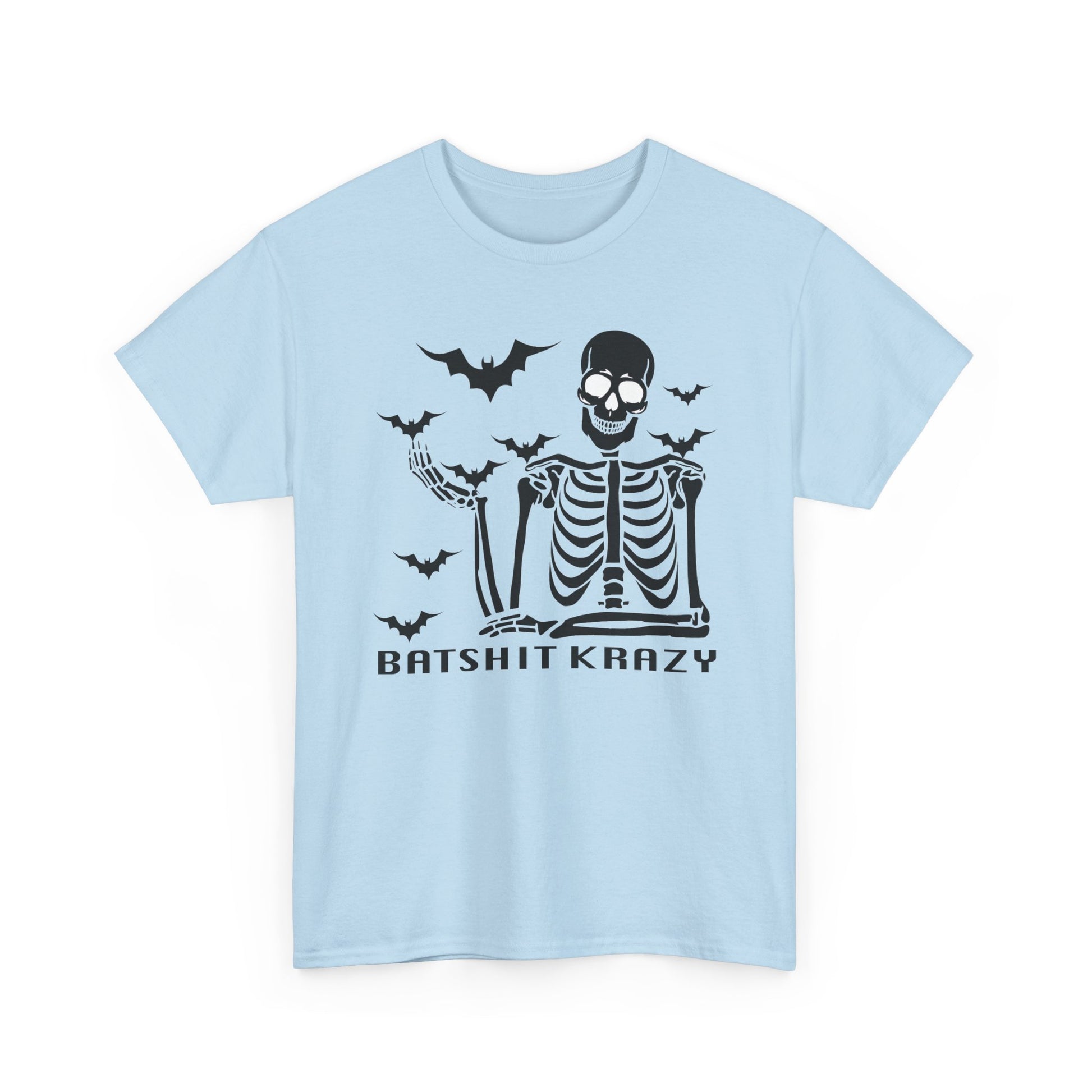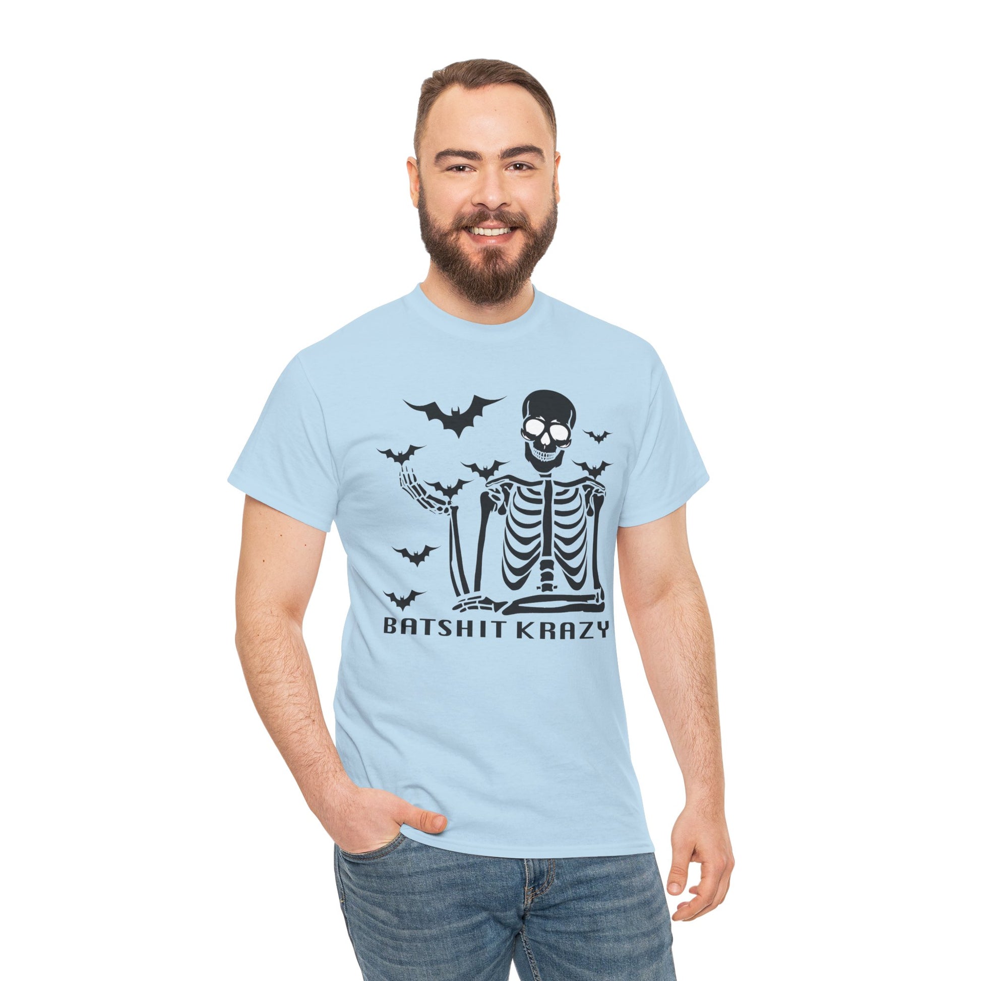 This Unisex Heavy Cotton Tee is perfect for those who love to express their unique style with a touch of humor. Featuring a playful design, it brings a fun and spirited vibe to any casual outfit. Made for comfort and durability, this tee is ideal for everyday wear, making it a staple in your wardrobe. It's great for a laid-back day at home, a night out with friends, or festive gatherings during Halloween and other playful celebrations. Each shirt is designed for adults and is perfect for gifting to friends or family members who appreciate a little eccentricity in their fashion. Whether you’re enjoying a relaxed weekend or joining in on spooky festivities, this tee never fails to bring a smile and a great laugh! Batshit Krazy Skeleton Tee | Unisex Halloween Shirt, Spooky Graphic Tee, Fun Gift for Halloween, October Party, Casual Wear