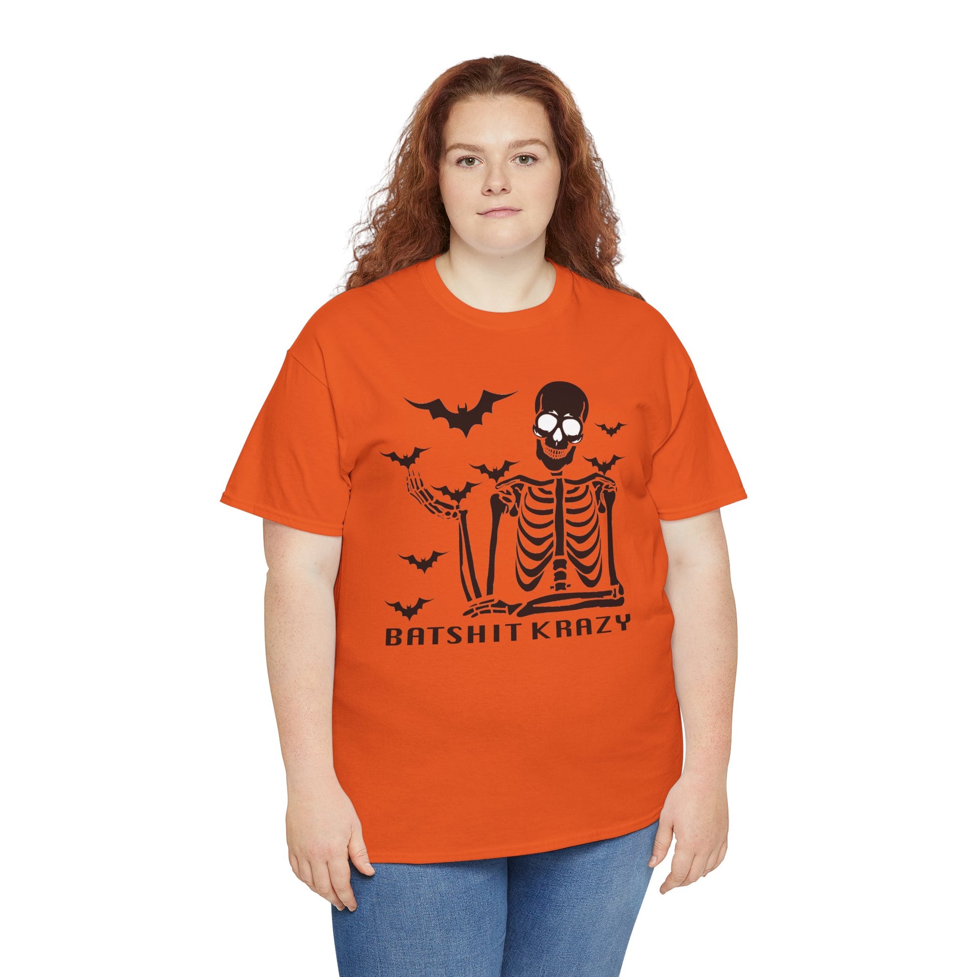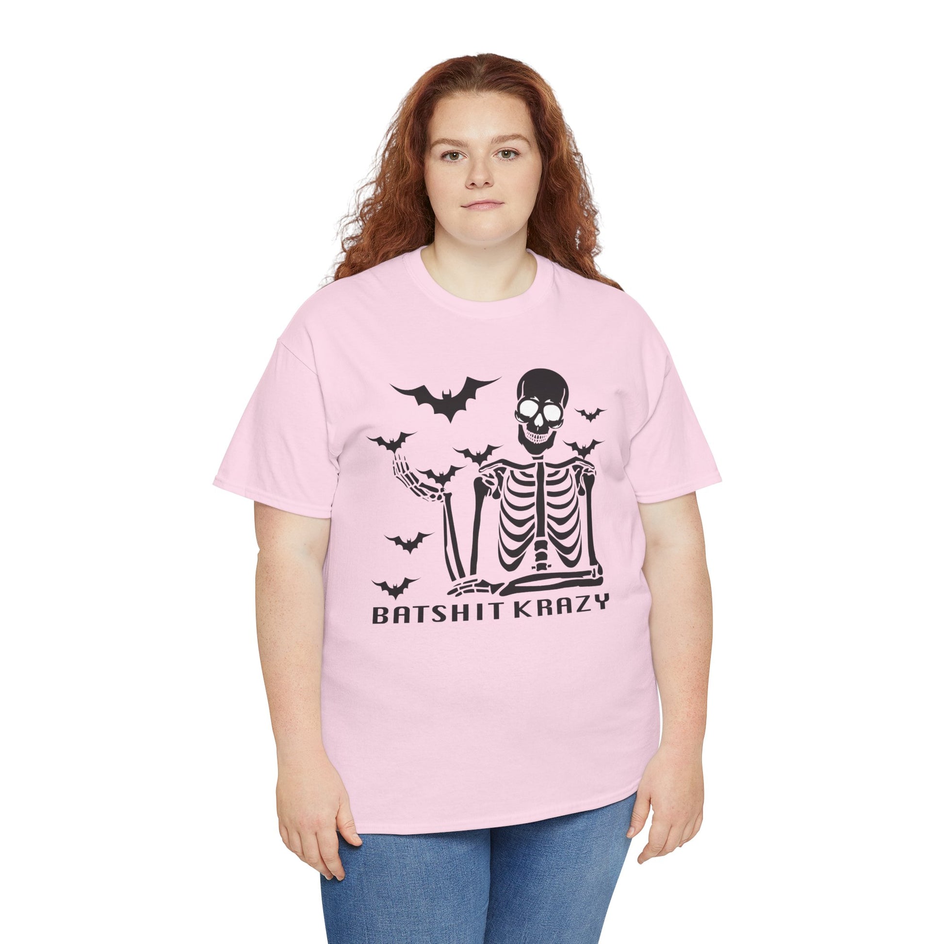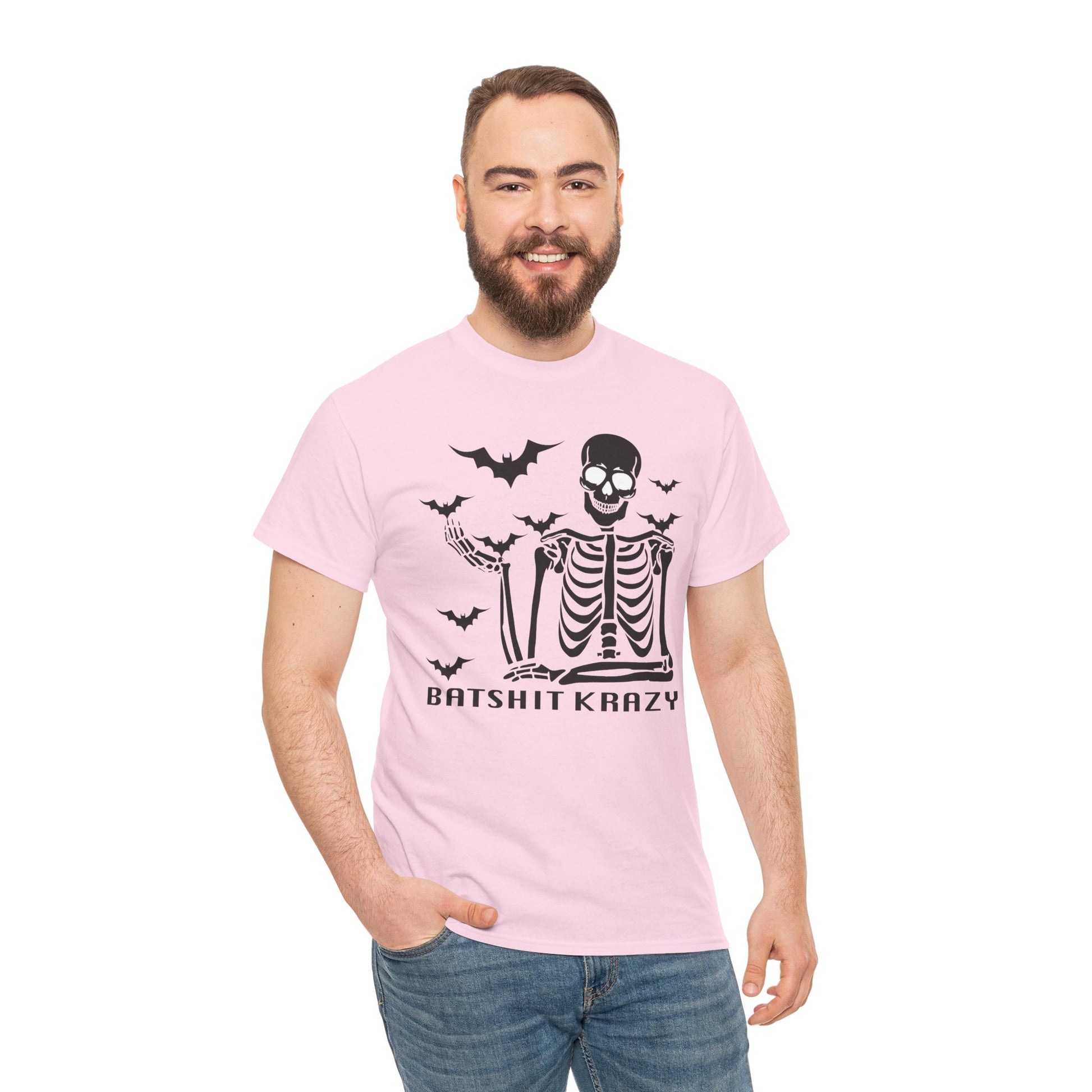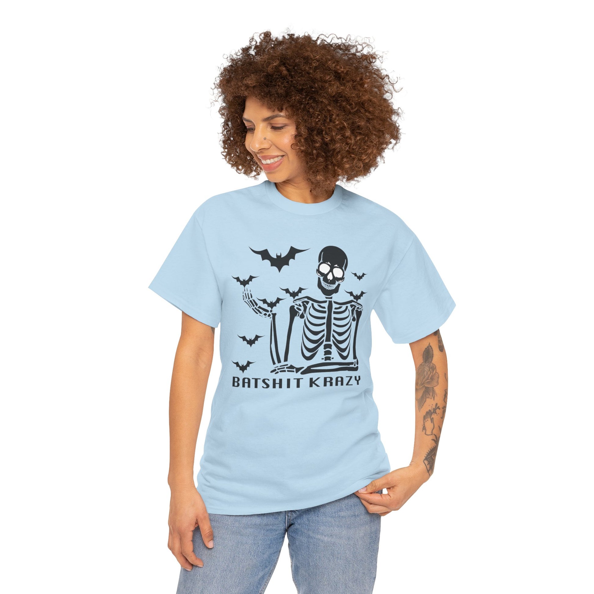 This Unisex Heavy Cotton Tee is perfect for those who love to express their unique style with a touch of humor. Featuring a playful design, it brings a fun and spirited vibe to any casual outfit. Made for comfort and durability, this tee is ideal for everyday wear, making it a staple in your wardrobe. It's great for a laid-back day at home, a night out with friends, or festive gatherings during Halloween and other playful celebrations. Each shirt is designed for adults and is perfect for gifting to friends or family members who appreciate a little eccentricity in their fashion. Whether you’re enjoying a relaxed weekend or joining in on spooky festivities, this tee never fails to bring a smile and a great laugh! Batshit Krazy Skeleton Tee | Unisex Halloween Shirt, Spooky Graphic Tee, Fun Gift for Halloween, October Party, Casual Wear