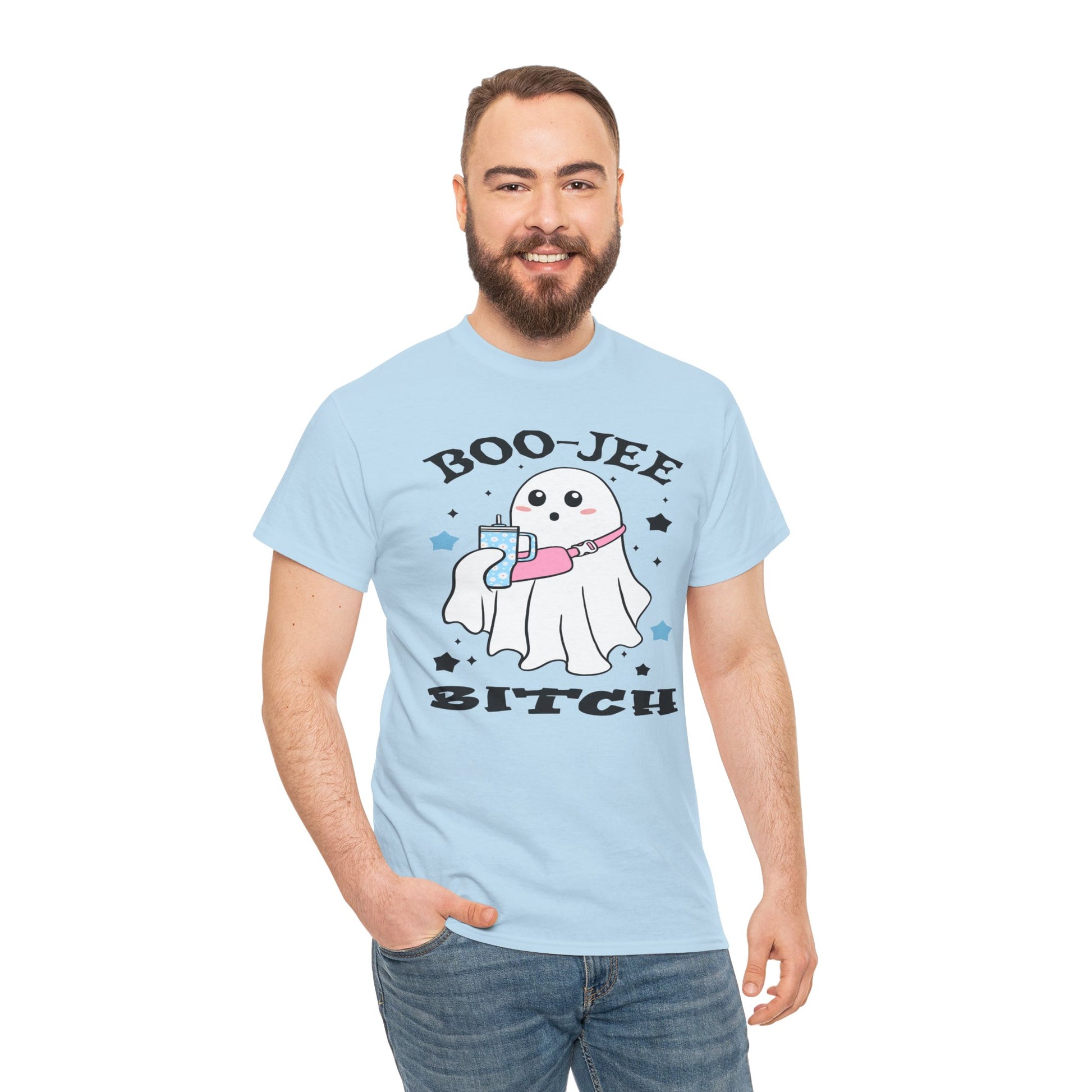 This Unisex Heavy Cotton Tee is the perfect blend of comfort and playful style, embodying a fun and quirky vibe. The charming ghost design with the playful phrase adds a touch of humor, making it an excellent choice for Halloween parties or casual get-togethers. It's a versatile piece that fits seamlessly into any wardrobe, perfect for everyday wear or themed celebrations. Ideal for fans of unique graphic tees, this shirt caters to adults who appreciate a good laugh while staying stylish. It’s great for gifting during Halloween, or just to brighten someone’s day throughout the year! Boo-Jee Ghost T-Shirt, Fun Halloween Tee, Unisex Tees, Spooky Apparel, Cute Ghost Shirt, Halloween Costume, Casual Wear