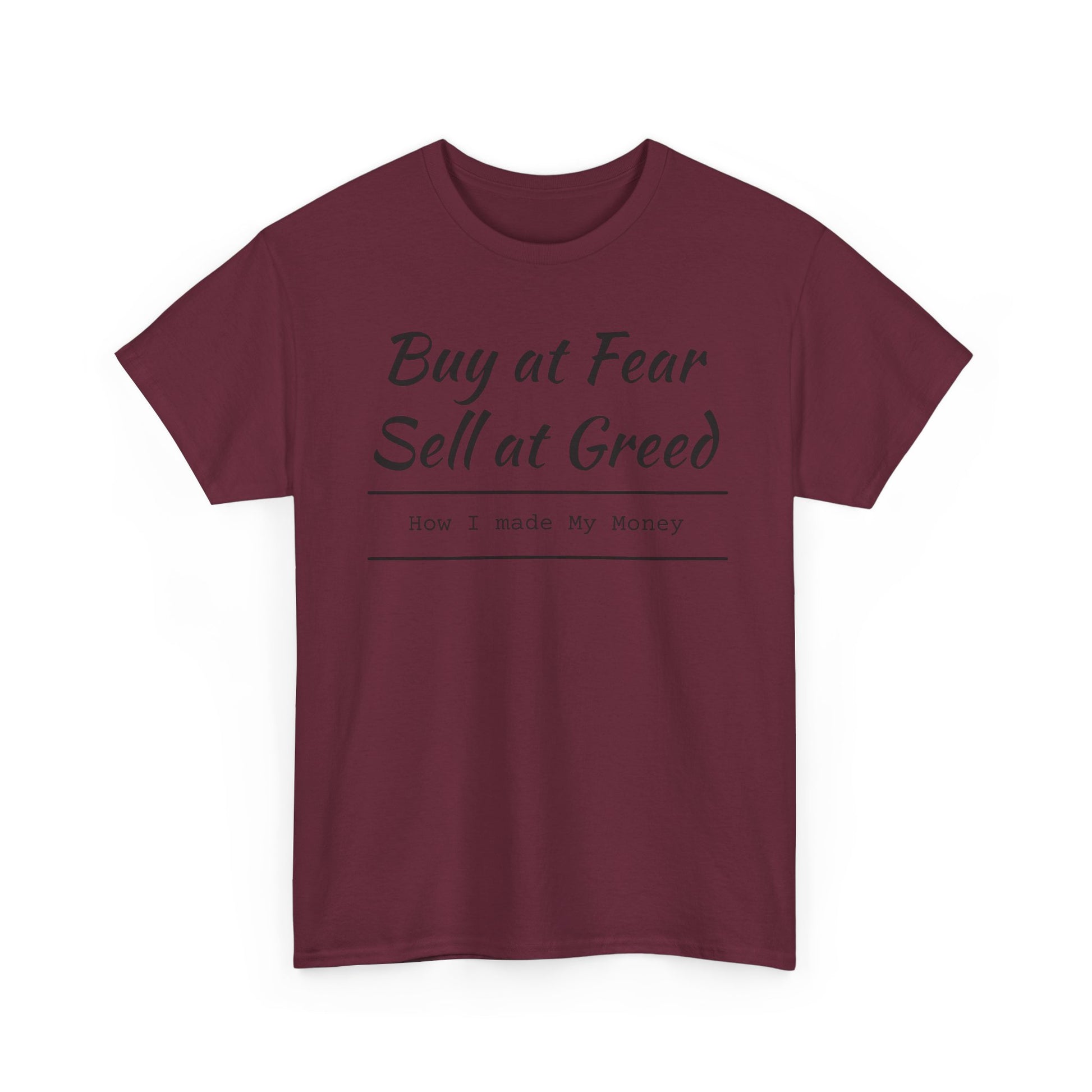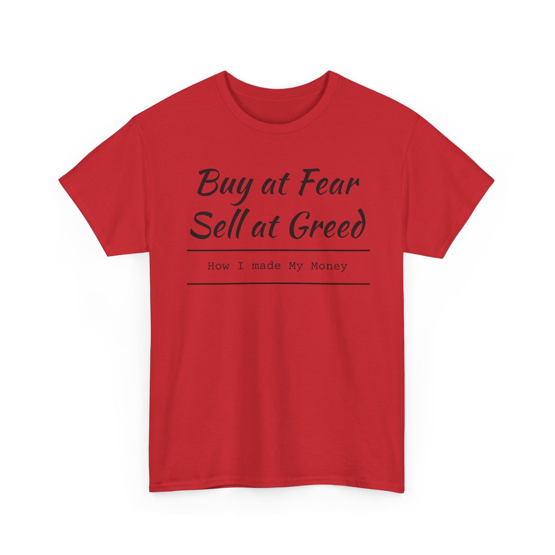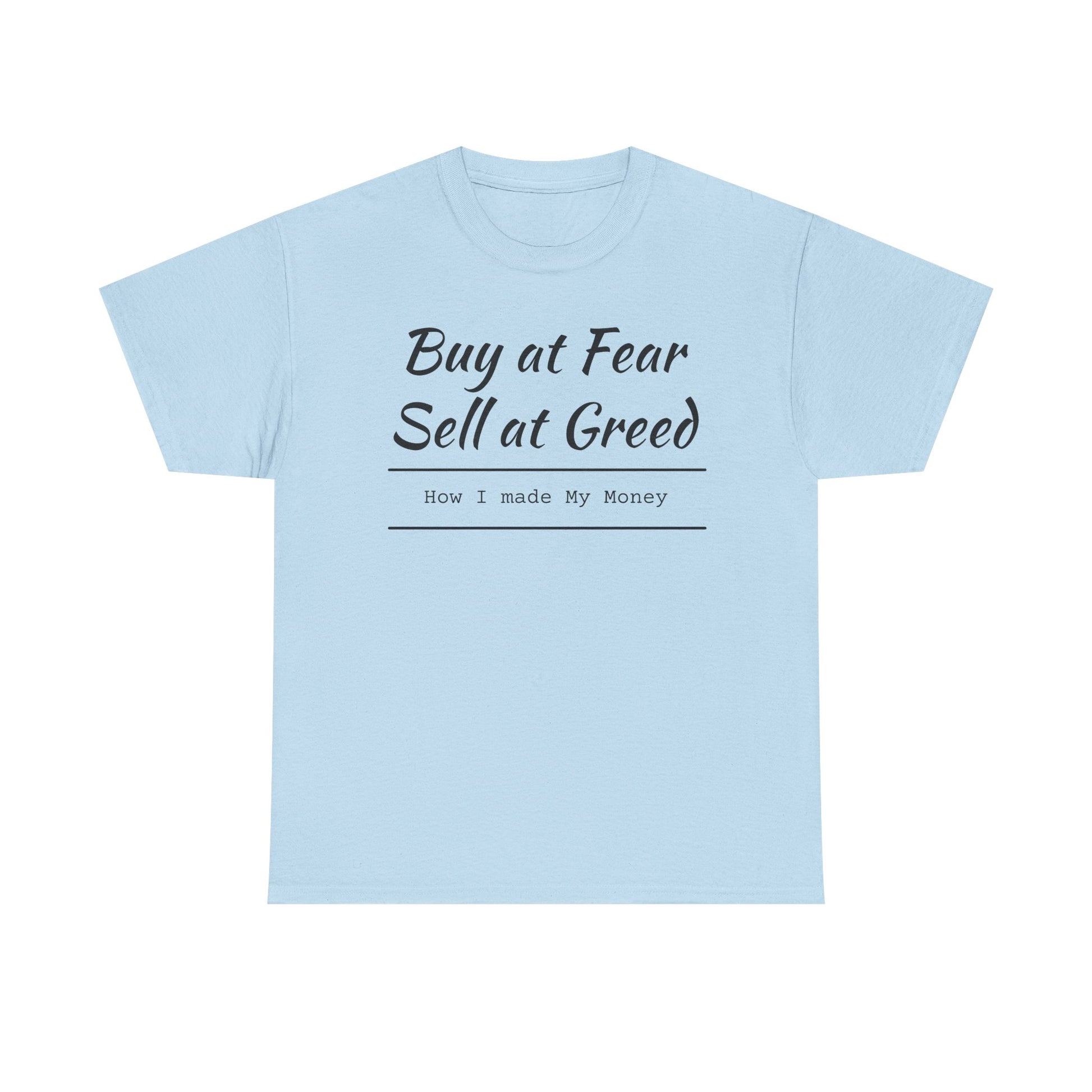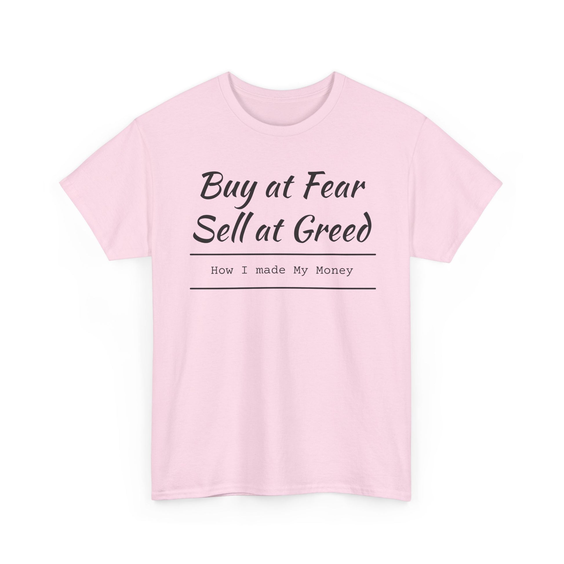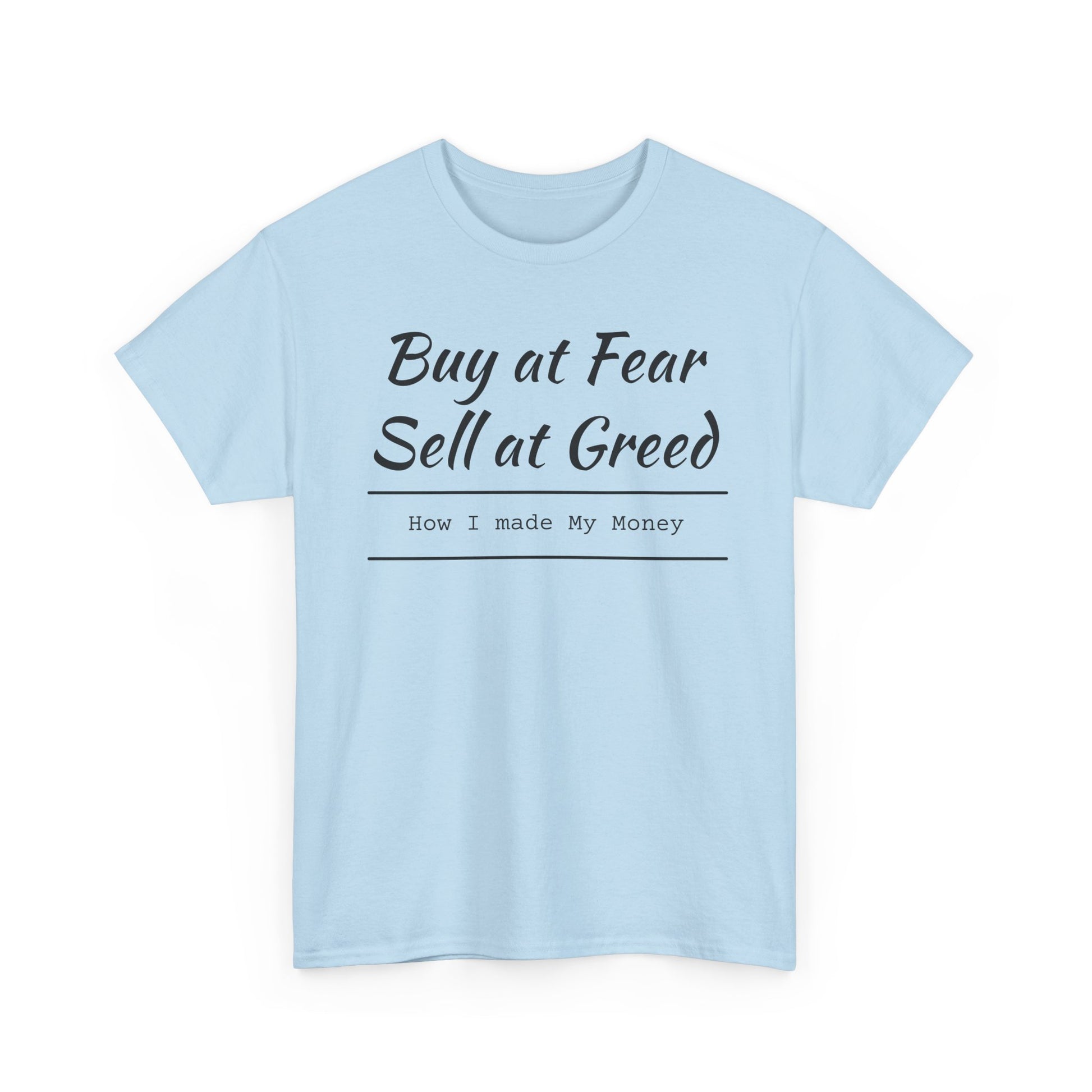 Elevate your casual wardrobe with this Unisex Heavy Cotton Tee, a perfect blend of comfort and style. The soft, strong fabric feels great against the skin, making it an ideal choice for everyday wear or when you want to make a statement. With its classic fit and timeless crew neckline, this tee fits seamlessly into various occasions—from laid-back family gatherings to weekend outings with friends. It’s a versatile piece that appeals to all genders, making it a fantastic gift for anyone who appreciates comfort and a touch of humor in their attire. Whether it's for birthdays, casual celebrations, or simply treating yourself, this tee adds a fun twist to any outfit, perfect for those who love financial empowerment themes. Show off your personality and spark conversations with this unique design that encourages a confident approach to life and money. Market Wisdom Tee, Funny Investment Shirt, Buy at Fear Sell at Greed, Stock Market Humor, Unisex Graphic Tee, Investor Gift