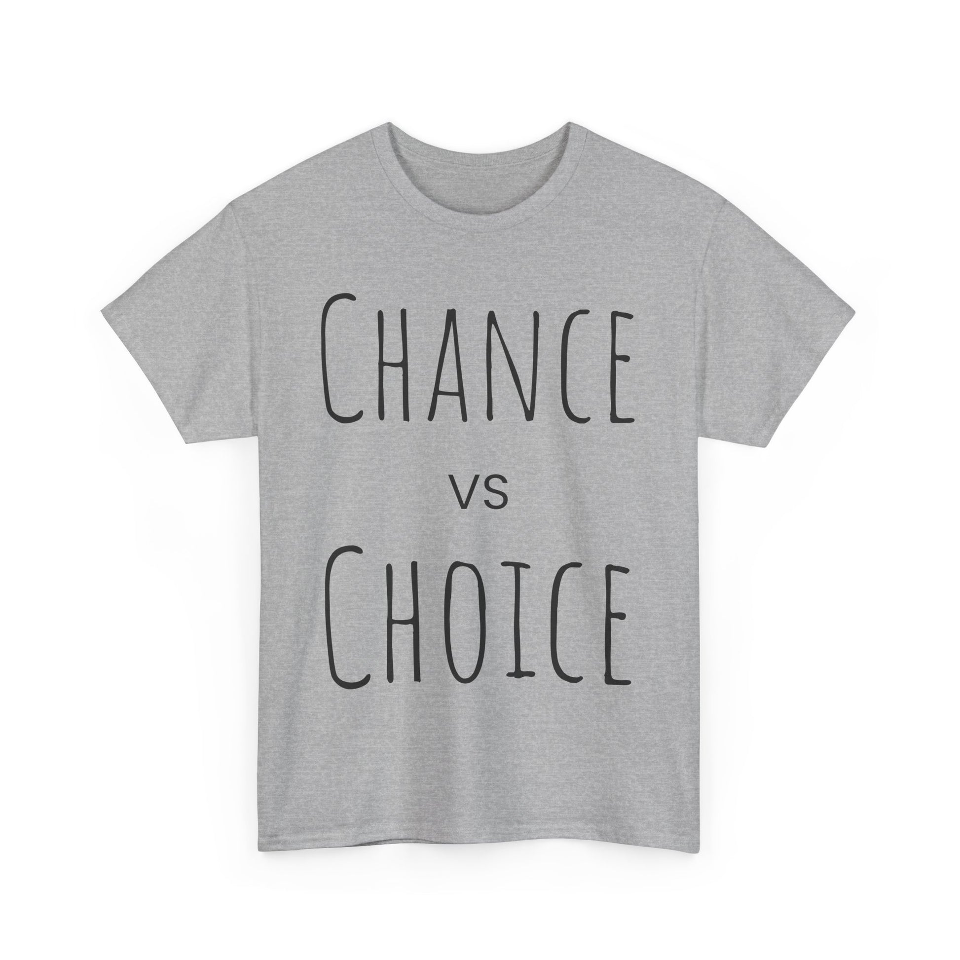 Targeted at fashion-savvy adults, this tee is ideal for those who appreciate quality and sustainability. Perfect for gifting during celebrations, holidays, or as a thoughtful gesture for birthdays or special occasions, it's a reminder of the balance between chance and choice. Made from 100% ethically grown cotton, it's not just a fashion choice; it's a commitment to responsible living. Chance vs Choice Unisex Heavy Cotton Tee, Thought-Provoking Shirt, Gift for Graduates, Inspirational Apparel, Motivational Tee