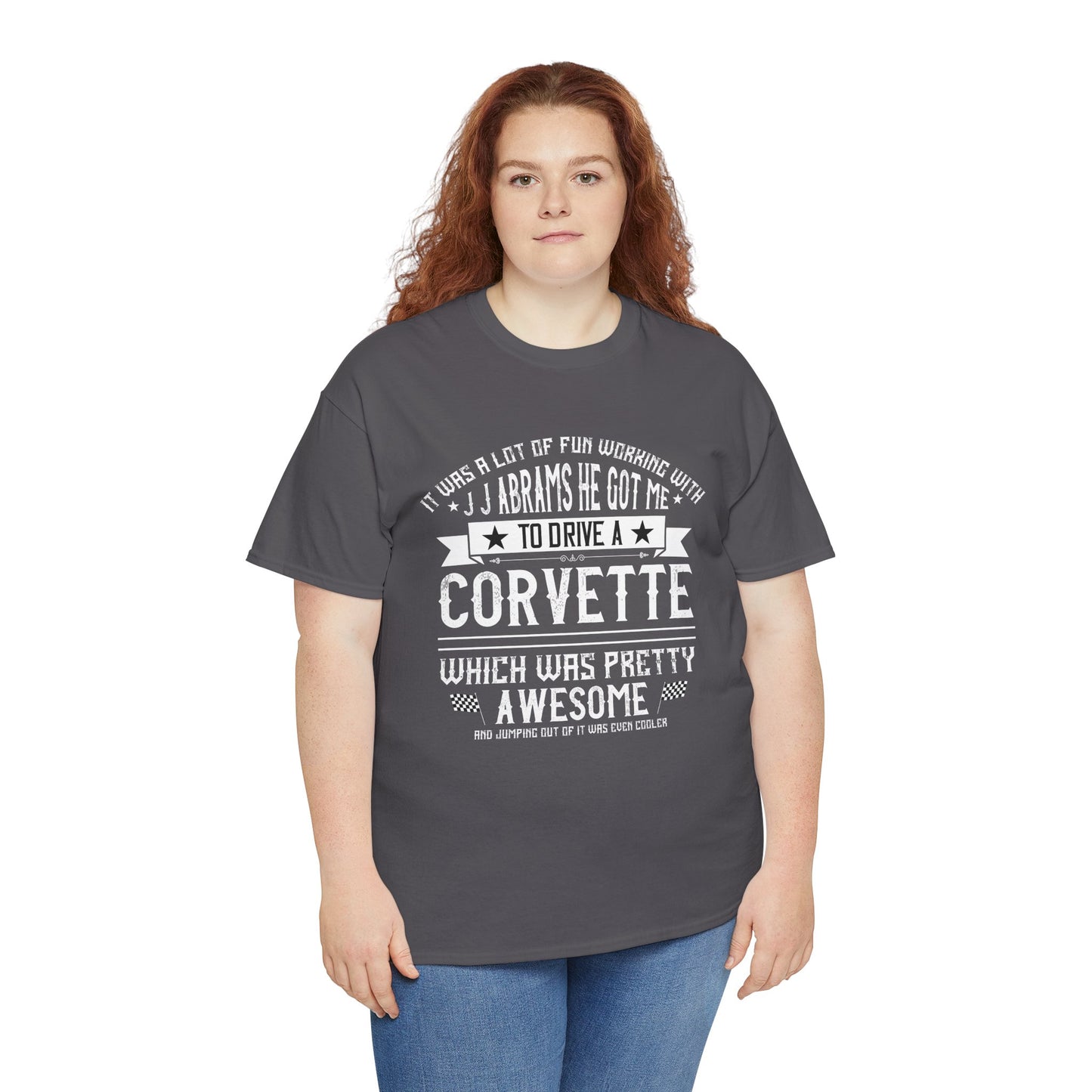 Introducing a stylish Unisex Heavy Cotton Tee that seamlessly combines comfort and durability. This tee is perfect for those who appreciate quality and a classic fit. With its crisp, eye-catching design, it brings a sense of fun and nostalgia, making it an ideal choice for casual outings or relaxed gatherings with friends. This shirt is suitable for adults who want to express their personality while staying comfortable and fashionable. Celebrate special occasions like birthdays, movie nights, or casual get-togethers with this versatile tee. Whether you're gifting it or wearing it yourself, it's sure to become a favorite in any wardrobe. Cool Corvette Themed Unisex Tee, Perfect Gift for Car Lovers, Movie Buffs, Birthday, Father’s Day, Casual Style