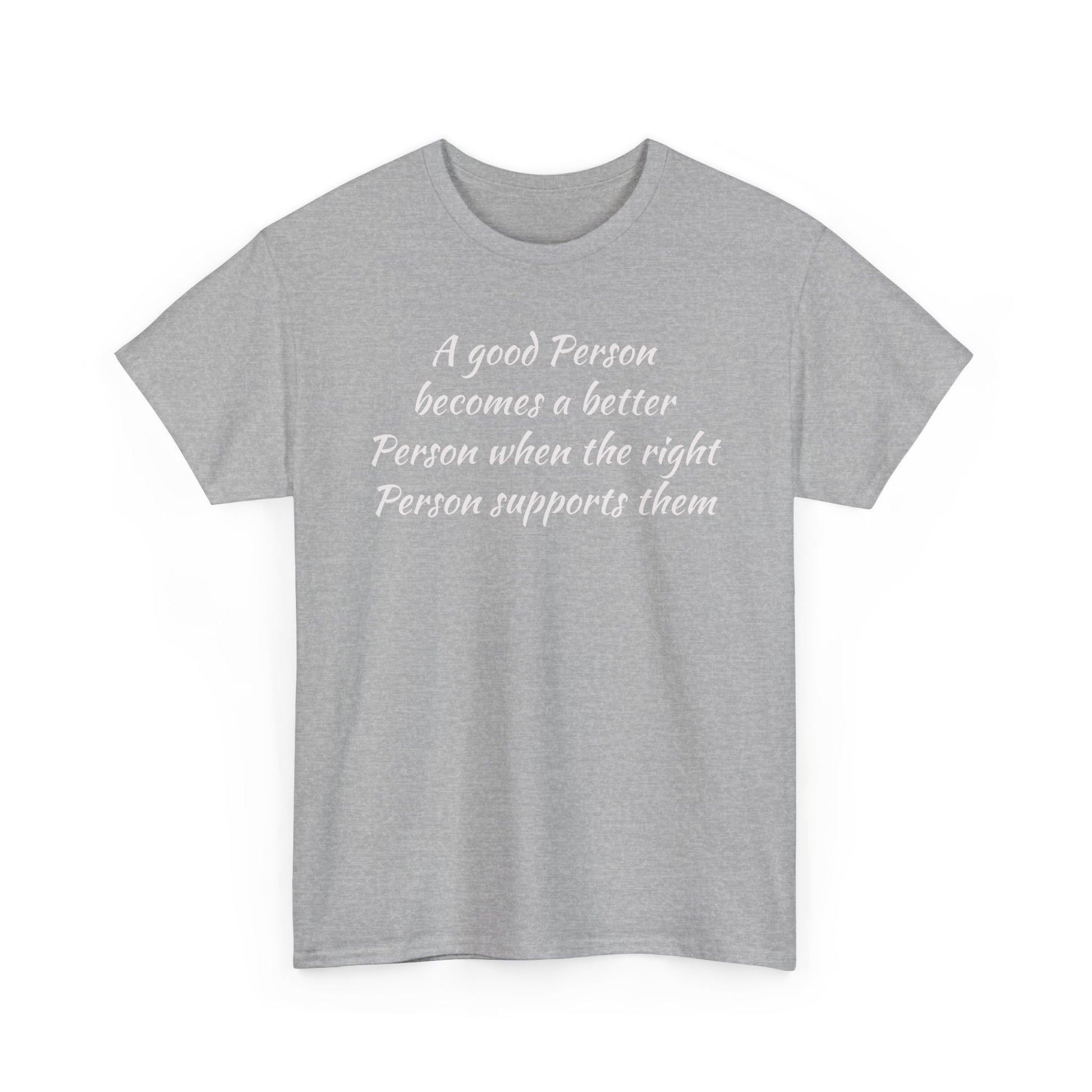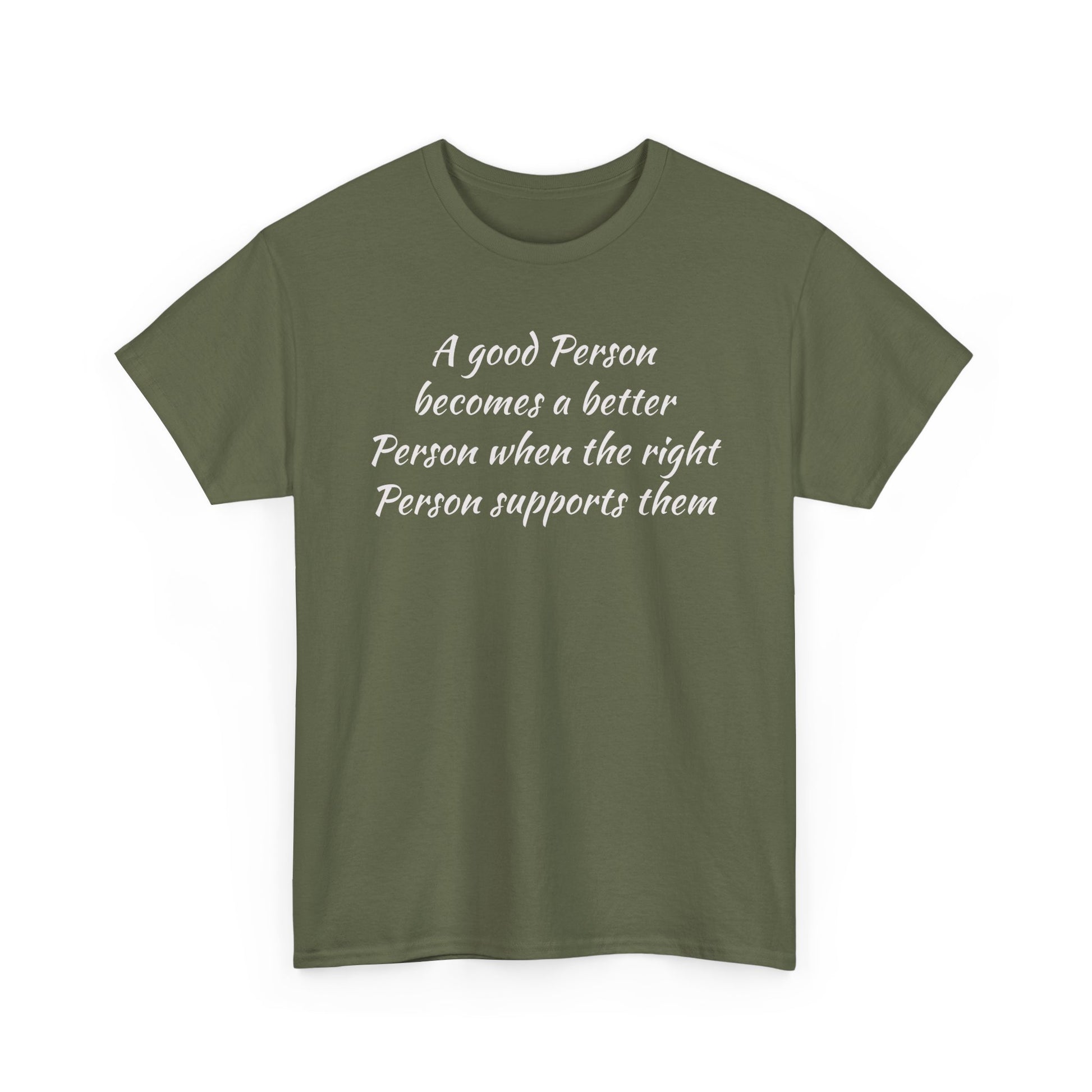 Introducing our Unisex Heavy Cotton Tee, crafted for comfort and style. This tee features an inspiring quote that encourages connection and support, ideal for those who value positivity in their lives. The relaxed fit and classic crew neckline make it perfect for everyday wear, whether you're lounging at home or out with friends. It’s the ideal gift for loved ones during holidays like birthdays, Christmas, or just to celebrate friendship. Made from high-quality materials, this shirt is not only soft but also durable, bringing a sense of casual elegance to any occasion. Every time you wear it, you’ll showcase your commitment to encouragement and unity, making it a wonderful addition to your wardrobe or a thoughtful present for someone special.