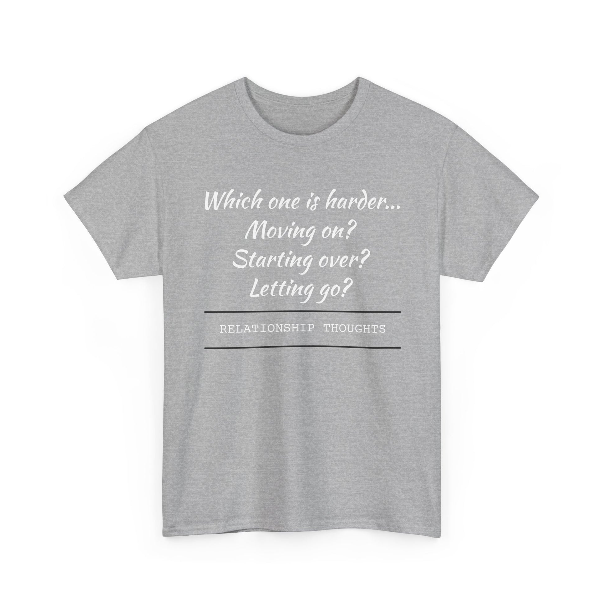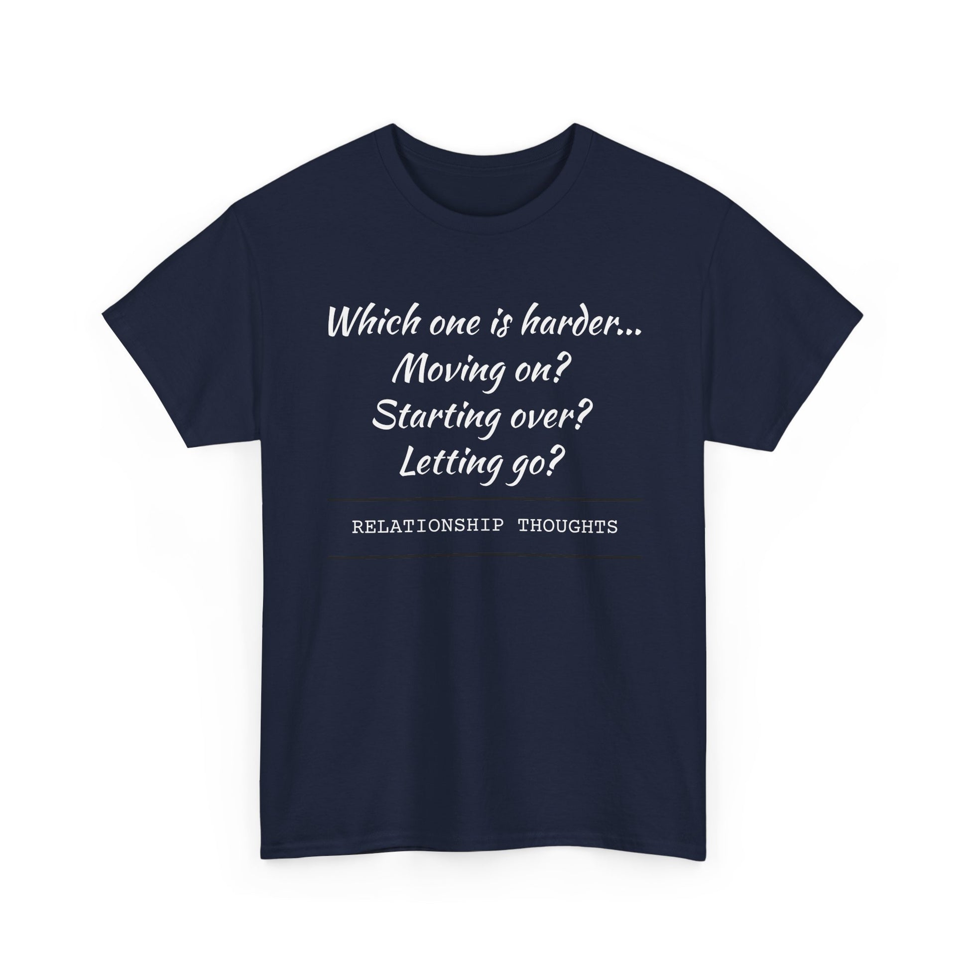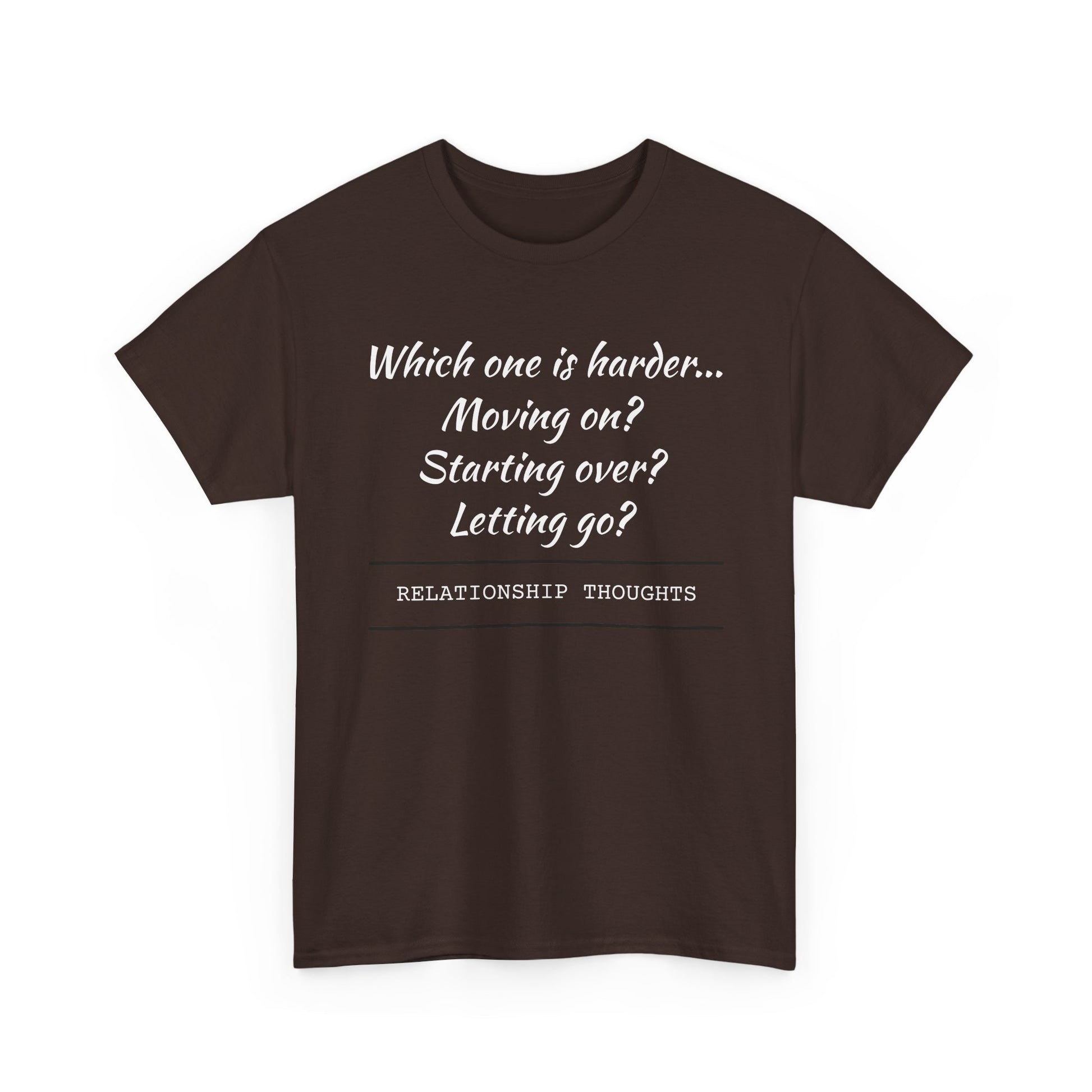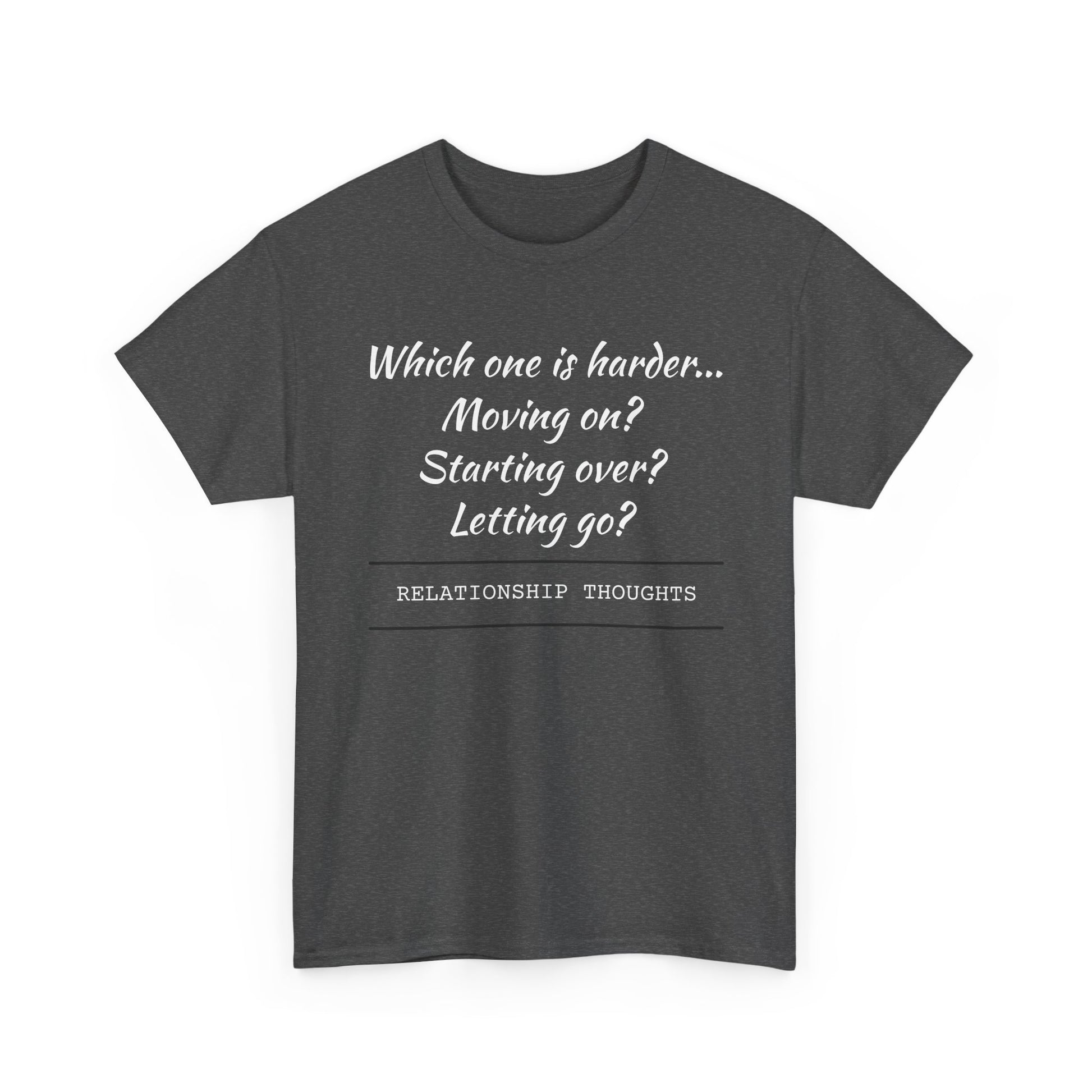 Relationship Thoughts Tee — “Which one is harder... Moving on? Starting over? Letting go?”