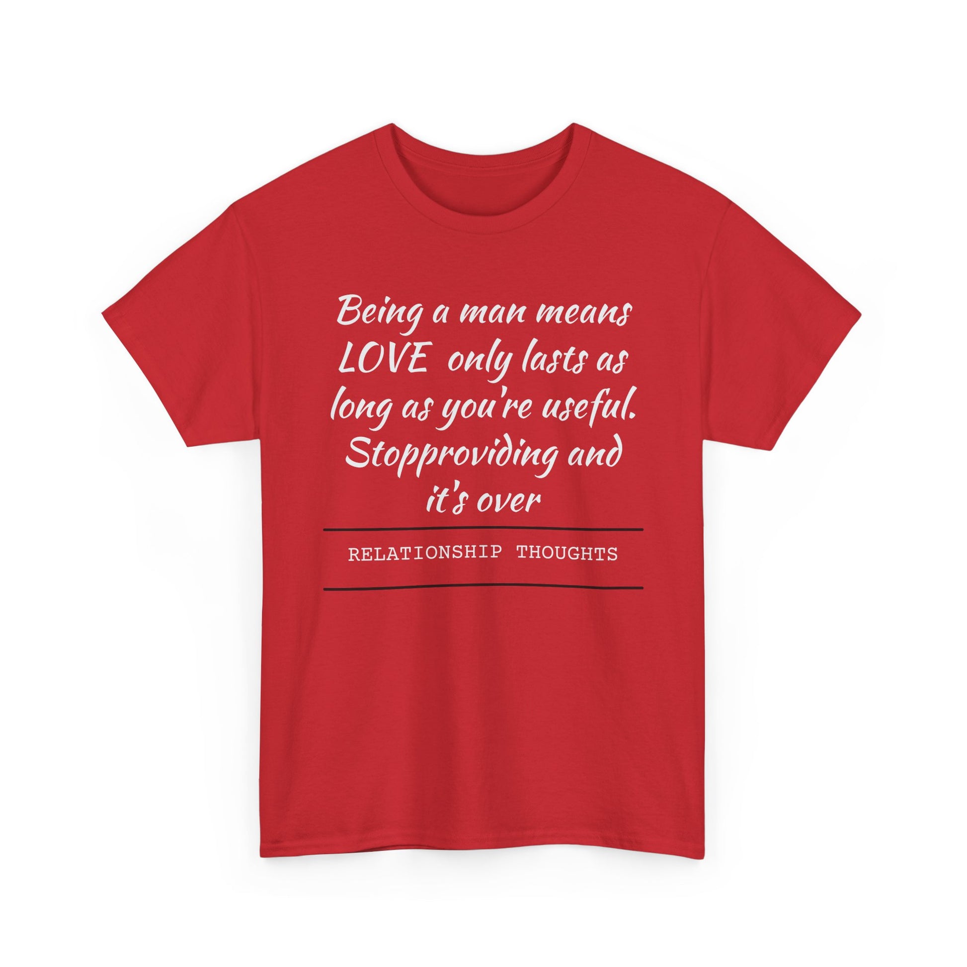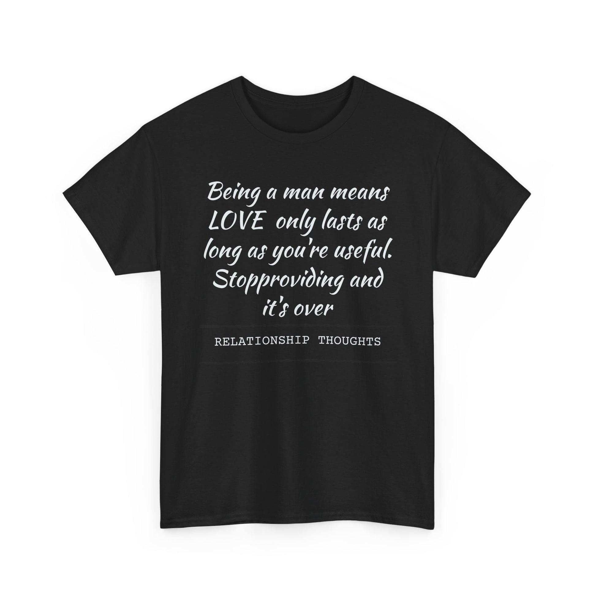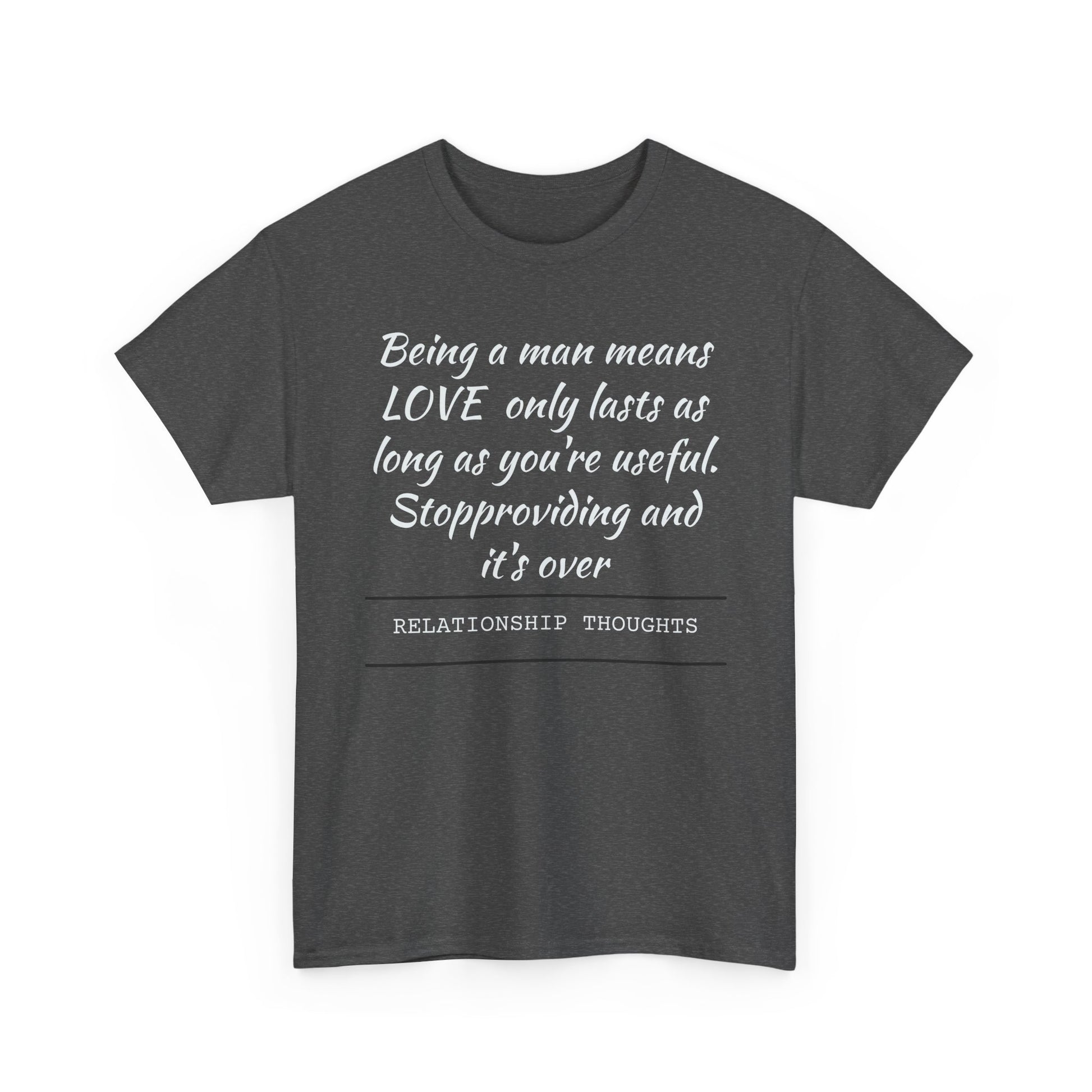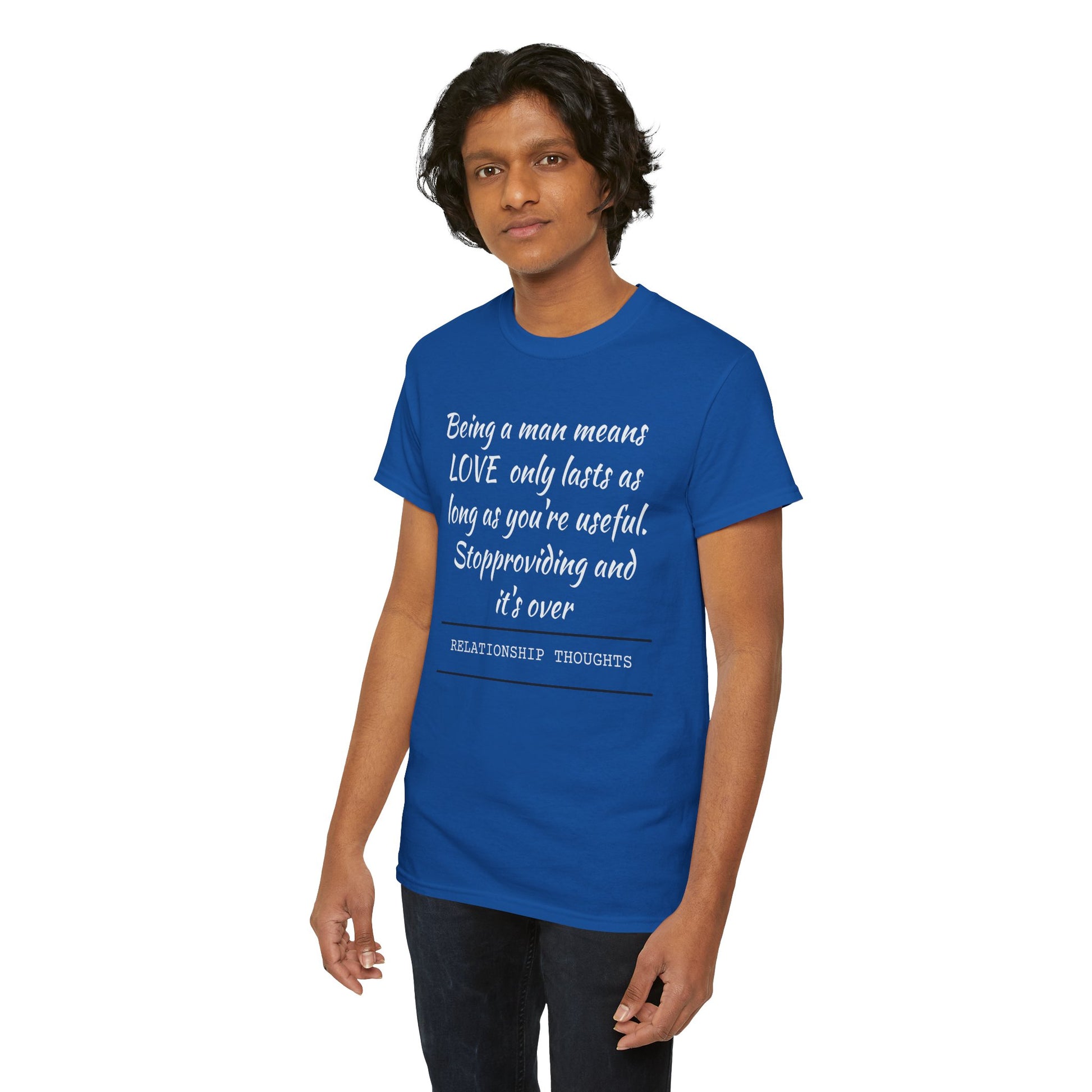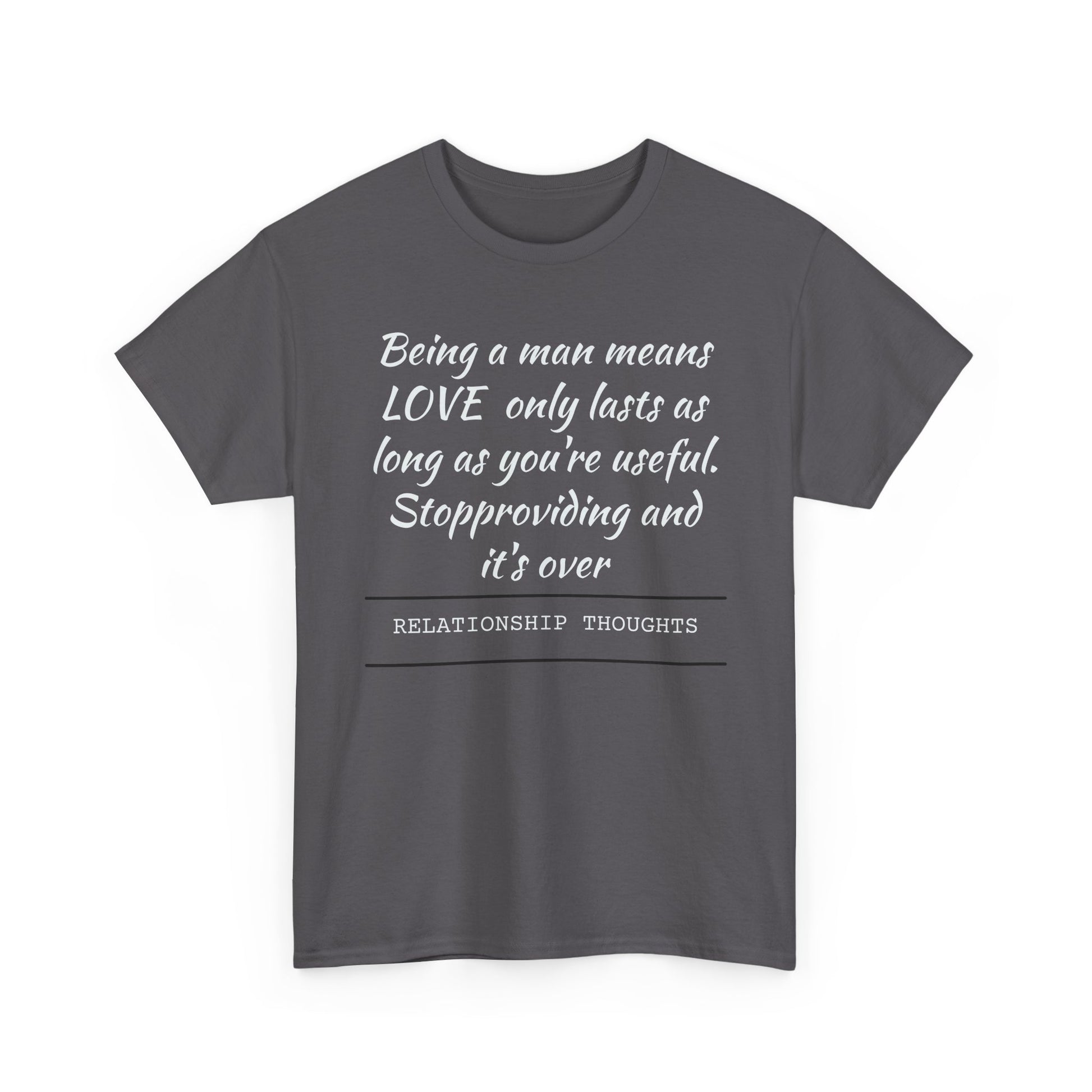 Introducing the perfect canvas for your thoughts and creativity: the Unisex Heavy Cotton Tee. This shirt offers a relaxed fit that is both comfortable and stylish, making it an ideal addition to any casual wardrobe. Whether you're lounging at home, meeting friends for coffee, or attending a casual gathering, this tee will keep you feeling comfortable while expressing yourself. It’s a great gift for friends who appreciate witty quotes, thoughtful messages, or simply enjoy unique apparel. Perfect for holidays like birthdays, or just because—it's a shirt that's relevant to anyone who values both style and substance. Wear it, gift it, or celebrate life's moments with a touch of humor and insight: this tee is sure to be a conversation starter! Thoughtful Quote Unisex Tee, Casual Comfort Tee, Relationship Wisdom Shirt, Gift for Him/Her, Everyday Wear, Unique Statement T-Shirt