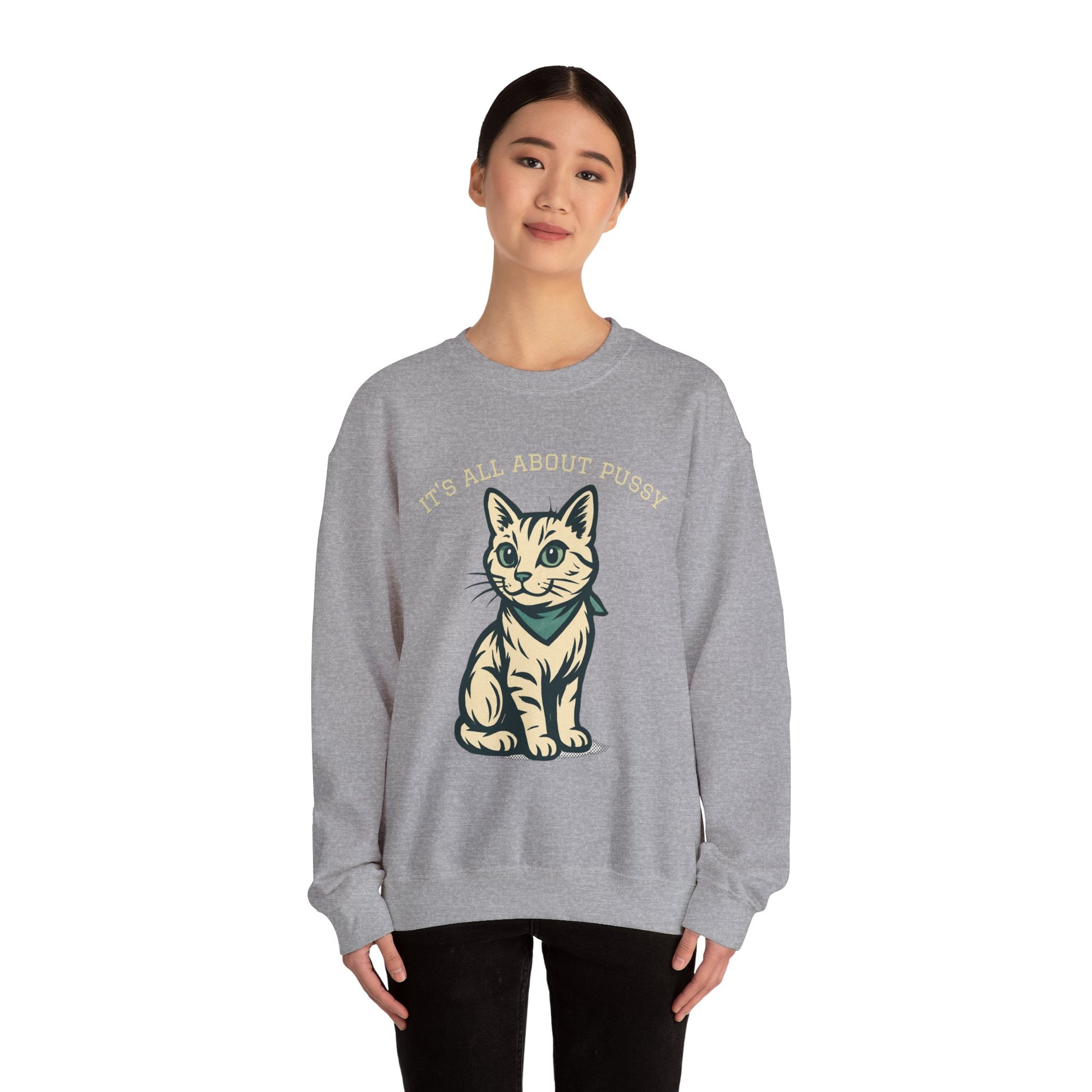 Soft, cozy, and quietly charming — this crewneck sweatshirt brings a gentle, illustrated kitten into everyday wear. The medium-heavy cotton-poly blend feels warm without weight, while the classic crew silhouette keeps the look clean and easy to layer. The embroidered-style print of a wide-eyed kitten wearing a little bandana adds a touch of whimsy that feels handmade and personal. Wear it on slow mornings with coffee, during evening walks, or when you want a familiar, comforting layer that nods to simple, pet-friendly style.
