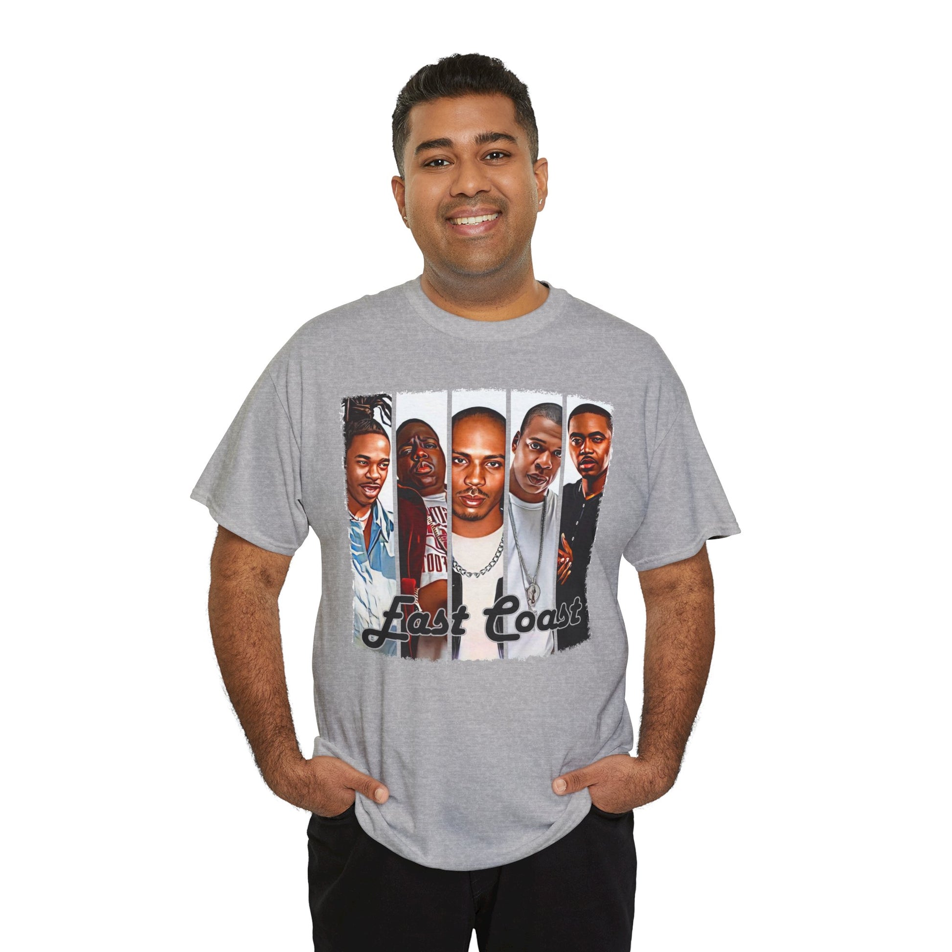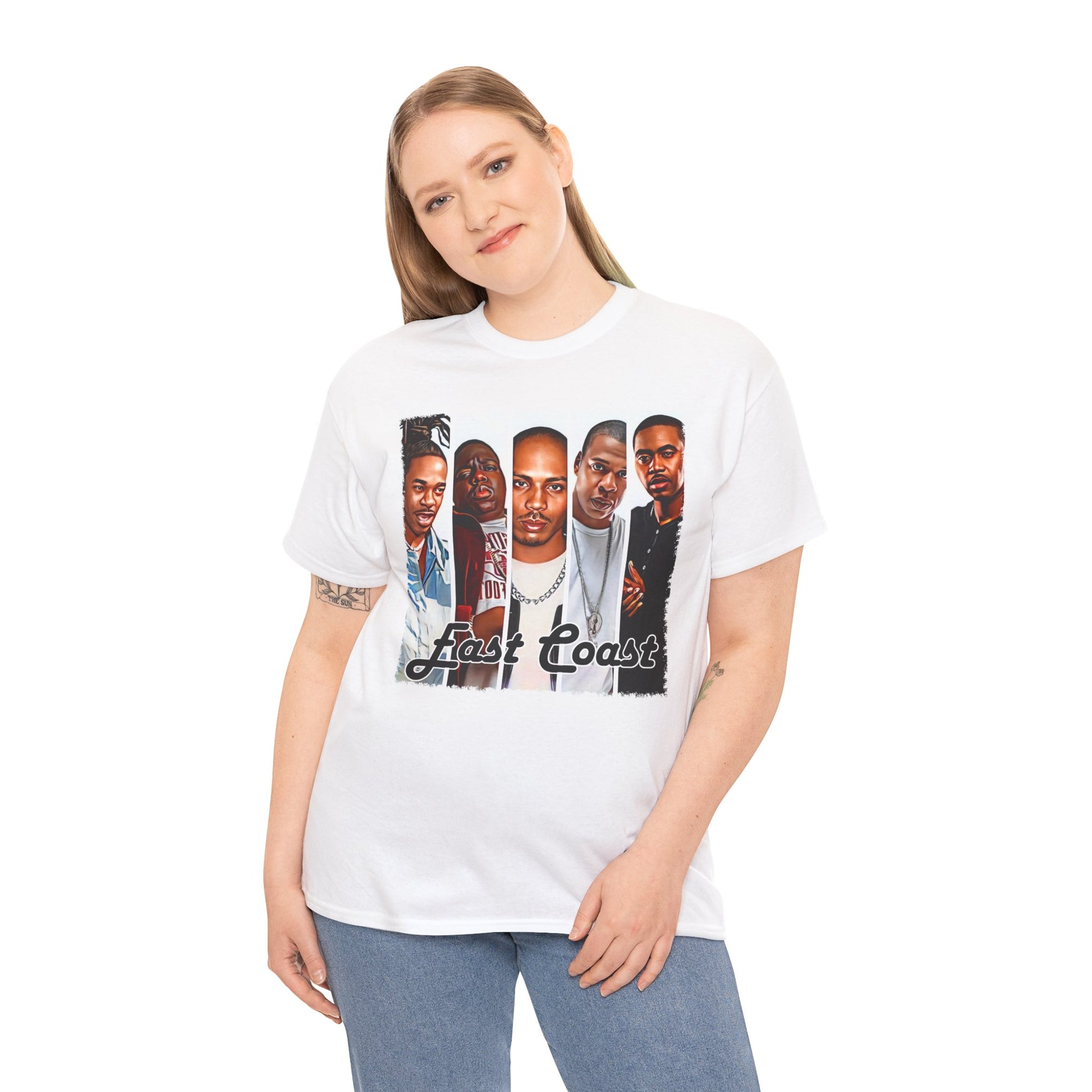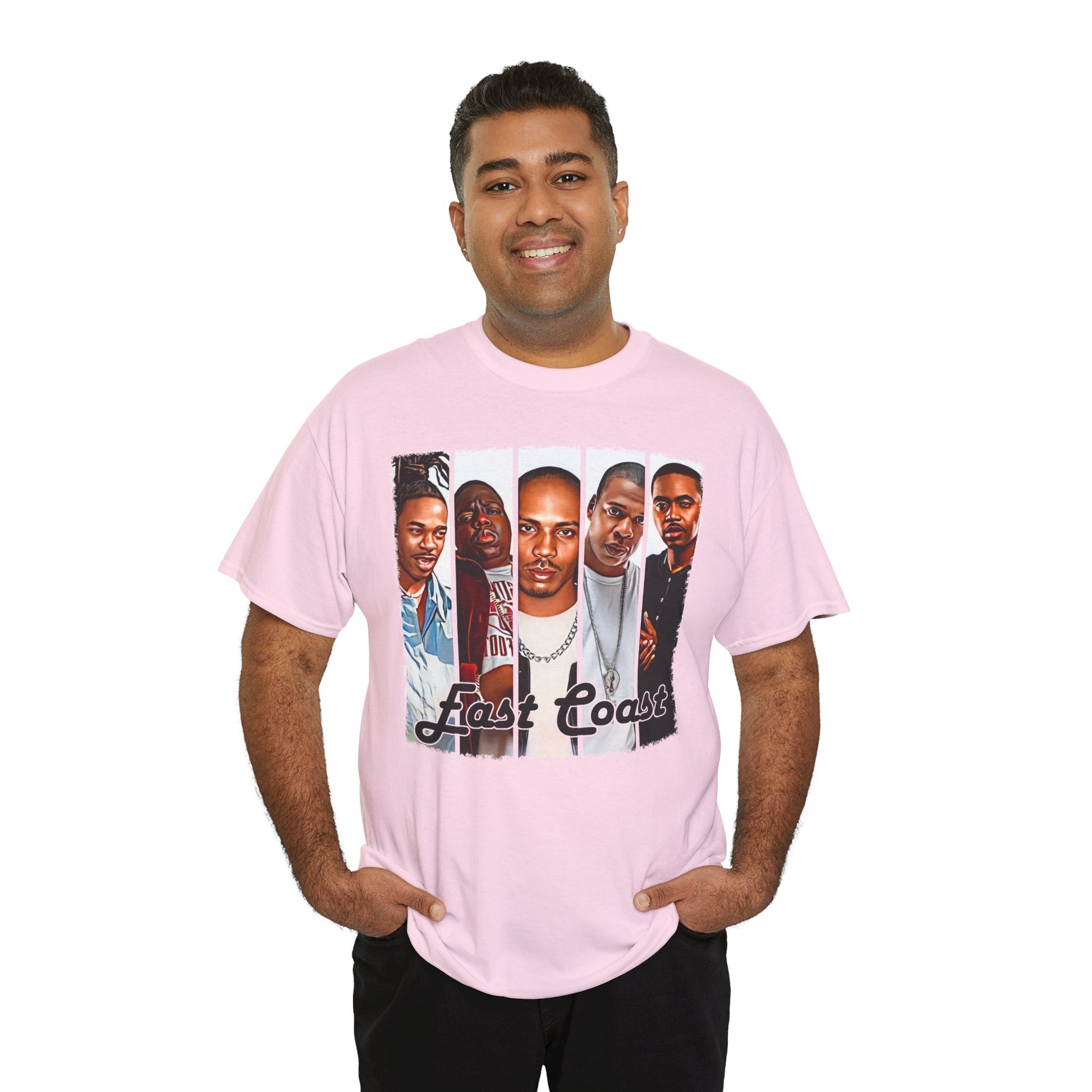 Introducing the ultimate Unisex Heavy Cotton Tee, a staple in any wardrobe that seamlessly blends comfort and style. This tee brings a relaxed vibe perfect for casual hangouts or festive occasions. Its classic fit and crew neckline ensure you look effortlessly chic, making it suitable for both laid-back days and semi-formal gatherings. Ideal for music lovers or anyone looking to express their unique style, this shirt is a great gift for birthdays or holidays. Dress it up or down, and easily layer with jackets for a complete look. Celebrate your individuality any time of the year! East Coast Hip-Hop Tribute Tee