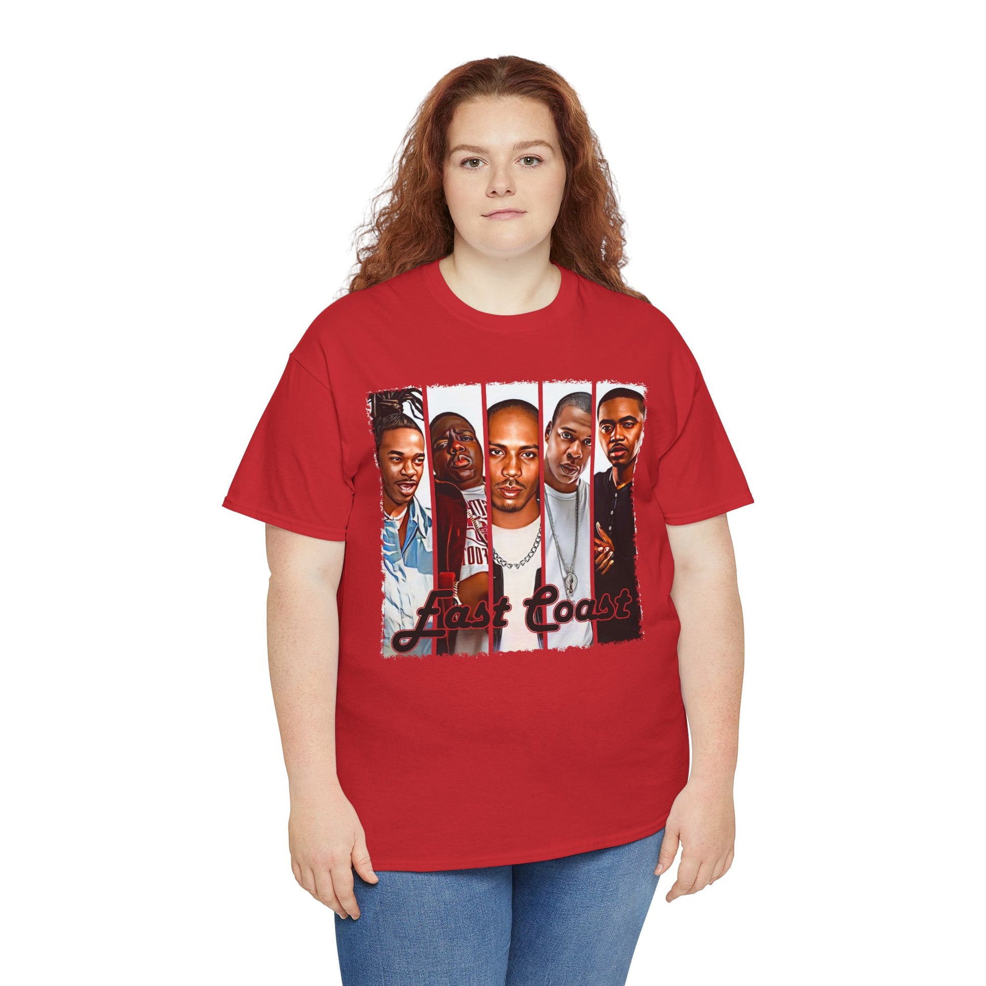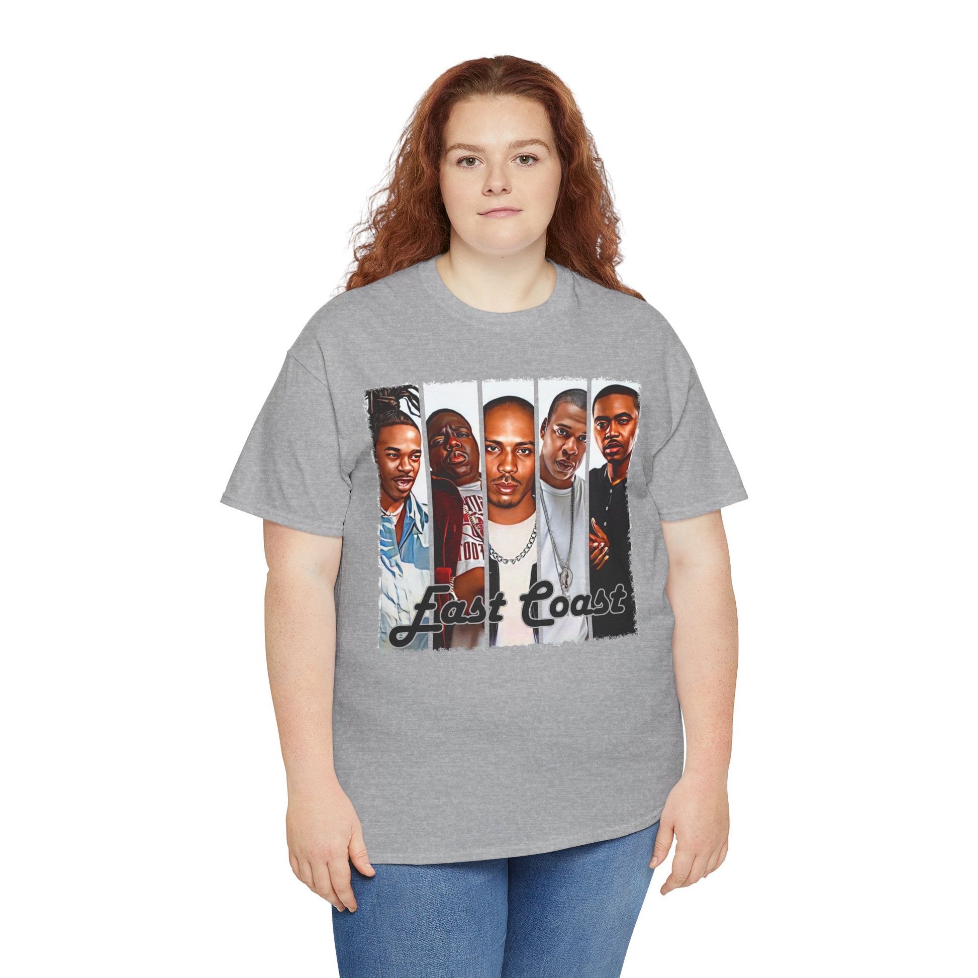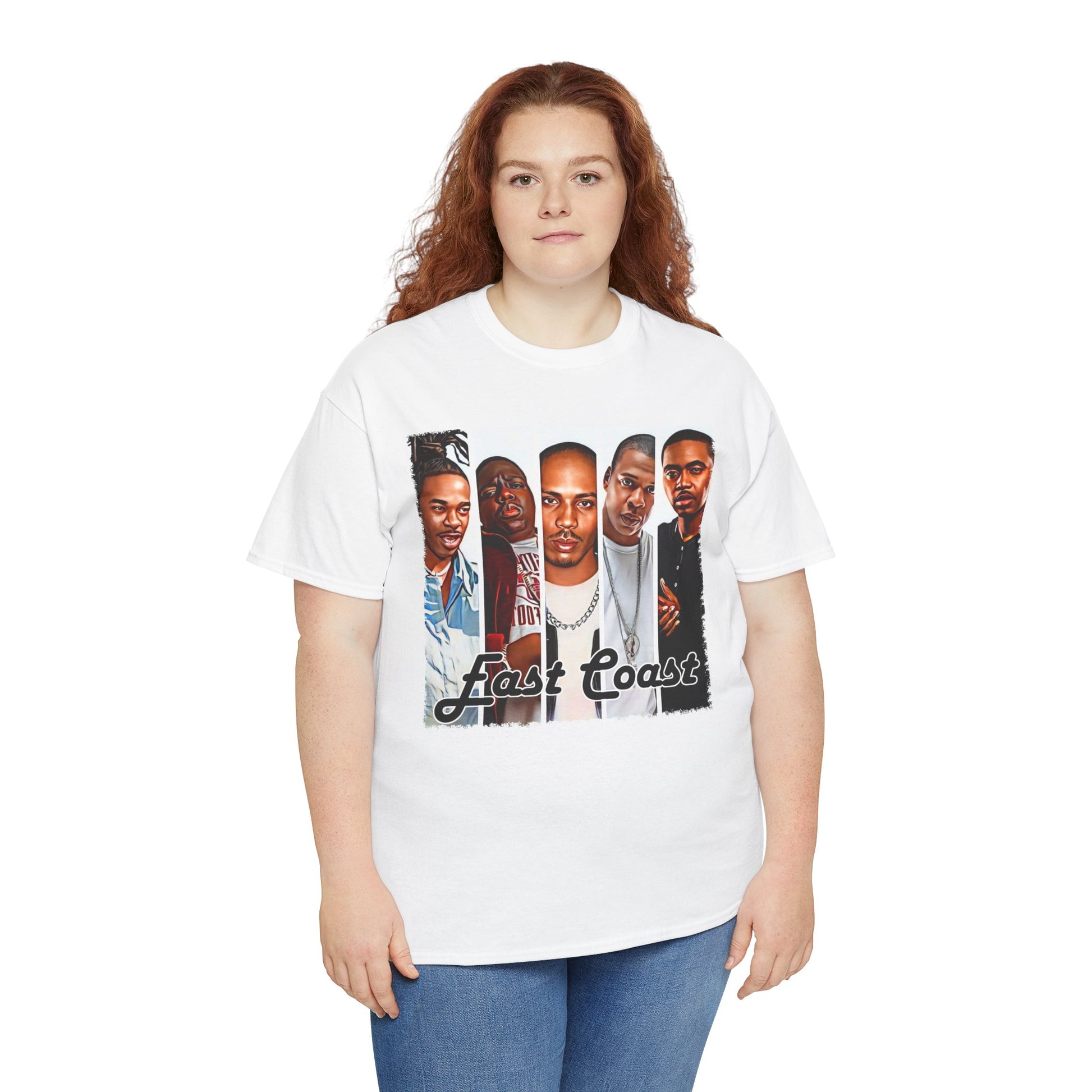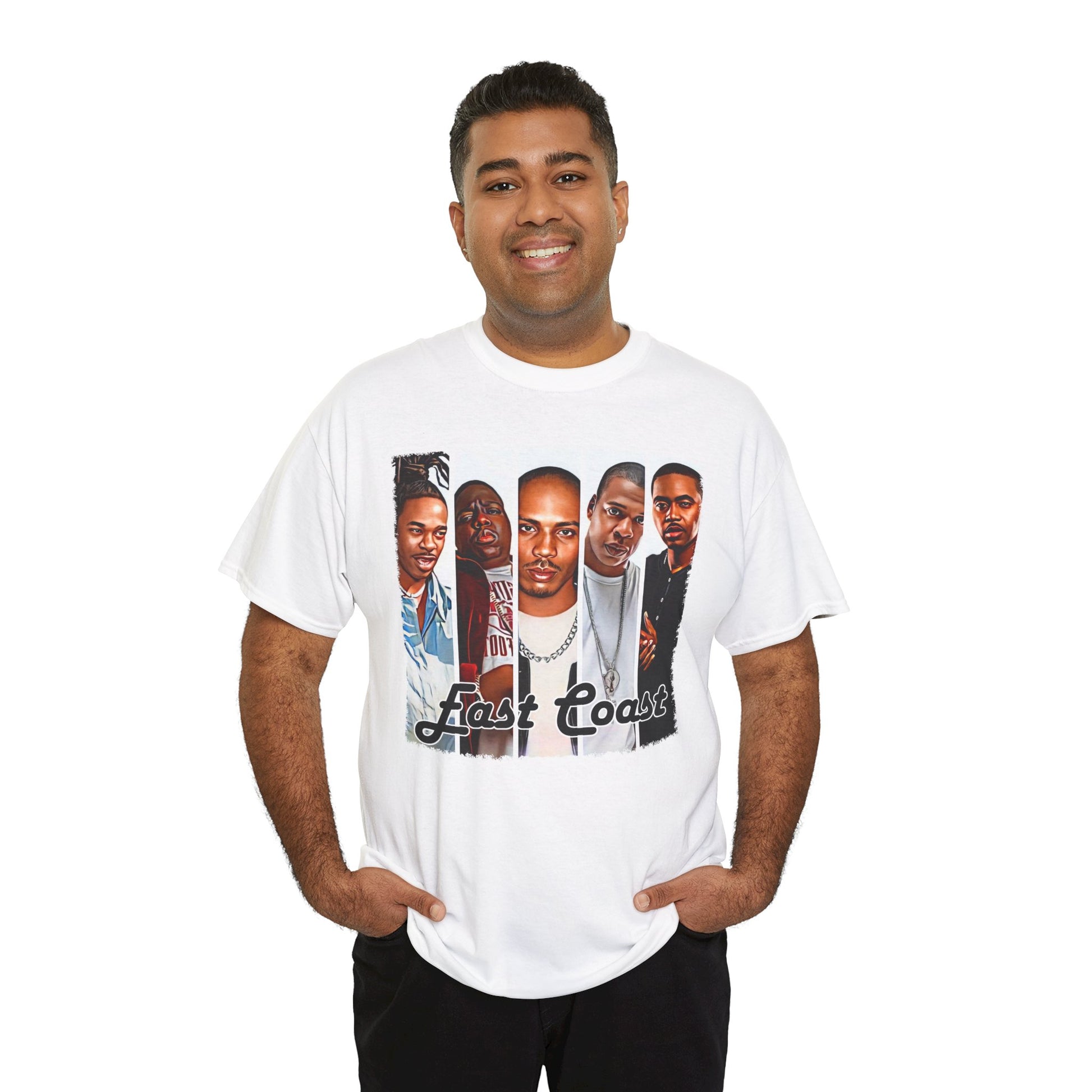 Introducing the ultimate Unisex Heavy Cotton Tee, a staple in any wardrobe that seamlessly blends comfort and style. This tee brings a relaxed vibe perfect for casual hangouts or festive occasions. Its classic fit and crew neckline ensure you look effortlessly chic, making it suitable for both laid-back days and semi-formal gatherings. Ideal for music lovers or anyone looking to express their unique style, this shirt is a great gift for birthdays or holidays. Dress it up or down, and easily layer with jackets for a complete look. Celebrate your individuality any time of the year! East Coast Hip-Hop Tribute Tee