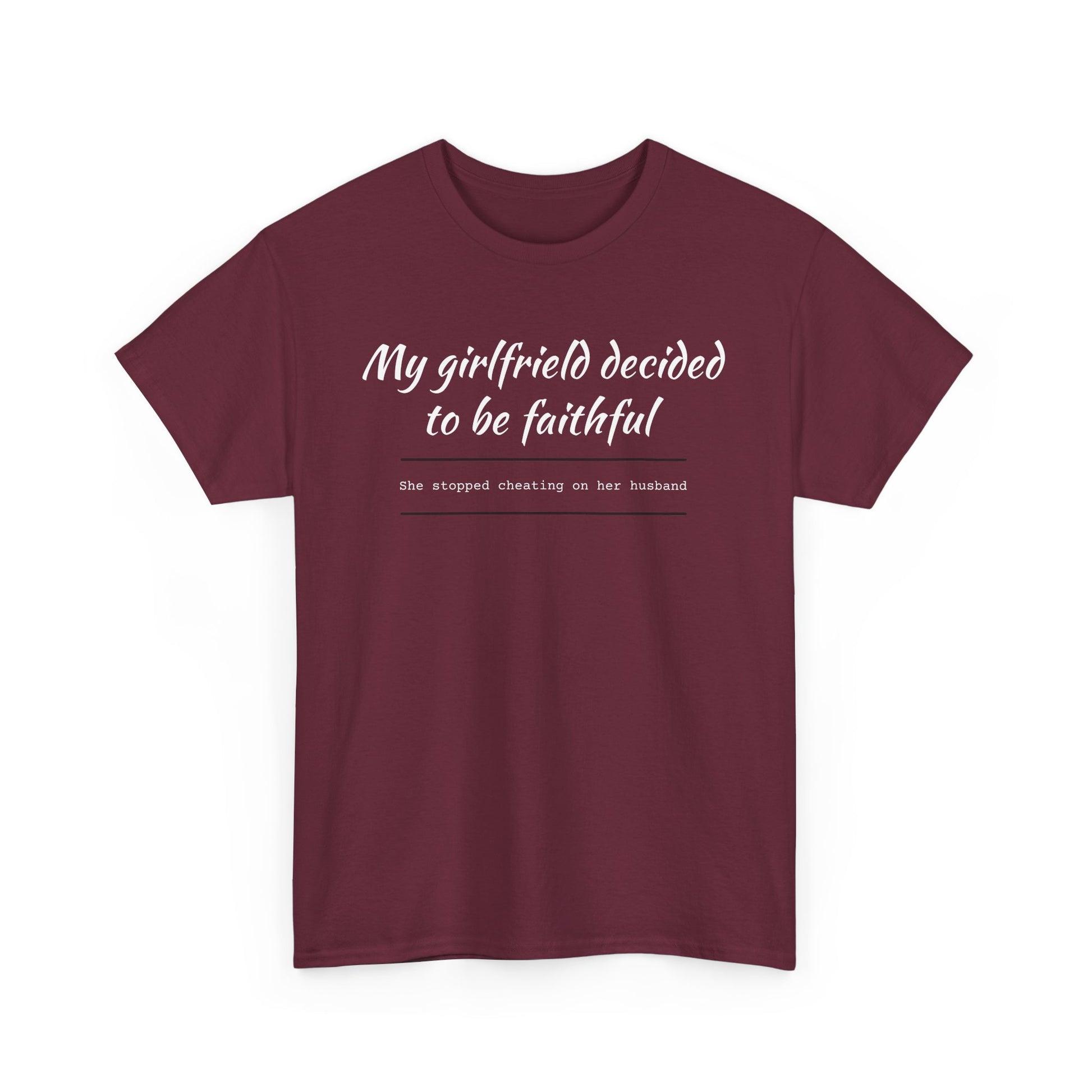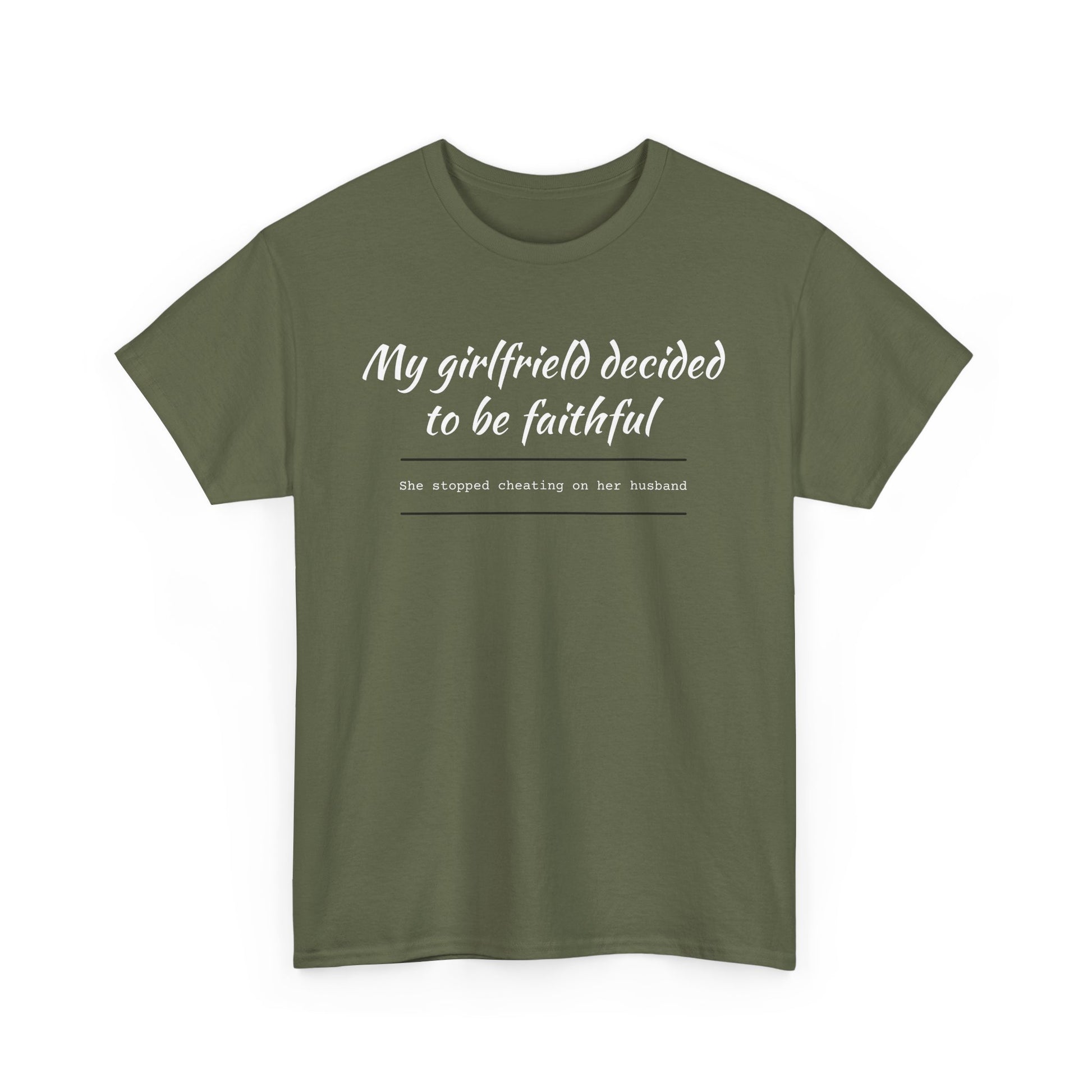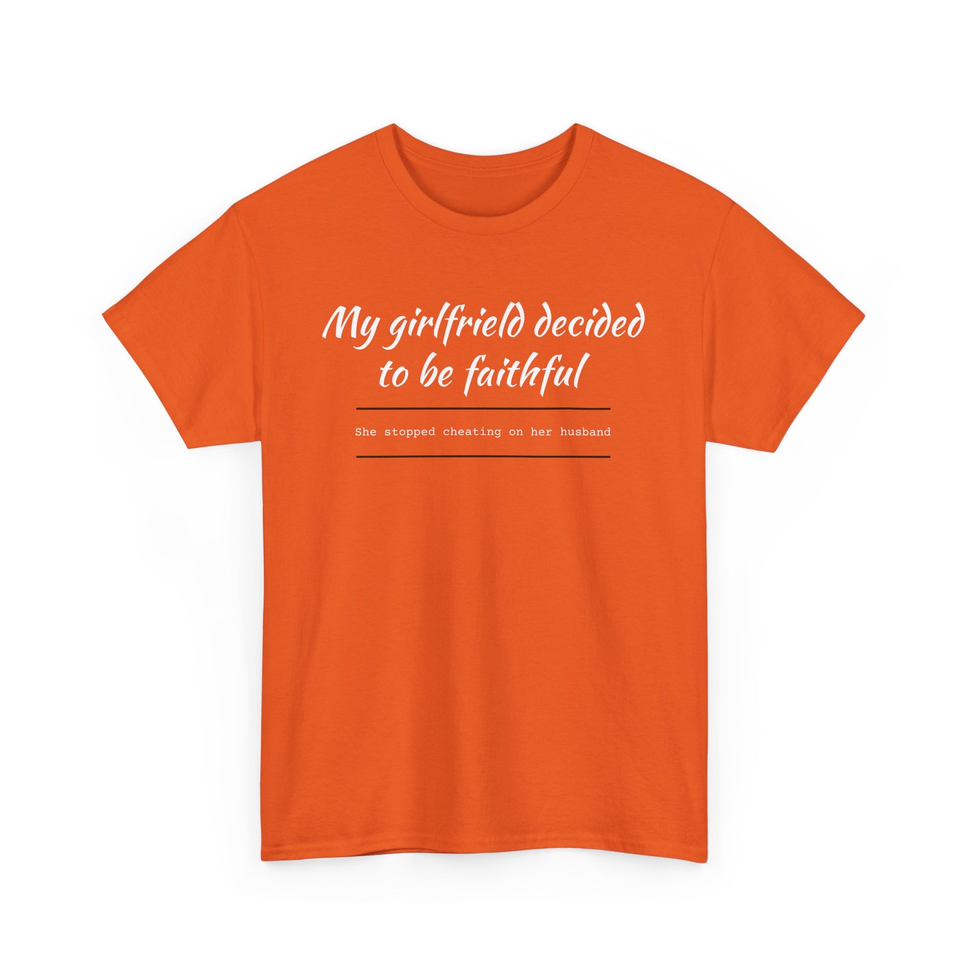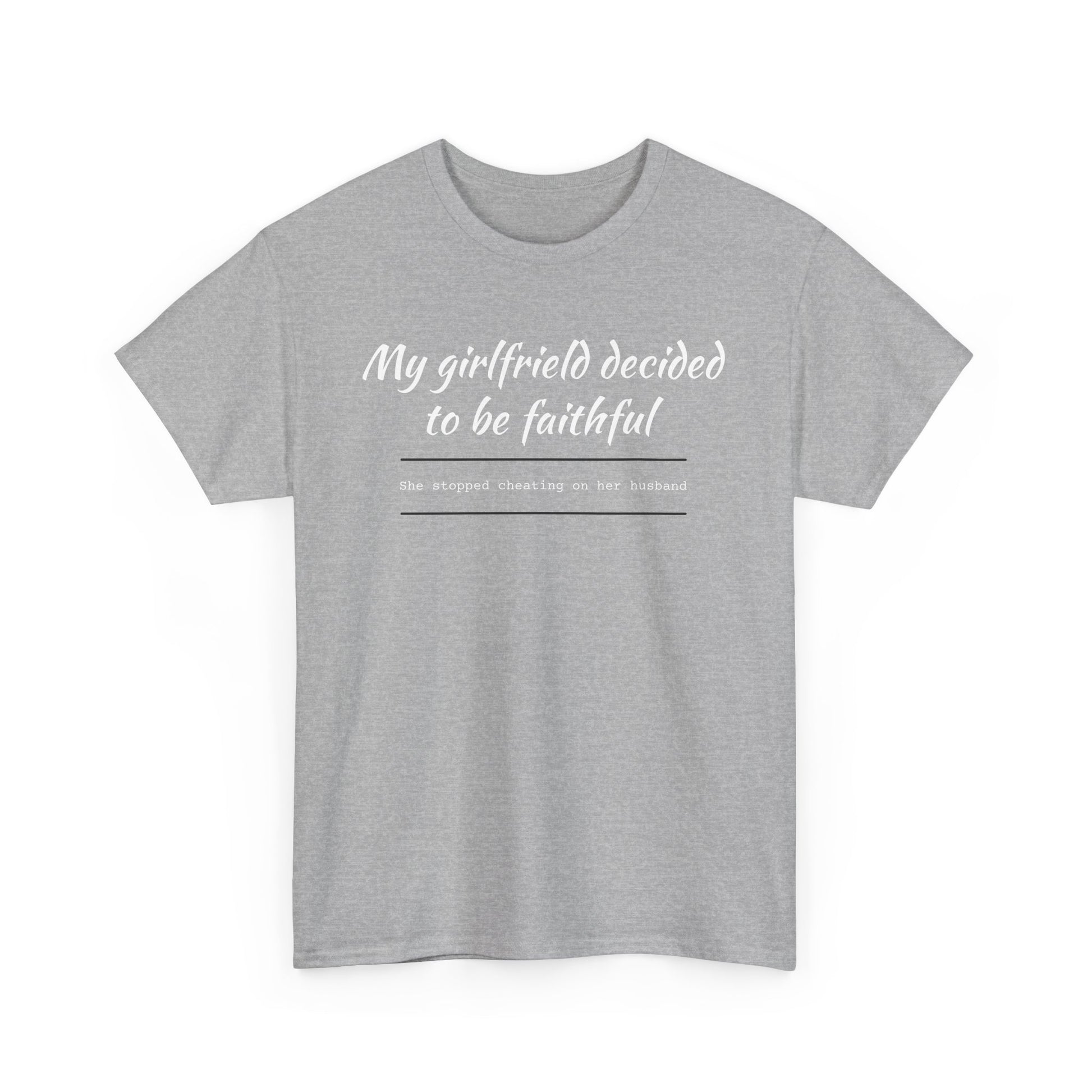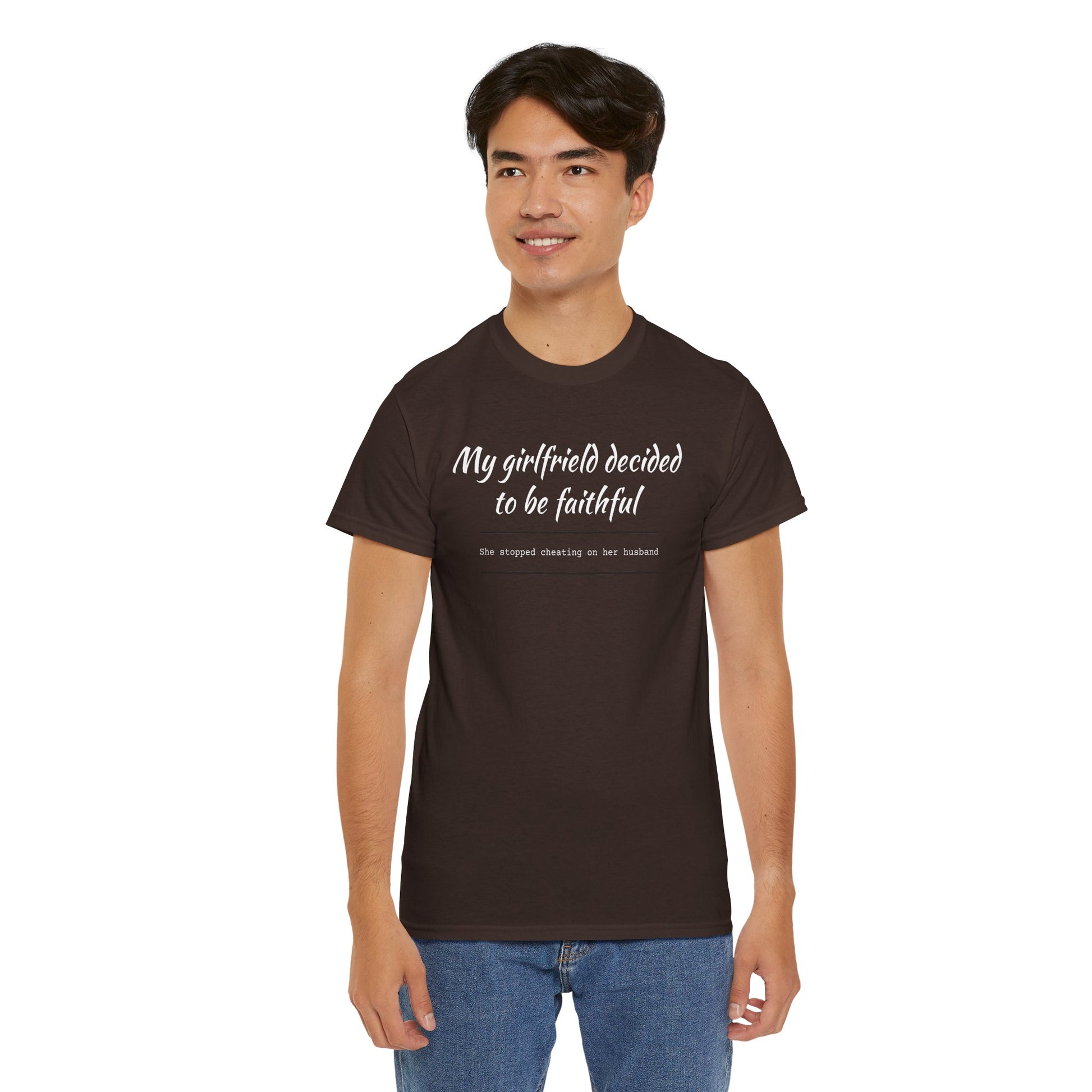 It's especially relevant for anyone who loves expressive and playful designs, making it a great gift for friends or family celebrating birthdays, anniversaries, or just to make someone smile. Its unique and witty print brings a sense of humor that can spark conversations, perfect for casual gatherings or parties. Ideal for holidays or special occasions like Valentine's Day or even April Fools' Day, this shirt makes a fun statement and embraces lightheartedness. Faithful Companion Unisex Heavy Cotton Tee, Funny Relationship Humor Shirt, Gifting for Couples, Anniversary, Birthday, Everyday Wear