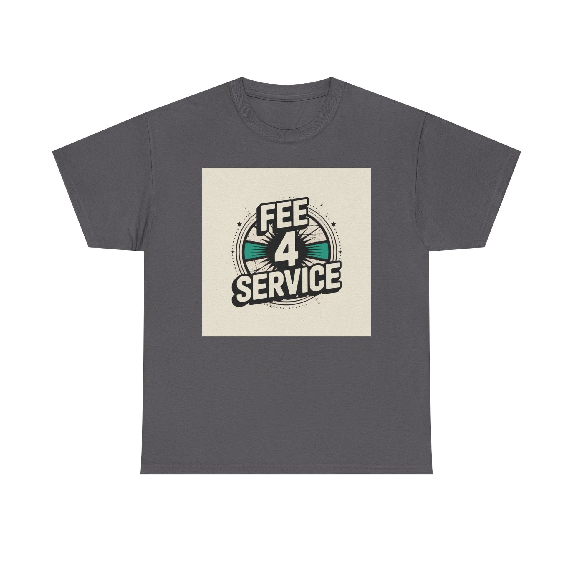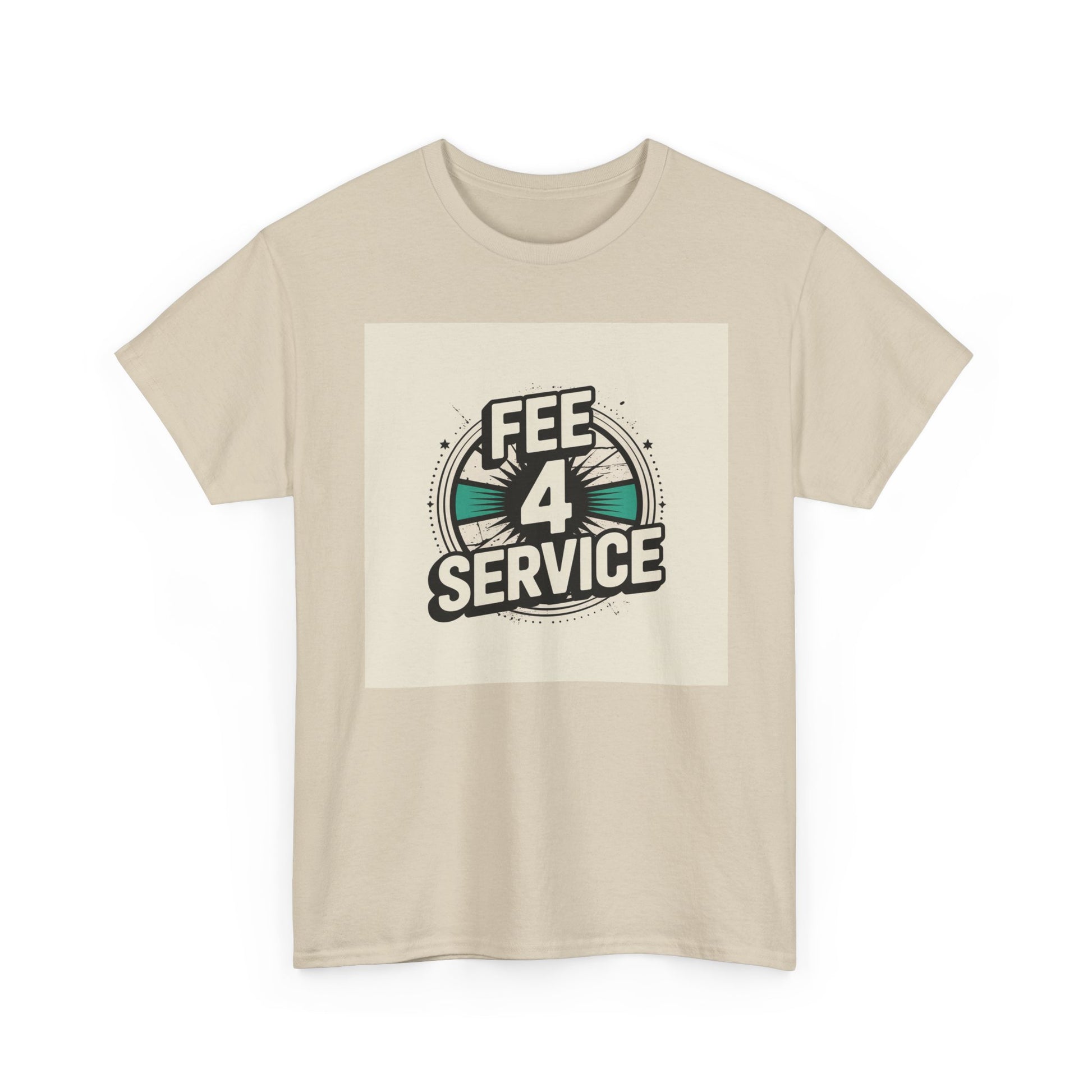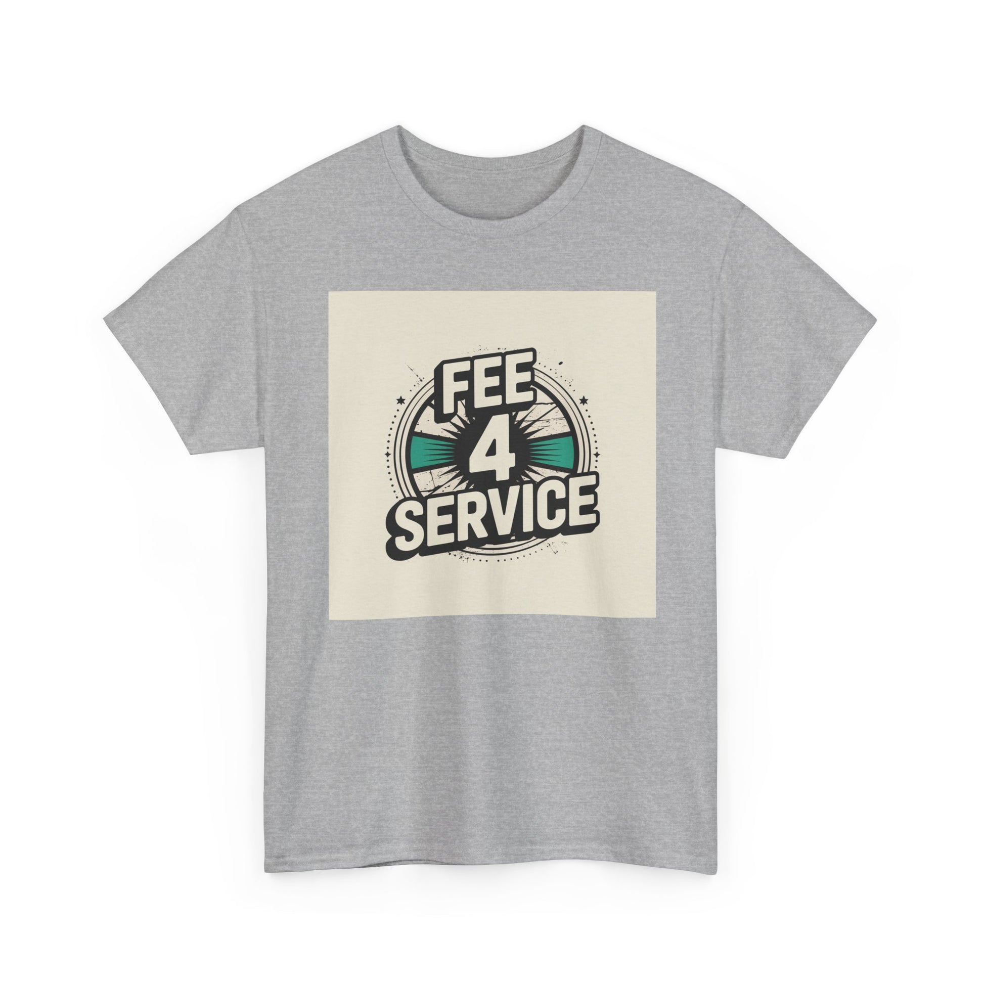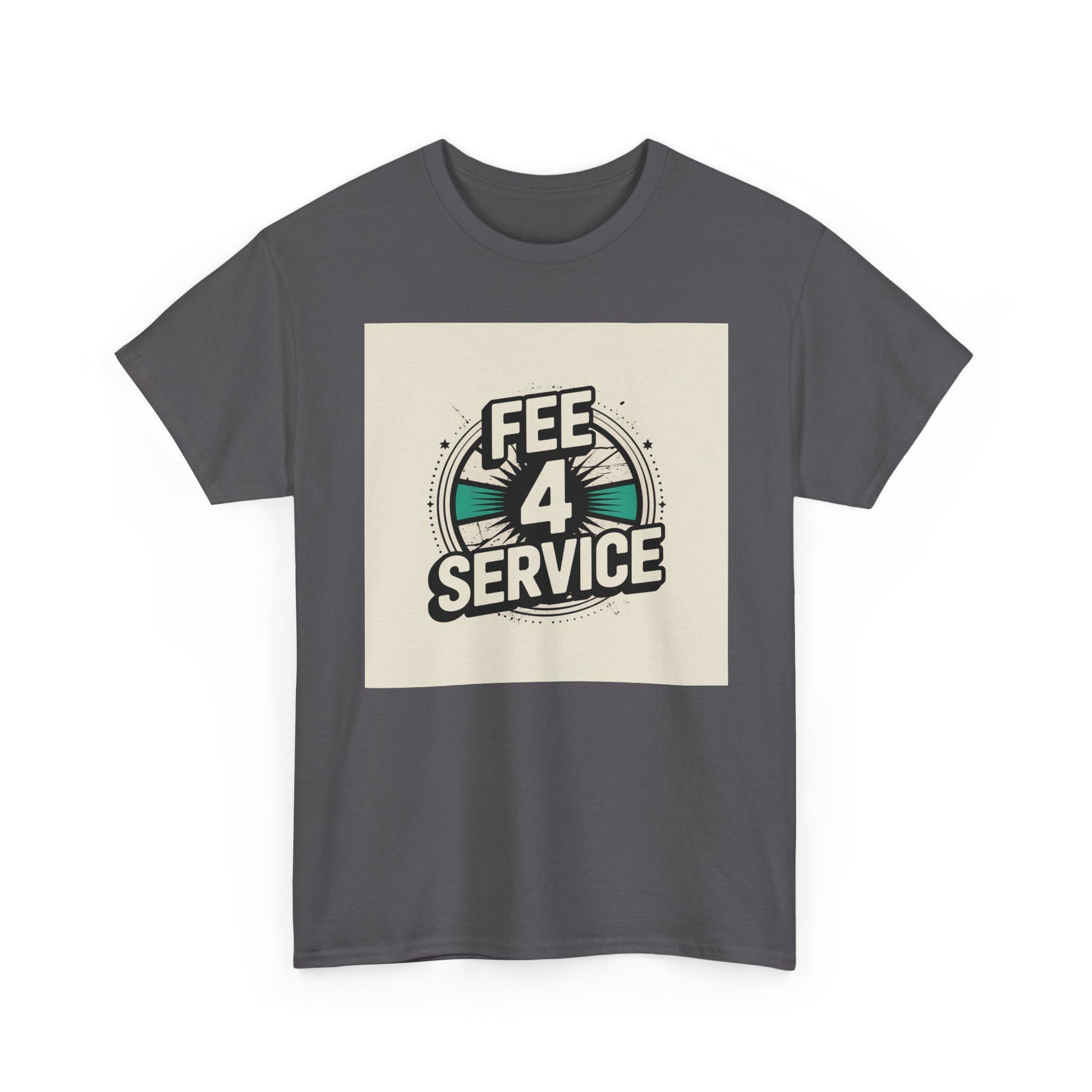This soft, classic-fit tee carries a bold vintage graphic that reads “FEE 4 SERVICE,” set against a muted, sunburst-inspired badge. The printed artwork sits centered on a natural white background, giving it a retro-street vibe that reads equal parts cheeky and confident. Breathable medium-weight cotton keeps the shirt comfortable through the seasons, while a ribbed collar and shoulder tape hold shape wash after wash. Wear it layered under a denim jacket or loose with jeans — it settles into everyday rotation for anyone who appreciates playful, slightly nostalgic designs with a straightforward attitude.