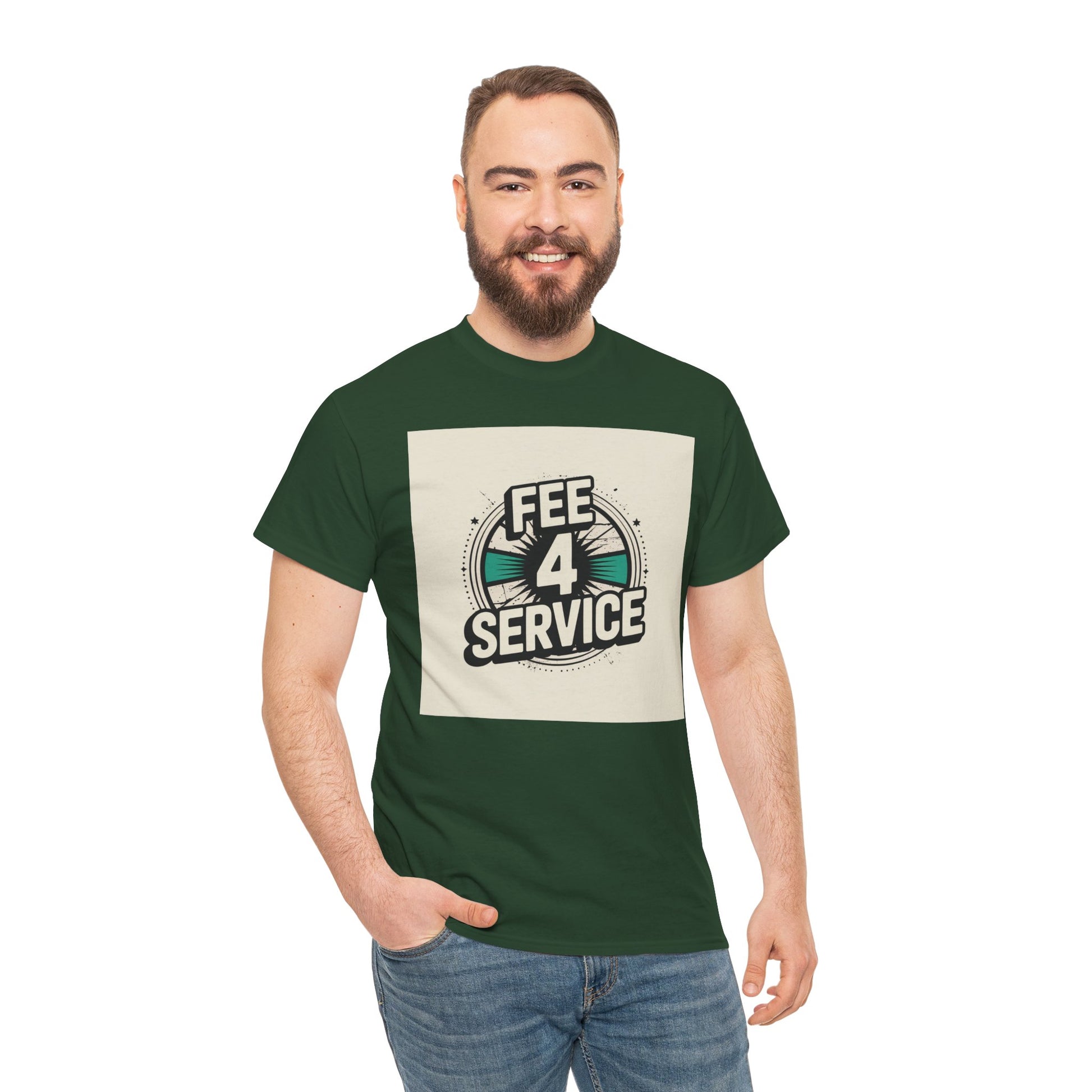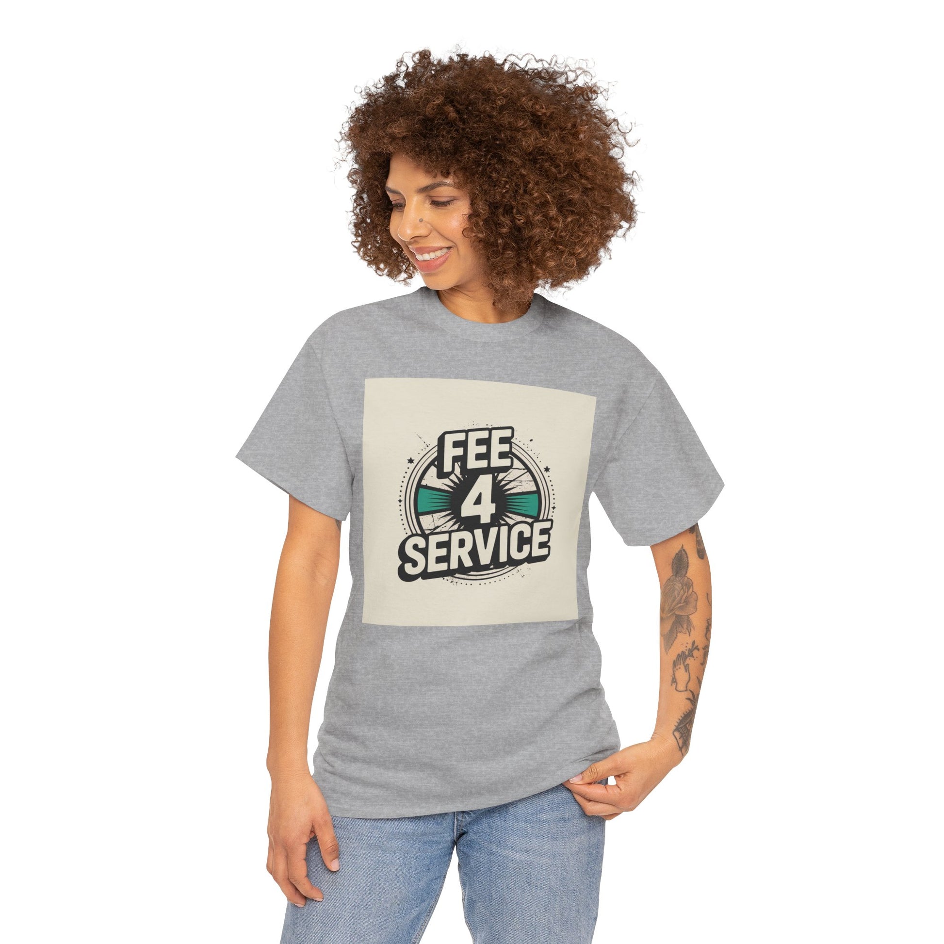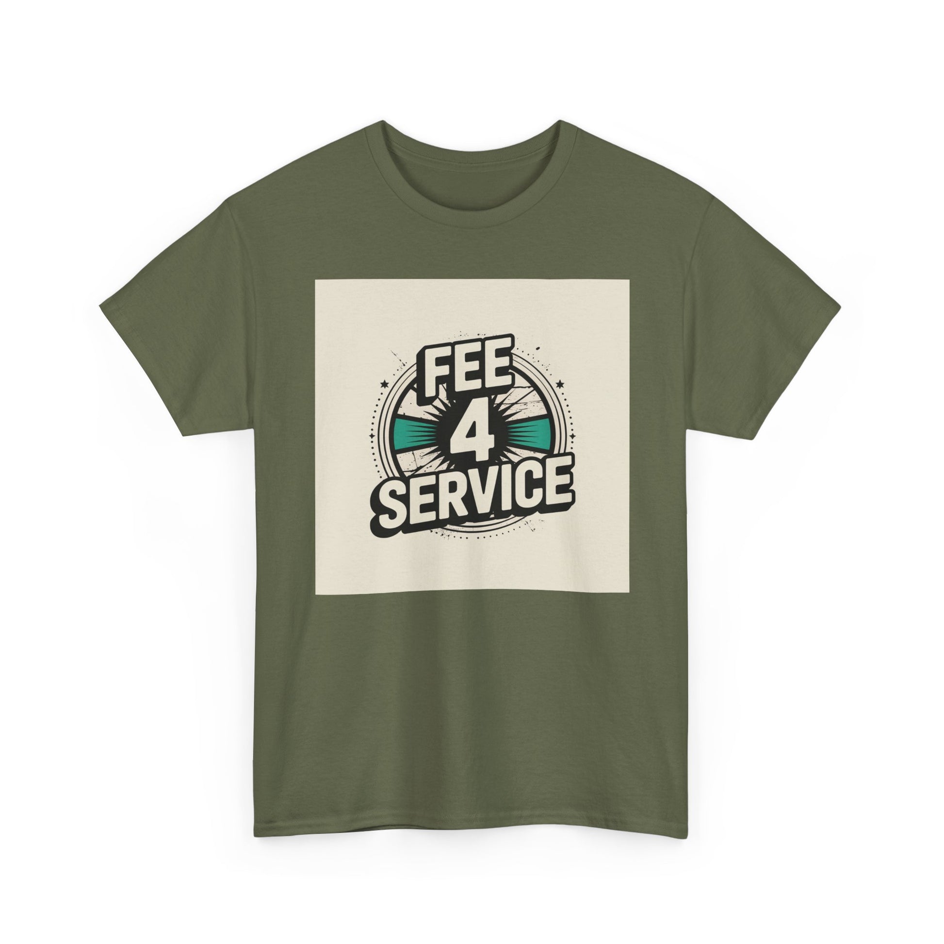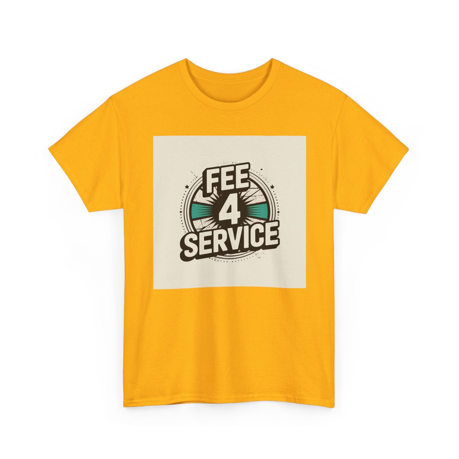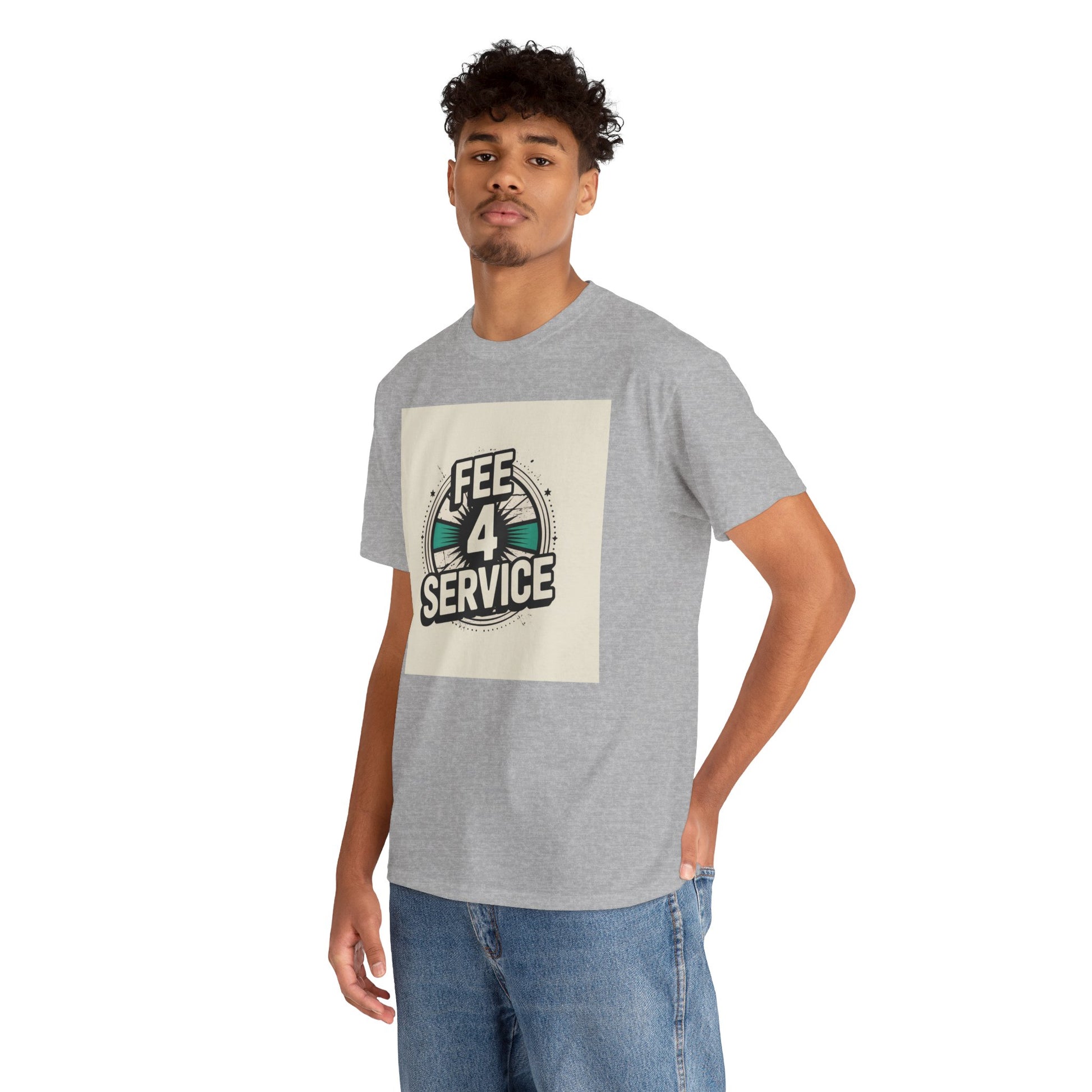 This soft, classic-fit tee carries a bold vintage graphic that reads “FEE 4 SERVICE,” set against a muted, sunburst-inspired badge. The printed artwork sits centered on a natural white background, giving it a retro-street vibe that reads equal parts cheeky and confident. Breathable medium-weight cotton keeps the shirt comfortable through the seasons, while a ribbed collar and shoulder tape hold shape wash after wash. Wear it layered under a denim jacket or loose with jeans — it settles into everyday rotation for anyone who appreciates playful, slightly nostalgic designs with a straightforward attitude.