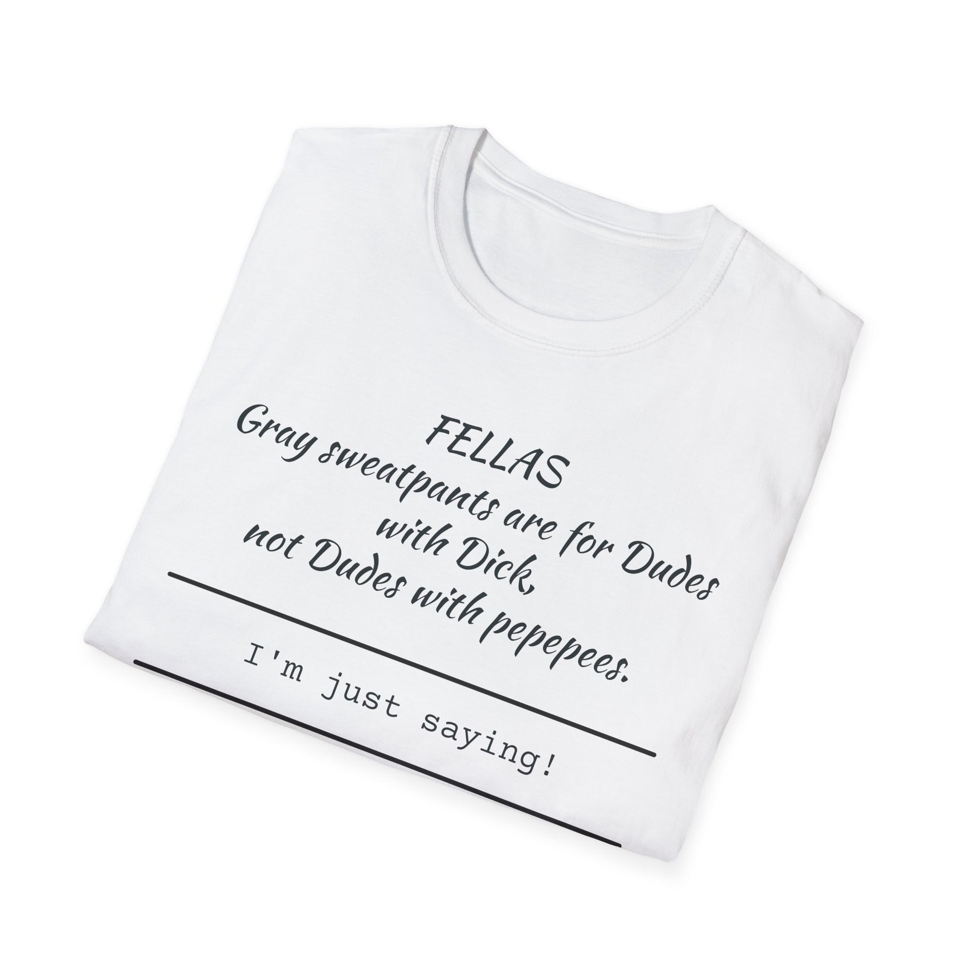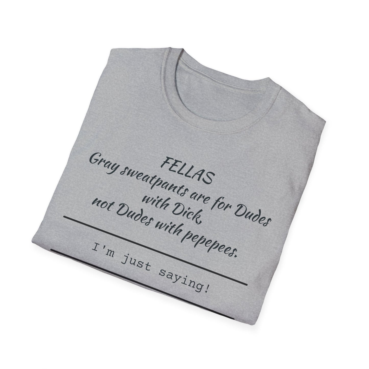Unleash your playful side with this unisex softstyle t-shirt, designed for those who appreciate comfort and style. Crafted from lightweight, ring-spun cotton, it provides a soft, cozy fit that feels like a dream against your skin. Whether dressing up for a casual outing or lounging at home, this versatile tee fits seamlessly into any wardrobe. It's perfect for friends, family, or anyone looking to add a touch of humor to their outfit. Ideal for everyday wear, gifting for birthdays, or casual holiday celebrations. Make moments memorable and light-hearted with this cheeky t-shirt! Humorous Unisex T-Shirt - 'Fellas, Gray Sweatpants Are for Dudes with D***s, Not Dudes with Peppers!' - Funny Gift for Men, Casual [...]