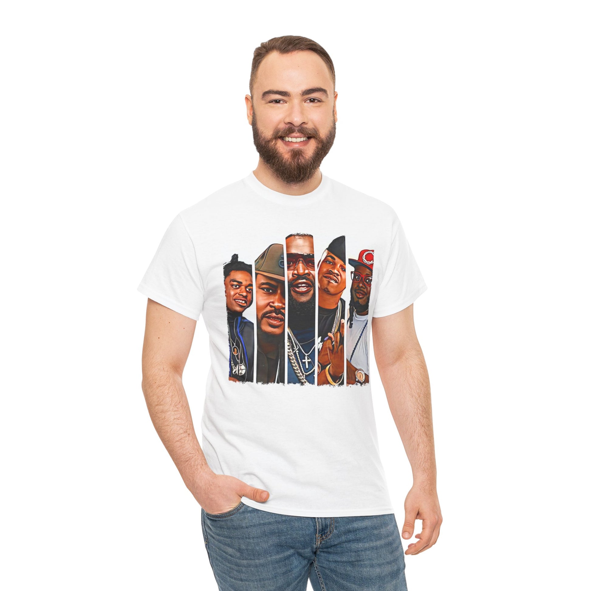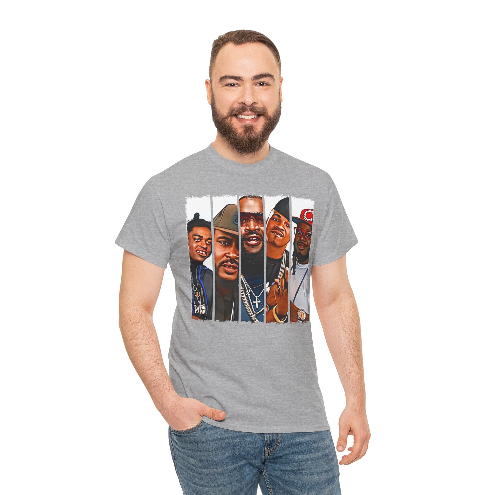 Introducing our versatile Unisex Heavy Cotton Tee, perfect for anyone who values style and comfort. Crafted with care, this tee offers a relaxed fit that's ideal for casual outings or laid-back gatherings. Its soft, smooth fabric feels great against the skin, making it an everyday favorite. The eye-catching design on the front adds a unique touch, making it a fantastic conversation starter. This shirt is perfect for music lovers, especially fans of hip-hop culture, and is an excellent gift for birthdays, music festivals, or any casual celebration. Wear it to express your personality and enjoy a trendy yet comfy vibe all day long! Hip-Hop Legends Unisex Heavy Cotton Tee