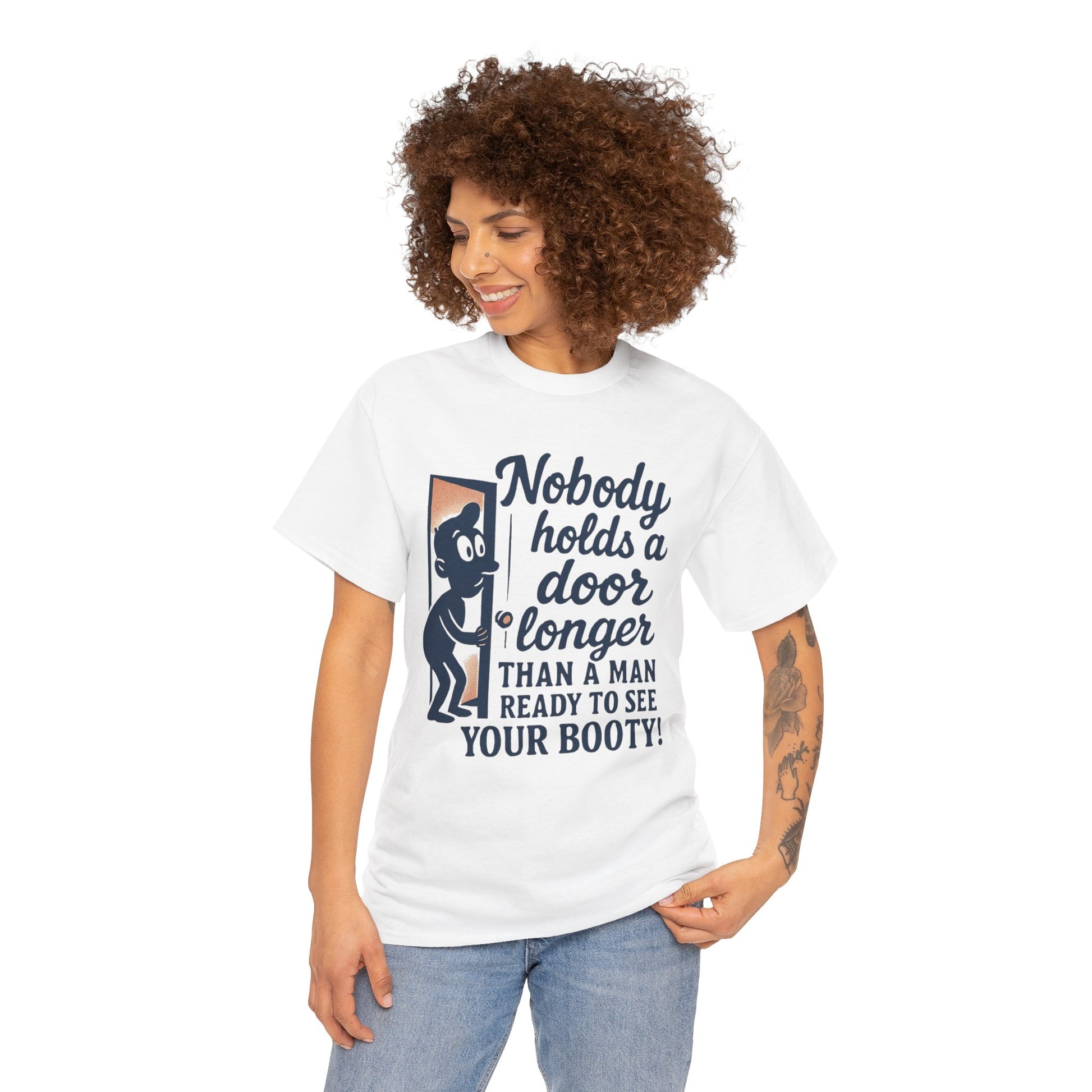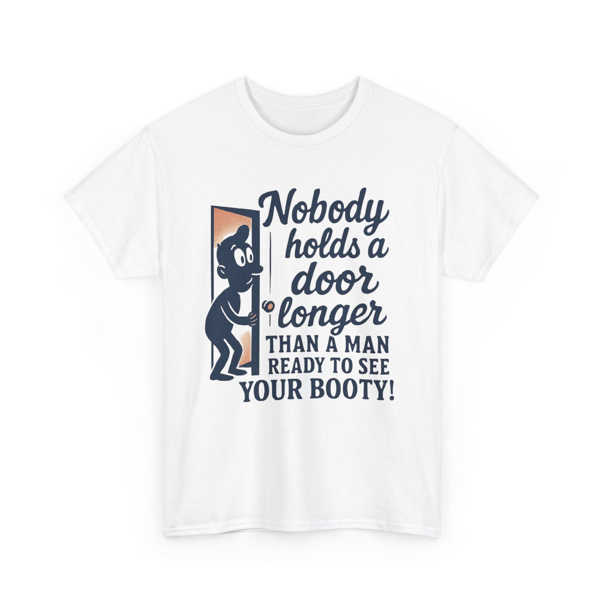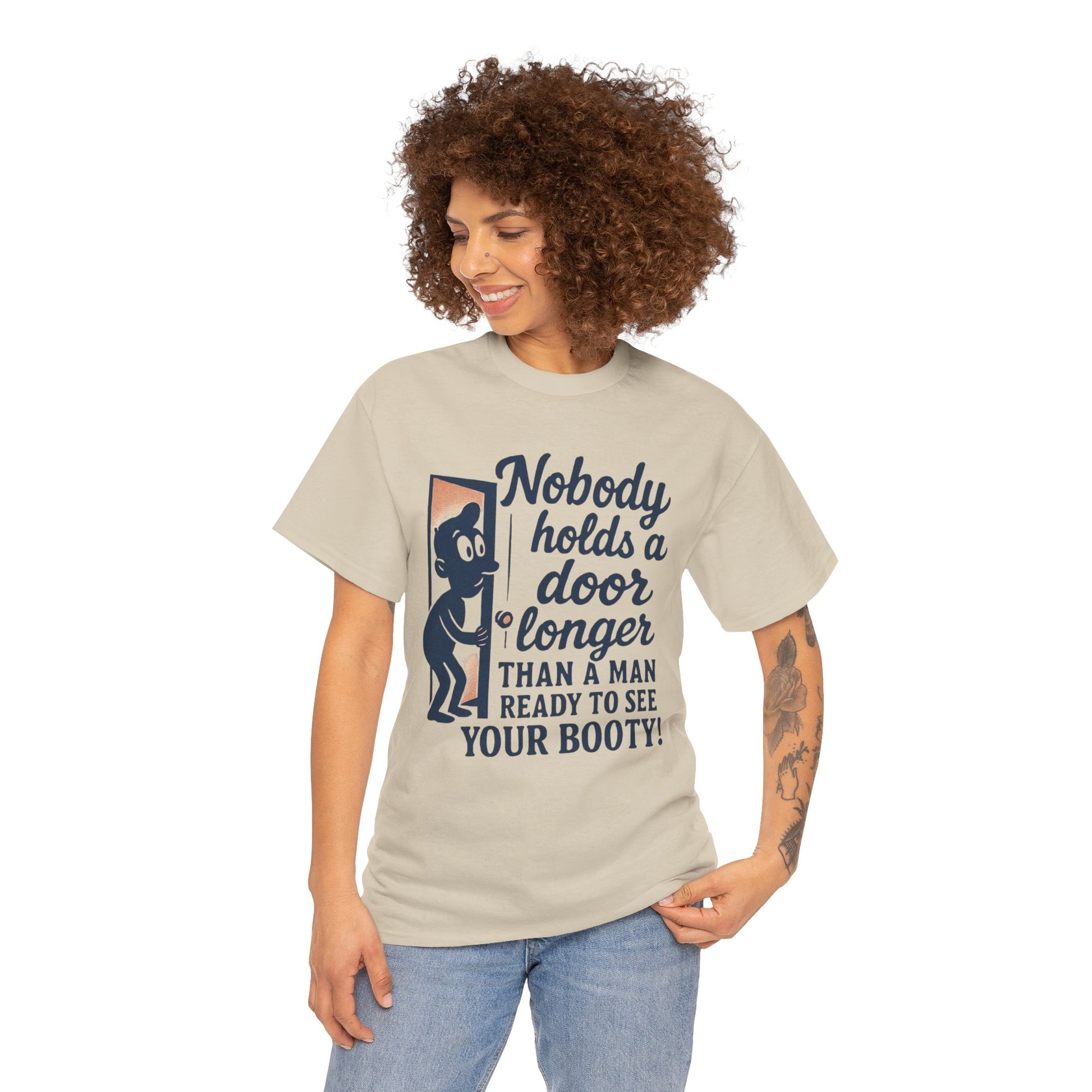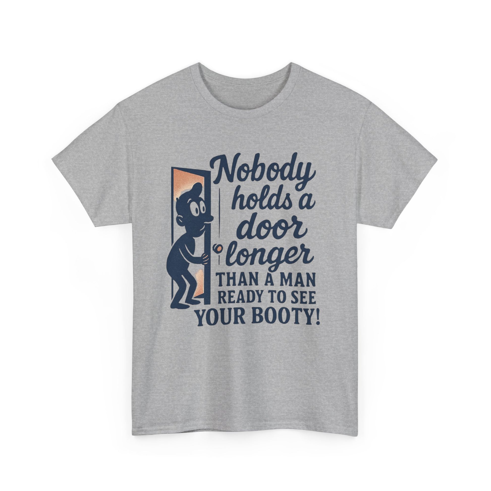 Funny Graphic Tee – "Nobody Holds a Door Longer…Ready to See Your Booty!"