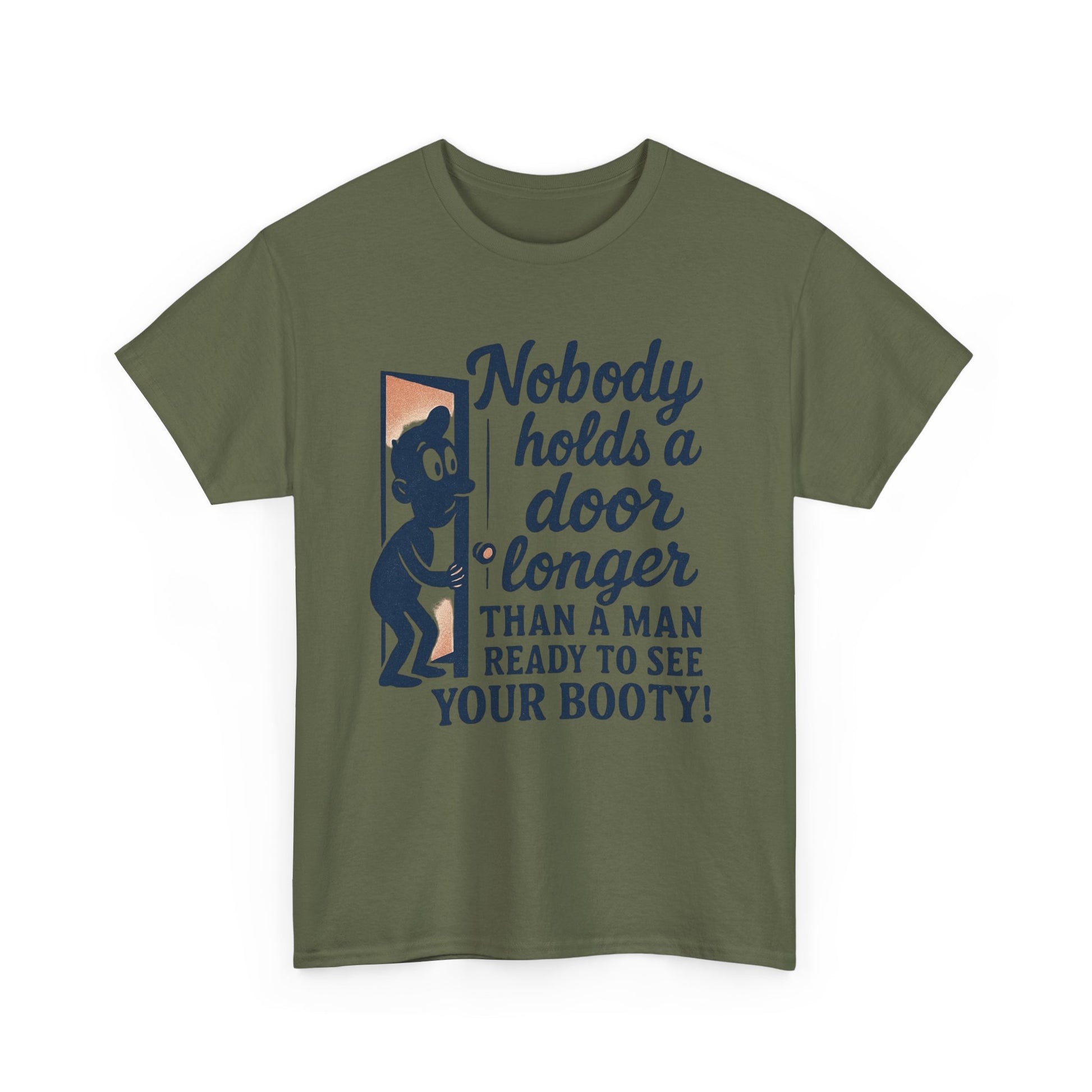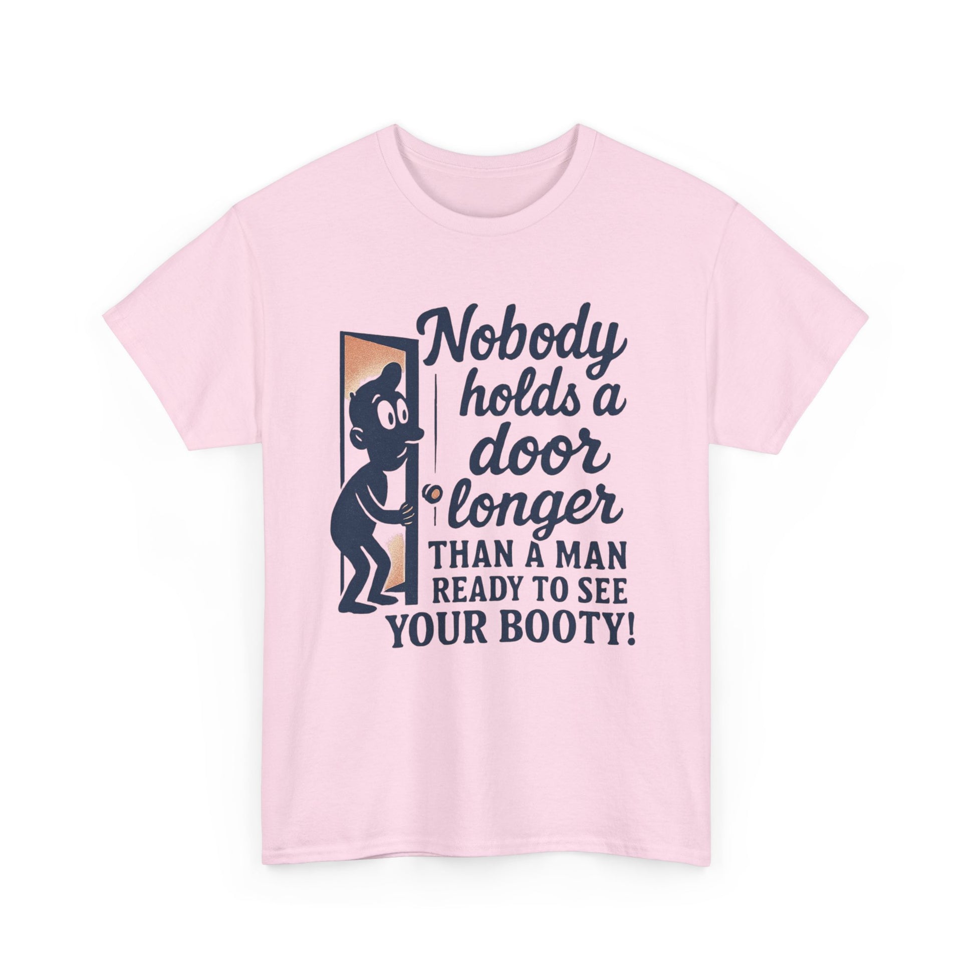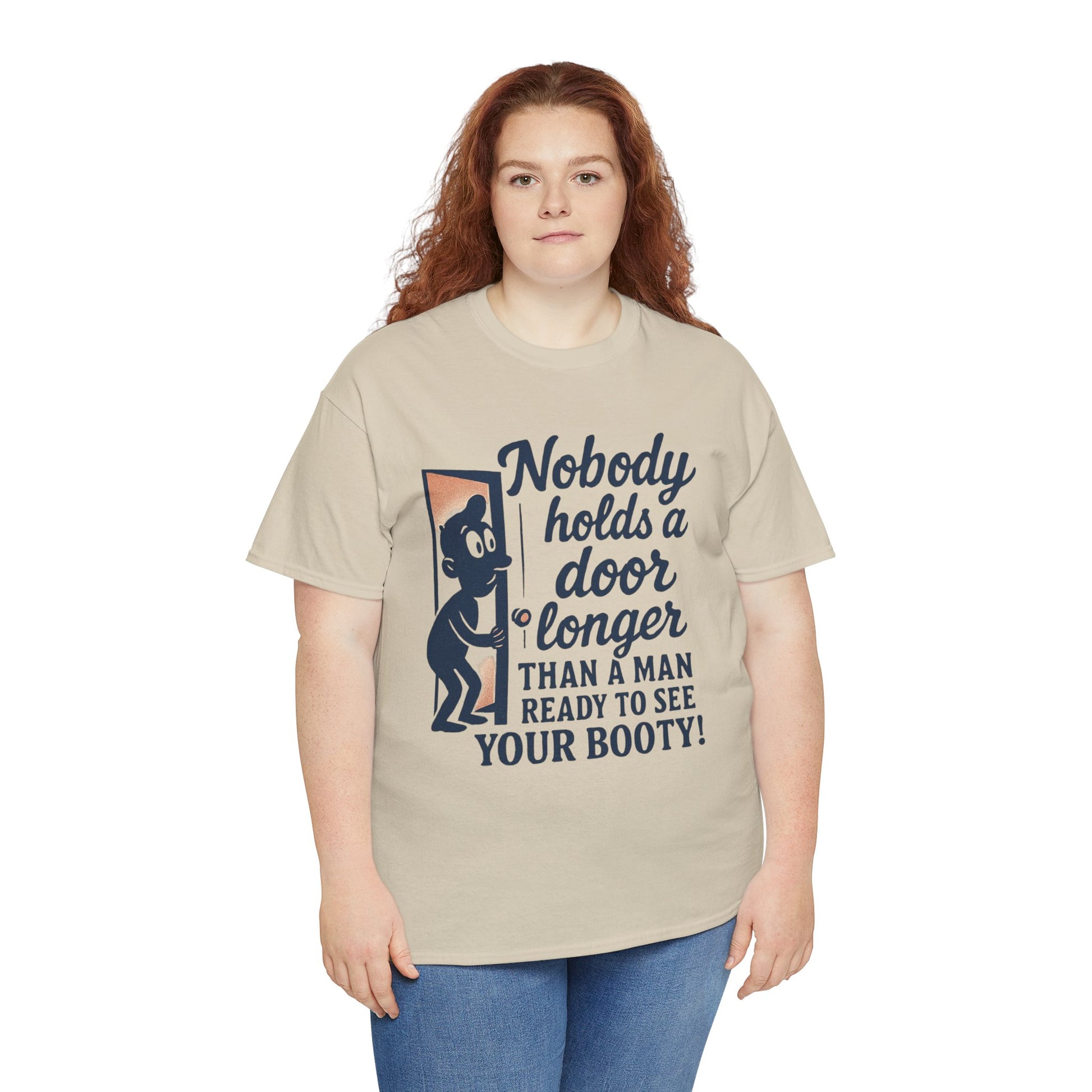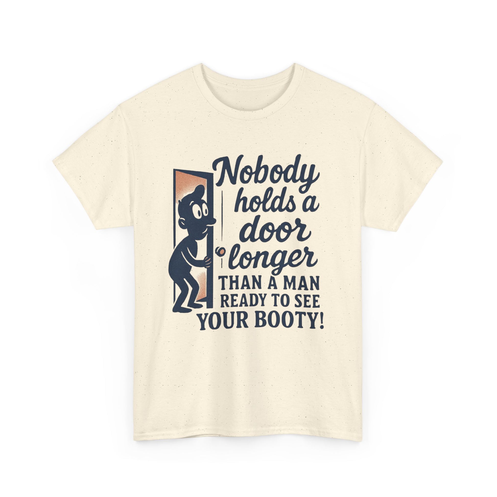 Funny Graphic Tee – "Nobody Holds a Door Longer…Ready to See Your Booty!"