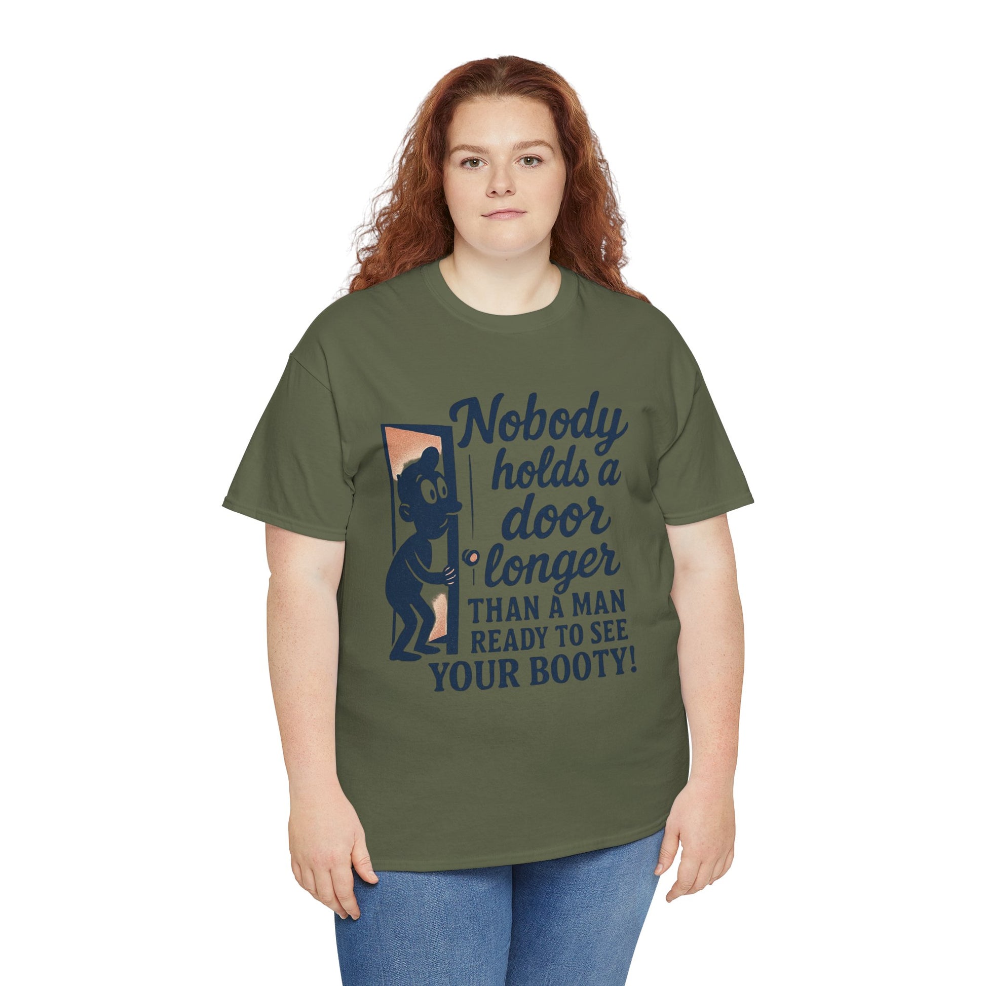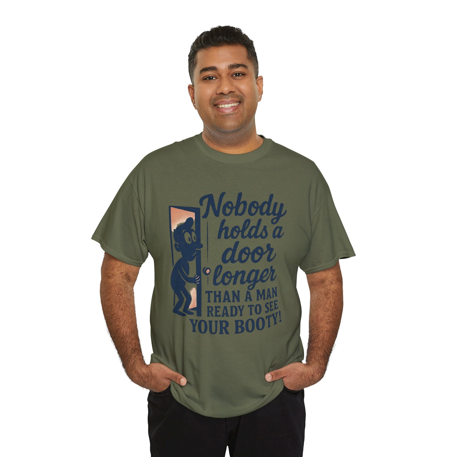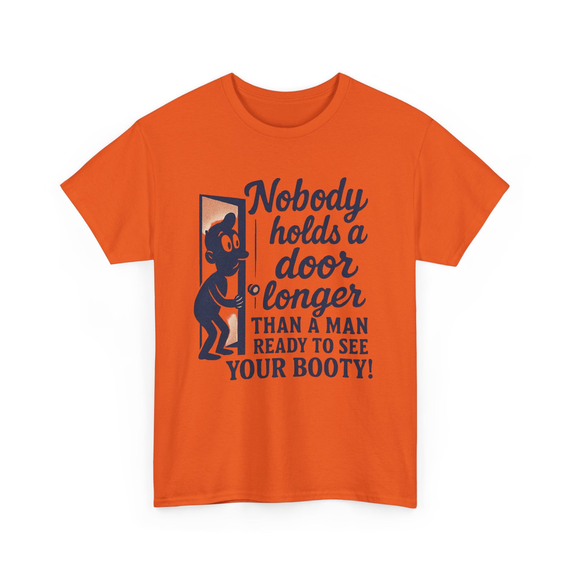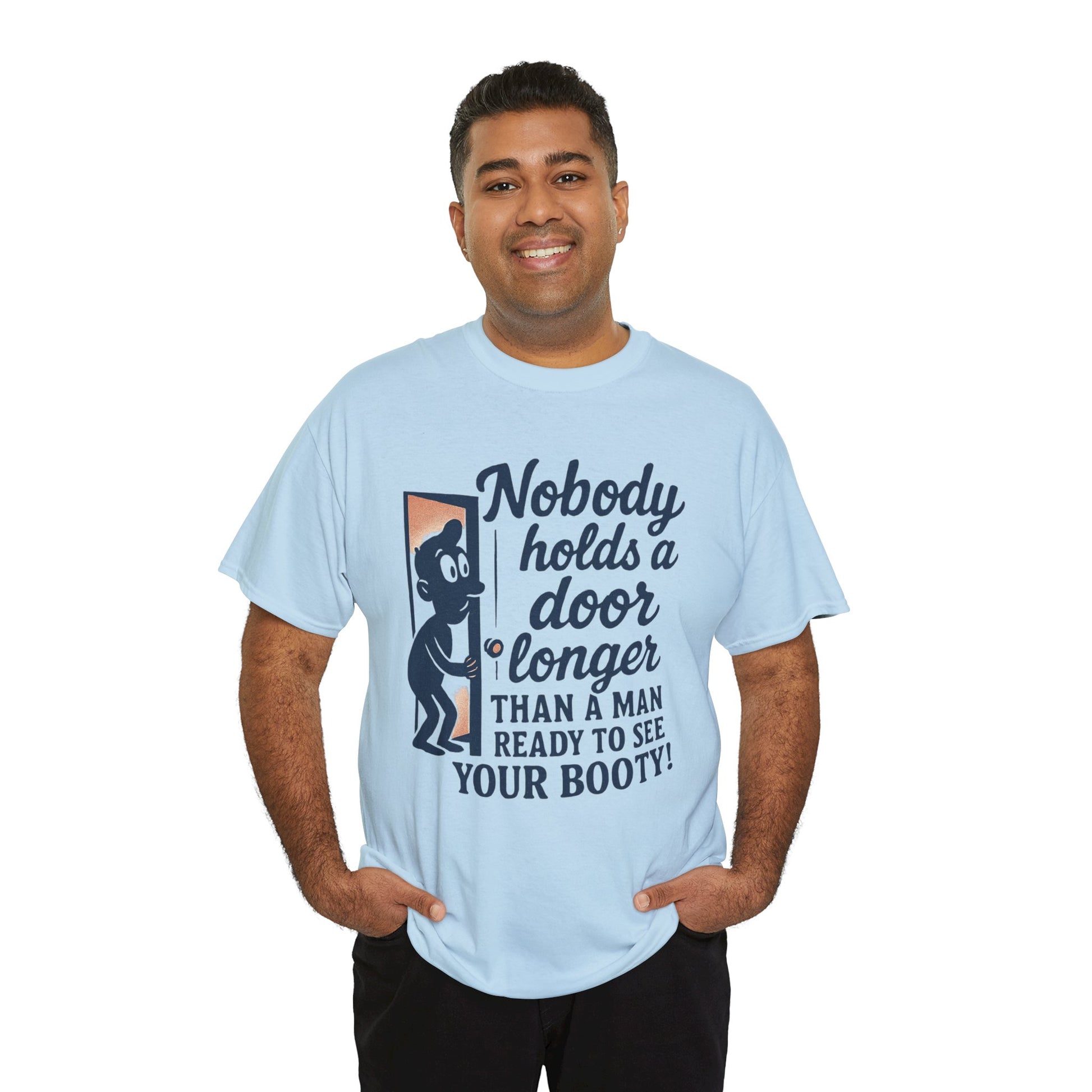 Funny Graphic Tee – "Nobody Holds a Door Longer…Ready to See Your Booty!"