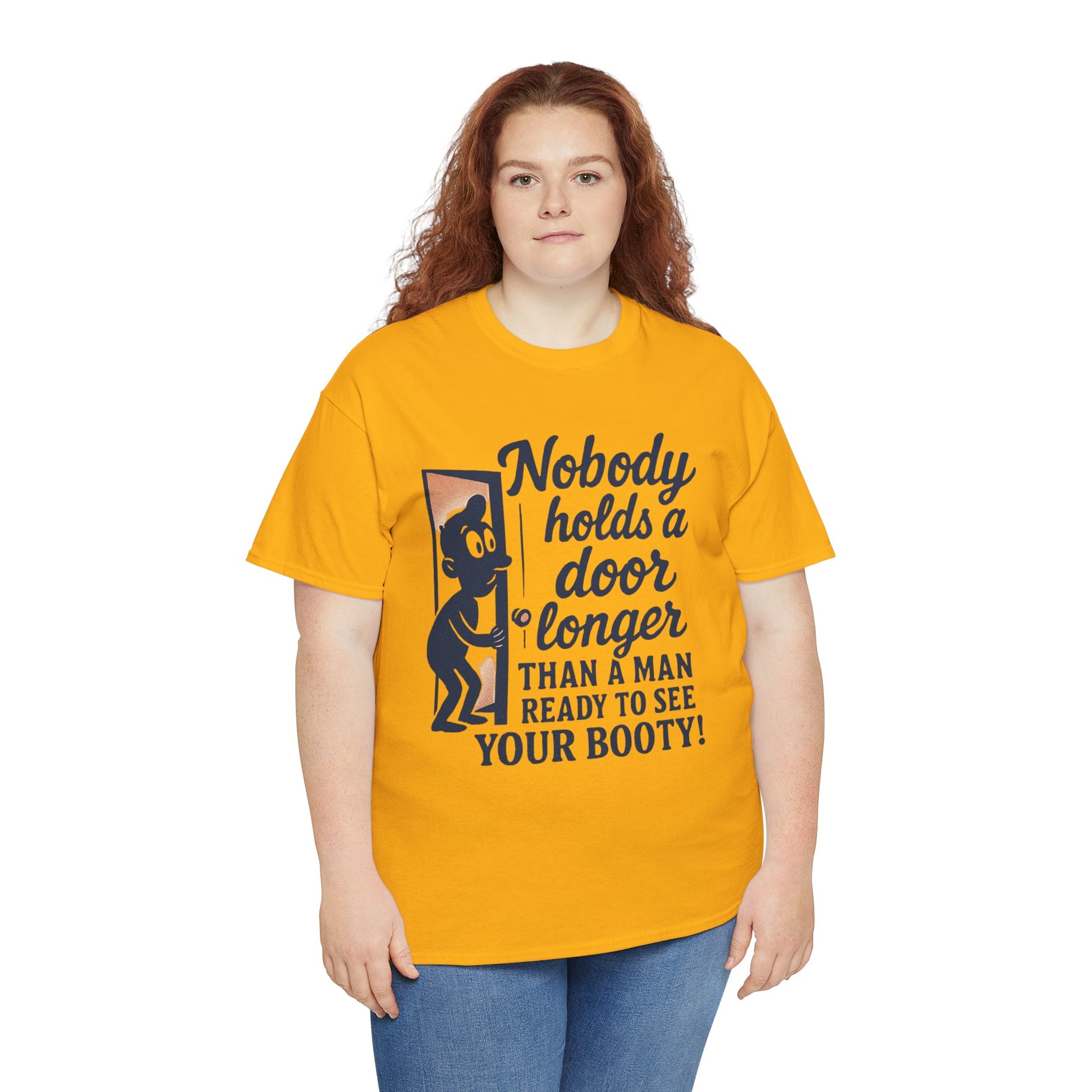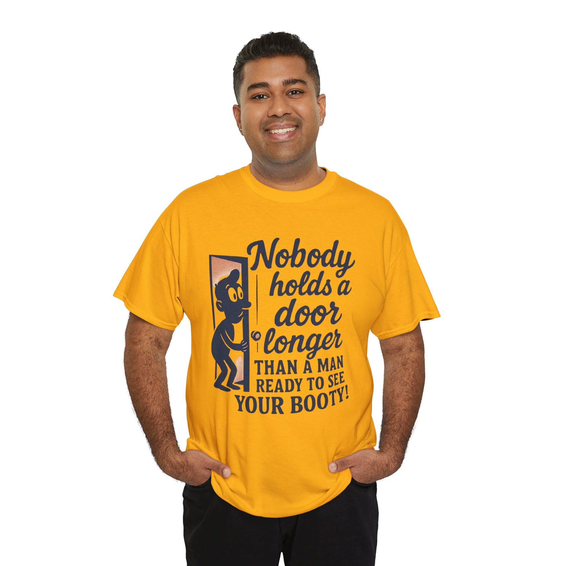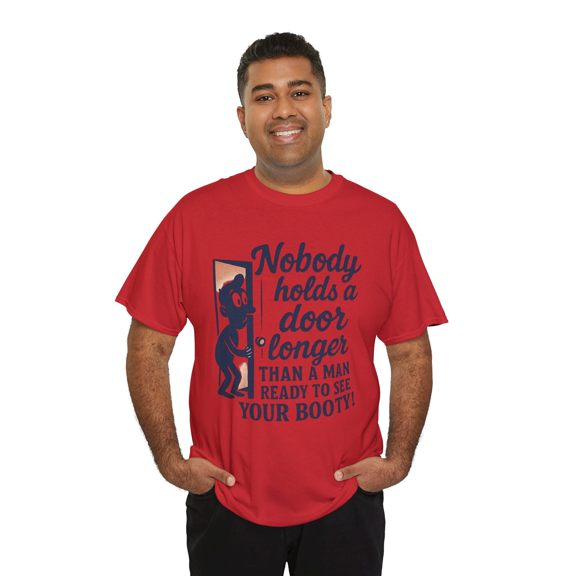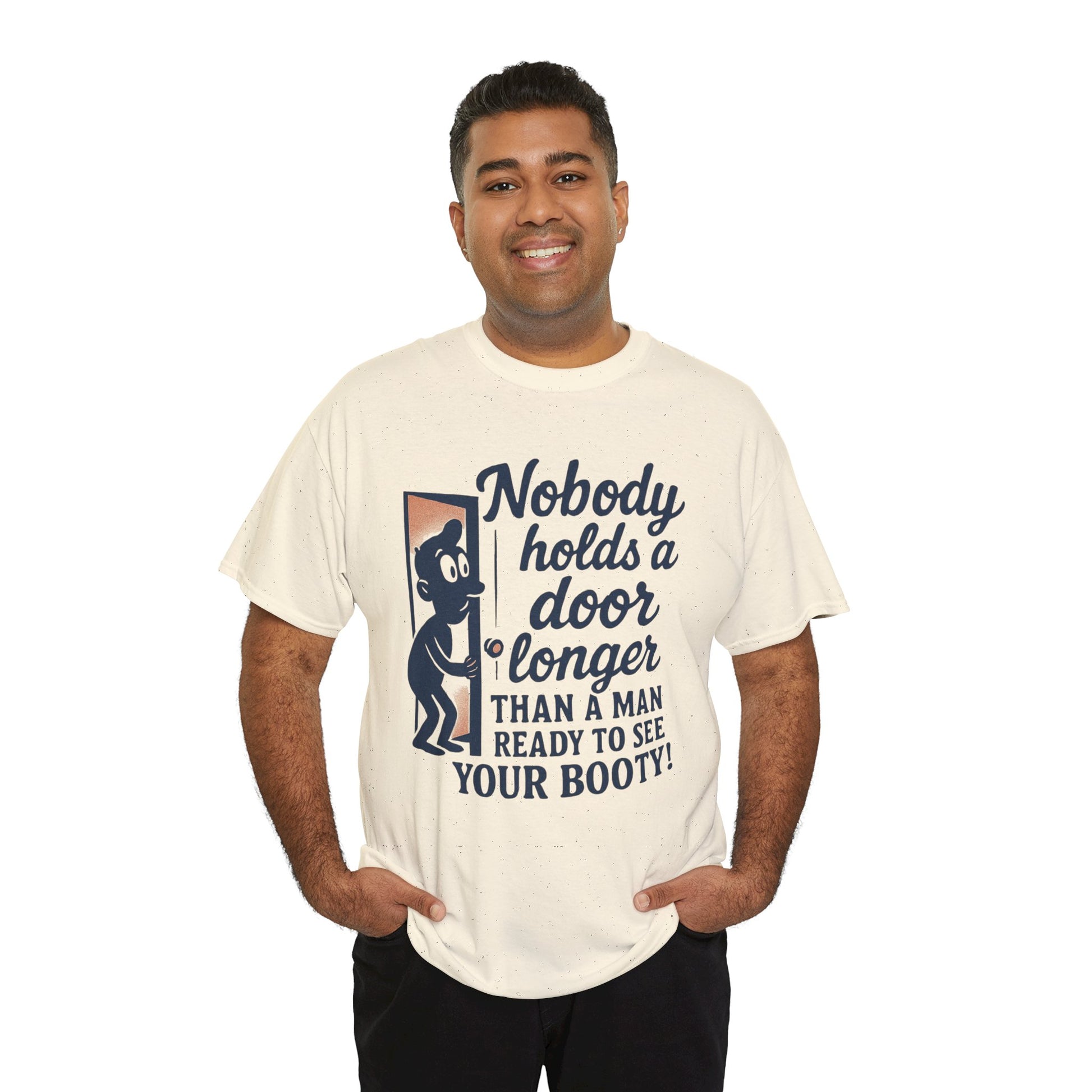 Funny Graphic Tee – "Nobody Holds a Door Longer…Ready to See Your Booty!"