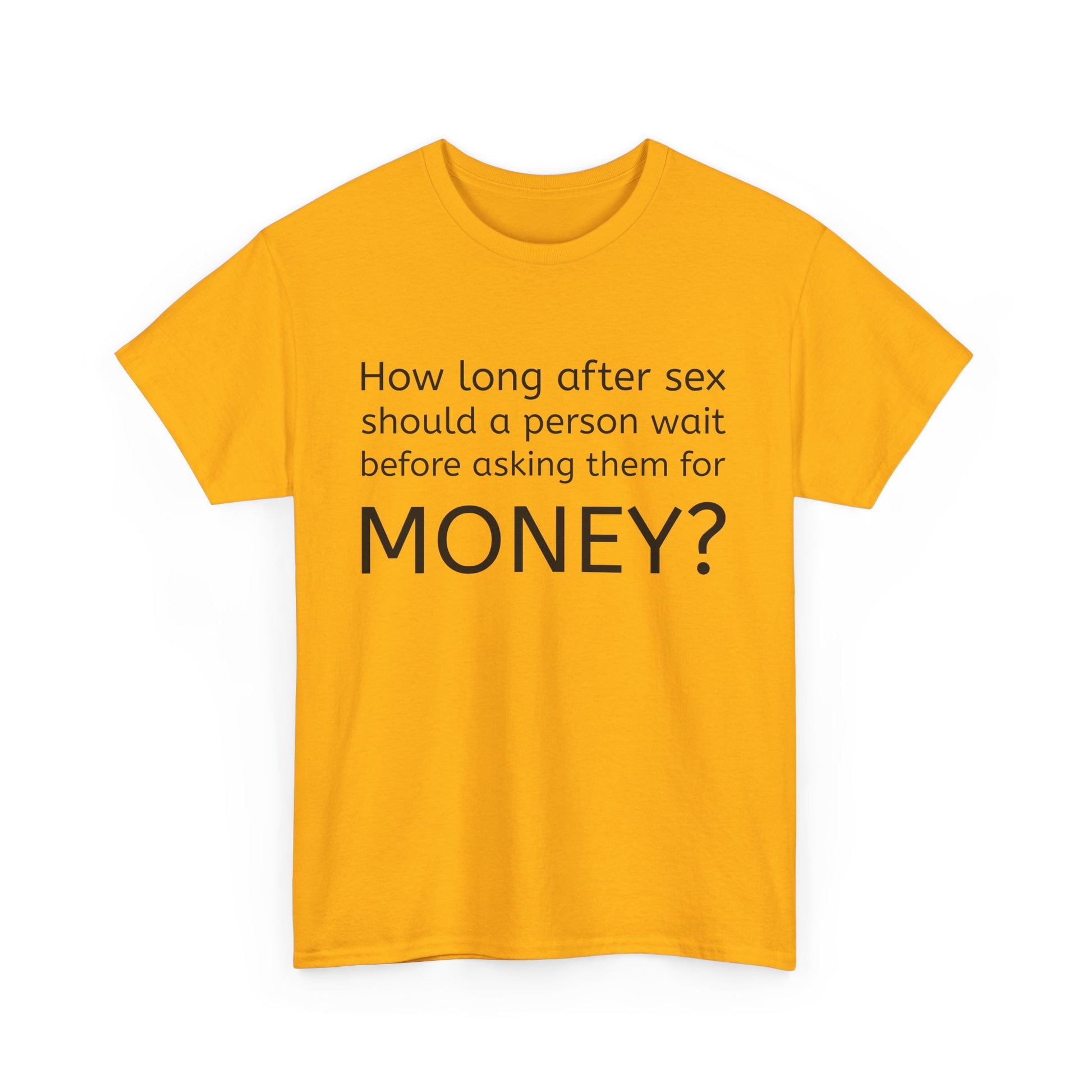 This unisex heavy cotton tee is the perfect blend of comfort and personality. Featuring a thought-provoking quote, it sparks conversation wherever you go. The classic fit and timeless crew neckline ensure it's versatile enough for casual outings or relaxed gatherings. Ideal for those who appreciate humor and like to express themselves through their clothing, this tee is great for friends’ get-togethers, birthdays, or just to make someone smile. It's a fantastic choice for holidays like Halloween or April Fool's Day, as well as everyday wear to add a bit of fun to your wardrobe. Humorous Unisex Tee - Funny Money Quote T-Shirt, Casual Wear, Gift for Friends, Birthday Shirt, Unique Conversation Starter