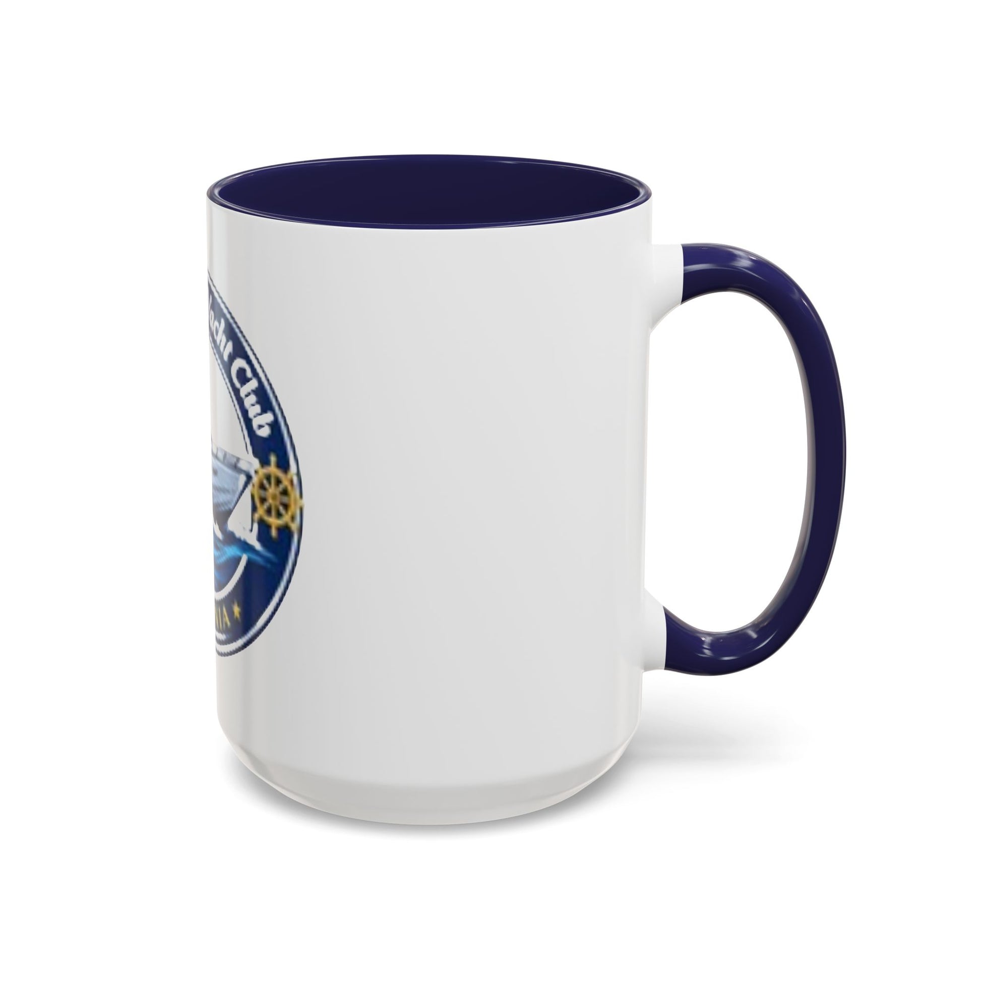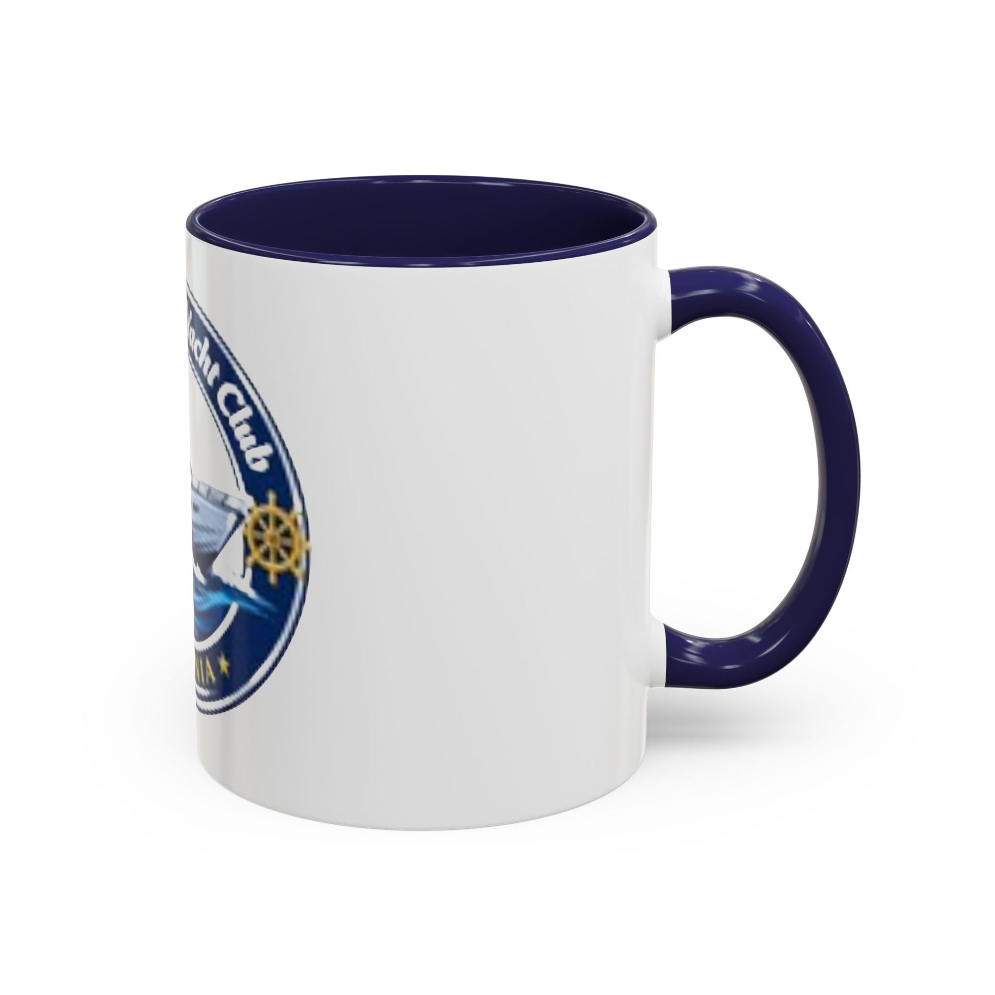 This ceramic accent mug brings boating pride to every morning ritual. The bold yacht-club emblem—crisp navy, gold, and ocean blues—wraps the white glossy surface, while the colored interior and C-handle add a striking contrast. It feels sturdy in hand, holds a generous pour (choose 11 or 15 oz), and stands up to daily use: microwave- and dishwasher-safe with vivid, long-lasting print. Whether nursing coffee before a day on the water or displaying on a home office shelf, the mug quietly celebrates coastal memories and club camaraderie.
