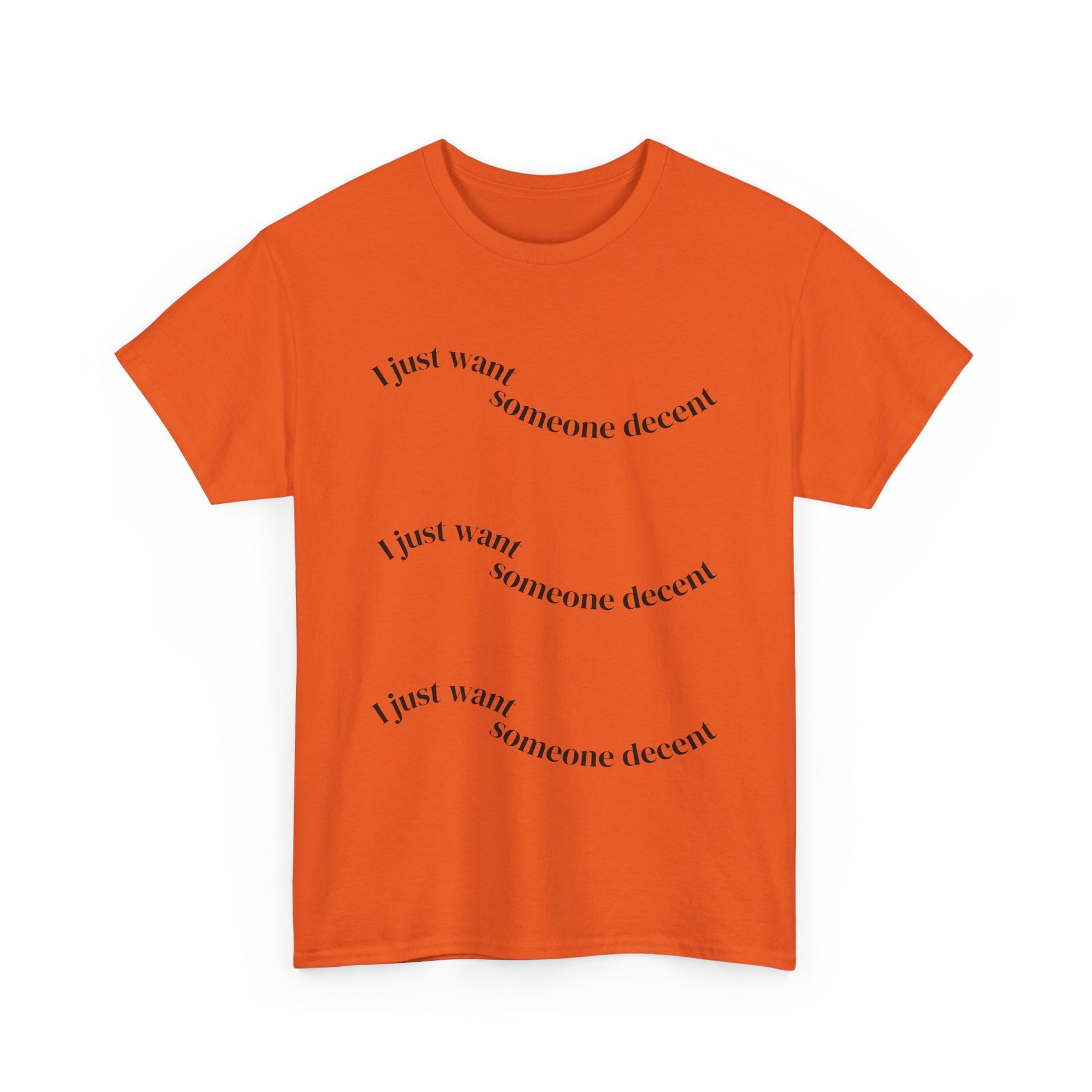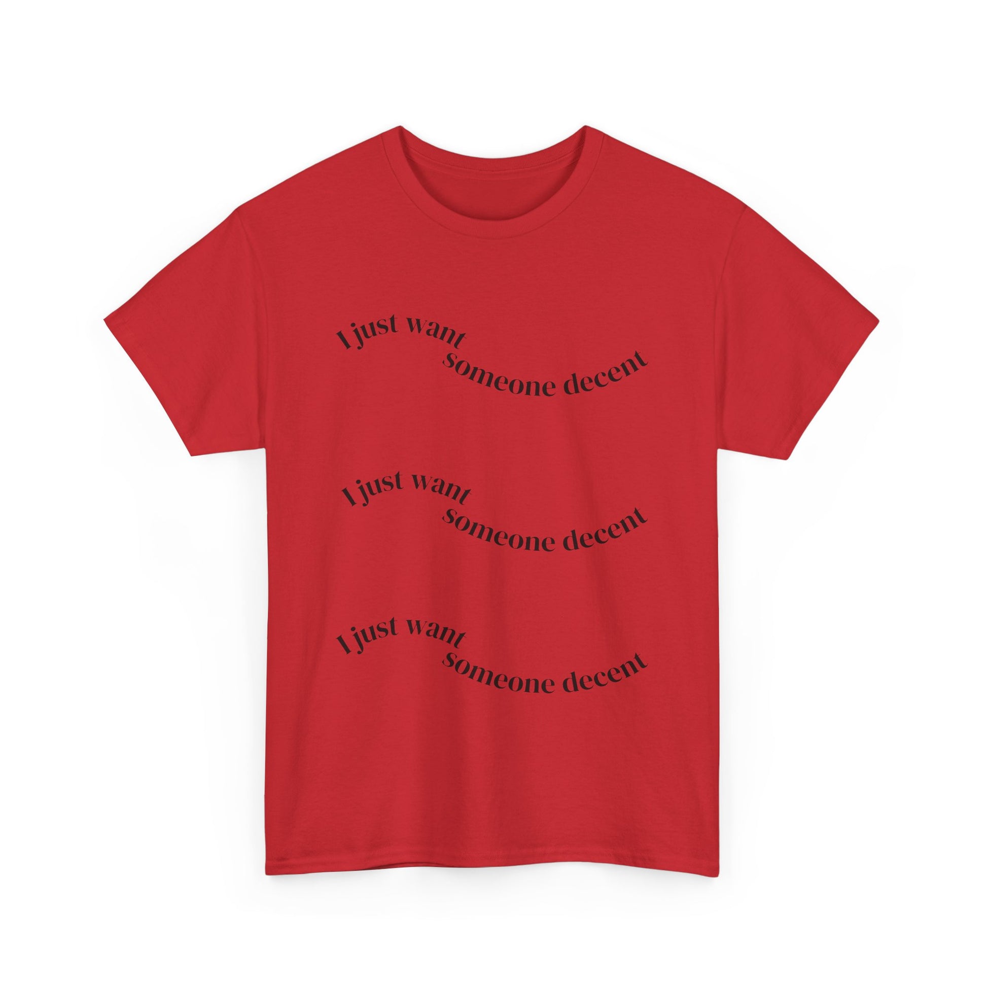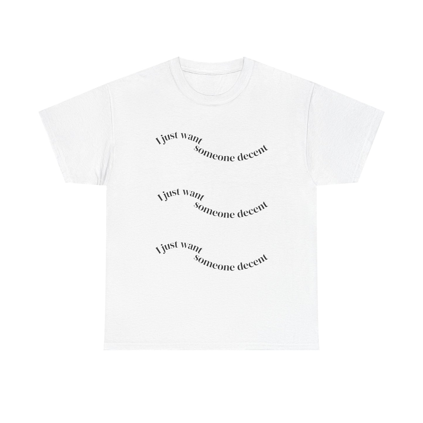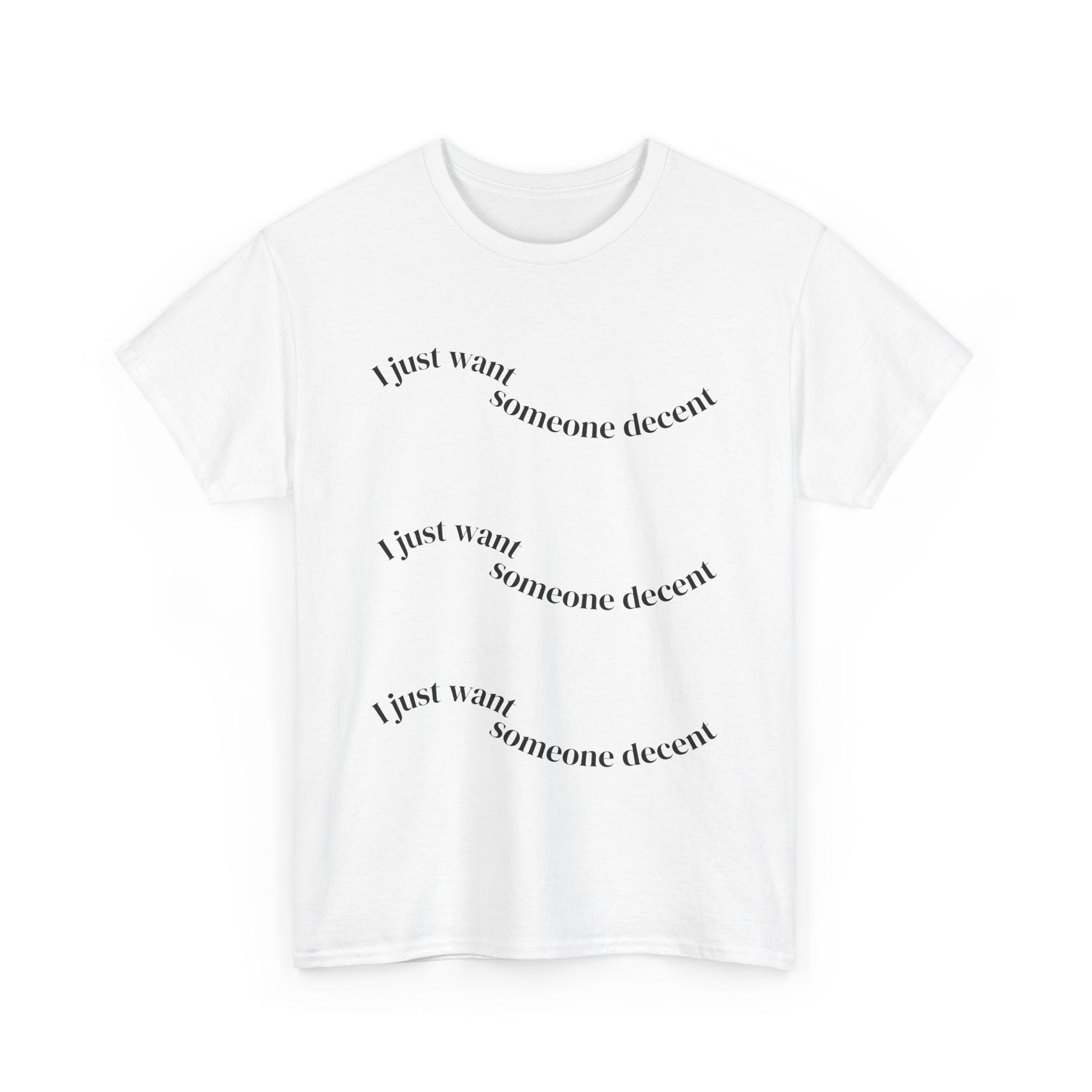 Perfect for gifting on occasions such as birthdays, holidays, or just because, it's a thoughtful present for friends or family who value comfort and self-expression. With its versatile design, it suits anyone, from trendsetters to laid-back dressers. Whether you're enjoying a sunny day outdoors or cozied up indoors, this tee promises an easygoing yet stylish look. Unisex Heavy Cotton Tee - 'I Just Want Someone Decent', Casual Statement Tee, Gift for Friends, Everyday Wear, Trendy Graphic Tee