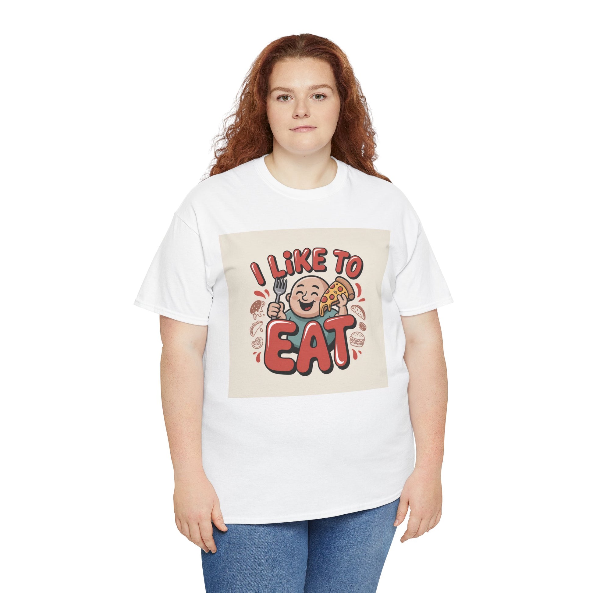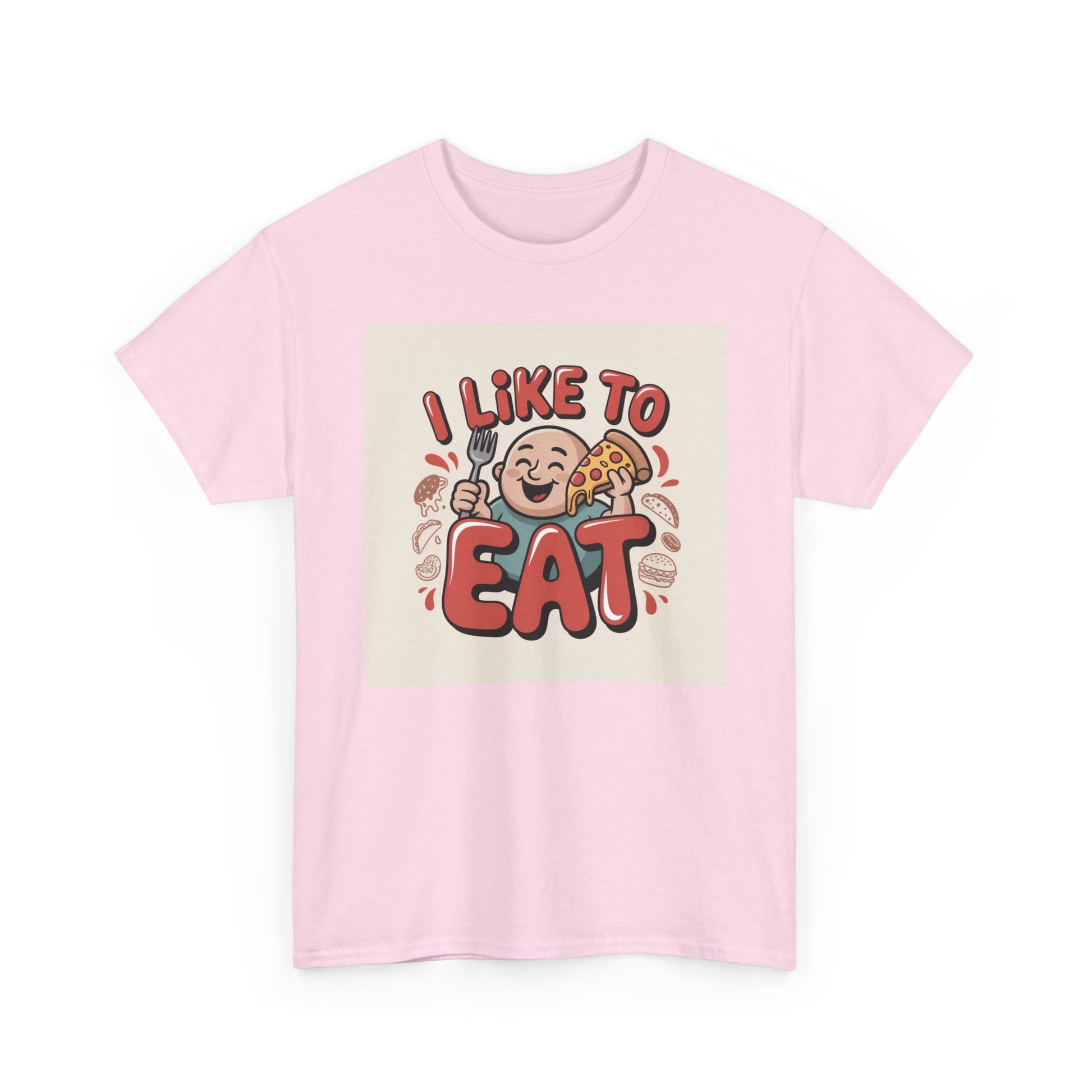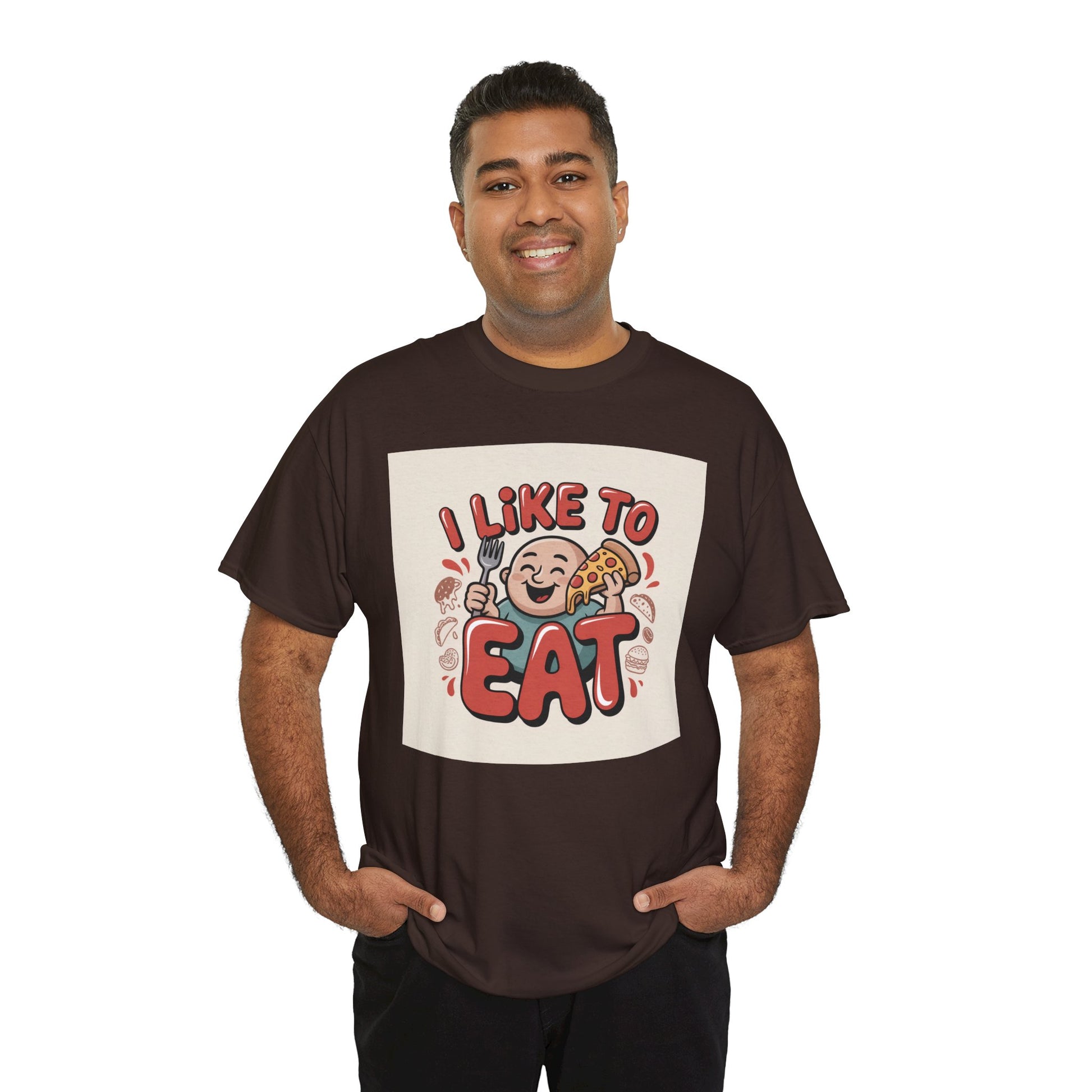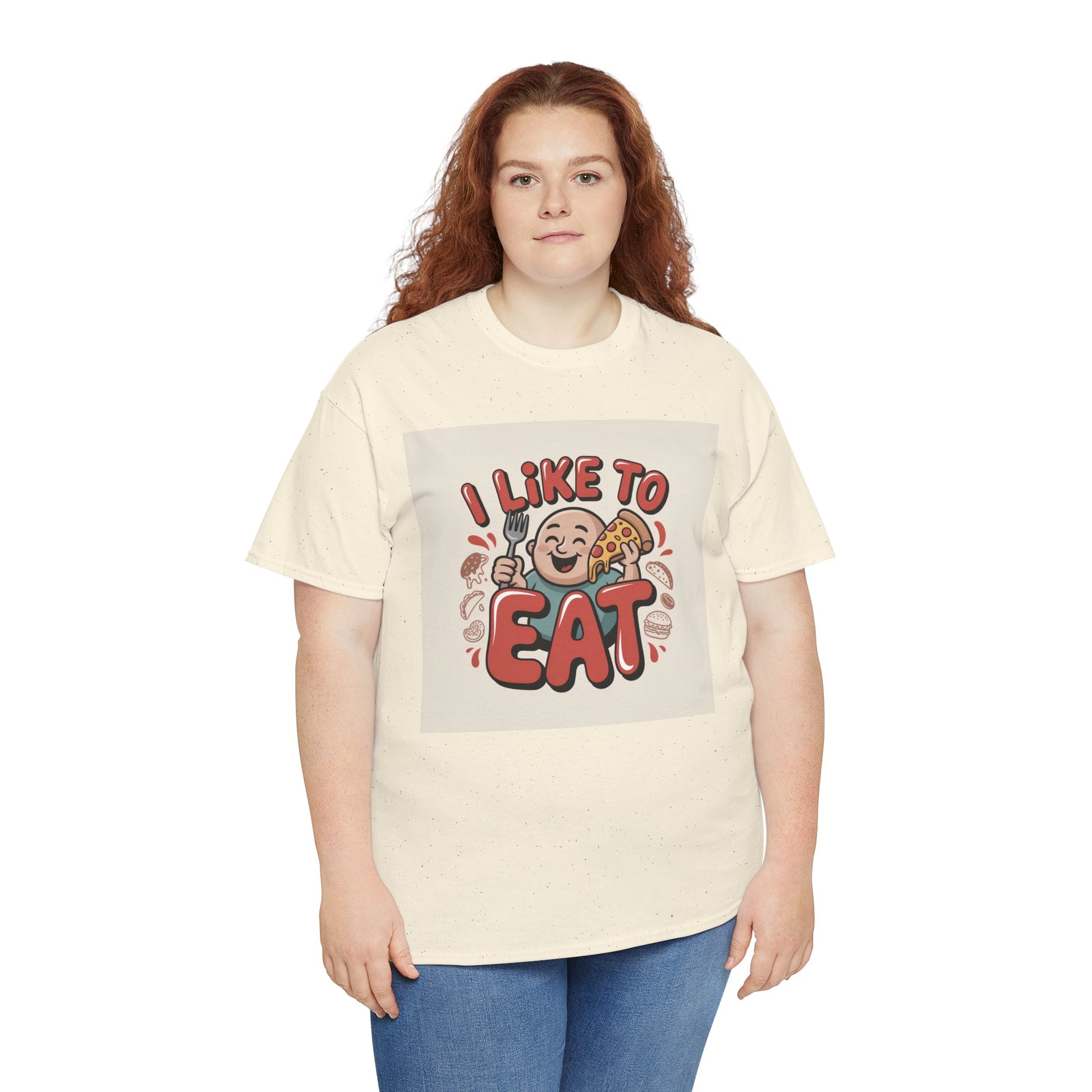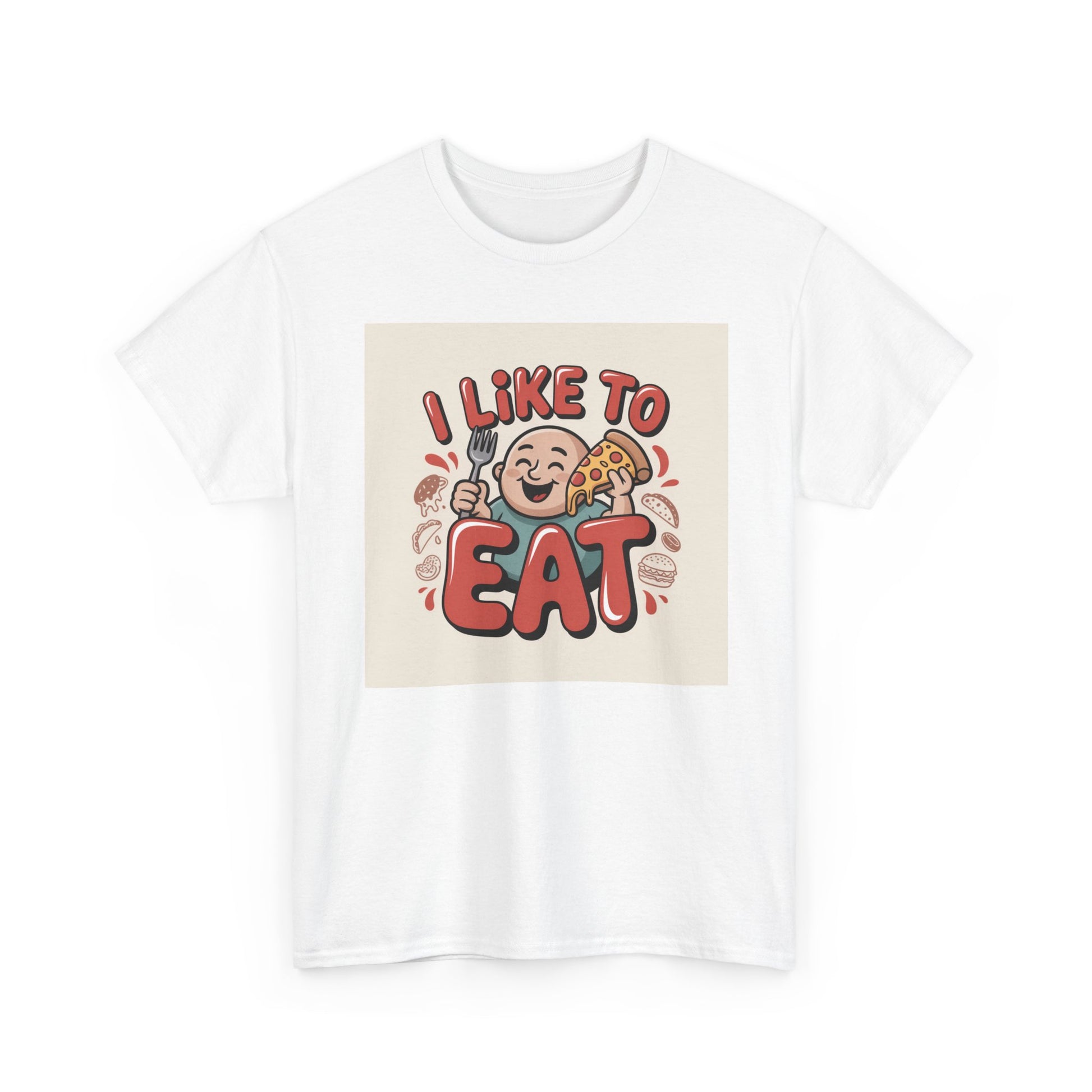 This relaxed, classic-fit tee carries a playful, food-loving vibe. The front features a cheerful cartoon character with bold, rounded lettering that reads “I LIKE TO EAT,” rendered in warm, appetizing colors. Soft, medium-weight cotton drapes comfortably while ribbed neckline and shoulder tape add structure that keeps the shirt looking good after many wears. The print blends DTG and DTF techniques for crisp color and fine detail — the illustration stays bright and lively wash after wash. Wear it to casual meetups, brunch runs, or lazy weekend cooking sessions; it reads like an honest declaration for anyone who celebrates food with a grin.