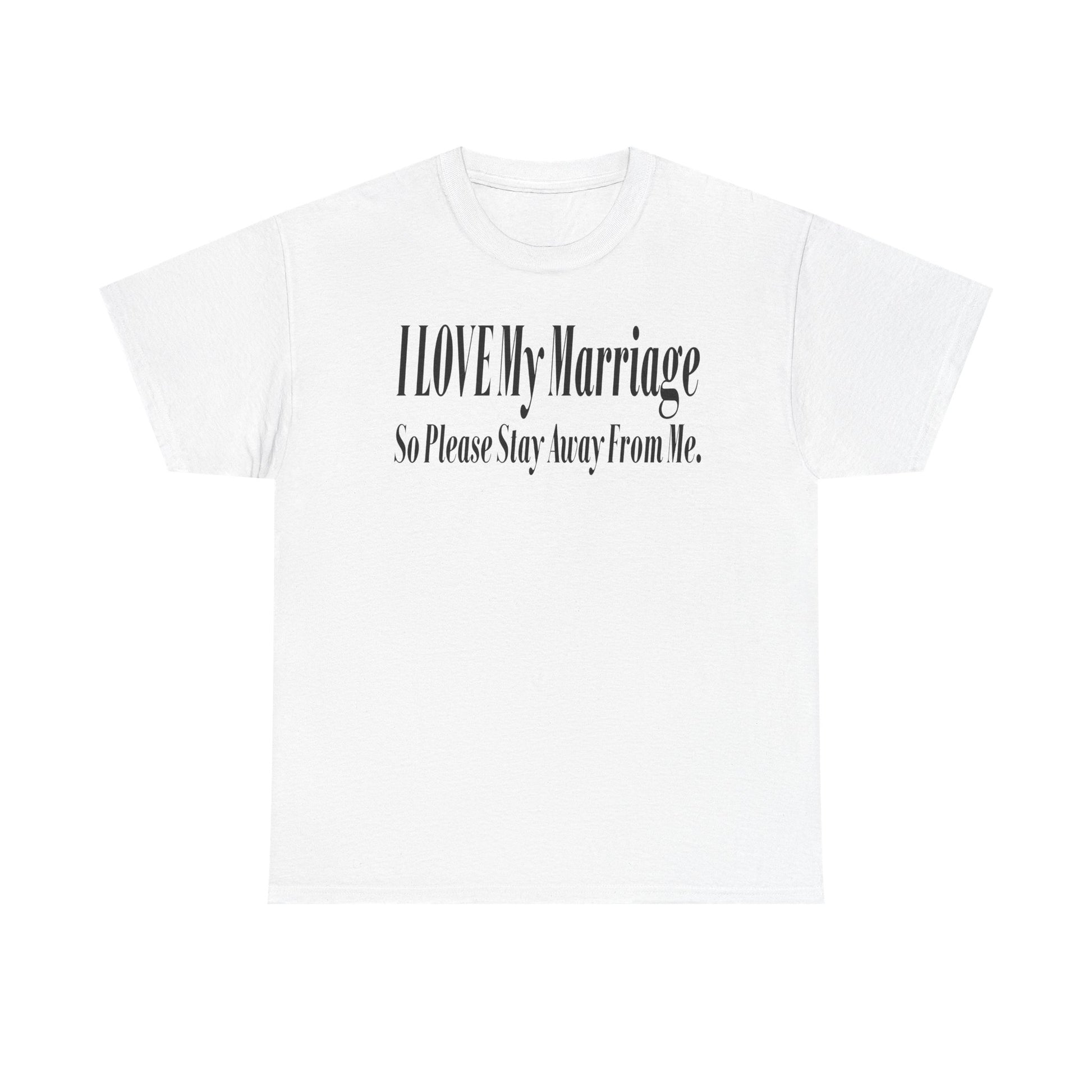 Introducing a charming Unisex Heavy Cotton Tee perfect for expressing your love in a fun way! This t-shirt carries a humorous message that’s sure to spark conversations and laughter among friends and family. Its comfortable fit and classic design make it ideal for casual outings or lounging at home. Whether you’re celebrating an anniversary, wedding, or simply want to showcase your commitment, this tee is a delightful addition to your wardrobe. It’s perfect for couples, newlyweds, or anyone who appreciates a lighthearted take on love. Wear it at gatherings, parties, or while running errands – it's versatile enough for any occasion!