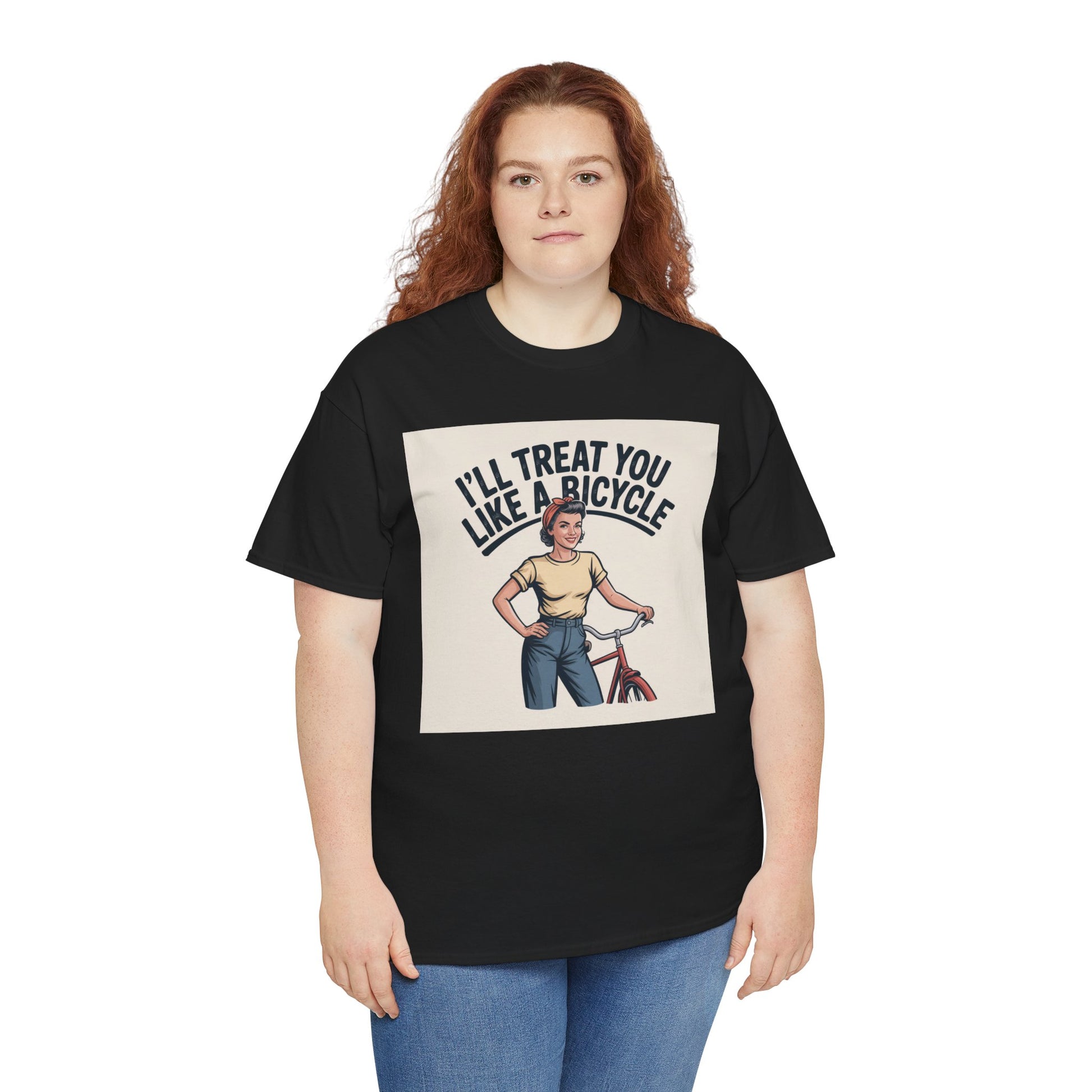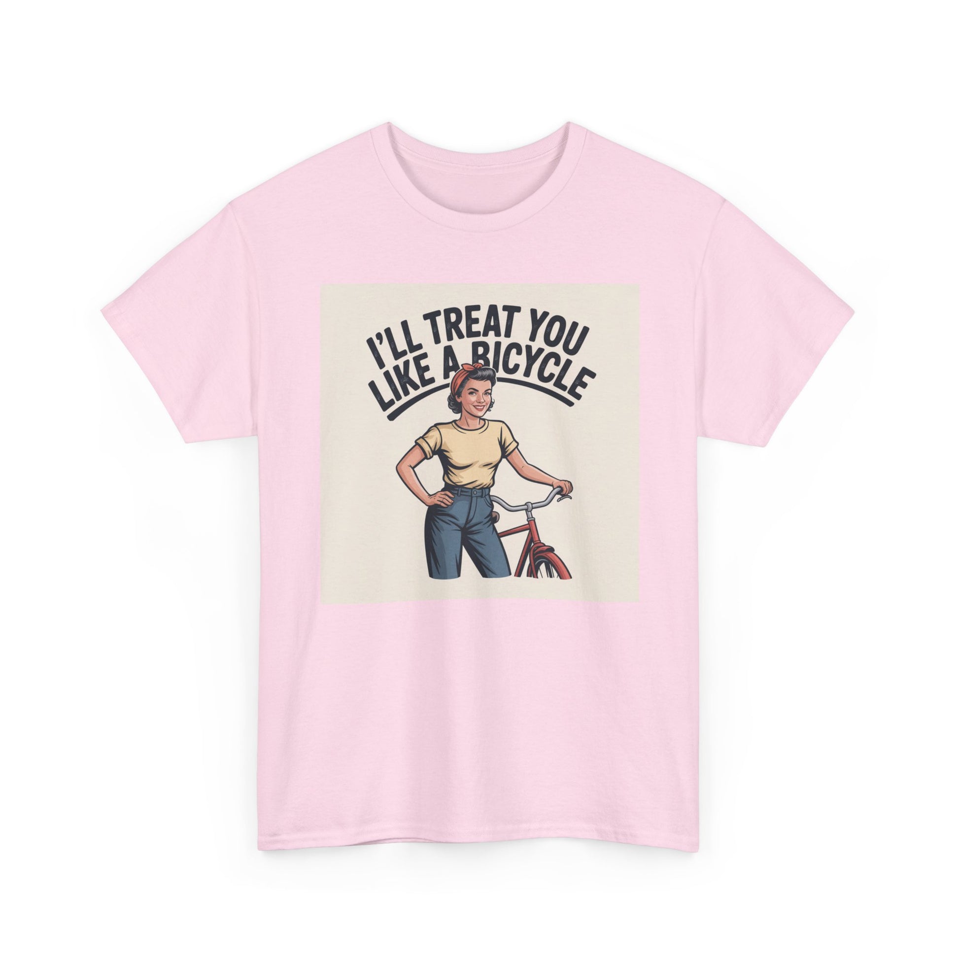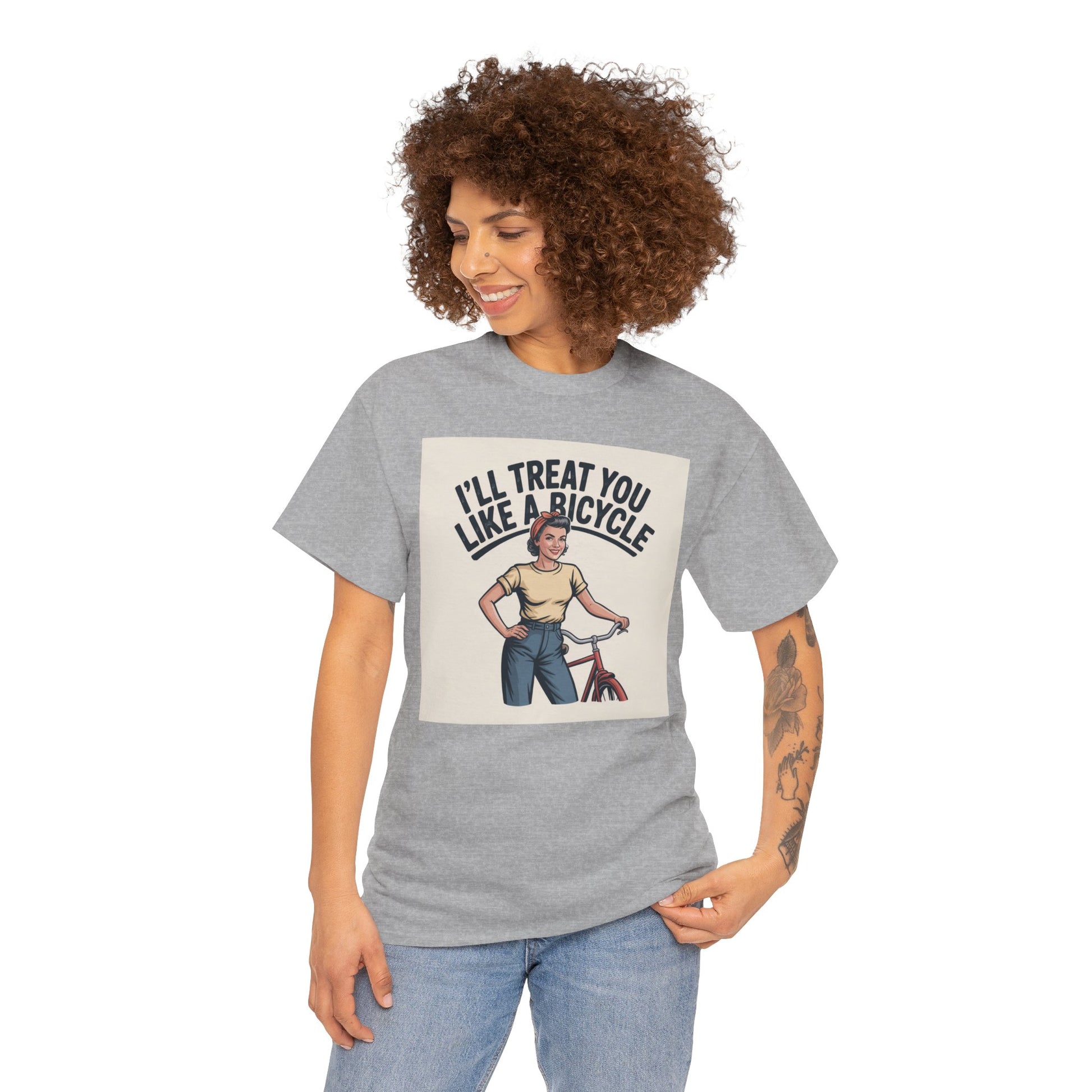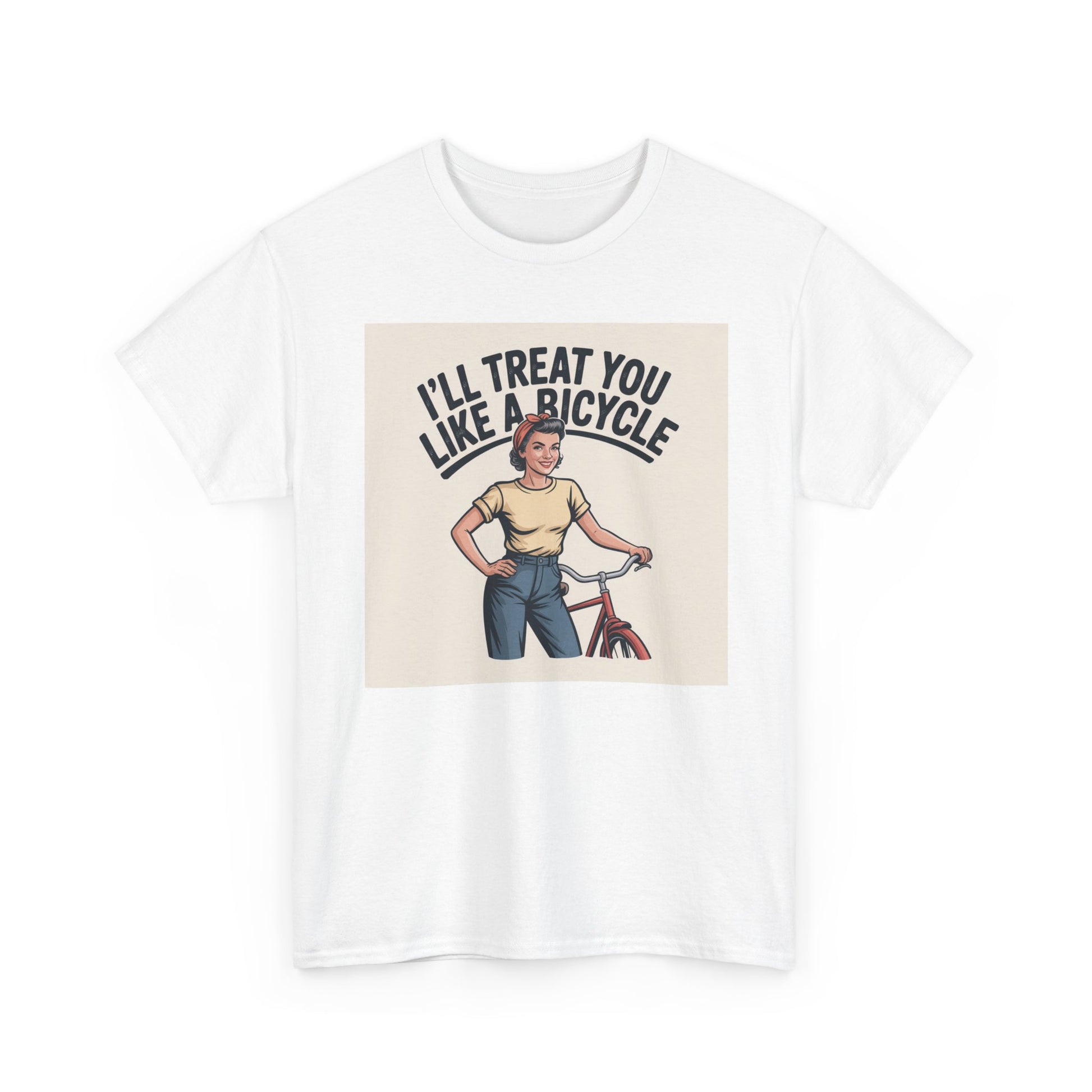 I'll Treat You Like a Bicycle Tee — Vintage Woman Biker Graphic T-Shirt