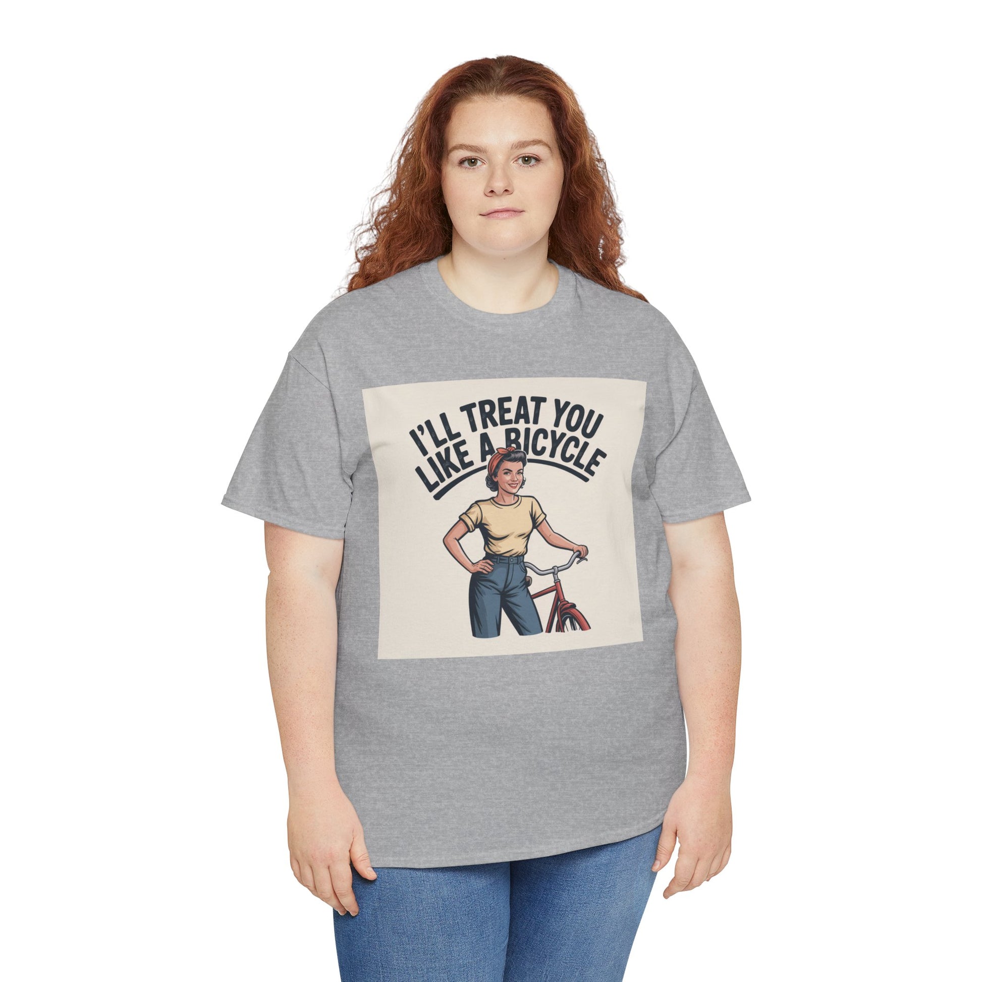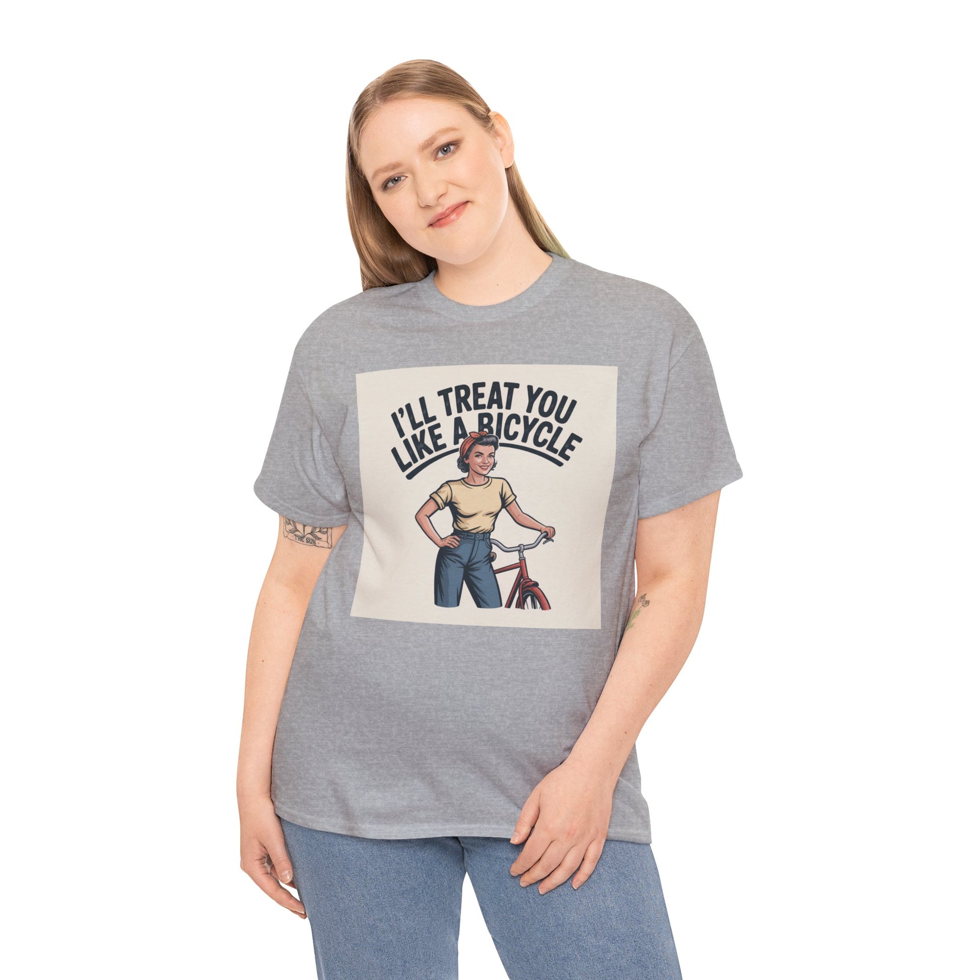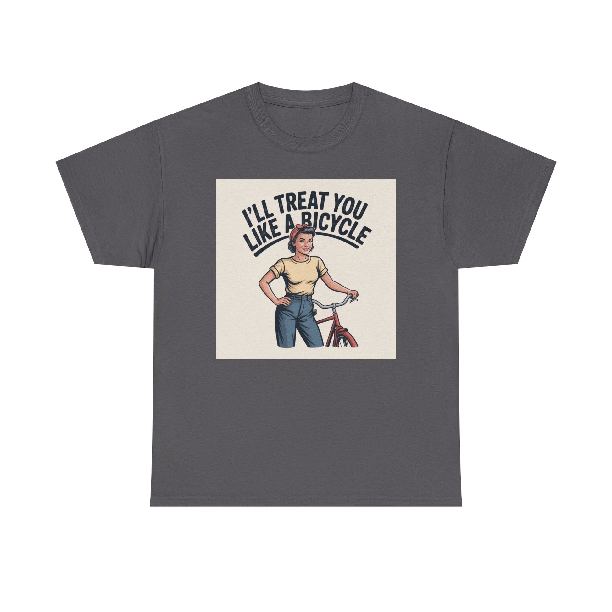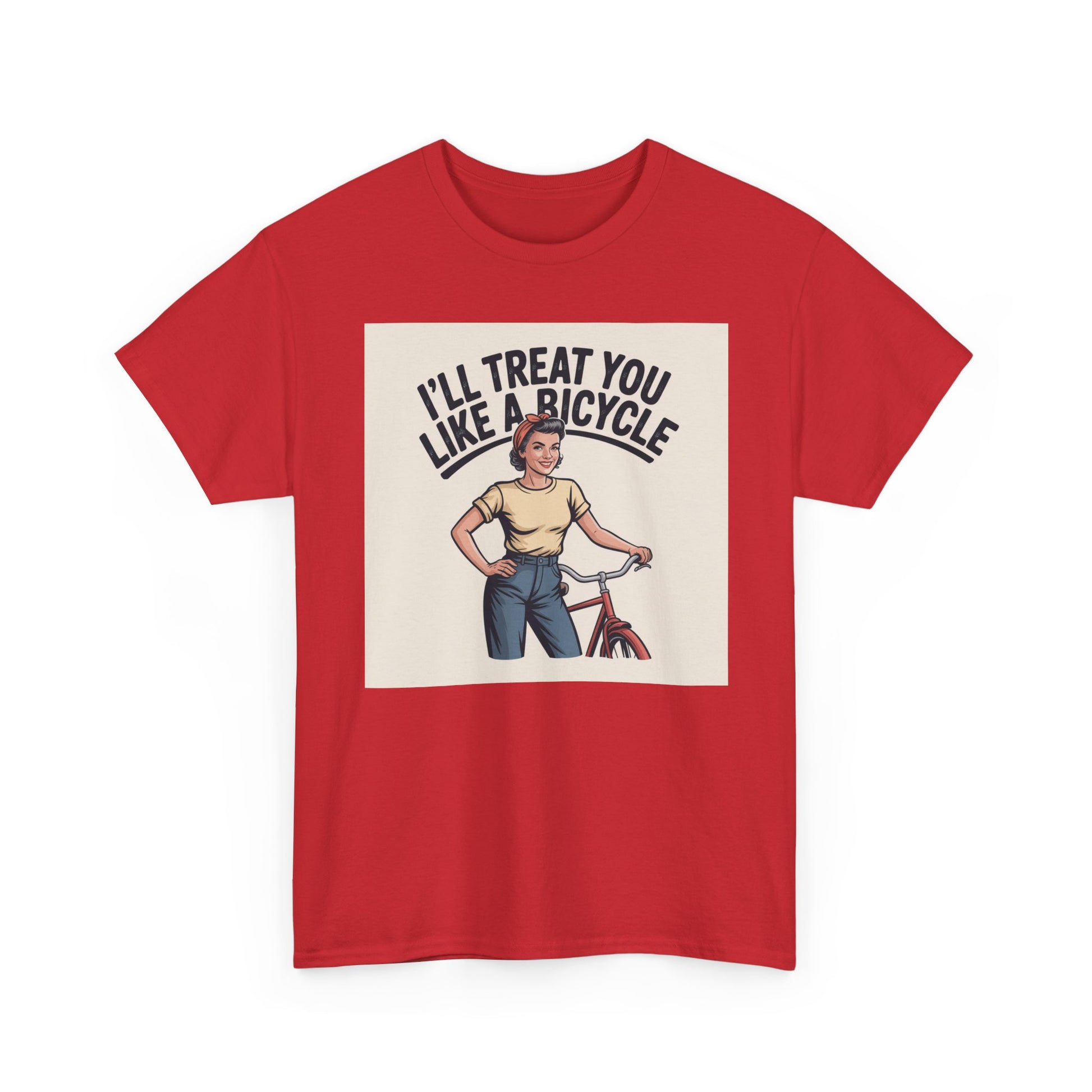 I'll Treat You Like a Bicycle Tee — Vintage Woman Biker Graphic T-Shirt