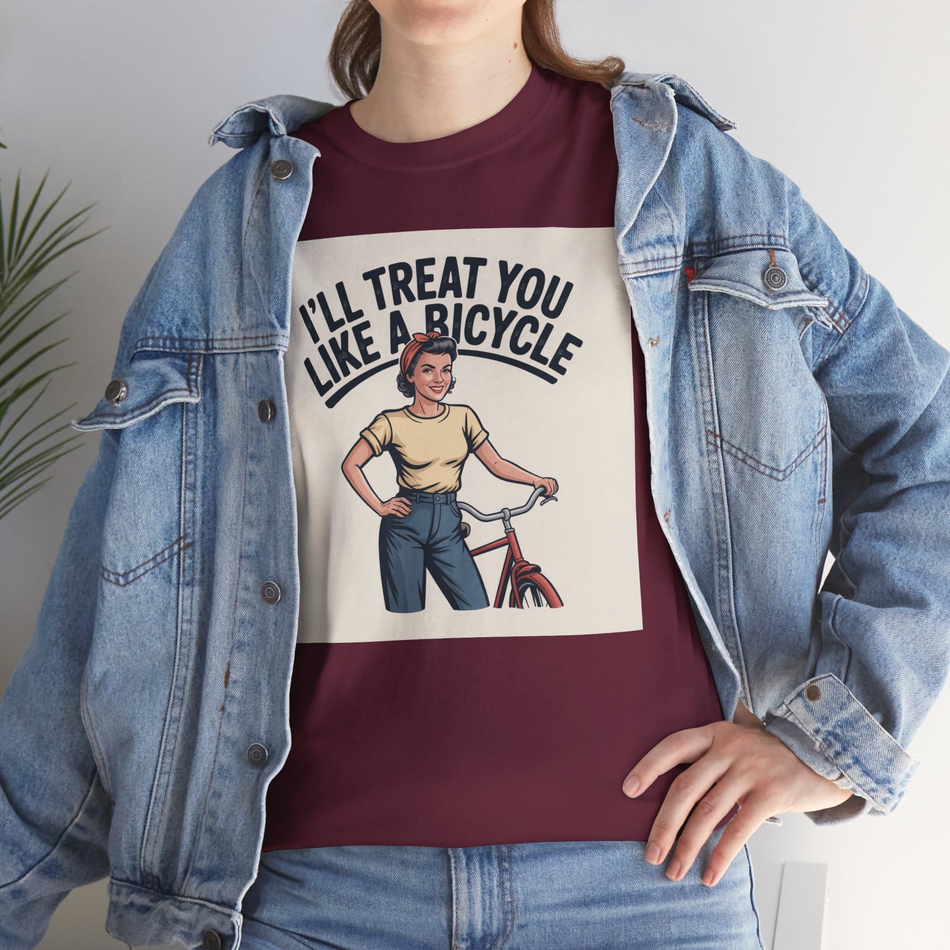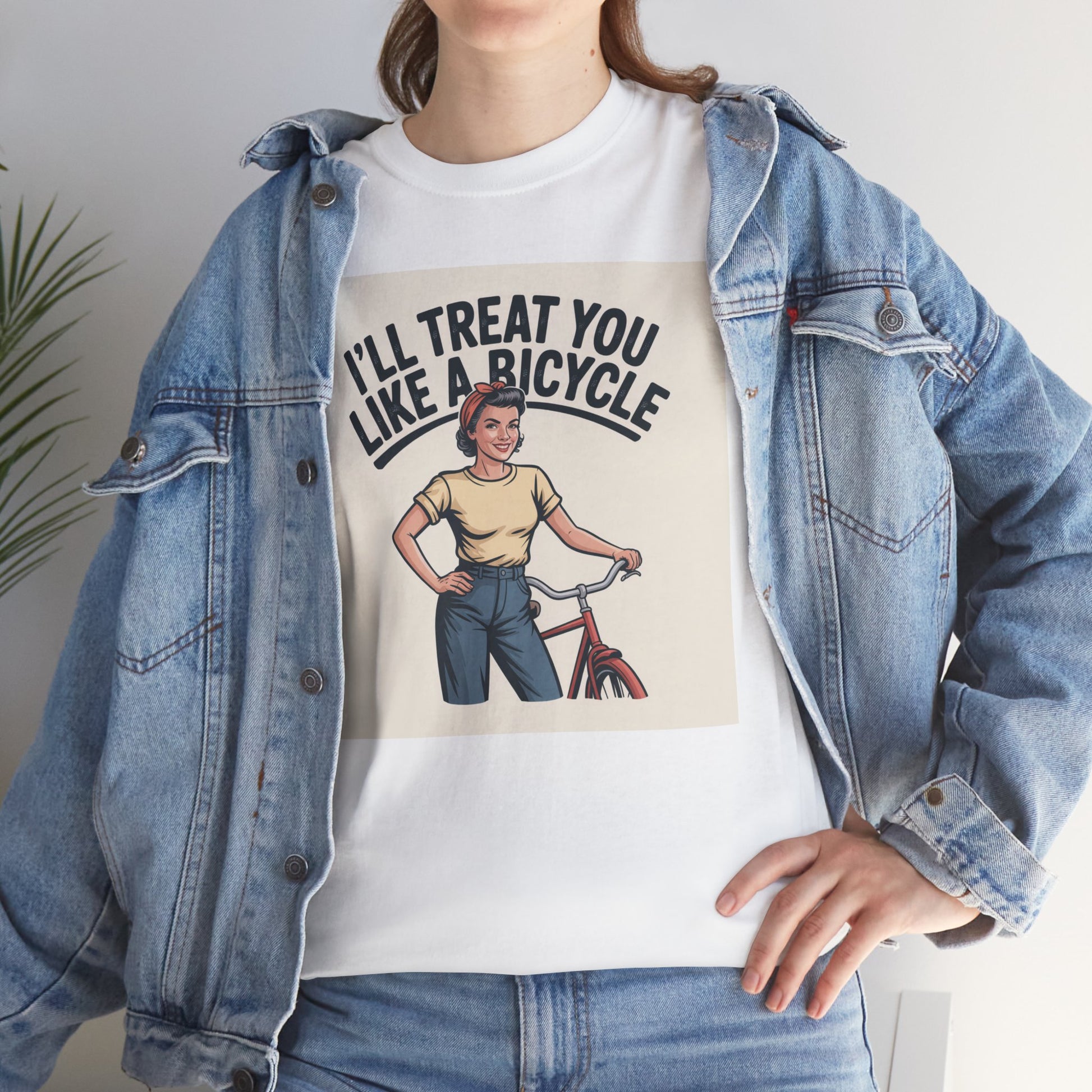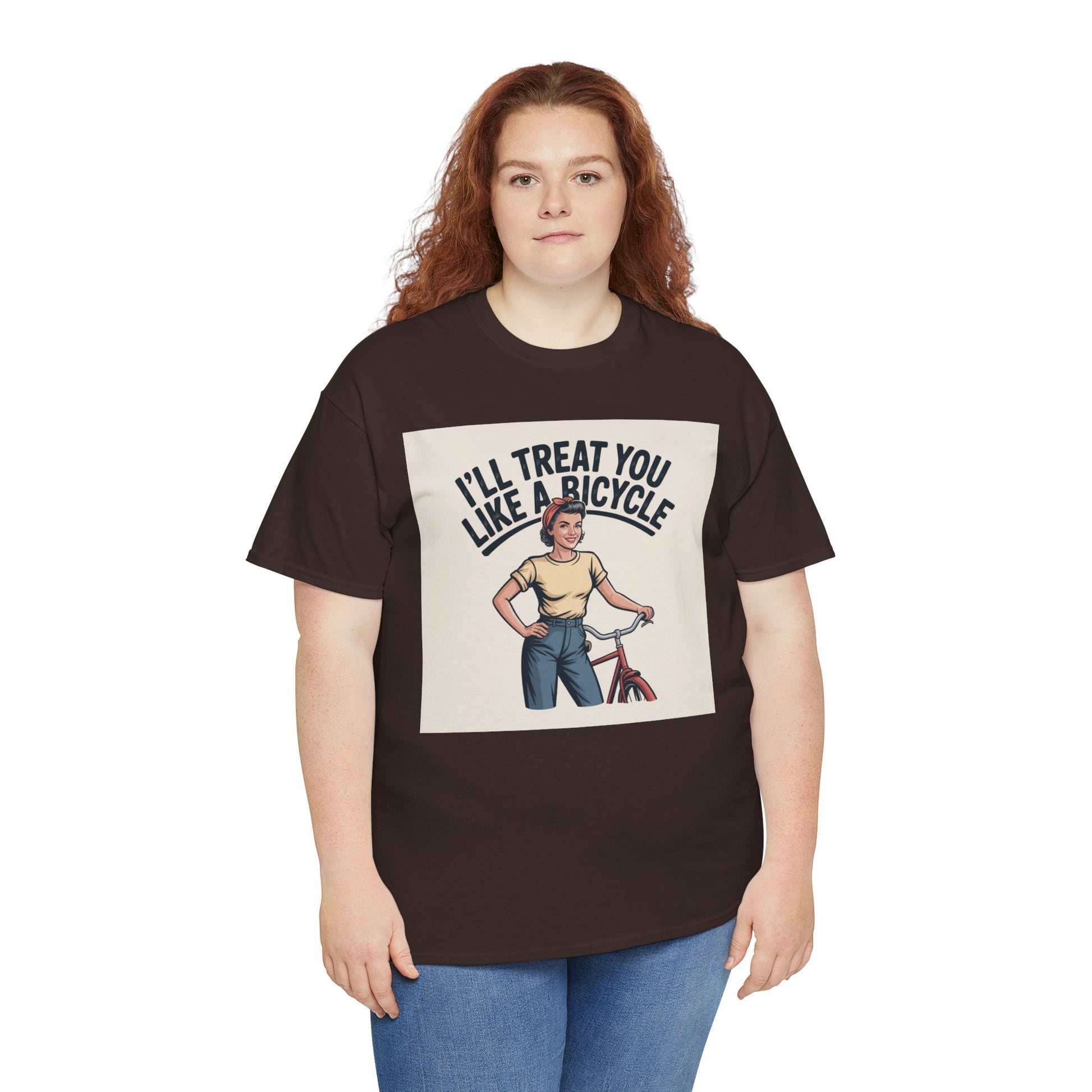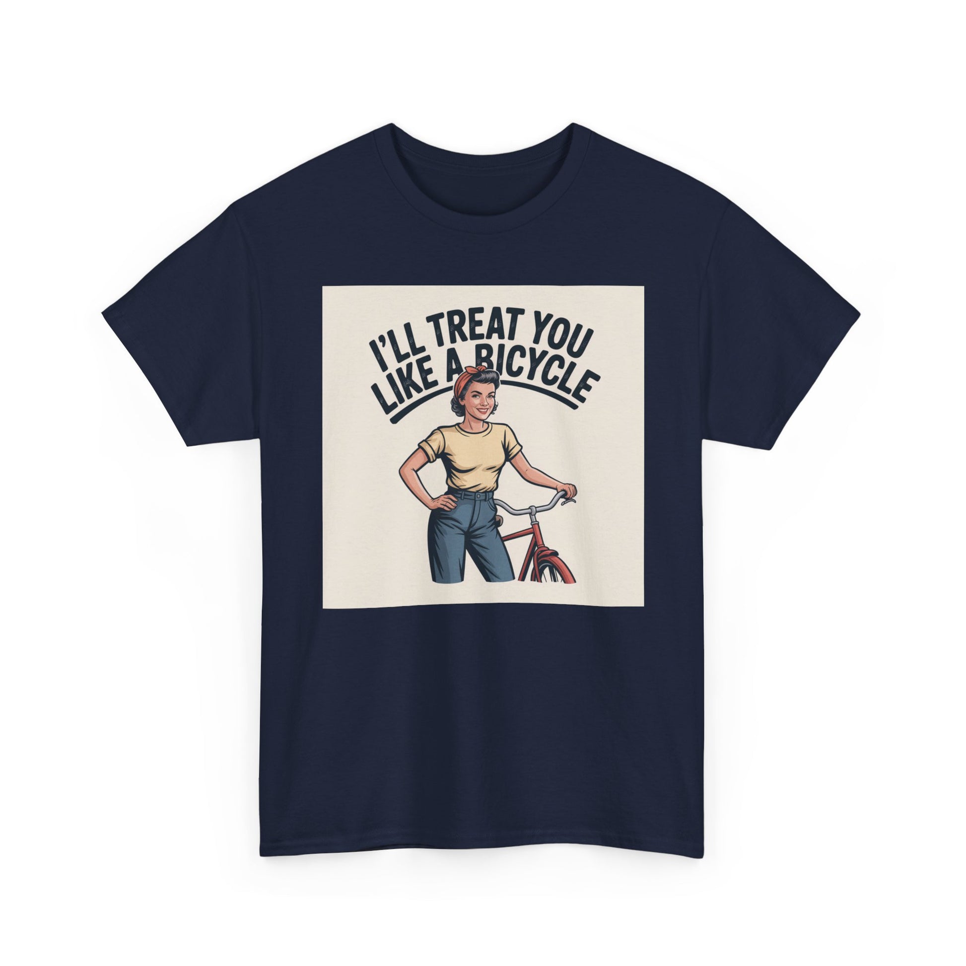 I'll Treat You Like a Bicycle Tee — Vintage Woman Biker Graphic T-Shirt
