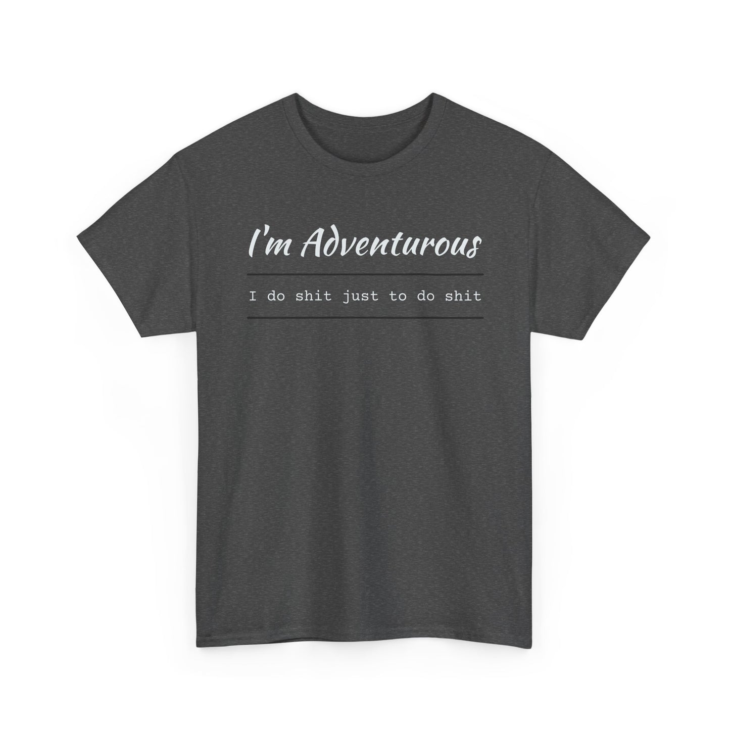 Elevate your wardrobe with this Unisex Heavy Cotton Tee, designed for those who embrace a sense of adventure. Its classic fit and crew neckline make it versatile enough for both casual outings and semi-formal gatherings. This tee radiates a carefree vibe, perfect for individuals who appreciate comfort and style. It makes a fantastic gift for birthdays, holidays, or any celebration where you want to inspire a spirit of exploration. Ideal for adventure enthusiasts or anyone looking to showcase their personality effortlessly, this tee is sure to become a staple in any wardrobe. Unisex Adventurous Tee – Fun Statement Shirt, Gift for Adventurers, Offbeat Humor Tee, Travel T-Shirt, Casual Everyday Wear