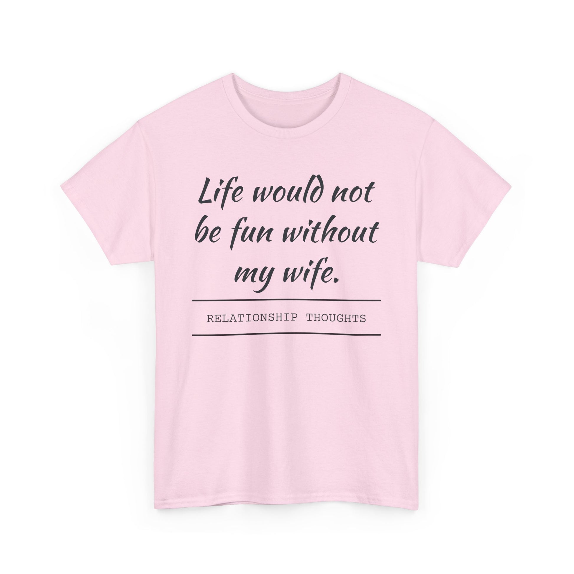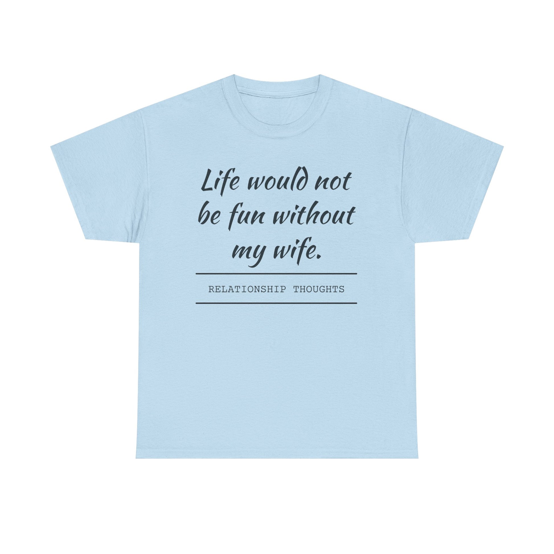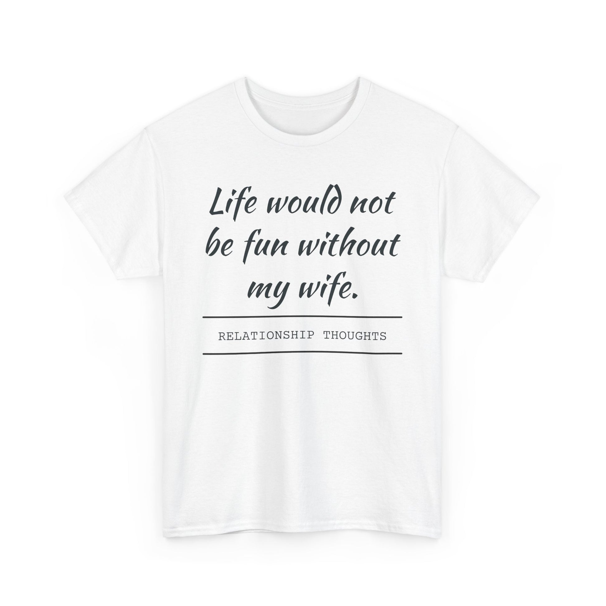 Introducing the perfect addition to your casual wardrobe—a versatile Unisex Heavy Cotton Tee that effortlessly blends comfort and style. This tee offers a soft, smooth fabric that feels great against the skin and is perfect for any occasion. The timeless crew neckline and classic fit make it suitable for both laid-back outings and semi-formal gatherings. Designed with an eye-catching print, this tee is ideal for those who appreciate unique expressions of love and humor, making it a thoughtful gift for partners, friends, and family. It is especially perfect for anniversaries, weddings, or as a sweet surprise for your loved one on Valentine's Day. Made with ethically sourced cotton, you can wear this tee with a clear conscience. Its durable construction ensures it will stand the test of time, becoming a favorite piece in your collection. Whether you're lounging at home or out with friends, this Unisex Heavy Cotton Tee brings a cheerful atmosphere to any setting, making every moment a bit more special. Life Would Not Be Fun Without My Wife - Unisex Heavy Cotton Tee