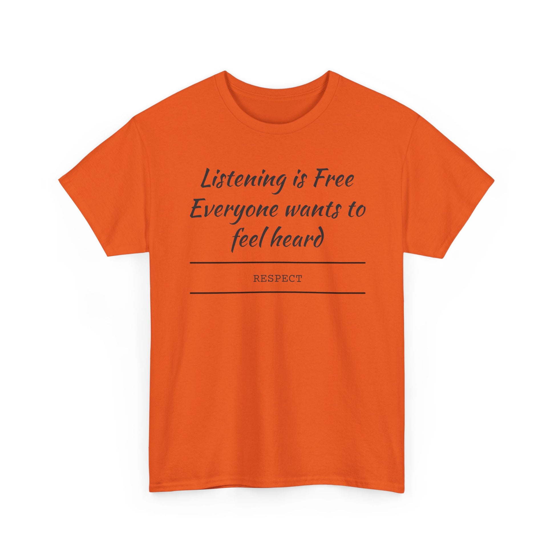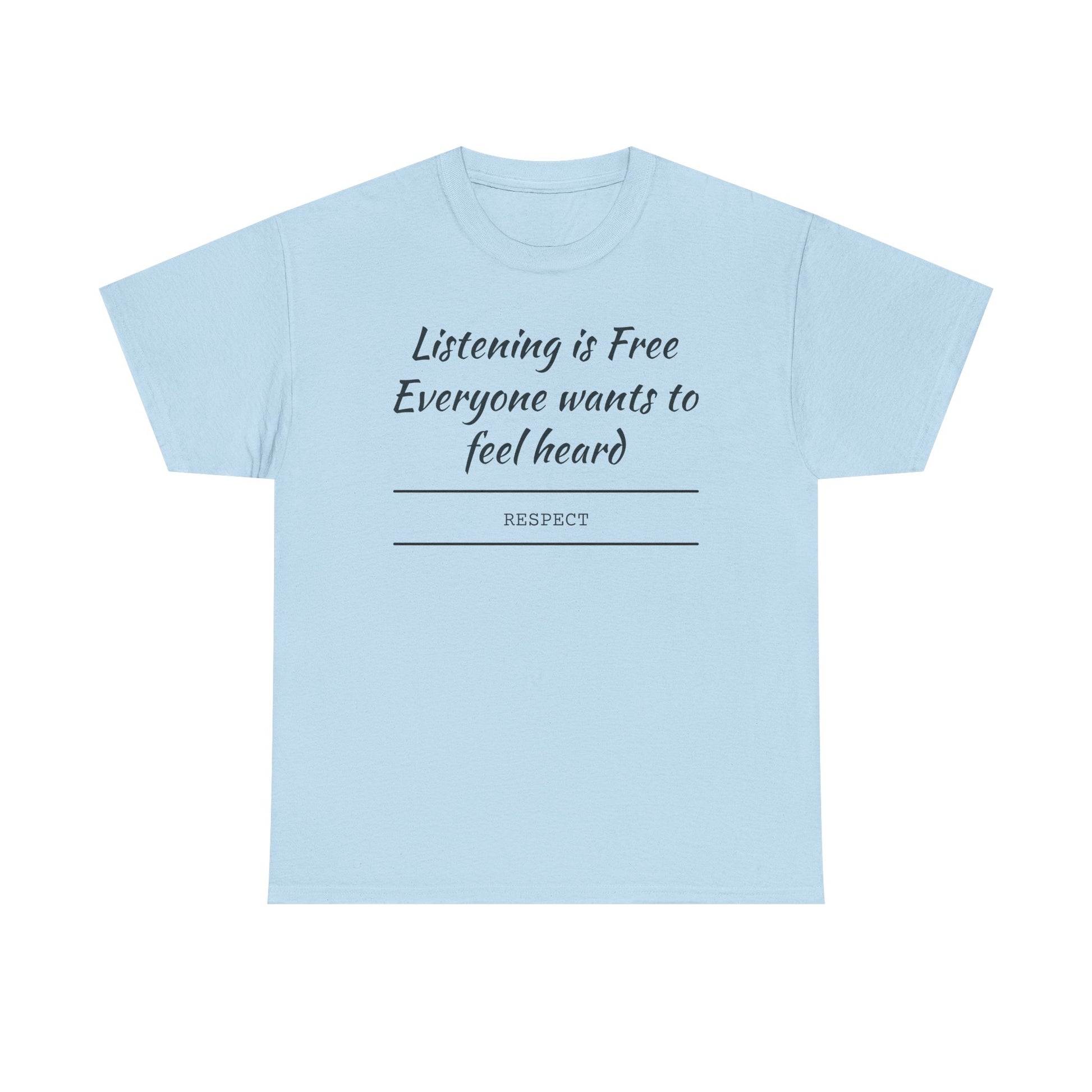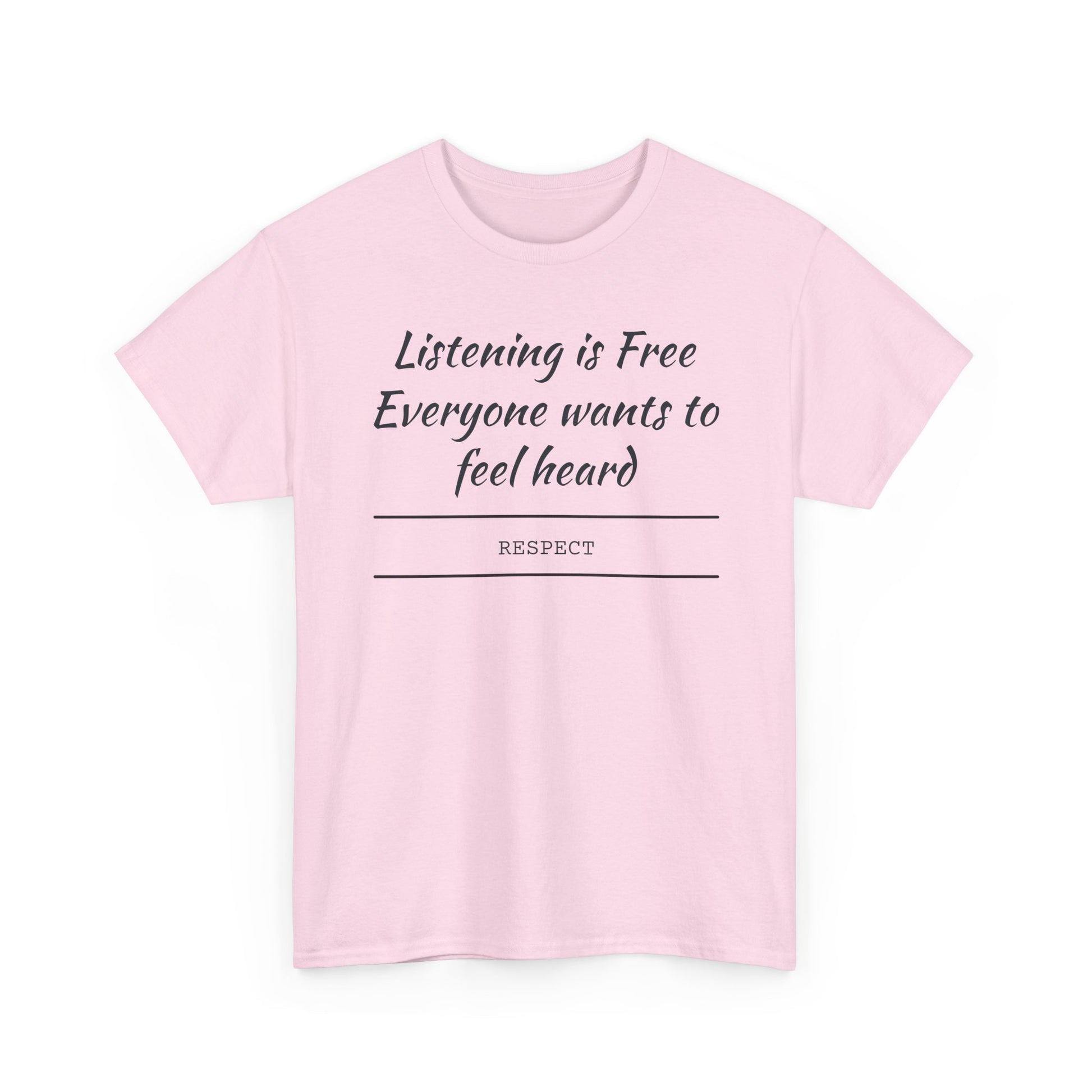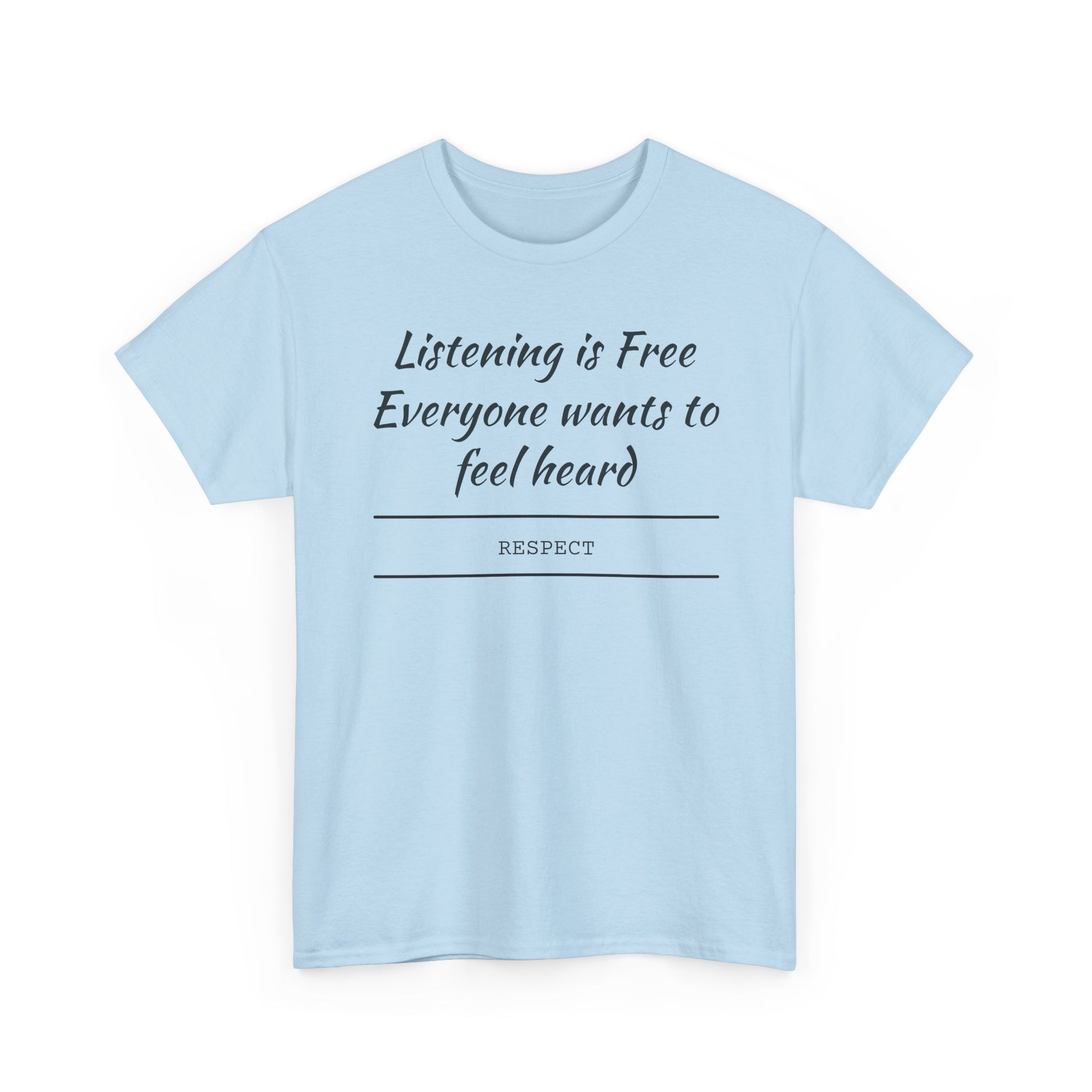Whether you're gifting it for a birthday, celebrating a holiday, or simply treating yourself, this tee is relevant for occasions like International Day of Listening or National Kindness Day. It's a versatile wardrobe staple for adults who appreciate thoughtful designs and comfortable wear, making it a fantastic addition to anyone's closet. Empowering Message Tee - Listening is Free, Feel Heard, Unisex Heavy Cotton Shirt for Advocates, Gifts, Self-Care, Awareness Events
