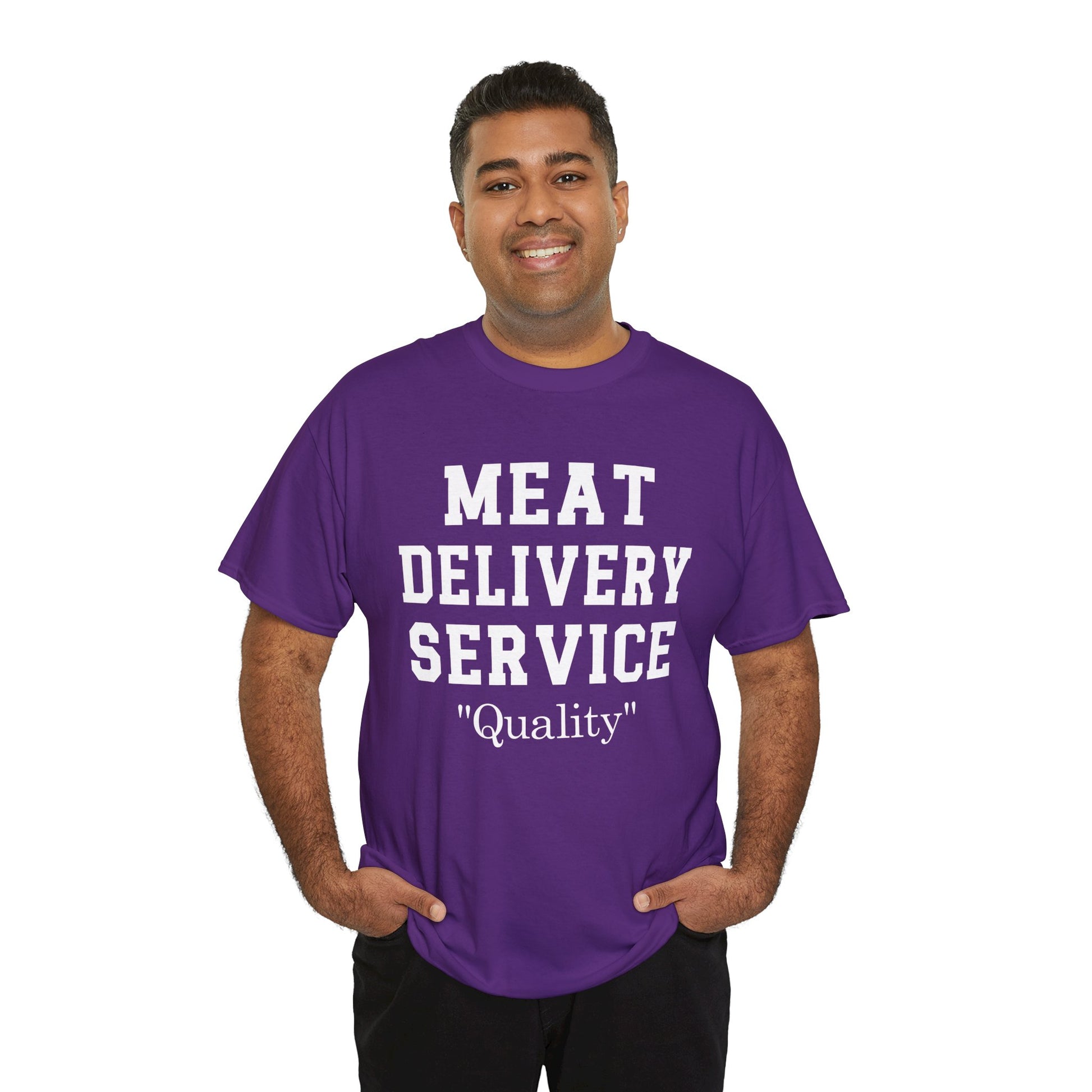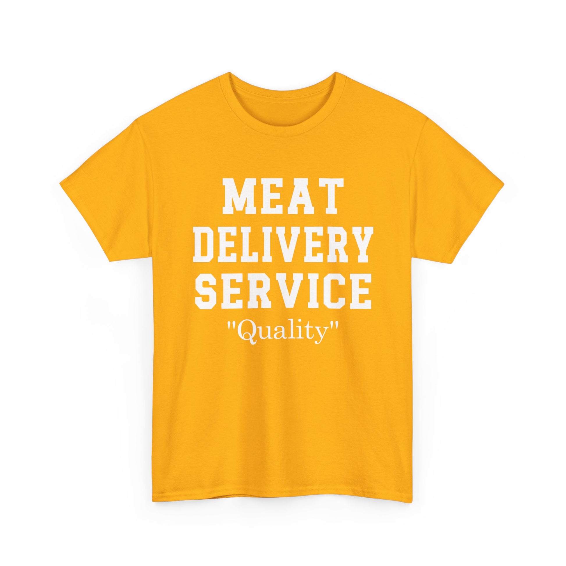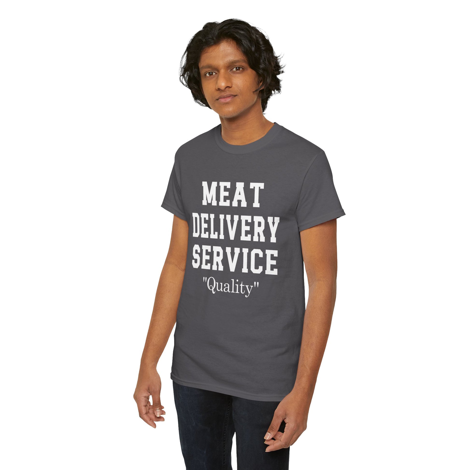 Elevate your wardrobe with this stylish Unisex Heavy Cotton Tee. Crafted for both comfort and versatility, this tee strikes the perfect balance between casual and chic. Its classic fit and crew neckline make it an ideal choice for everyday wear, while the unique "Meat Delivery Service" design adds a fun twist that is sure to turn heads. Perfect for meat lovers, food enthusiasts, or anyone seeking to make a statement with their fashion choices. This tee is a great gift for friends or family who cherish a lighthearted approach to life, making it suitable for casual outings, gatherings, or holidays like Barbecues or Food Festivals. Its strong, smooth fabric allows for vibrant printing, ensuring your chosen graphic remains sharp and clear wash after wash. Make a standout addition to your collection that reflects your personality and brings a smile to those around you! Funny Meat Delivery Service Tee, Unisex Cotton Shirt, Foodie Gift, BBQ Lover Apparel, Unique T-Shirt for Friends