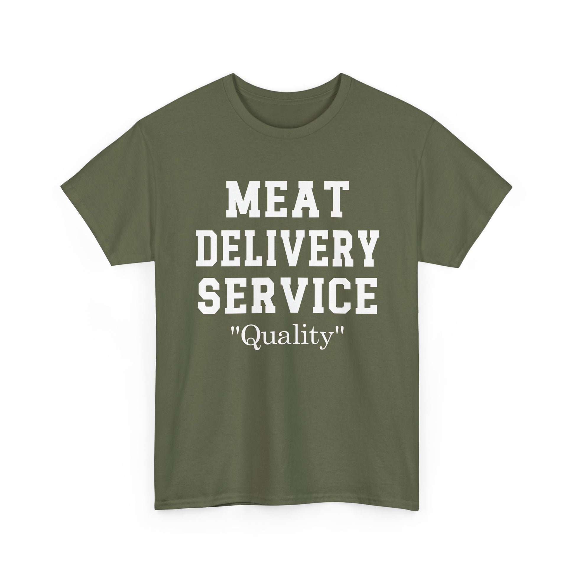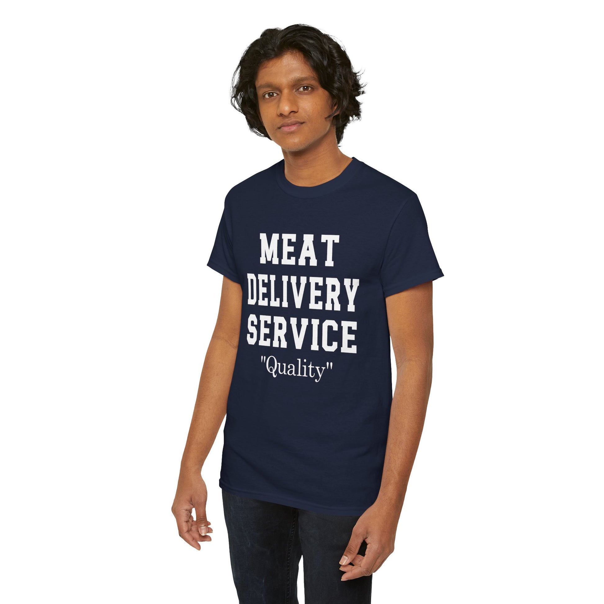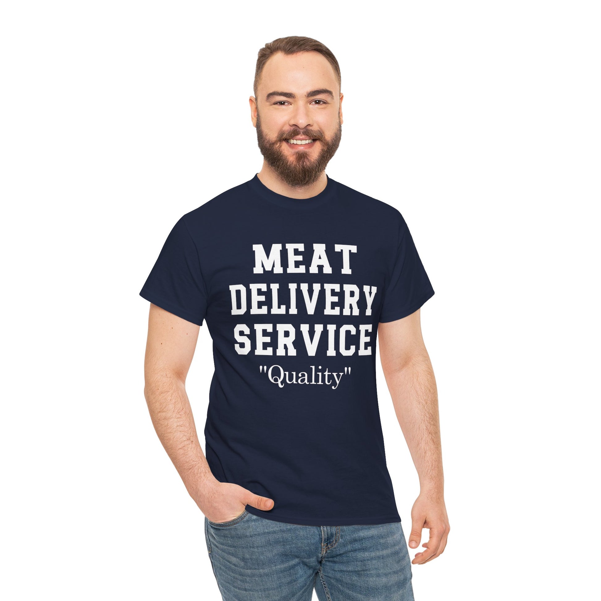 Elevate your wardrobe with this stylish Unisex Heavy Cotton Tee. Crafted for both comfort and versatility, this tee strikes the perfect balance between casual and chic. Its classic fit and crew neckline make it an ideal choice for everyday wear, while the unique "Meat Delivery Service" design adds a fun twist that is sure to turn heads. Perfect for meat lovers, food enthusiasts, or anyone seeking to make a statement with their fashion choices. This tee is a great gift for friends or family who cherish a lighthearted approach to life, making it suitable for casual outings, gatherings, or holidays like Barbecues or Food Festivals. Its strong, smooth fabric allows for vibrant printing, ensuring your chosen graphic remains sharp and clear wash after wash. Make a standout addition to your collection that reflects your personality and brings a smile to those around you! Funny Meat Delivery Service Tee, Unisex Cotton Shirt, Foodie Gift, BBQ Lover Apparel, Unique T-Shirt for Friends