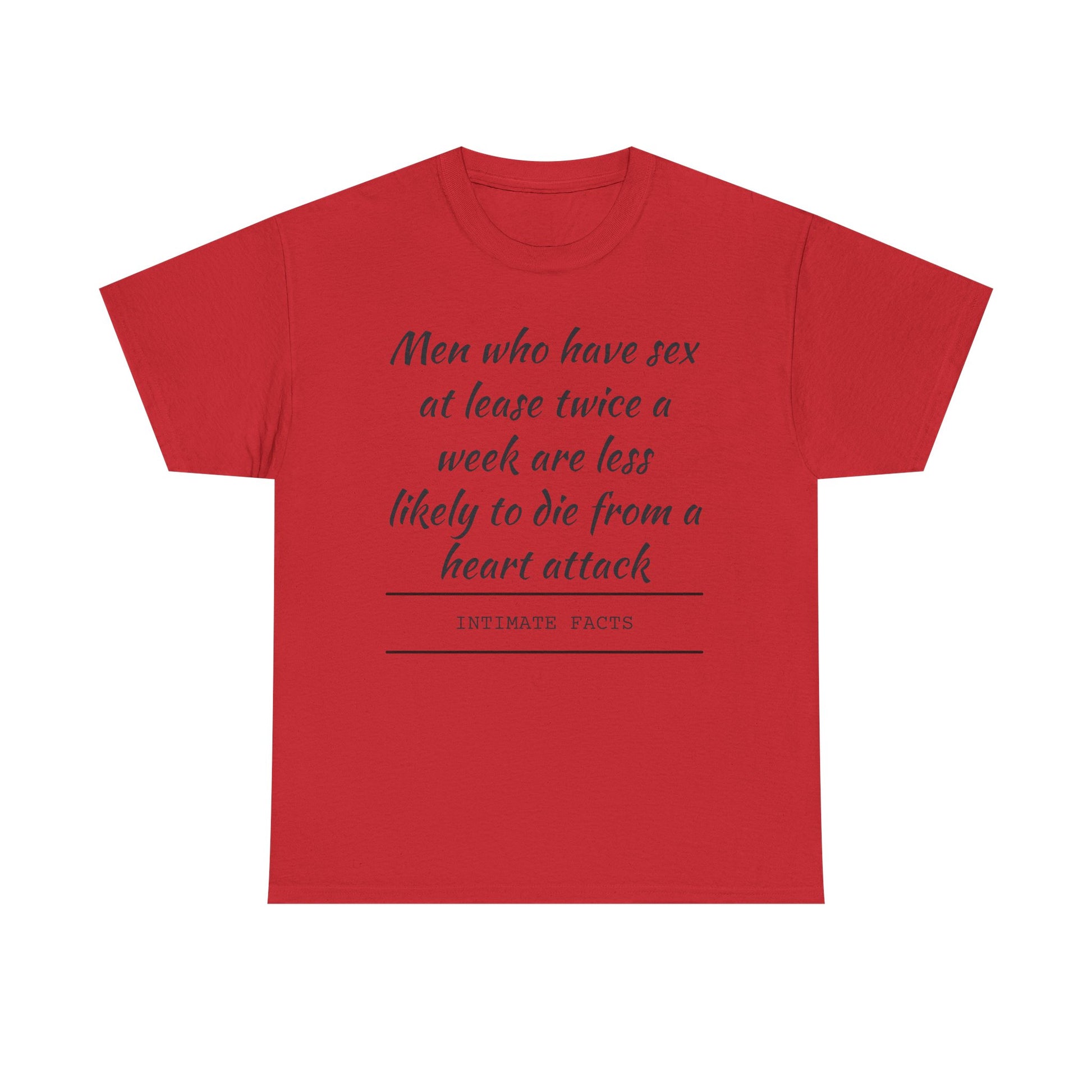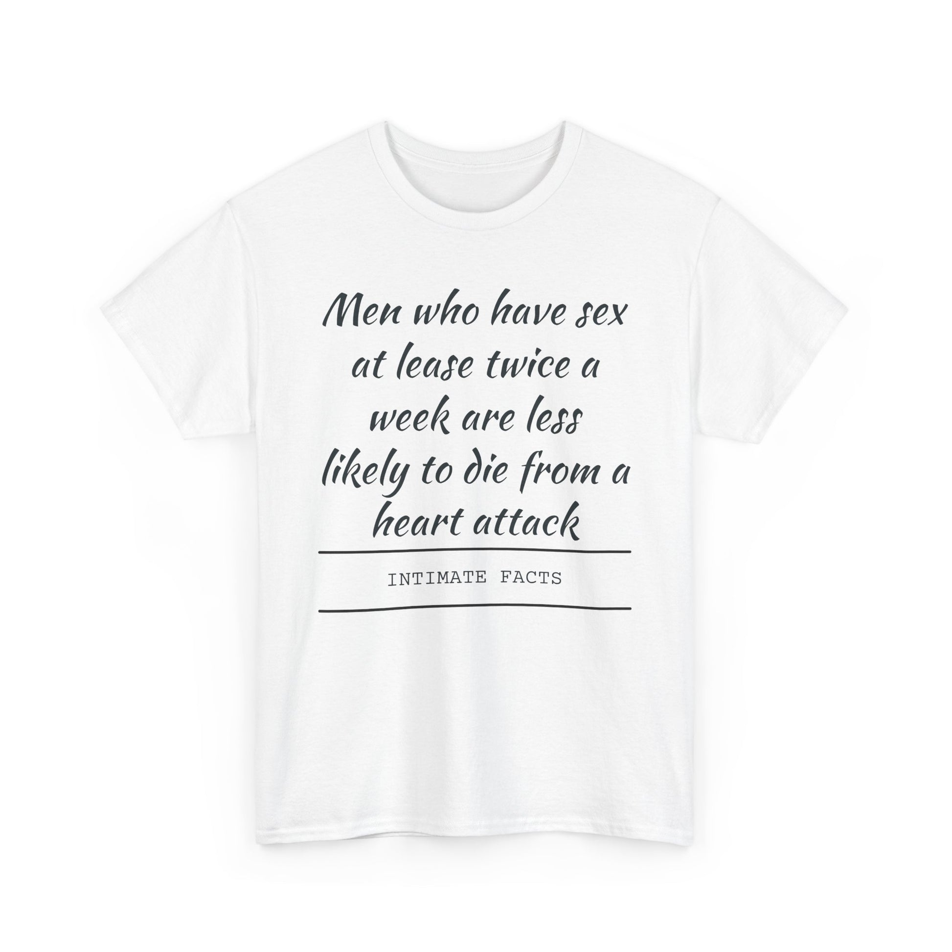 Introducing a statement Unisex Heavy Cotton Tee that combines comfort with a unique message. This tee brings a fun and lighthearted vibe to any casual outing, making it a perfect addition to your wardrobe or for gifting. Whether you're celebrating a birthday, enjoying a laid-back gathering with friends, or just want to add a bit of humor to your daily wear, this shirt fits seamlessly into any occasion. Ideal for adults who appreciate witty expressions, this tee is great for those who enjoy making a bold statement while staying comfy. It’s also an excellent gift for special events, holidays, or just to brighten someone's day. Unisex Heavy Cotton Tee - Fun Fact Tee, Graphical Tee, Men’s Health Humor Shirt, Casual Everyday Wear, Great Gift Idea