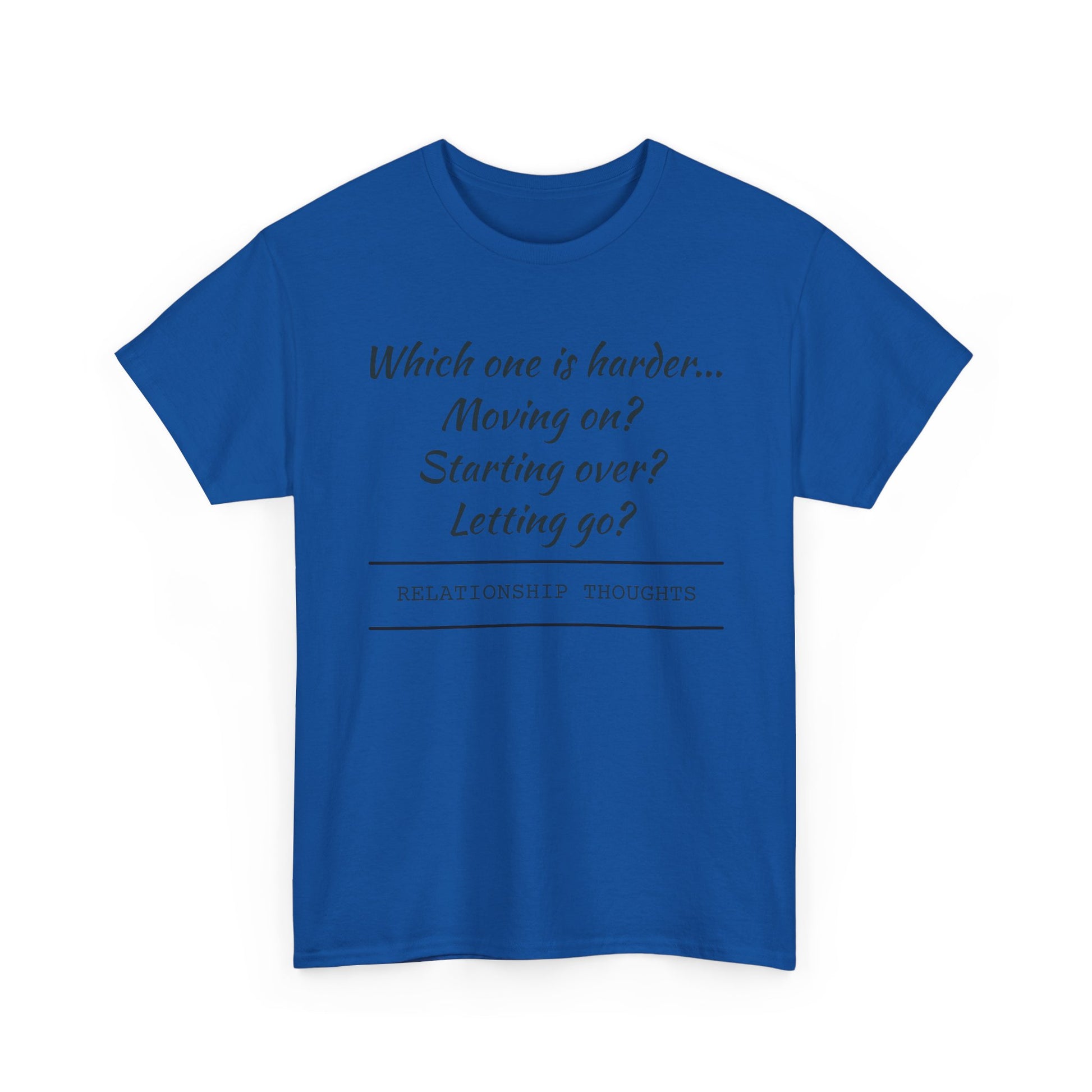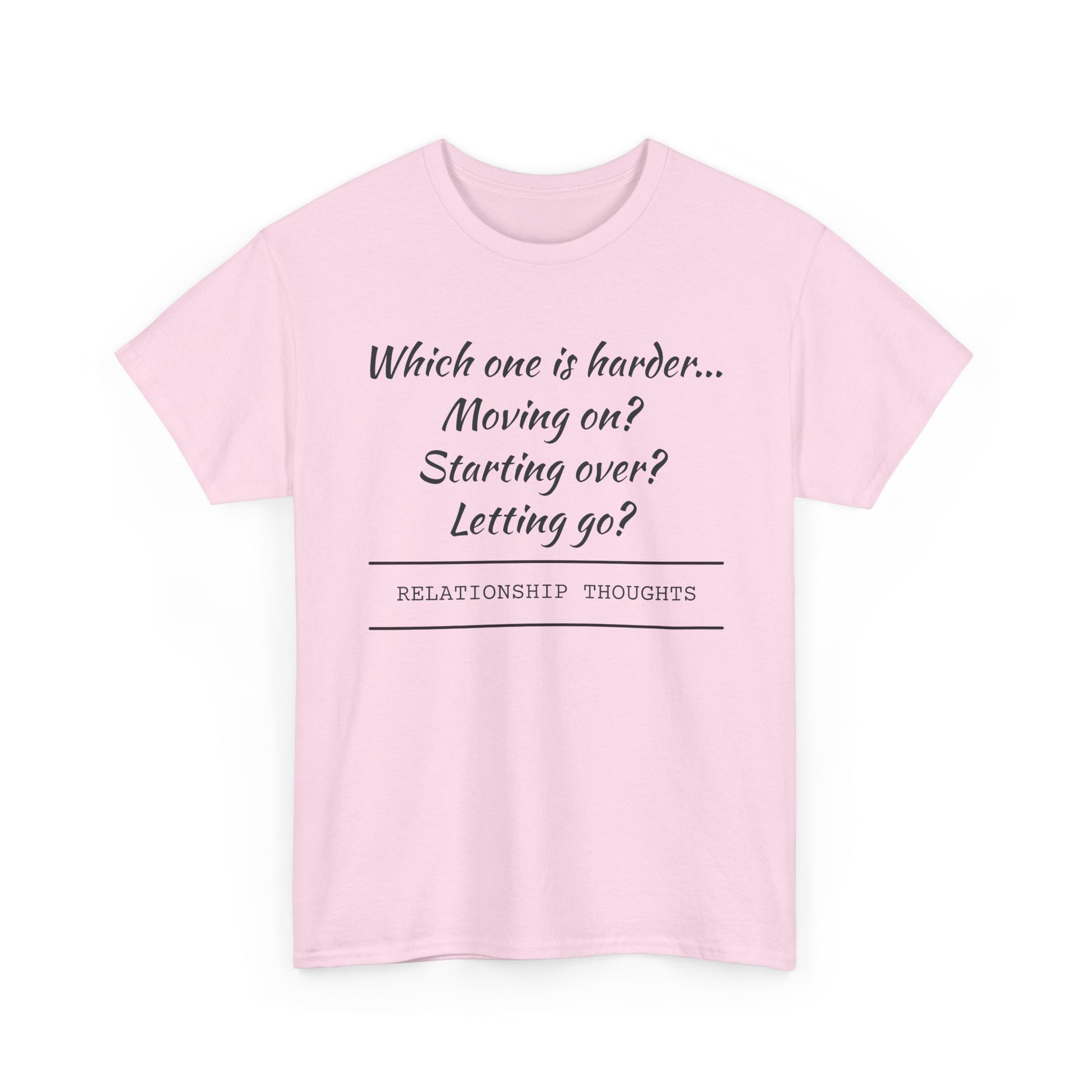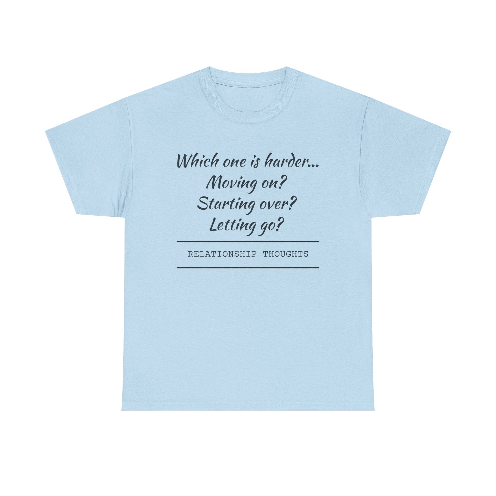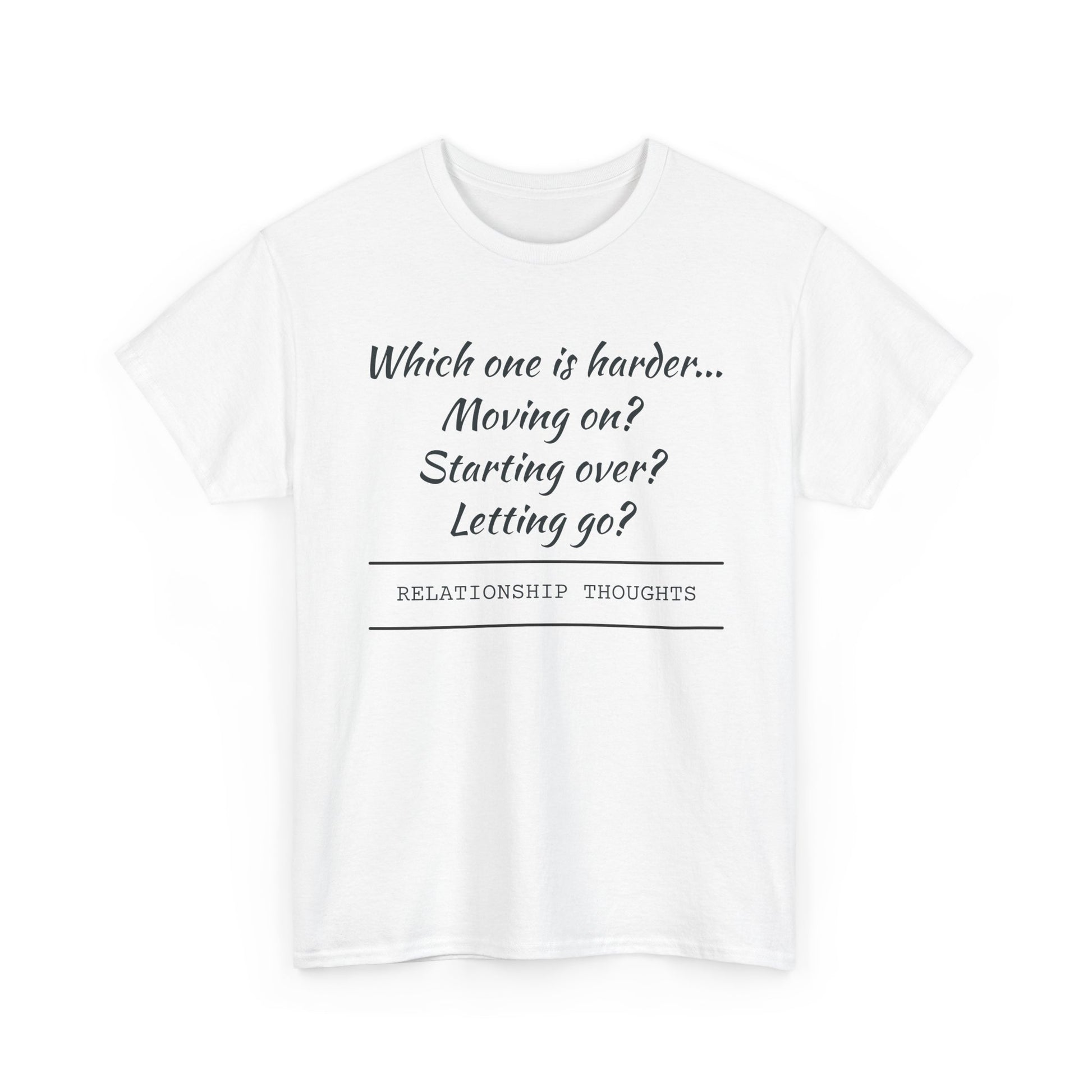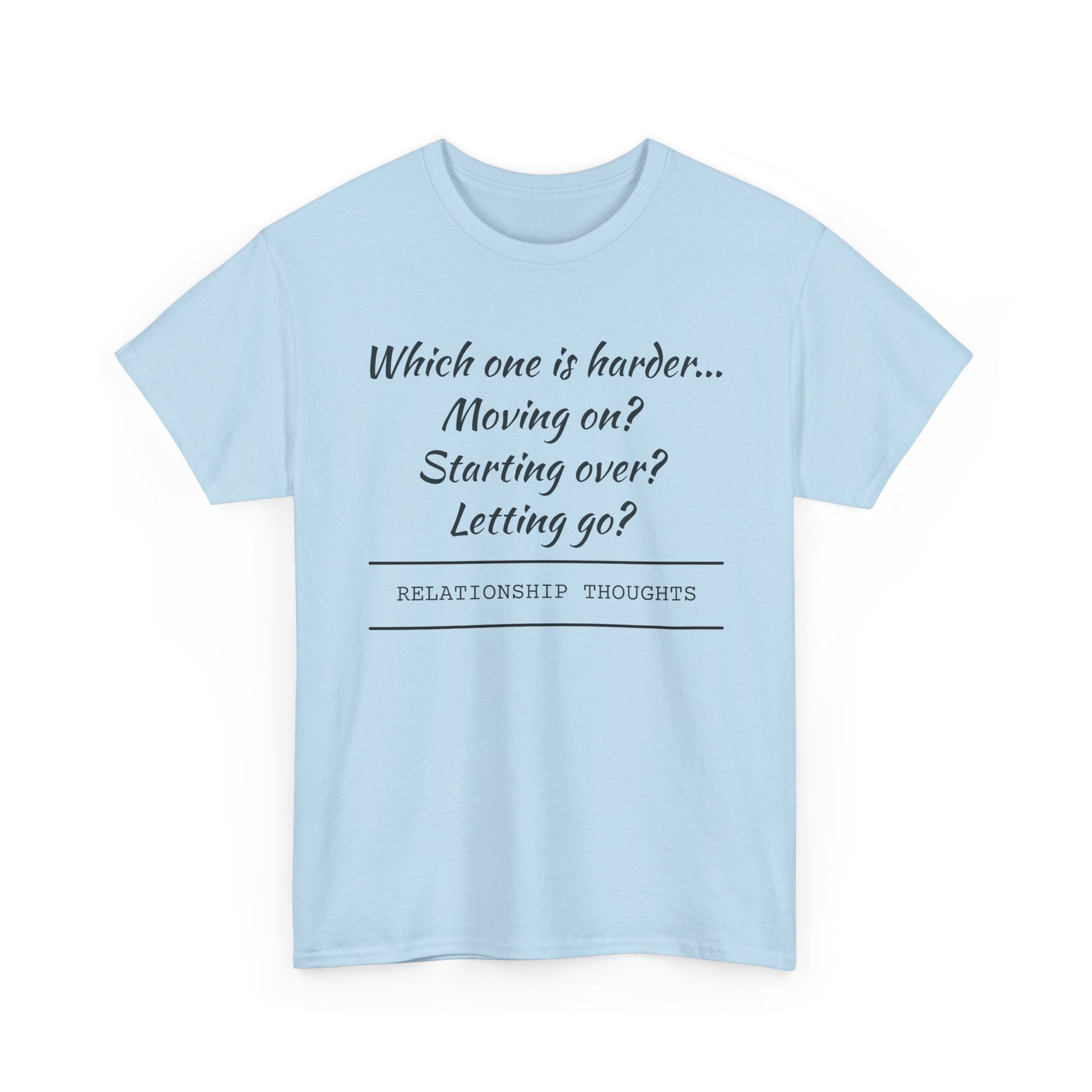 Relationship Thoughts Tee — “Which one is harder... Moving on? Starting over? Letting go?”