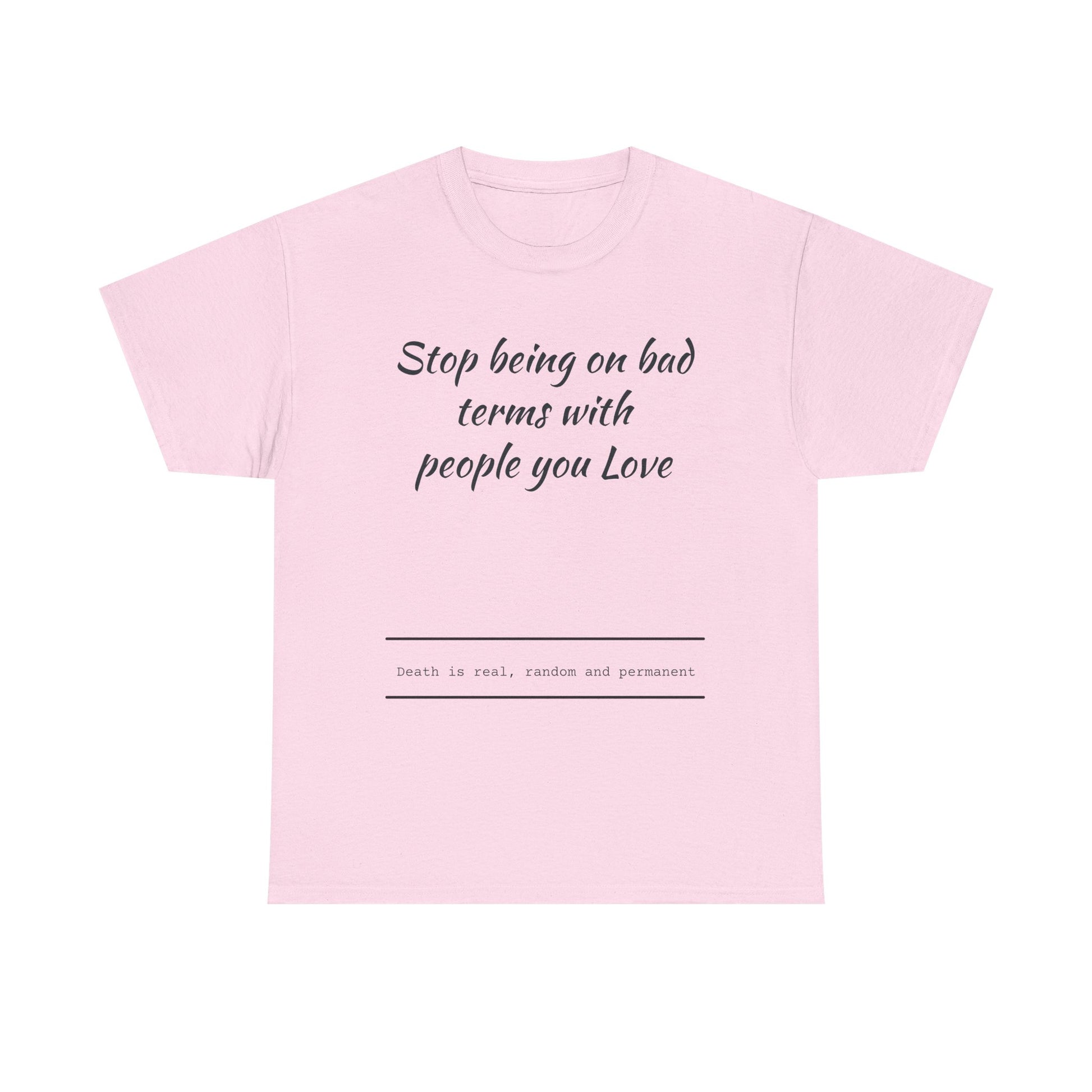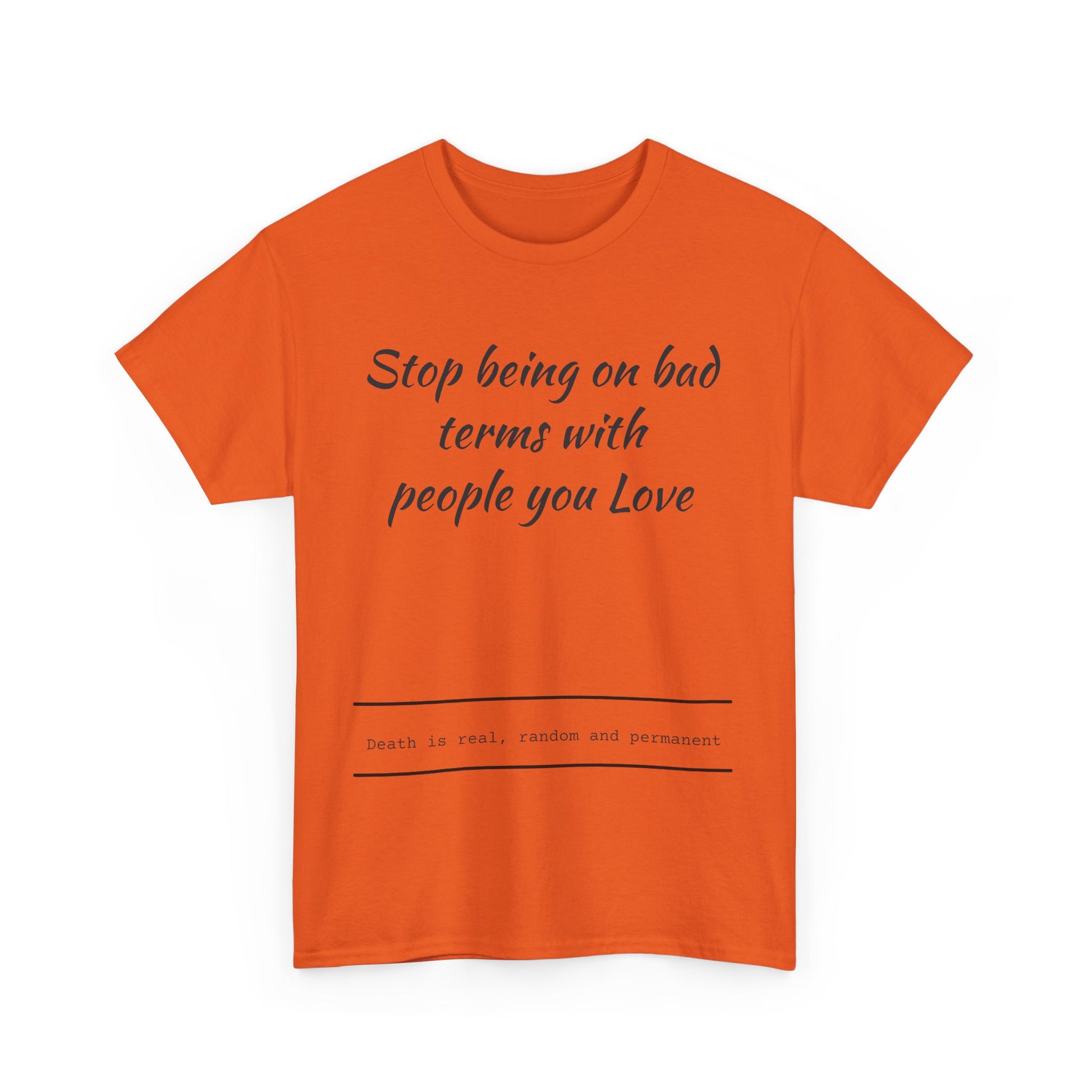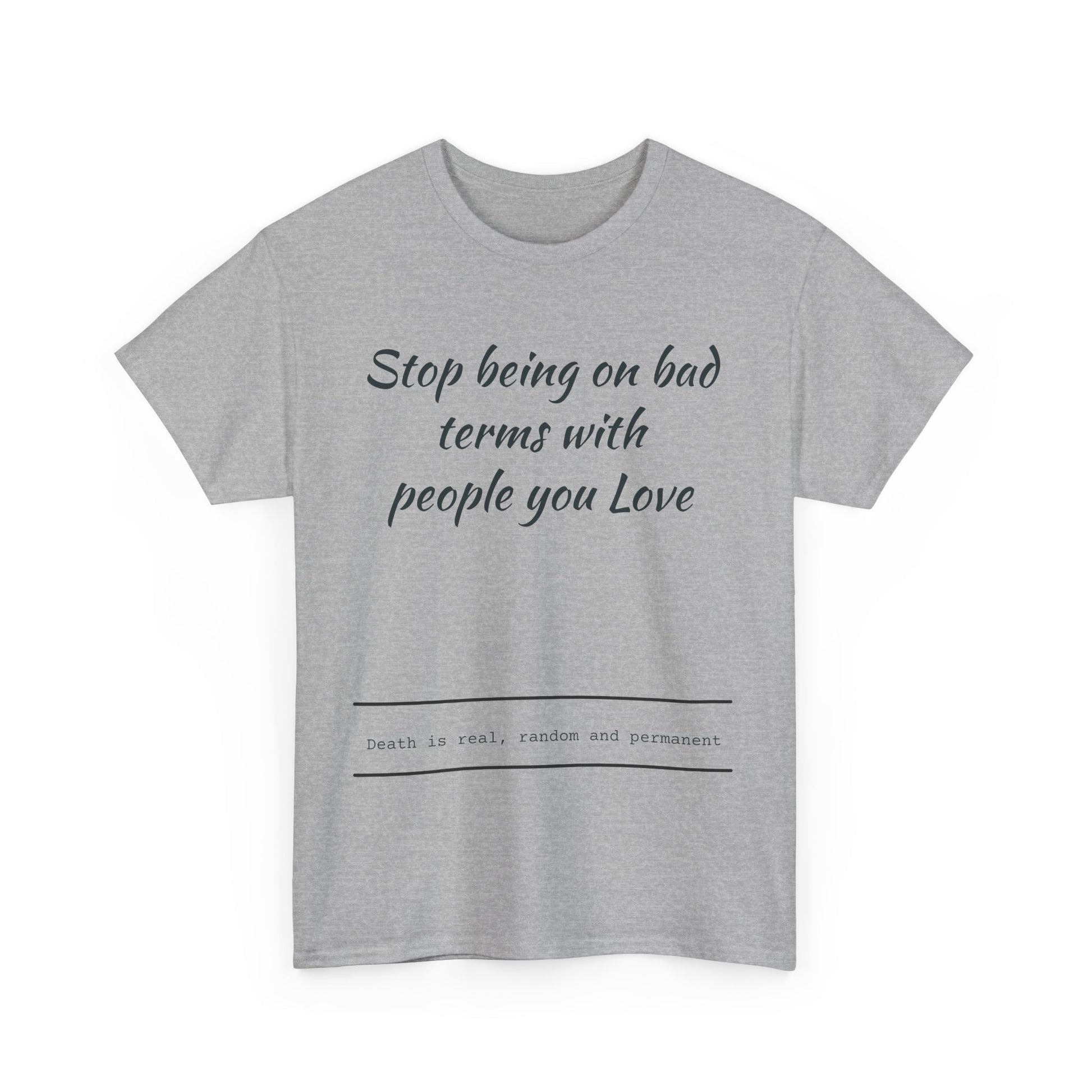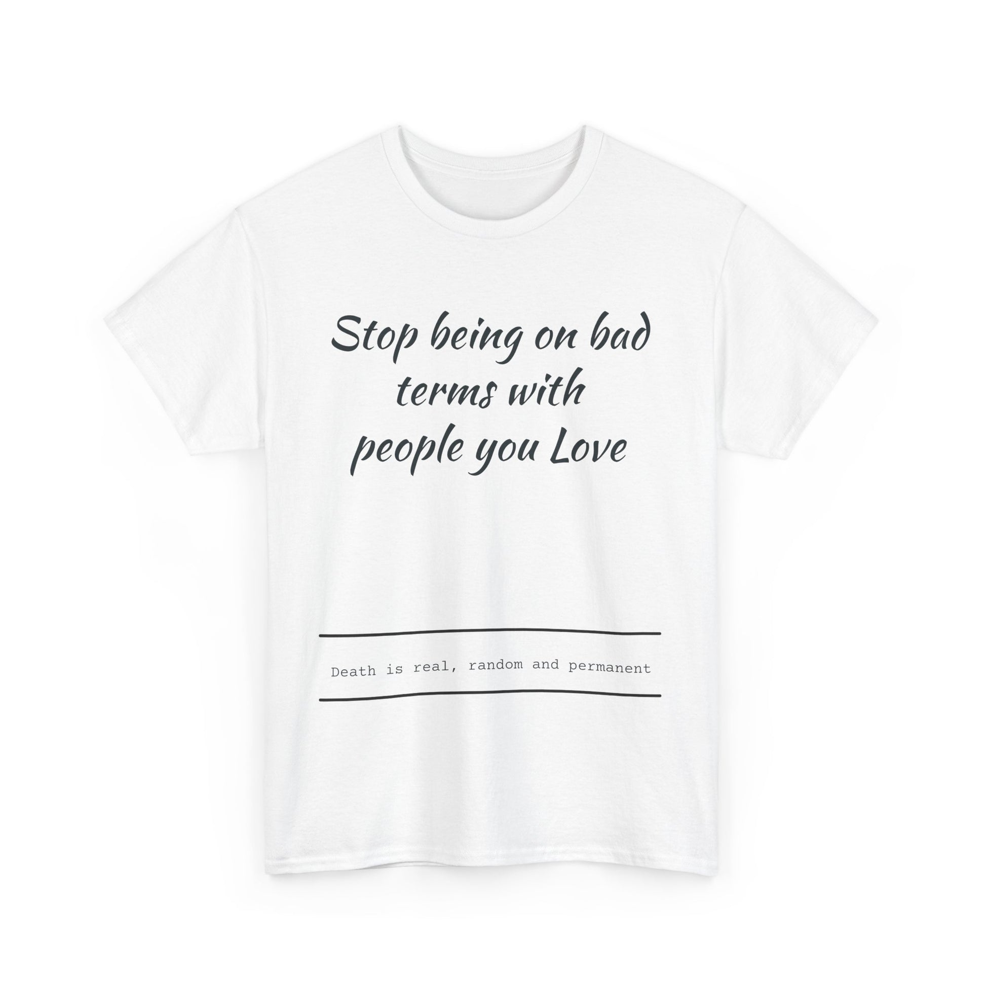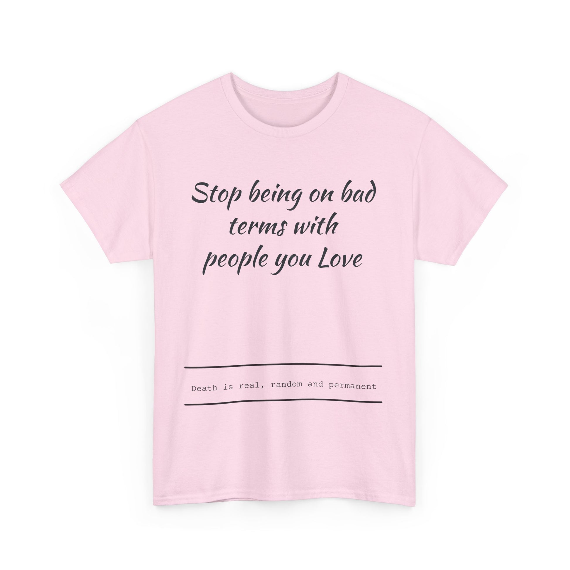 Embrace a blend of comfort and style with this Unisex Heavy Cotton Tee. Crafted for those who value both relaxation and subtle expression, this tee is perfect for year-round wear. Its classic fit and crew neckline create a timeless look that seamlessly transitions from casual outings to semi-formal gatherings. Ideal for adults seeking a cozy yet fashionable addition to their wardrobe, this t-shirt makes a thoughtful gift for birthdays, friendship anniversaries, or simply to encourage meaningful conversations during family reunions or gatherings. Celebrate connections with this tee that resonates with warmth and sincerity. Whether it’s a cozy day at home or a day out with friends, this shirt brings an uplifting vibe to every occasion. Unisex Heavy Cotton Tee with Inspirational Quote: "Stop being on bad terms with people you Love" - Gift for Friends, Family, Birthday, [...]