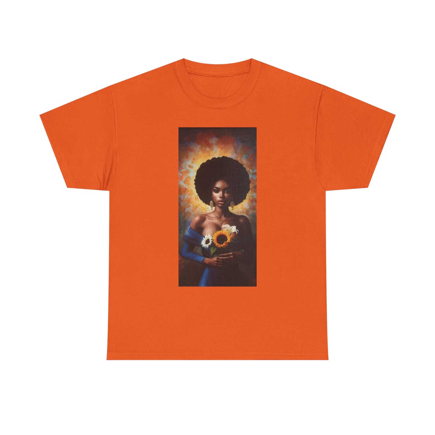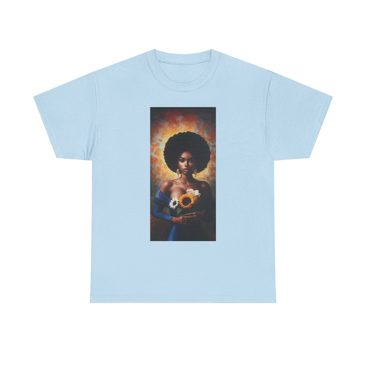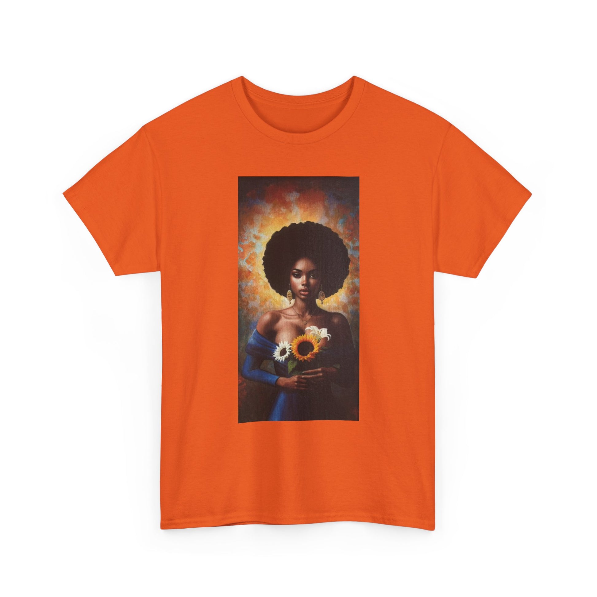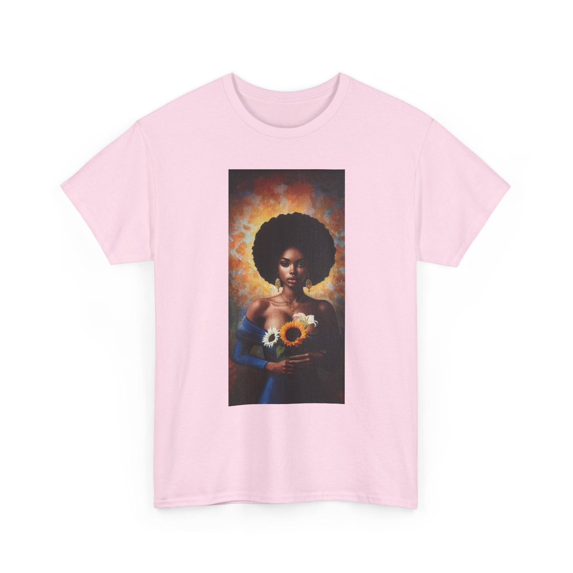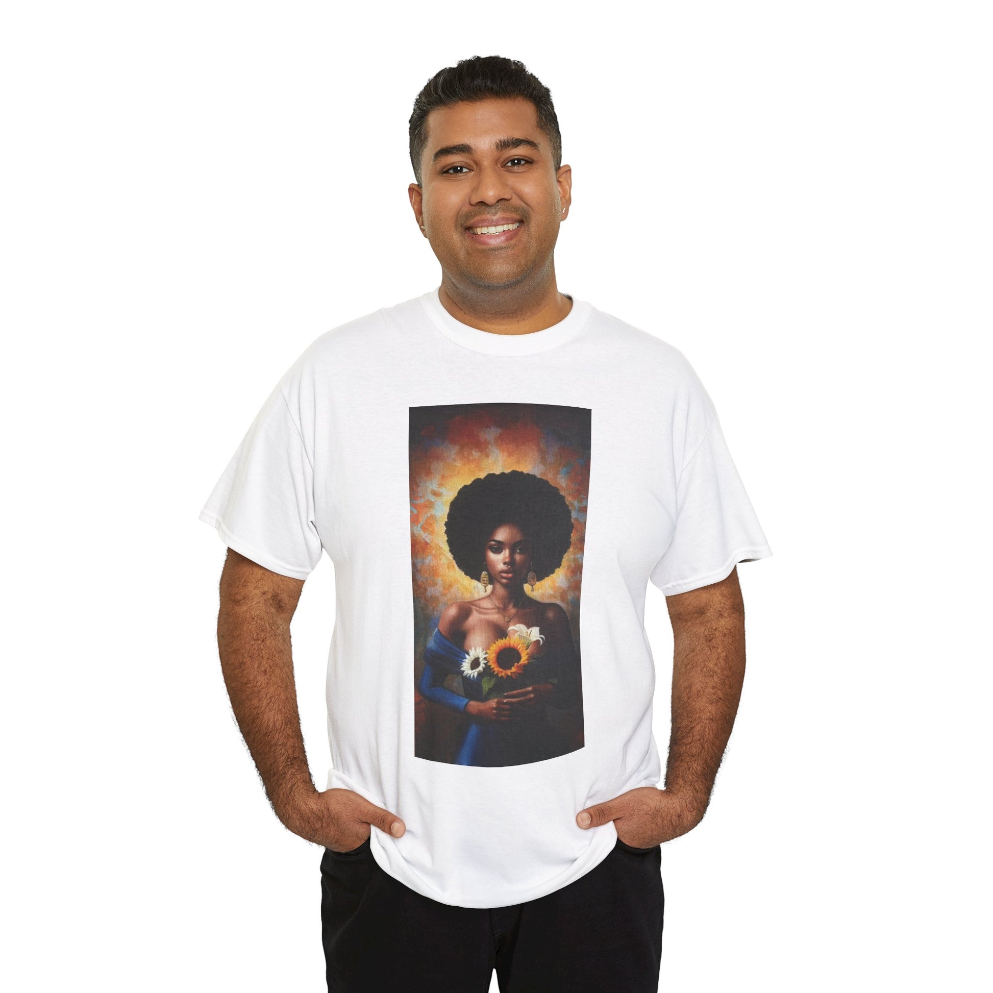 Elevate your wardrobe with this unisex heavy cotton tee, a perfect blend of comfort and style. With its classic fit and timeless crew neckline, this shirt easily transitions from casual outings to semi-formal occasions. The vibrant design adds a unique touch, making it an ideal choice for those who appreciate artistic expression. Whether you're celebrating a birthday, attending a festival, or simply looking to make a fashion statement, this tee is designed for everyone. Crafted from ethically sourced cotton, it not only looks good but also feels great against your skin. Share it as a thoughtful gift or keep it for yourself to express your individuality at family gatherings, picnics, or everyday wear. Sunflower Goddess Unisex Heavy Cotton Tee, Floral T-Shirt, Black Woman Artwork Tee, Gift for Her, Casual Everyday Wear