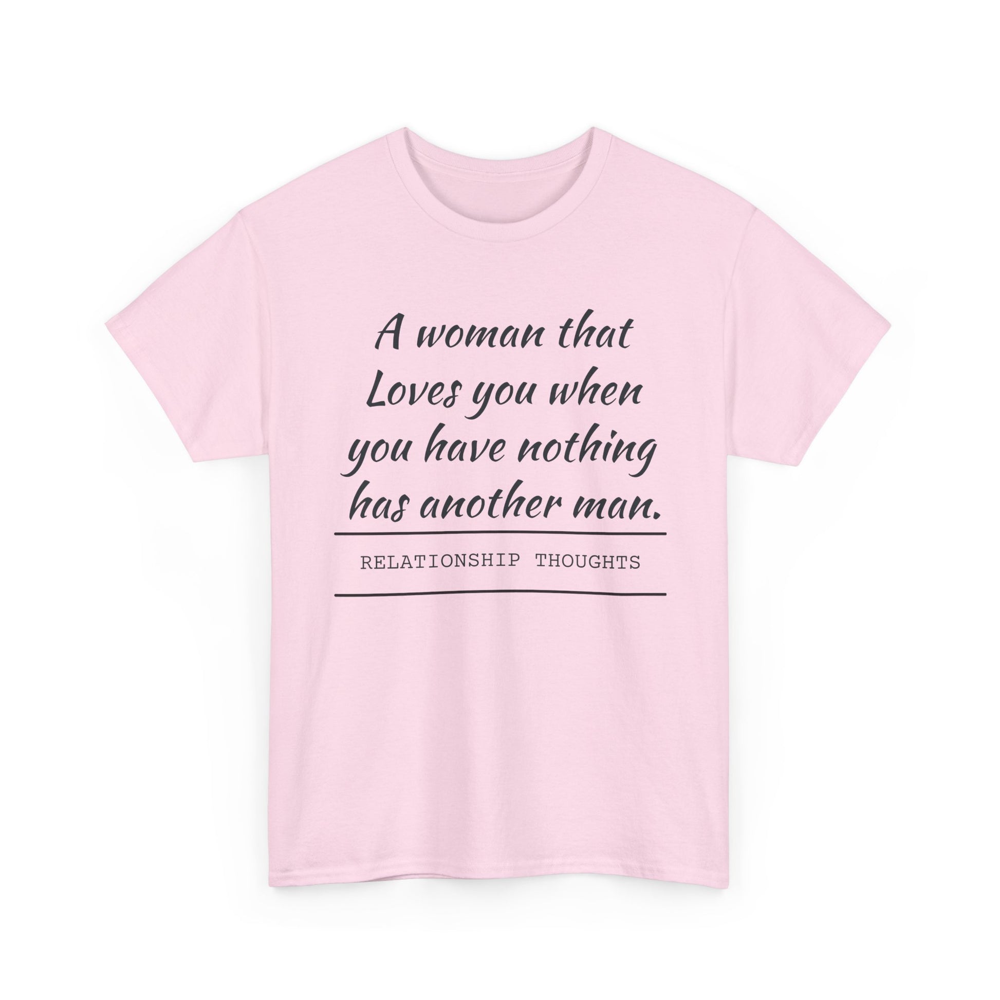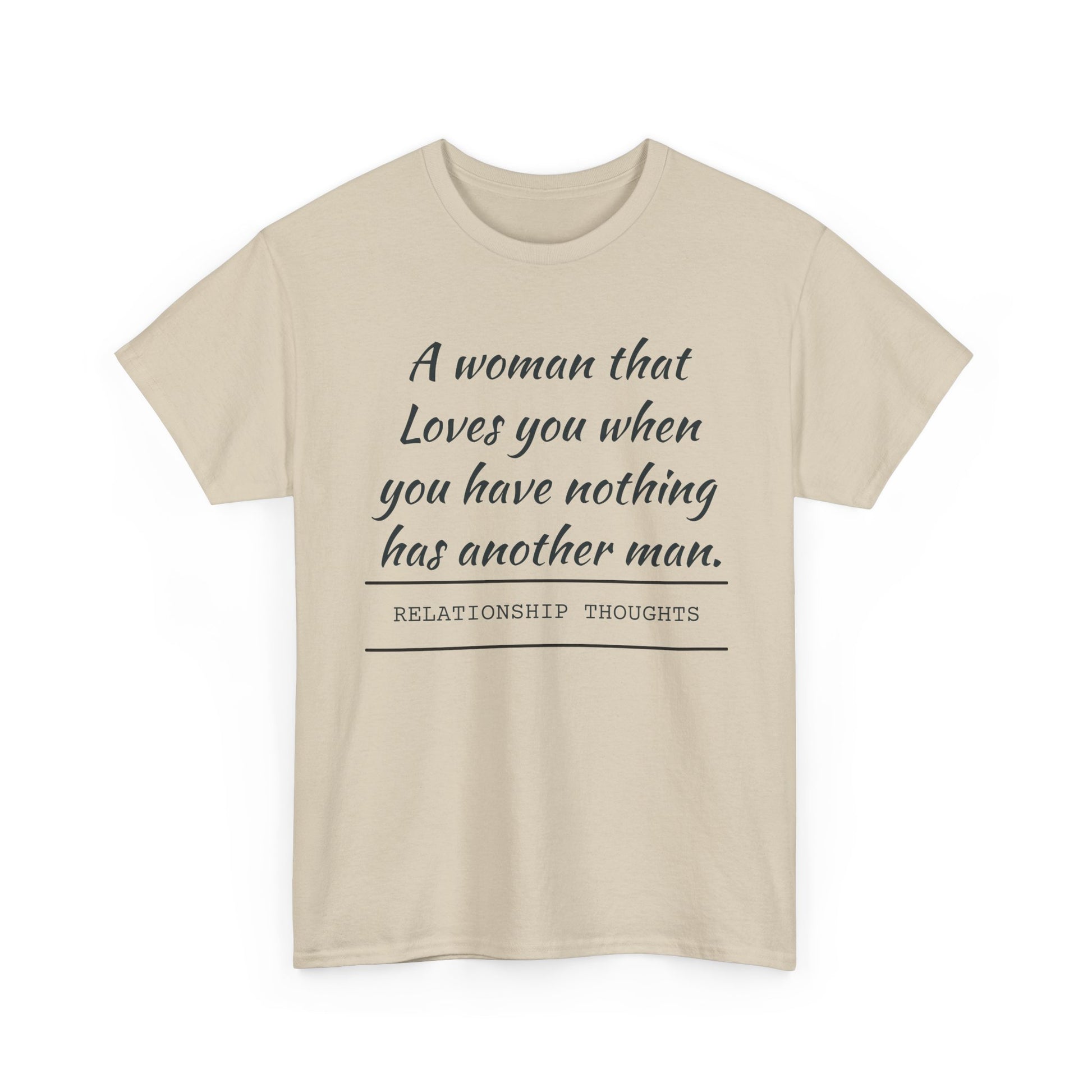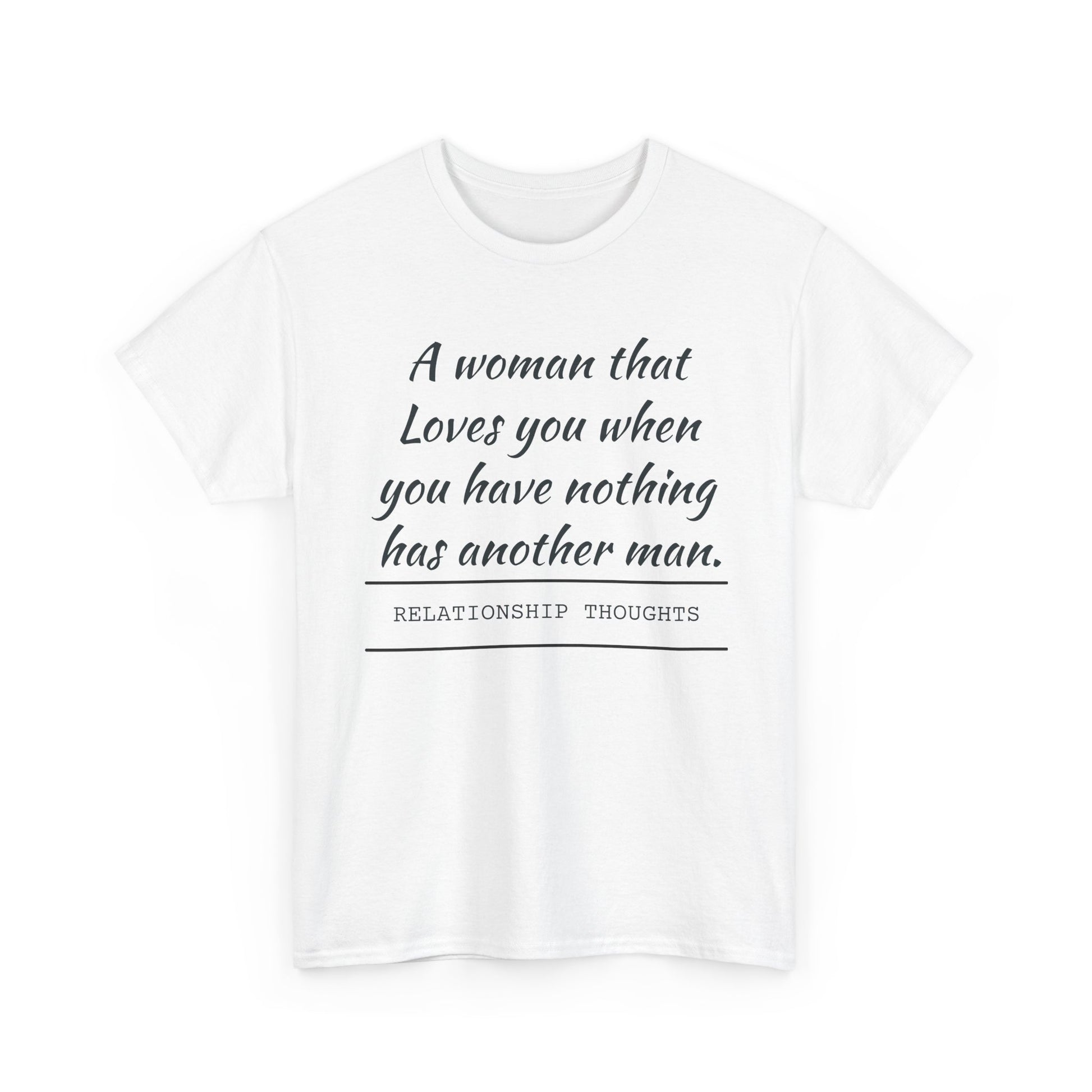 T-Shirt — “A woman that loves you when you have nothing has another man.” Relationship Thoughts Quote Tee