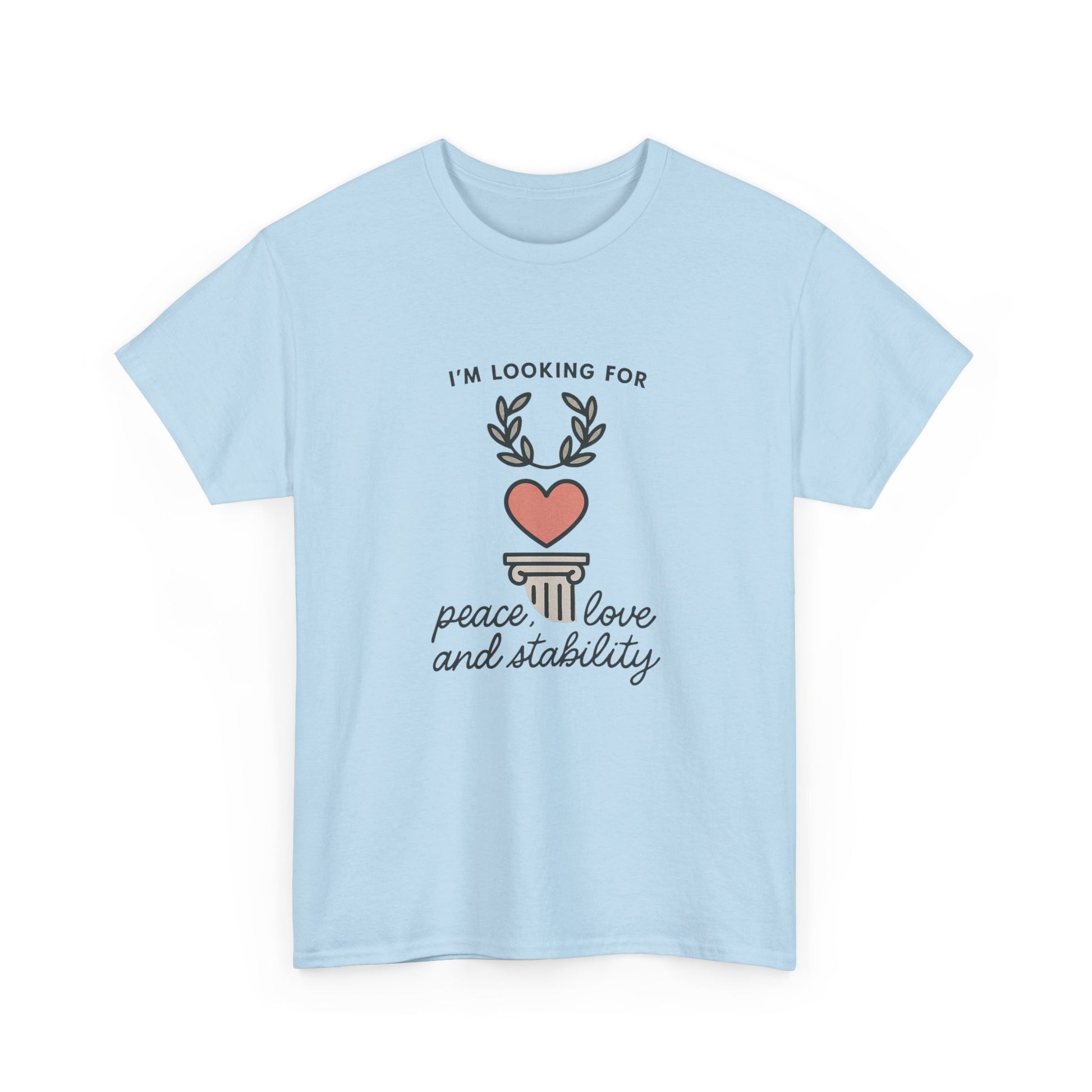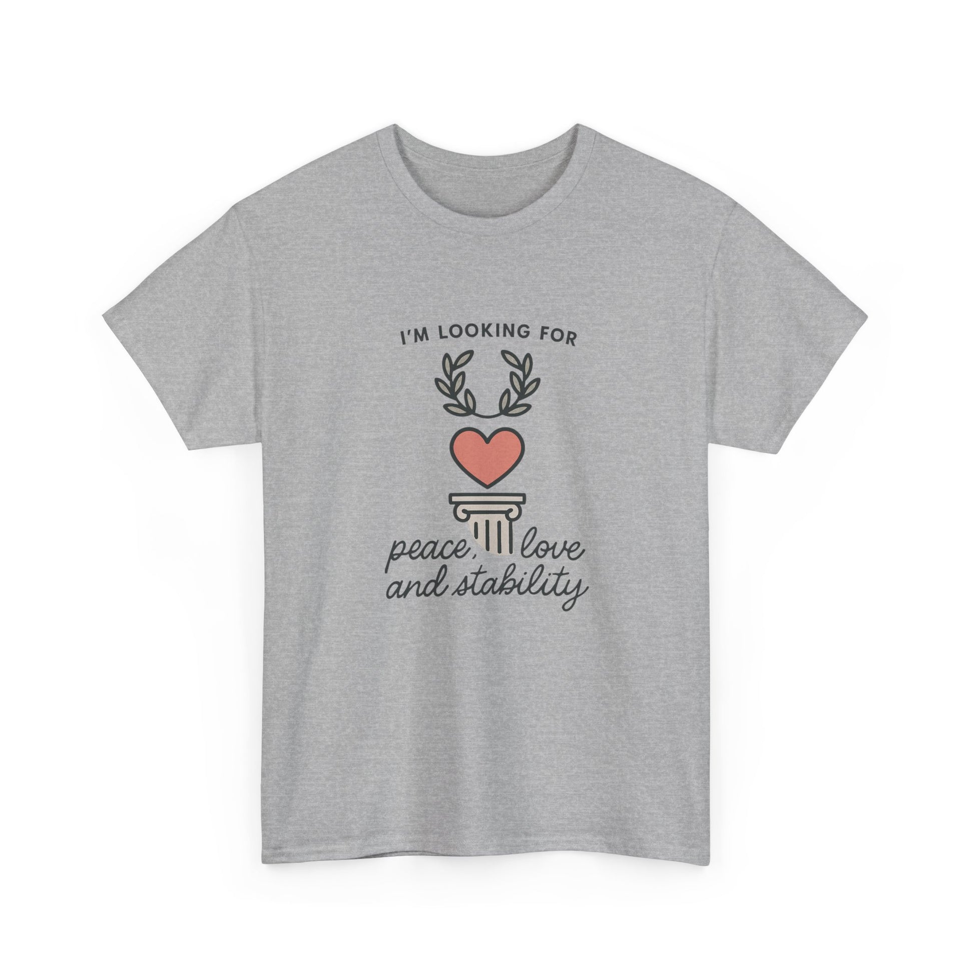 T‑Shirt — "I’m Looking For Peace, Love and Stability" Graphic Tee