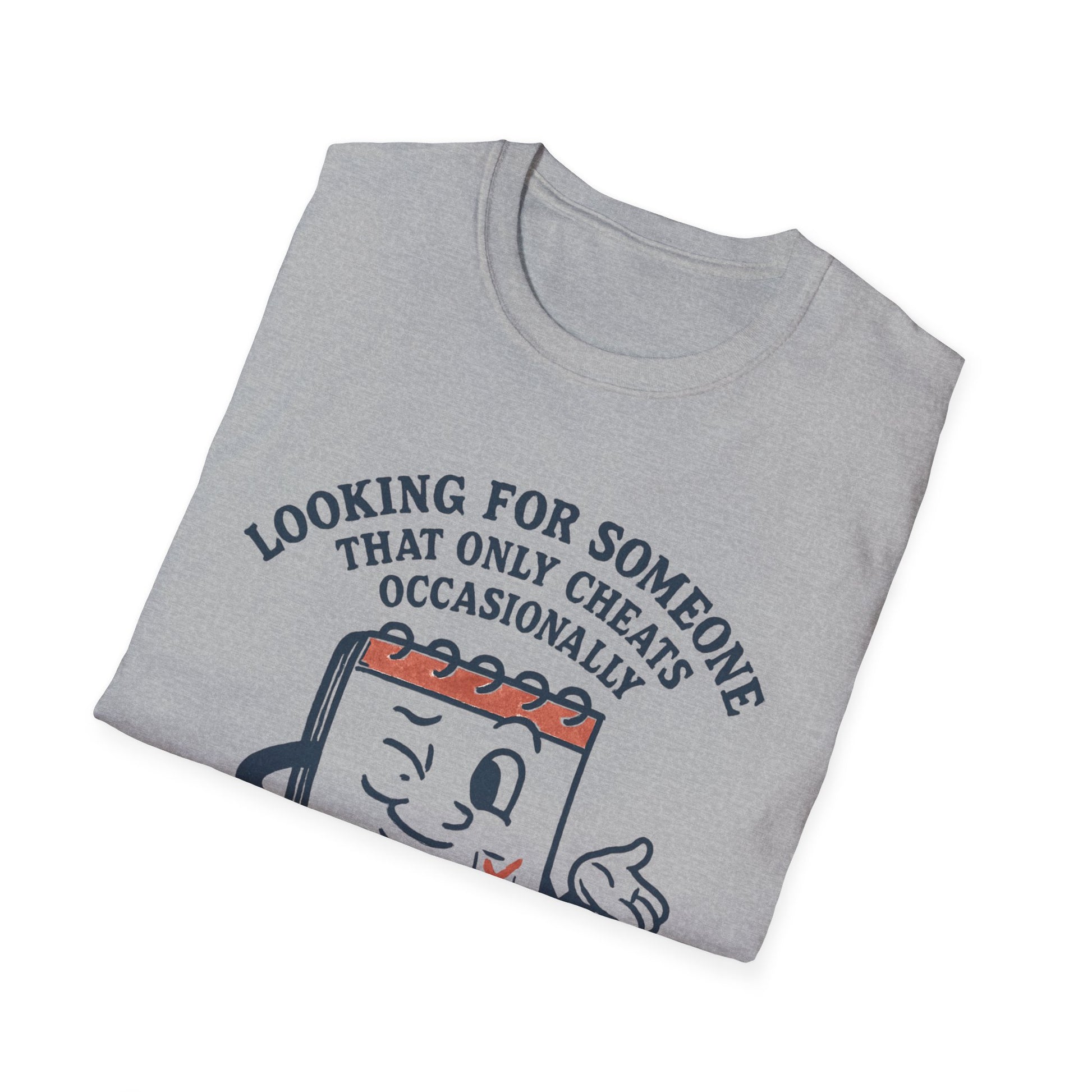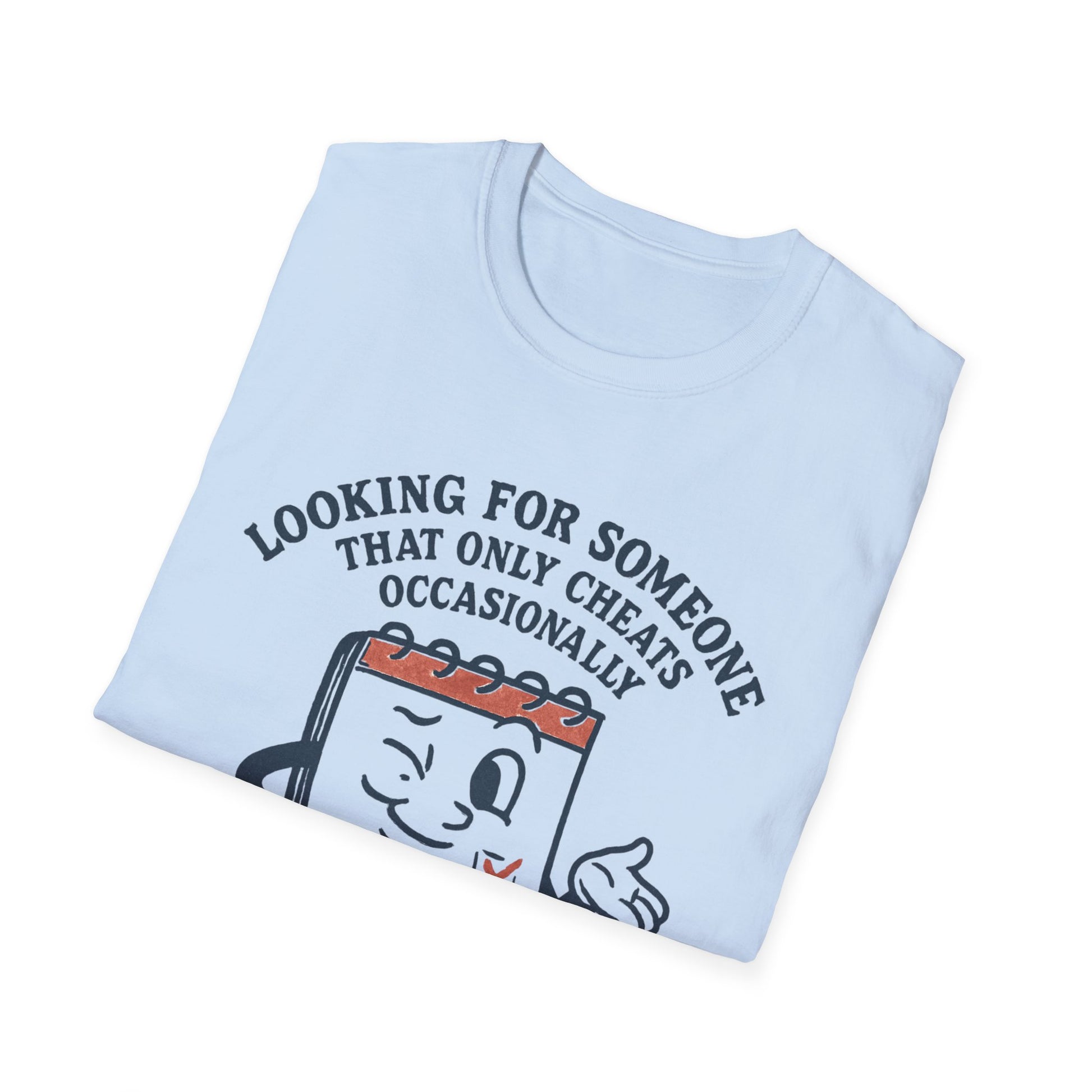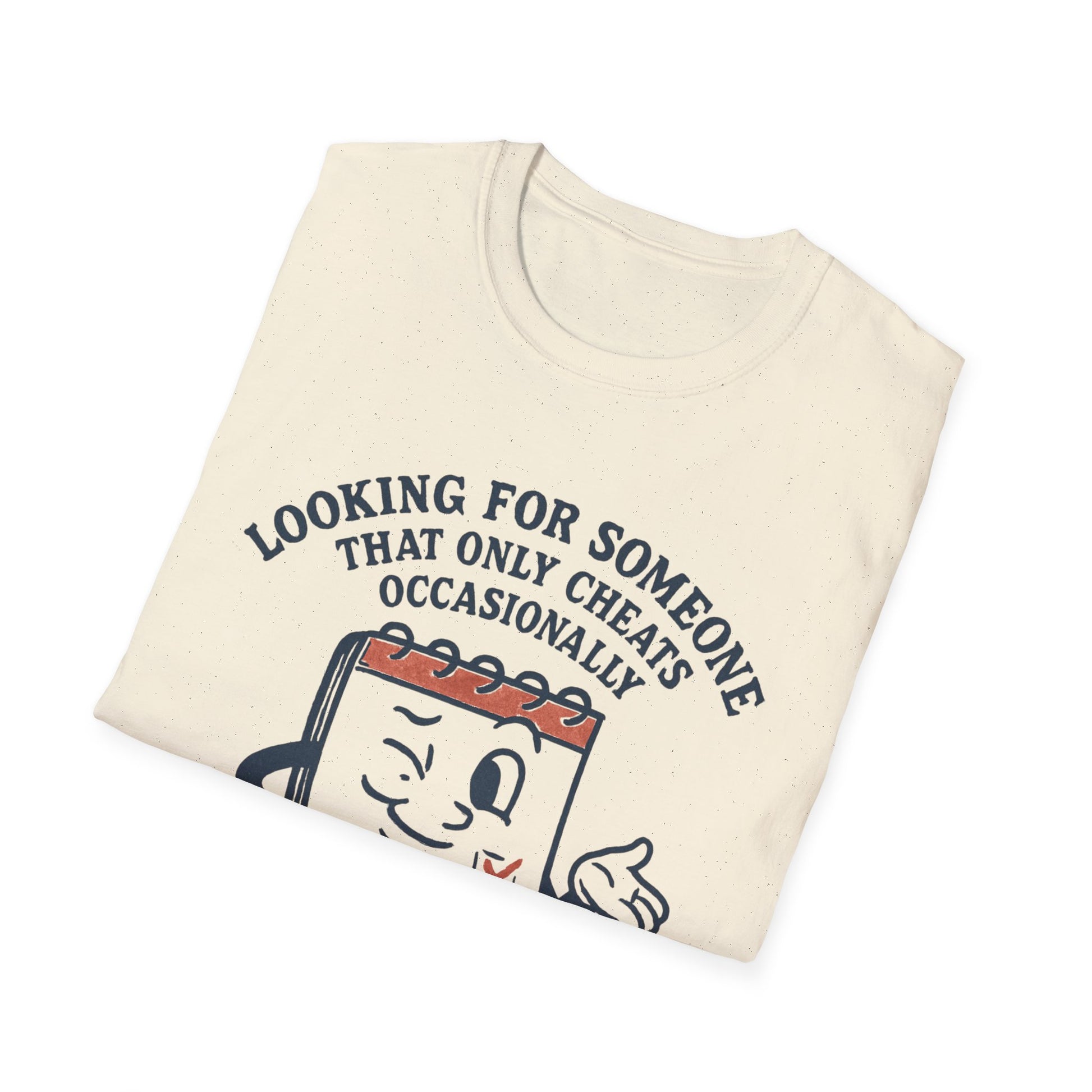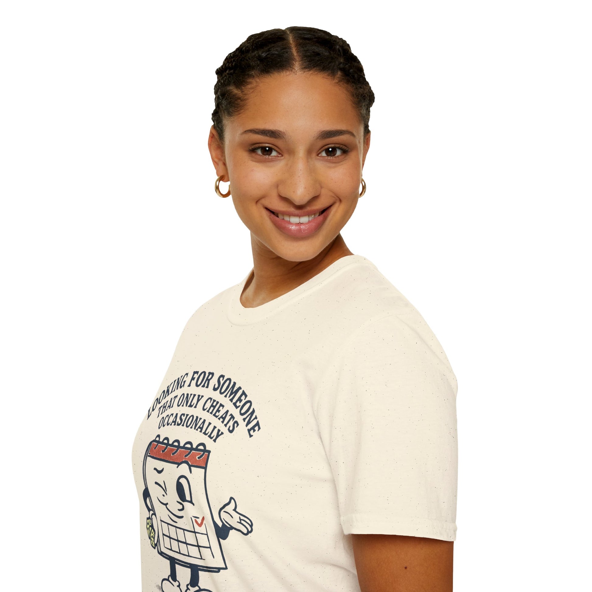 T-Shirt — "Looking for Someone That Only Cheats Occasionally" Calendar Cartoon Tee