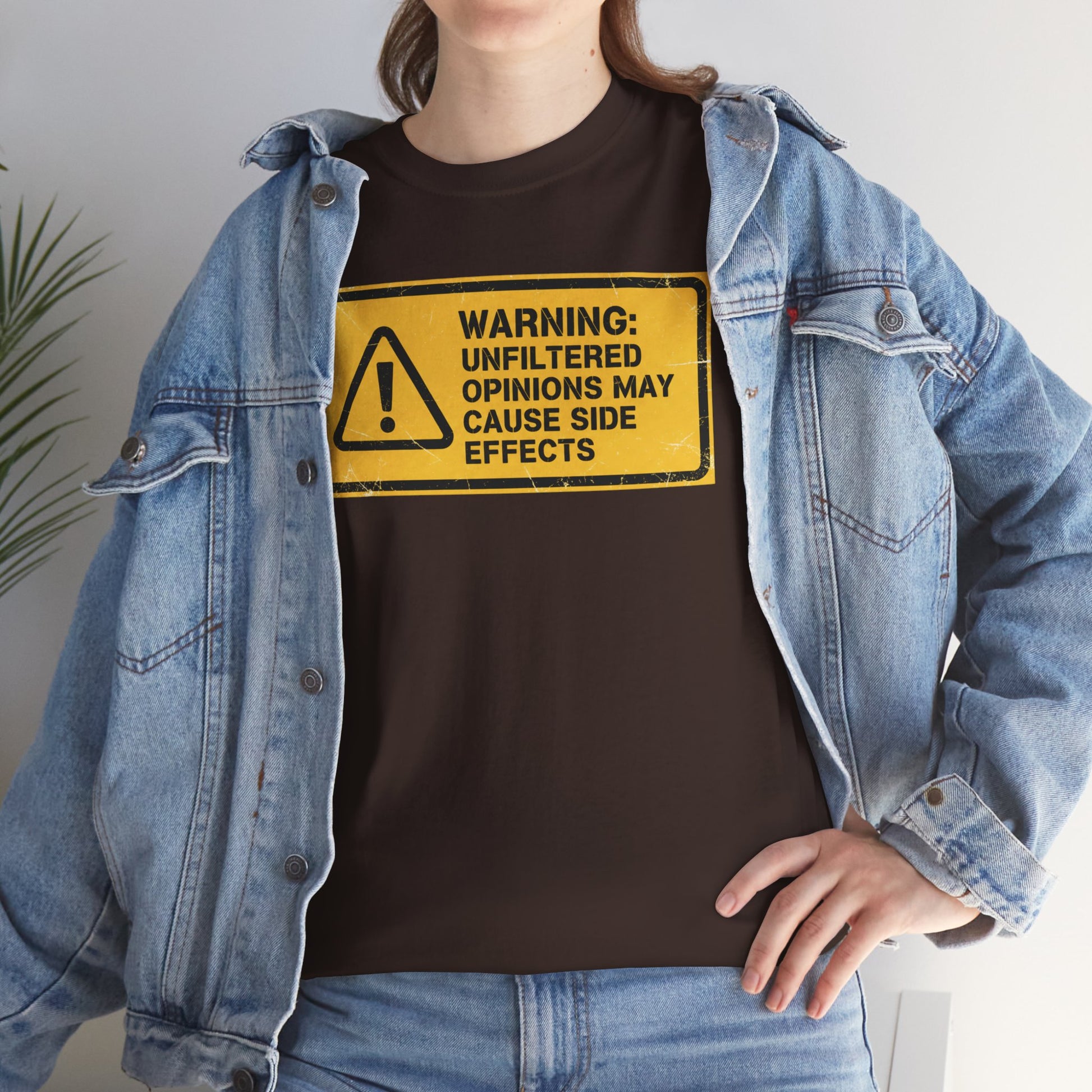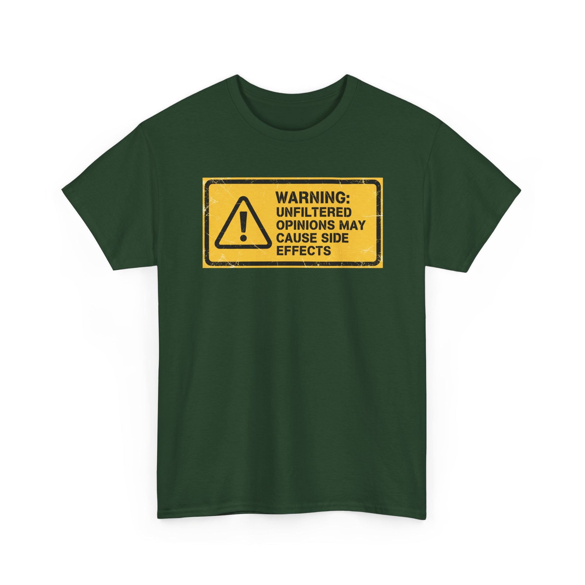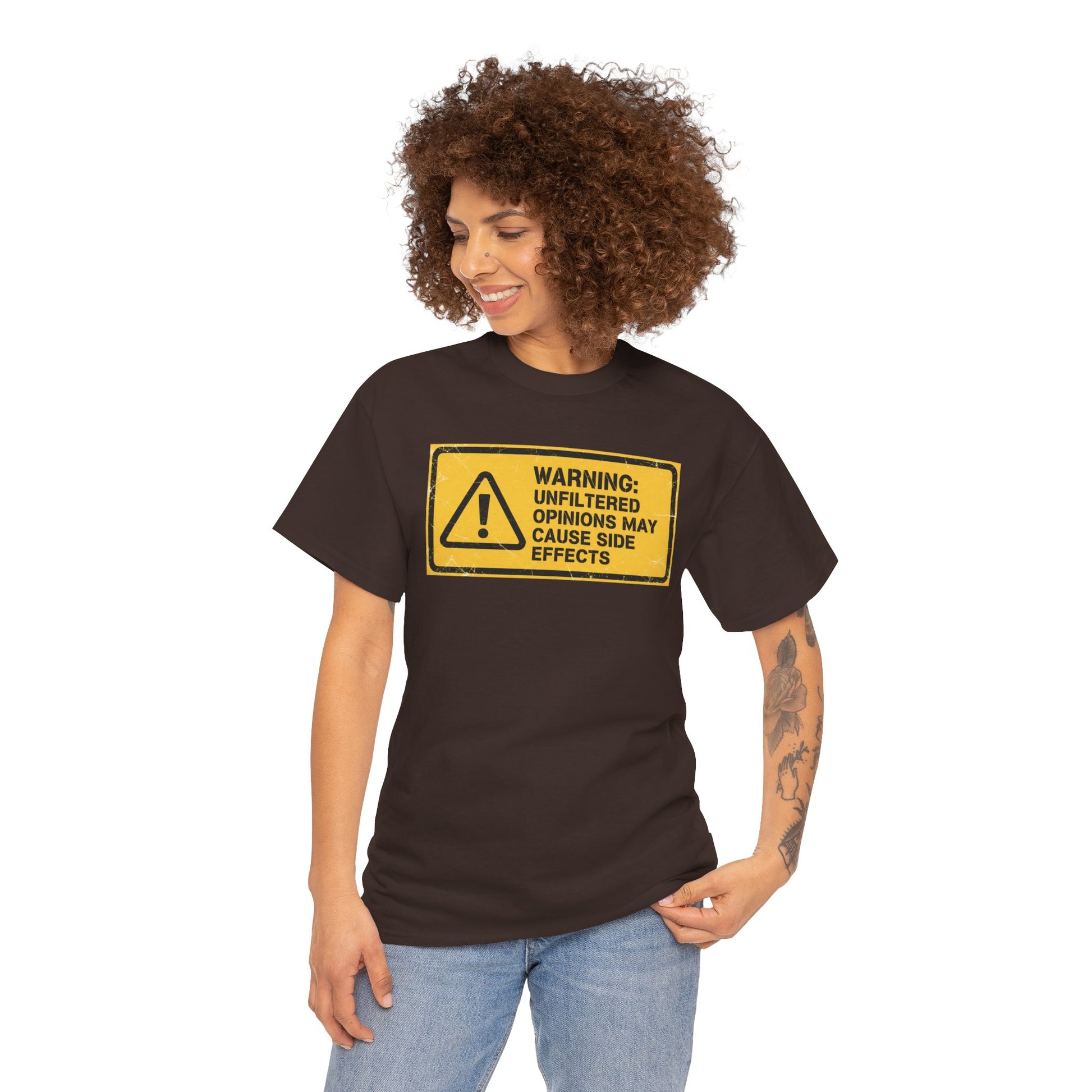 T-Shirt — "Warning: Unfiltered Opinions May Cause Side Effects" Graphic Tee