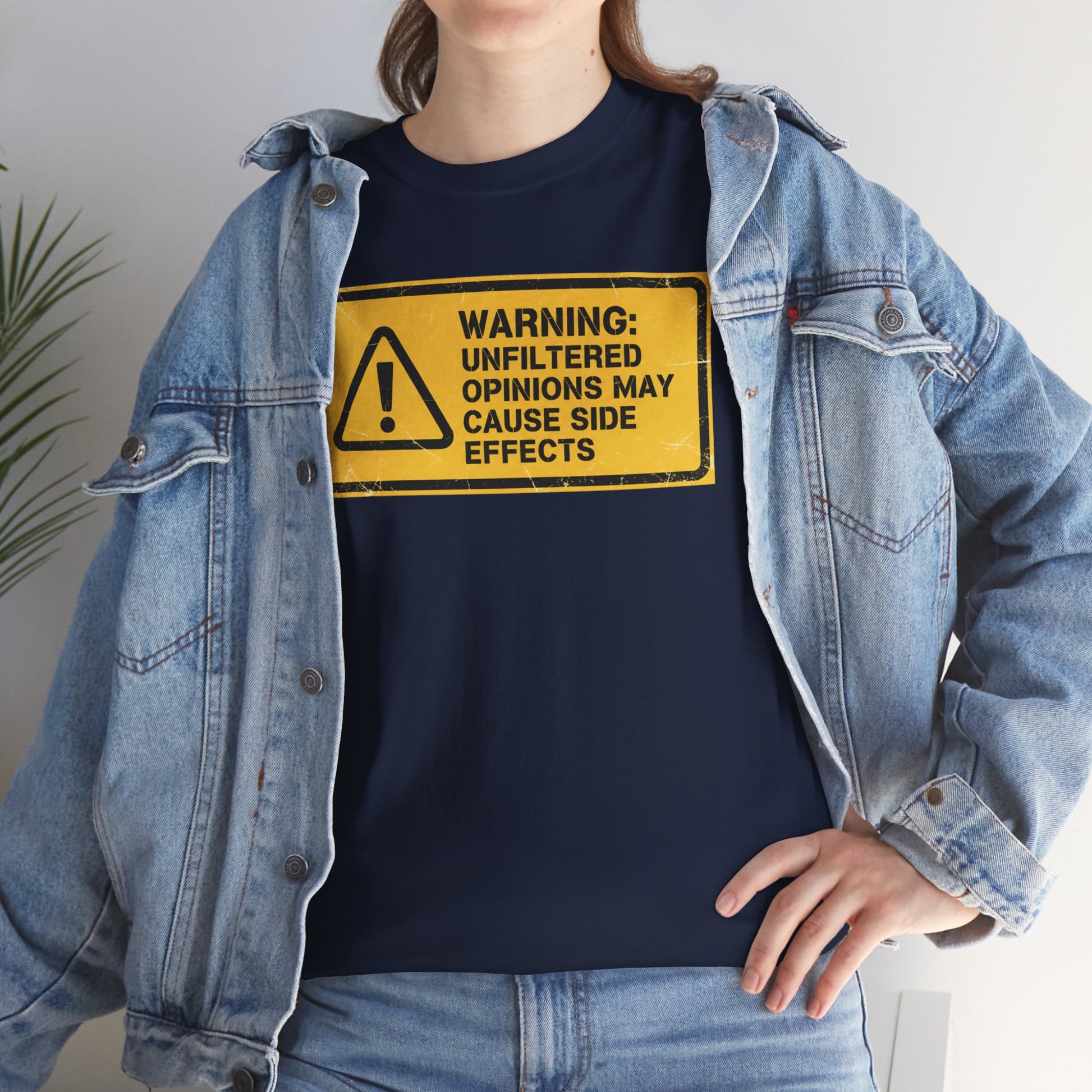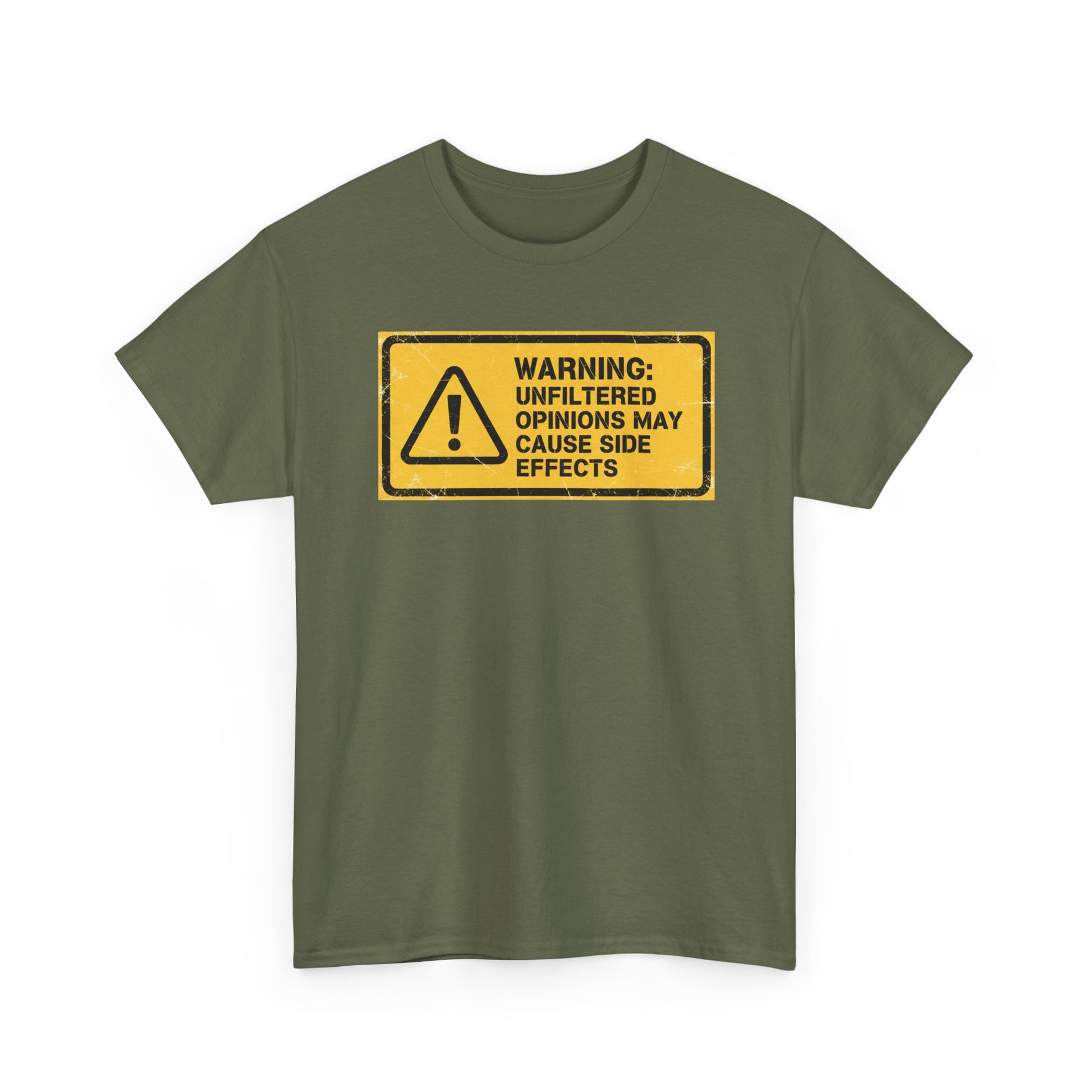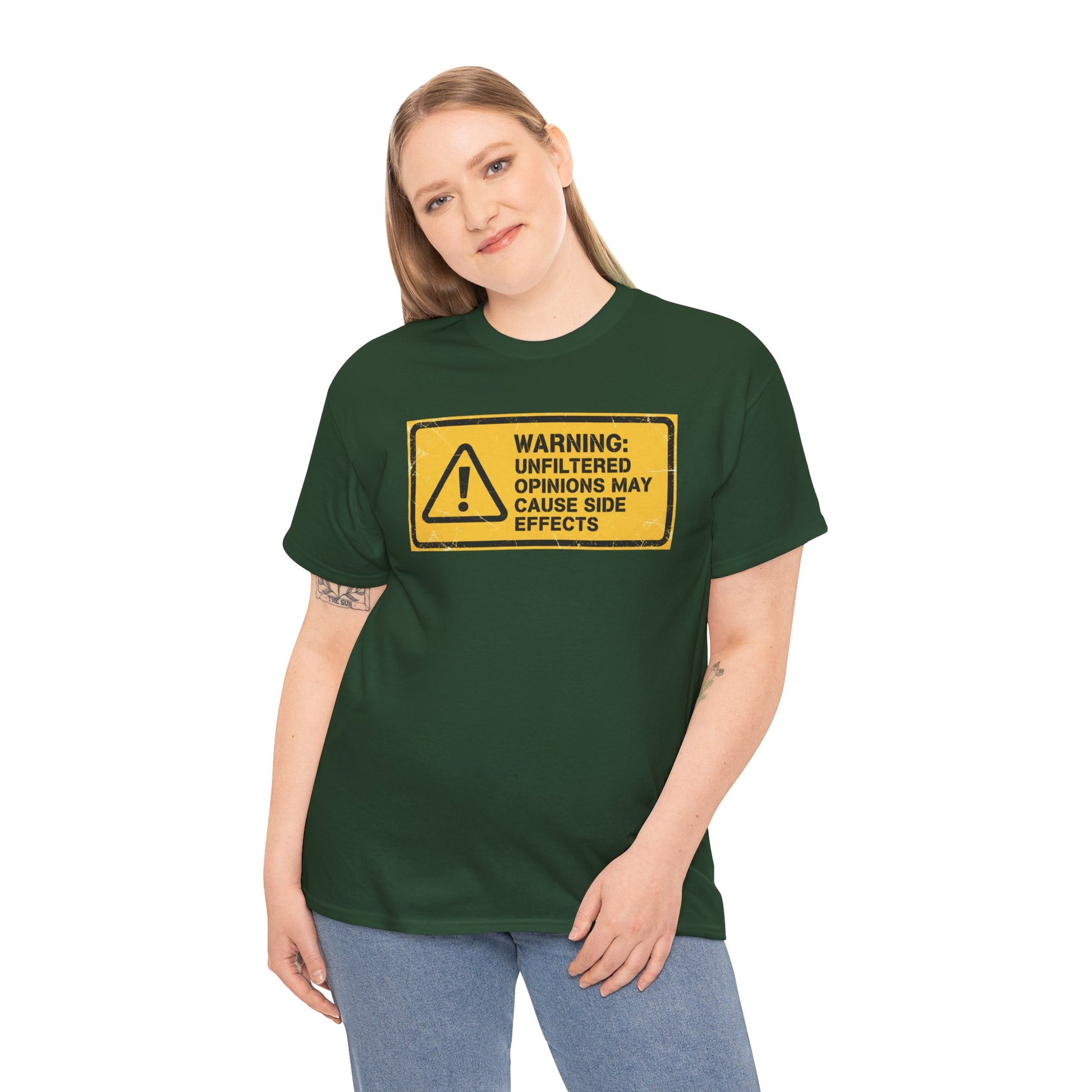 T-Shirt — "Warning: Unfiltered Opinions May Cause Side Effects" Graphic Tee