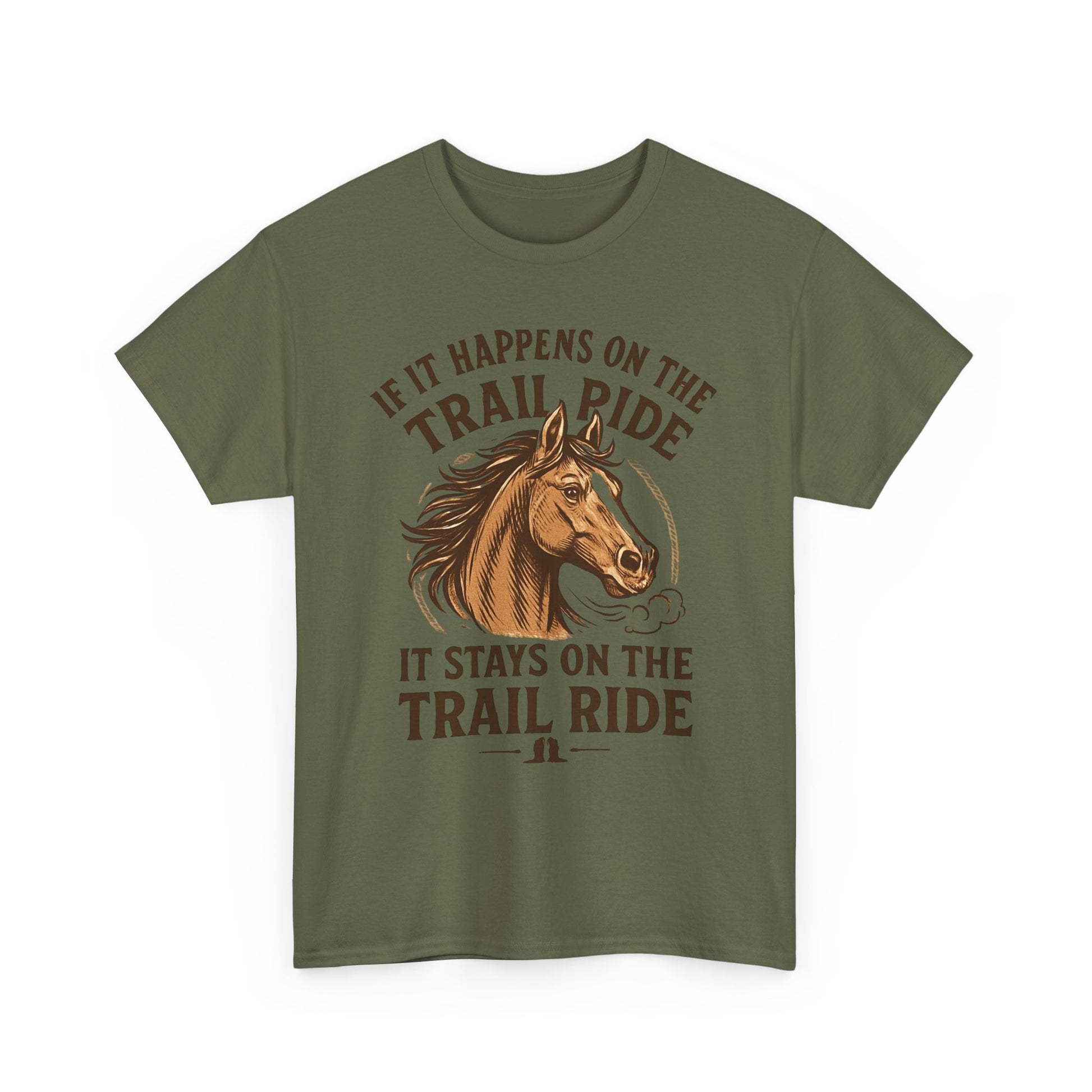 Trail Ride T-Shirt — "If It Happens On The Trail Ride, It Stays On The Trail Ride" Horse Tee