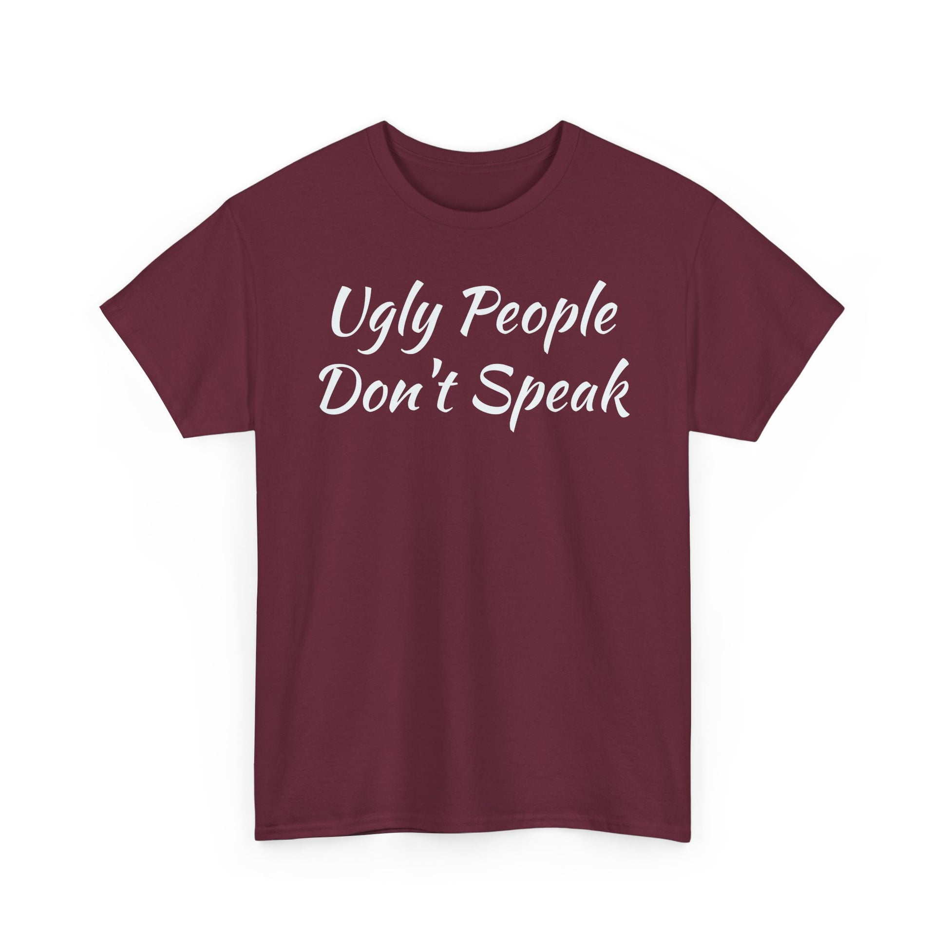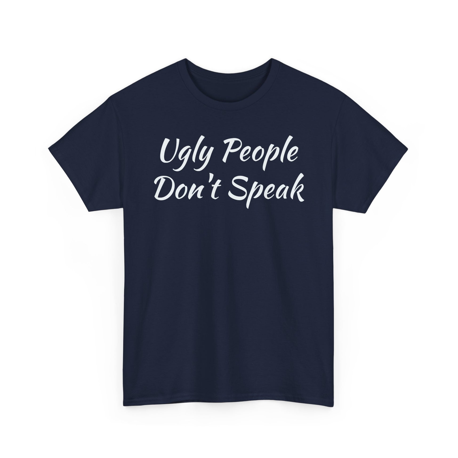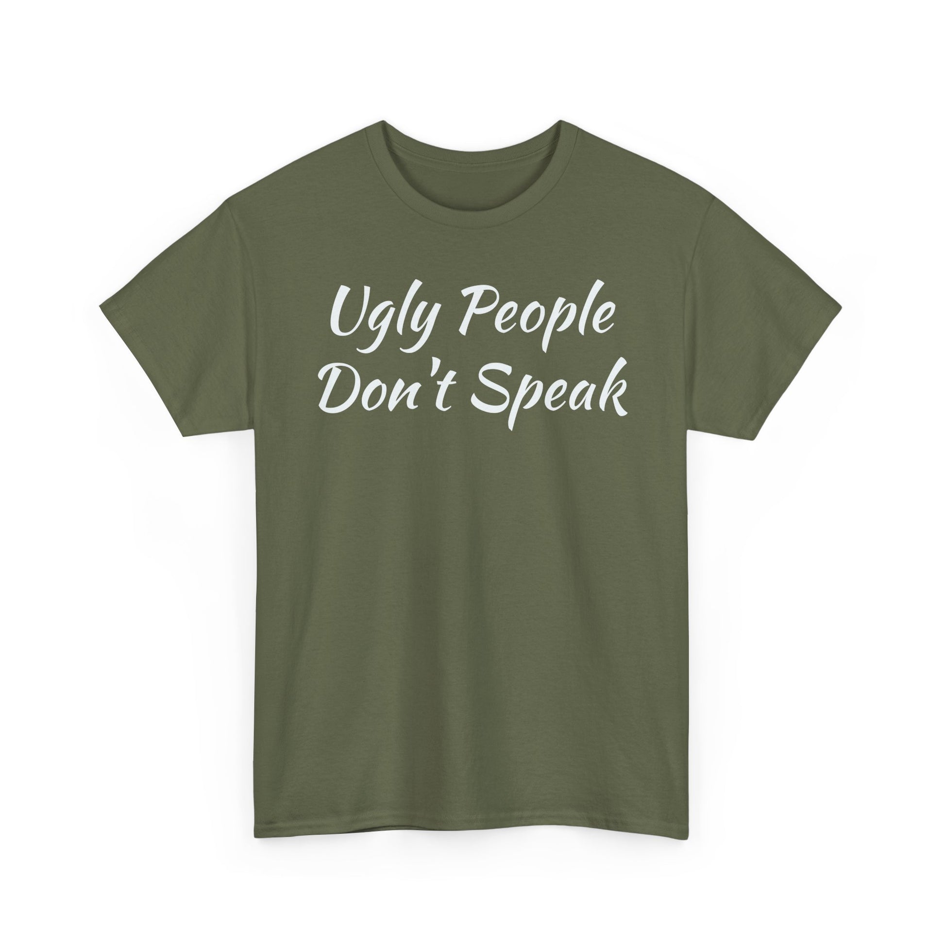 Introducing this stylish Unisex Heavy Cotton Tee, the perfect blend of comfort and edgy expression. Made from high-quality, specially spun fibers, this tee is not only soft to the touch, but also ensures durability for everyday wear. The classic fit and crew neckline make it a versatile choice, suitable for casual outings or more semi-formal occasions. Whether you're hanging out with friends or making a statement at a social gathering, this tee is designed to elevate your style effortlessly. It’s ideal for fashion enthusiasts, young adults, or anyone looking to inject a bit of fun into their wardrobe. Celebrate birthdays, parties, or just add a unique piece to your collection with this eye-catching design! Unisex Heavy Cotton Tee with "Ugly People Don't Speak" - Funny Gift, Casual Wear, Humor Shirt, Statement Tee, Birthday Gift